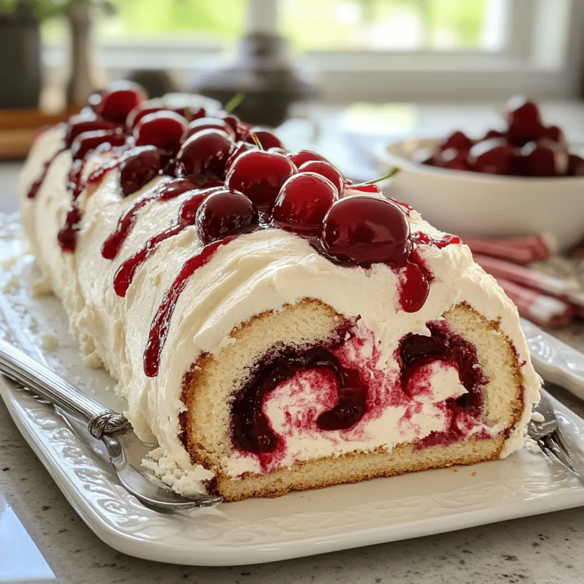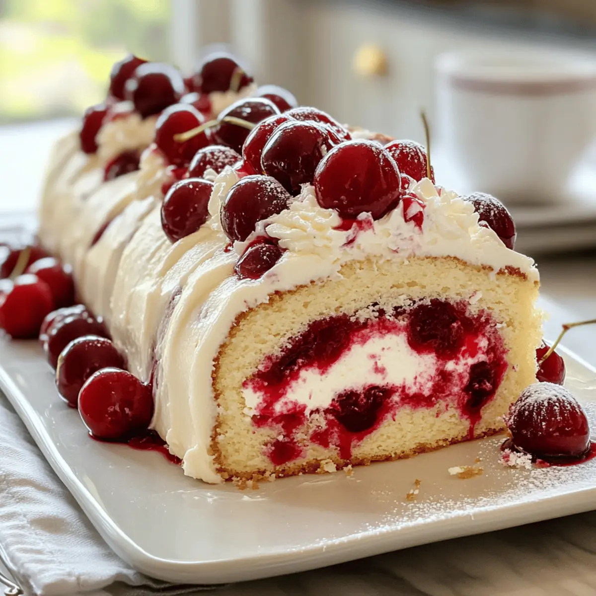 Ein verführerischer Duft schwebt durch die Küche, als ich den ersten Biss in meinen Himmlischen Kirsch-Käsekuchen-Roll nehme. Diese köstliche Kreation vereint die Leichtigkeit eines fluffigen Biskuitkuchens mit der cremigen Fülle eines Käsekuchens und der fruchtigen Süße von Kirschen. Mit nur wenigen Schritten gelingt dir dieses beeindruckende Dessert, das sich nicht nur perfekt für feierliche Anlässe eignet, sondern auch eine wunderbare Möglichkeit bietet, etwas Zeit für dich selbst zu genießen. Und das Beste? Es ist ein kleiner Augenschmaus, der jeden Gaumen erfreut und deine Gäste garantiert ins Schwärmen bringt. Bist du bereit, dir diesen himmlischen Genuss vorzubereiten? Lass uns gleich mit dem Rezept starten! Warum wirst du diesen Kirsch-Cheesecake-Roll lieben? Köstlicher Genuss: Jeder Bissen dieser himmlischen Kreation ist eine geschmackliche Offenbarung, die leicht und cremig zugleich ist. Einfache Zubereitung: Mit nur wenigen Zutaten und Schritten gelingt dir dieses Dessert im Handumdrehen – ideal für alle, die hausgemachte Köstlichkeiten lieben. Vielseitig einsetzbar: Perfekt für Feierlichkeiten oder einfach nur, um dir selbst eine Freude zu machen. Du kannst mit verschiedenen Früchten experimentieren, um neue Geschmackserlebnisse zu kreieren, etwa mit einer Mischung aus Kirschen und Blaubeeren. Beeindruckende Optik: Dieser Kuchen sieht nicht nur luxuriös aus, sondern zieht auch die Blicke deiner Gäste an und macht jede Zusammenkunft noch festlicher. Erinnere dich daran, ihn für dein nächstes Fest zu probieren oder teile ihn mit Freunden – sie werden begeistert sein! Zutaten für den Kirsch-Cheesecake-Roll • Für den Biskuitteig: Biskuitteig – Er sorgt für die leichte Struktur und die perfekte Grundlage für den Roll. Verwende Weizenmehl, um eine luftige Textur zu erreichen. Eier – Sie liefern Feuchtigkeit und Stabilität; große Eier sind hierbei die beste Wahl. Zucker – Süßt den Teig und sorgt für eine schöne, goldene Farbe beim Backen. • Für die Käsekuchen-Füllung: Frischkäse – Für eine cremige Füllung; Vollfett-Frischkäse sorgt für einen unvergleichlichen Geschmack und die richtige Konsistenz. Puderzucker – Süßt die Füllung auf sanfte Weise und sorgt für einen glatten Abschluss. Vanilleextrakt – Verleiht der Füllung eine tiefere Geschmacksdimension; verwende reinen Vanilleextrakt für das beste Ergebnis. • Für die Kirschschicht: Kirschen (oder Kirschfüllung) – Bringen eine fruchtig-tartheit und Farbe; frische Kirschen können durch selbstgemachte Kirschkompote ersetzt werden. • Zusätzlich: Backpapier – Um das Ausklappen des Kuchens zu erleichtern und ein Ankleben zu vermeiden. Puderzucker – Zum Bestäuben vor dem Servieren, sorgt für eine hübsche Präsentation des Desserts. Die Zutaten sind einfach zu finden und bieten so die Möglichkeit, dass jeder, der hausgemachte Köstlichkeiten liebt, diesen Kirsch-Cheesecake-Roll ausprobieren kann! Schritt-für-Schritt-Anleitungen für Himmlischer Kirsch-Cheesecake-Roll Schritt 1: Biskuitteig zubereiten Schlage die Eier und den Zucker in einer großen Schüssel mit einem Handmixer, bis die Masse blass und cremig ist. Füge das gesiebte Weizenmehl und den Vanilleextrakt hinzu und falte die Zutaten vorsichtig unter, bis alles gut vermischt ist und keine Klumpen mehr zu sehen sind. Schritt 2: Backen Übertrage den Teig auf ein mit Backpapier ausgelegtes Blech und verteile ihn gleichmäßig. Backe den Biskuitteig in einem vorgeheizten Ofen bei 180 Grad Celsius für etwa 12-15 Minuten, bis der Kuchen goldbraun und beim Antippen federnd ist. Schritt 3: Kuchen rollen Nimm den Kuchen sofort aus dem Ofen und lege ihn auf ein feuchtes, sauberes Küchentuch. Rolle den noch warmen Kuchen vorsichtig zusammen, wobei das Tuch zwischen dem Kuchen und der Oberfläche ist. Lass ihn so vollständig auskühlen, damit die Form des Rolls gestärkt wird. Schritt 4: Füllung herstellen Schlage den weich gewordenen Frischkäse mit dem Puderzucker in einer Schüssel mit einem Handmixer, bis die Mischung schön glatt und cremig ist. Ergänze den Vanilleextrakt und mixe alles gut durch, sodass eine gleichmäßige und köstliche Füllung für den Himmlischen Kirsch-Cheesecake-Roll entsteht. Schritt 5: Zusammenbauen Rolle den abgekühlten Biskuitteig vorsichtig ab und verteile die Frischkäsefüllung gleichmäßig darauf. Platziere die Kirschen oder die Kirschfüllung gleichmäßig über die Füllung und achte darauf, dass sie gut verteilt sind. Rolle den Kuchen anschließend vorsichtig wieder auf. Schritt 6: Kühlen und Servieren Um den Himmlischen Kirsch-Cheesecake-Roll zu setzen, stelle ihn in den Kühlschrank und lasse ihn etwa 1-2 Stunden kühlen. Vor dem Servieren bestäube den Kuchen großzügig mit Puderzucker, um das Dessert ansprechend zu präsentieren und den süßen Geschmack zu betonen. Was passt zum Himmlischen Kirsch-Cheesecake-Roll? Ein süßes Festmahl entstand, als ich diesen Kirsch-Cheesecake-Roll zauberte – erfreue deine Sinne mit diesen feinen Beilagen. Frischer Obstsalat: Eine bunte Mischung aus saisonalen Früchten bringt einen frischen Kontrast und ist das perfekte leicht-säuerliche Pendant. Die Säure der Früchte ergänzt die Süße des Rolls wunderbar. Schlagsahne: Ein cremiger Begleiter, der den köstlichen Biss abrundet; leicht gesüßt mit ein wenig Vanille bietet sie eine himmlische Ergänzung. Vanilleeis: Kühle, cremige Löffel begleiten den fruchtigen Genuss und sorgen für einen wunderbar schmelzenden Kontrast zu der festen Textur des Rolls. Kaffee oder Tee: Eine Tasse frisch gebrühter Kaffee oder aromatisierter Tee rundet die Erfahrung ab und hebt die Aromen des Desserts hervor. Pudding: Ein seidiger Vanille- oder Schokoladenpudding bringt eine zusätzliche Cremigkeit ins Spiel, die die Geschmäcker harmonisch verwoben. Schokoladensauce: Ein schokoladiger Drizzler ergänzt die Kirschen perfekt und bringt den süßen Genuss auf ein ganz neues Level.