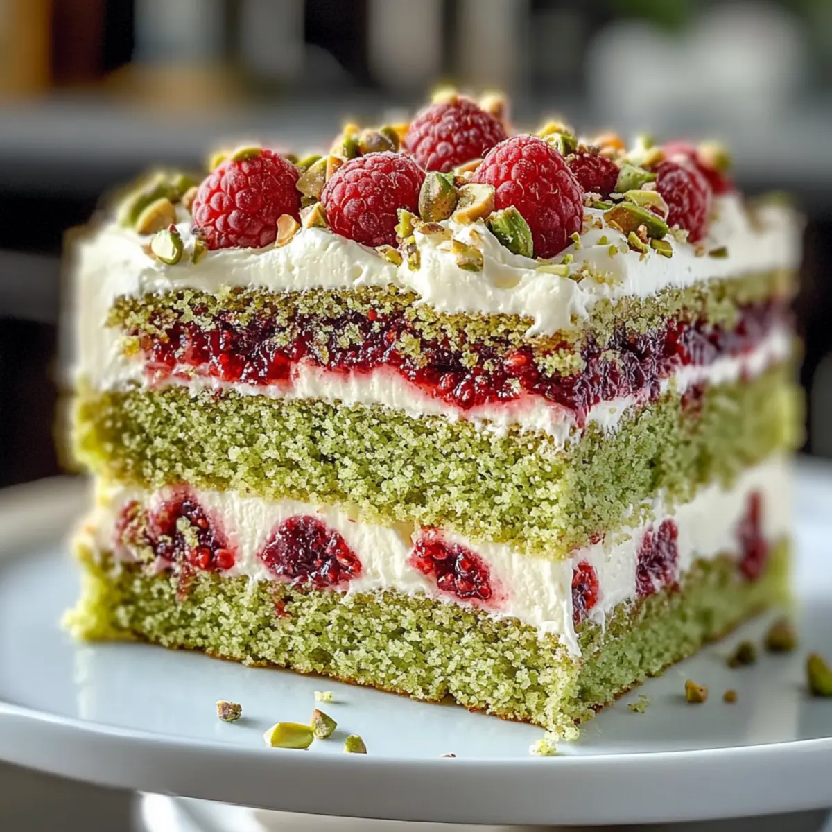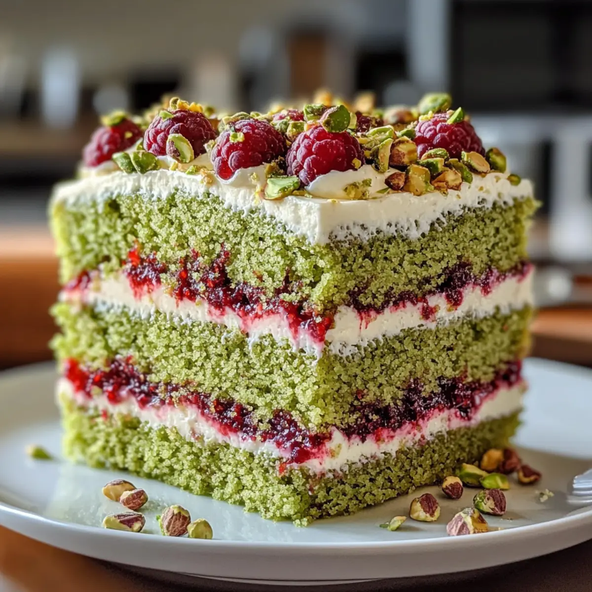 Manchmal kommt eine Geschmackskombination einfach wie ein Sonnenstrahl an einem bewölkten Tag zu mir. Der Himmlische Pistazien-Himbeerkuchen vereint die nussige Fülle von Pistazien mit der spritzigen Süße von Himbeeren und bietet dir ein unwiderstehliches Dessert, das sowohl einfach zuzubereiten als auch beeindruckend aussieht. Er eignet sich perfekt für feierliche Anlässe oder einfach, um sich selbst etwas Gutes zu tun. Jeder Bissen ist saftig und voller Geschmack, was ihn zu einer wunderbaren Wahl für alle, die ihren Gaumen verwöhnen möchten. Egal, ob du ein erfahrener Bäcker oder ein Neuling in der Küche bist, dieses Rezept ist dein neuer bester Freund. Bist du bereit, deinen Gästen den ultimativen Genuss zu servieren? Warum wird dieser Kuchen deine Erwartungen übertreffen? Einzigartiger Geschmack: Die Kombination aus nussigen Pistazien und fruchtigen Himbeeren sorgt für ein Geschmackserlebnis, das du so noch nie gehabt hast. Einfach zuzubereiten: Auch wenn der Kuchen beeindruckend aussieht, erfordert er keine komplizierten Techniken — perfekt für jeden Koch! Saftige Textur: Jeder Bissen ist ein Genuss, mit einer unwiderstehlichen Feuchtigkeit, die das Dessert einfach unwiderstehlich macht. Vielseitig: Du kannst nach Belieben variieren, indem du verschiedene Nüsse oder Beeren verwendest; probiere auch die Kombination in den Hühnchen Congee Rezept für einen neuen Twist! Perfekt für jede Gelegenheit: Ob Geburtstag, Festtagsessen oder einfach als süßer Snack — dieser Kuchen macht immer Eindruck! Lass dich von diesem märchenhaften Rezept verzaubern und überrasche deine Freunde und Familie mit einem einzigartigen Geschmack! Himmlischer Pistazien-Himbeerkuchen Zutaten Für den Kuchen Ungesalzene Pistazien – Fügen eine nussige Note hinzu; können durch gemahlene Mandeln ersetzt werden. Allzweckmehl – Sorgt für die Struktur des Kuchens; glutenfreie Optionen sind nicht angegeben. Backpulver – Macht den Kuchen luftig; sicherstellen, dass es frisch ist für beste Ergebnisse. Salz – Verstärkt die Aromen; wichtig für ein ausgewogenes Geschmacksprofil. Ungesalzene Butter – Verleiht Reichtum und Feuchtigkeit; kann durch pflanzliche Margarine ersetzt werden. Zucker – Süßt den Kuchen; für eine niedrigere glykämische Option einfach Kokoszucker verwenden. Eier – Binden die Zutaten und sorgen für Feuchtigkeit; können durch Leinsamen-Eier für eine vegane Variante ersetzt werden. Vanilleextrakt – Verbessert die Geschmacksnoten; verwende qualitativ hochwertigen Extrakt für optimale Ergebnisse. Mandelessenz – Gibt zusätzliche Geschmackstiefe; kann, wenn gewünscht, weggelassen oder durch mehr Vanille ersetzt werden. Buttermilch – Macht den Kuchen zart und geschmackvoll; kann durch Joghurt oder Milch mit etwas Essig ersetzt werden. Grüne Lebensmittelfarbe – Optional für eine lebendige Optik; bei Bedarf weglassen. Frische oder gefrorene Himbeeren – Sorgen für eine spritzige Frische; gefrorene Beeren sollten vorher aufgetaut werden. Für die Füllung Mascarpone – Eine cremige Komponente, die den Kuchen reichhaltig macht; kann durch weiche Frischkäse ersetzt werden. Puderzucker – Süßt die Füllung; kann durch Honig oder Ahornsirup ersetzt werden (Menge gegebenenfalls anpassen). Schlagsahne – Macht die Füllung leicht und luftig; für eine milchfreie Variante kann Kokos-Schlagsahne verwendet werden. Lass dich von diesen Zutaten inspirieren und kreiere deinen eigenen Himmlischen Pistazien-Himbeerkuchen, der sicherlich alle beeindrucken wird! Schritt-für-Schritt-Anleitung für Himmlischer Pistazien-Himbeerkuchen Step 1: Ofen vorheizen und Backformen vorbereiten Heize deinen Ofen auf 175 °C (350 °F) vor. Bereite zwei runde 20 cm (8 Zoll) Backformen vor, indem du sie gut einfettest und mit Backpapier auslegst. Dies verhindert, dass der Kuchen anhaftet und erleichtert das Herausnehmen nach dem Backen. Step 2: Pistazien mahlen Gib die ungesalzenen Pistazien in eine Küchenmaschine und mahle sie fein. Achte darauf, sie nicht zu lange zu mahlen, damit sie nicht zu einer Paste werden. Die gemahlenen Pistazien verleihen dem Himmlischen Pistazien-Himbeerkuchen eine herrliche nussige Note und Textur. Step 3: Trockene Zutaten mischen In einer großen Schüssel vermischst du das Allzweckmehl, Backpulver, Salz und die gemahlenen Pistazien. Rühre alles gut um, bis die Zutaten gleichmäßig verteilt sind. Diese Mischung sorgt für die Struktur des Kuchens und beeinflusst seine Textur positiv. Step 4: Butter und Zucker aufschlagen In einer anderen großen Schüssel schlägst du die ungesalzene Butter mit dem Zucker hell und luftig auf. Verwende einen Handmixer oder eine Küchenmaschine für etwa 3 bis 5 Minuten. Füge dann die Eier nacheinander hinzu und mixe nach jeder Zugabe gut durch, gefolgt von Vanille- und Mandelessenz. Step 5: Trockene Zutaten und Buttermilch hinzufügen Wechselweise füge die trockenen Zutaten und die Buttermilch zur Buttermischung hinzu. Beginne und ende mit den trockenen Zutaten und mische nur so lange, bis alles gerade eben kombiniert ist. Falls gewünscht, füge ein paar Tropfen grüne Lebensmittelfarbe hinzu, um dem Kuchen ein frisches Aussehen zu verleihen. Step 6: Teig in die Formen füllen und backen Verteile den Teig gleichmäßig in den vorbereiteten Backformen. Schlage die Formen leicht auf die Arbeitsfläche, um Luftblasen zu entfernen. Backe den Kuchen für etwa 25–30 Minuten oder bis ein Zahnstocher in der Mitte sauber herauskommt. Achte darauf, dass der Kuchen leicht golden wird. Step 7: Himbeeren für die Füllung kochen Während der Kuchen backt, bereite die Himbeerfüllung vor. Koche die Himbeeren mit Zucker, Speisestärke, Wasser und Zitronensaft in einem kleinen Topf bei mittlerer Hitze. Rühre häufig, bis die Mischung eindickt. Lass die Füllung anschließend abkühlen. Step 8: Mascarponefüllung zubereiten In einer separaten Schüssel schlägst du die Mascarpone mit Puderzucker und Vanille auf, bis die 