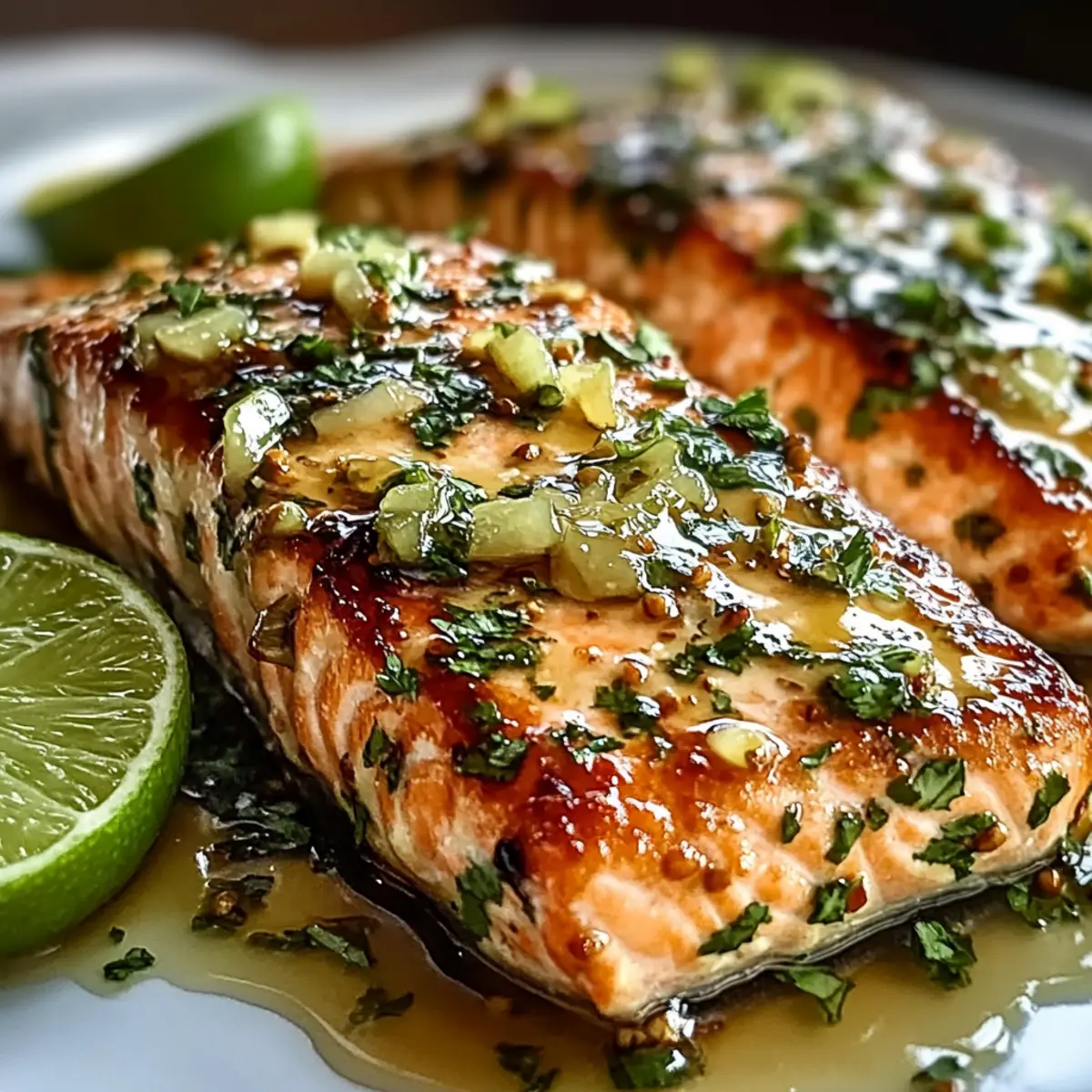 Als ich neulich in meiner Küche stand, bereit für ein schnelles und köstliches Abendessen, fiel mein Blick auf die frischen Lachsfilets im Kühlschrank. Mit der Kombination aus Honig, Limette und Knoblauch wusste ich, dass ich etwas Besonderes kreieren wollte – und so entstand mein Honig-Limetten-Knoblauch-Butter gebackener Lachs. Diese einfache und proteinreiche Gericht vereint die süße des Honigs mit der spritzigen Frische der Limette und dem herzhaften Geschmack des Knoblauchs in einer wunderbar glasierten Variante. Warum soll man sich mit langweiligen Fast-Food-Mahlzeiten zufriedengeben, wenn sich gesunde, geschmackvolle und luxuriöse Dinner-Optionen so schnell zubereiten lassen? Glauben Sie mir, dieser Lachs wird nicht nur Ihren Gaumen erfreuen, sondern auch Ihre Küche in einen einladenden Ort verwandeln. Neugierig, wie einfach Sie dieses geschmackliche Meisterwerk in nur wenigen Minuten zaubern können? Warum lieben Sie Honig-Limetten-Knoblauch-Lachs? Einfachheit: Diese Rezept ist schnell und unkompliziert – in nur 20 Minuten auf dem Tisch! Gesund: Reich an Omega-3-Fettsäuren und hochwertigem Protein ist dieser Lachs nicht nur schmackhaft, sondern auch nährstoffreich. Vielseitig: Kombinieren Sie ihn mit Quinoa oder einem frischen Salat, um ein vollständiges, gesundes Mahl zu kreieren. Aromen: Die harmonische Mischung aus süßem Honig, frischer Limette und herzhaftem Knoblauch sorgt für ein Geschmackserlebnis, das Ihrer Familie und Freunden gefallen wird. Für weitere köstliche Möglichkeiten, werfen Sie einen Blick auf meine Haehnchen Enchiladas Mit oder den Gesunder Avocado Haehnchen – so viele leckere Optionen warten! Honig-Limetten-Knoblauch-Butter gebackener Lachs Zutaten • Verwöhnen Sie sich mit den köstlichen Komponenten! Lachsfilets – Primäre Proteinquelle, zart und flockig; Sie können auch Forelle oder Schwertfisch verwenden. Ungesalzene Butter – Sorgt für Reichhaltigkeit und hilft, eine Glasur zu kreieren; verwenden Sie Olivenöl für eine leichtere Variante. Honig – Süßungsmittel, das die Säure der Limette ausgleicht; für eine vegane Alternative probieren Sie Ahornsirup. Limettensaft – Bringt Säure und Frische; Zitronensaft ist ein guter Ersatz, wenn nötig. Knoblauch – Verleiht herzhaften Geschmack; frischer Knoblauch wird empfohlen, Knoblauchpulver kann im Notfall verwendet werden. Salz und Pfeffer – Verbessern den Gesamtgeschmack; nach Geschmack anpassen. Limettenscheiben – Garnitur und Geschmacksverstärker beim Backen; optional für die visuelle Attraktivität. Frischer Koriander oder Petersilie – Garnitur, die Farbe und Frische hinzufügt. Genießen Sie diesen Honig-Limetten-Knoblauch-Butter gebackenen Lachs, der in jedem Biss eine explodierende Geschmackskombination bietet! Schritt-für-Schritt-Anleitung für Honig-Limetten-Knoblauch-Butter gebackener Lachs Step 1: Ofen vorheizen Heizen Sie den Ofen auf 200 °C (400 °F) vor, um eine gleichmäßige Garung Ihres Honig-Limetten-Knoblauch-Butter gebackenen Lachses zu gewährleisten. Dies ist ein wichtiger Schritt, um eine schöne Kruste und die richtige Textur für den Lachs zu erreichen. Step 2: Backblech vorbereiten Legen Sie ein Backblech mit Aluminiumfolie aus. Dies erleichtert die Reinigung und hilft, den Lachs durch die Dämpfung saftig zu halten. Achten Sie darauf, dass die Folie gut an den Rändern haftet, um das Austreten von Saft zu verhindern. Step 3: Soße mischen In einer Schüssel die geschmolzene Butter, den Honig, den Limettensaft und den gehackten Knoblauch gut vermischen. Rühren Sie, bis alle Zutaten gut miteinander verbunden sind und eine homogene Mischung entsteht. Dies wird die köstliche Glasur für den Lachs sein. Step 4: Lachs würzen Platzieren Sie die Lachsfilets auf dem vorbereiteten Backblech. Bestreuen Sie die Filets großzügig mit Salz und Pfeffer, um den Geschmack zu intensivieren. Diese einfache Würzung lässt die Aromen des Honig-Limetten-Knoblauch-Butter gebackenen Lachses wunderbar zur Geltung kommen. Step 5: Filets glasieren Löffeln Sie die zuvor zubereitete Soße großzügig über jeden Lachsfilet. Achten Sie darauf, dass die gesamte Oberfläche gut bedeckt ist. Legen Sie einige Limettenscheiben auf die Filets, um zusätzlichen Geschmack während des Backens freizusetzen. Step 6: Backen Schieben Sie das Backblech in den vorgeheizten Ofen und backen Sie den Lachs für 15 bis 20 Minuten. Überprüfen Sie den Garzustand nach 15 Minuten; der Lachs sollte leicht flockig sein und sich ganz einfach mit einer Gabel zerteilen lassen. Step 7: Garnieren und servieren Lassen Sie den Lachs nach dem Backen kurz ruhen, damit sich die Aromen setzen können. Garnieren Sie ihn mit frischem Koriander oder Petersilie für einen Farbtupfer und zusätzlichen Geschmack. Servieren Sie Ihren Honig-Limetten-Knoblauch-Butter gebackenen Lachs warm und genießen Sie diesen köstlichen Genuss! Variationen von Honig-Limetten-Knoblauch-Butter gebackenem Lachs Entfalten Sie Ihre Kreativität in der Küche, indem Sie dieser köstlichen Rezeptvariante Ihre persönliche Note verleihen! Würzig: Fügen Sie Chili-Flocken oder scharfe Soße zur Glasur hinzu, um einen feurigen Kick zu erhalten. Ein wenig Schärfe kann die süßen und herzhaften Aromen perfekt ausbalancieren und dem Gericht mehr Tiefe verleihen. Kräuter-Experiment: Ersetzen Sie frischen Koriander durch Dill oder Basilikum für einen ganz anderen Geschmack. Diese frischen Kräuter verleihen Ihrem Lachs eine aromatische Note und runden das Gericht wunderbar ab. Zitronenalternative: Nutzen Sie Zitronensaft anstelle von Limettensaft für eine abweichende Frische, die dennoch köstlich schmeckt. Diese subtile Veränderung sorgt für eine leicht andere, aber ebenso erfrischende Geschmacksexplosion. Grünes Gemüse: Servieren Sie den Lachs auf einem Bett aus sautiertem Spinat oder neben geröstetem Spargel. Diese Beilagen bringen nicht nur Farbe auf den Teller, sondern ergänzen auch die Aromen des Lachses perf