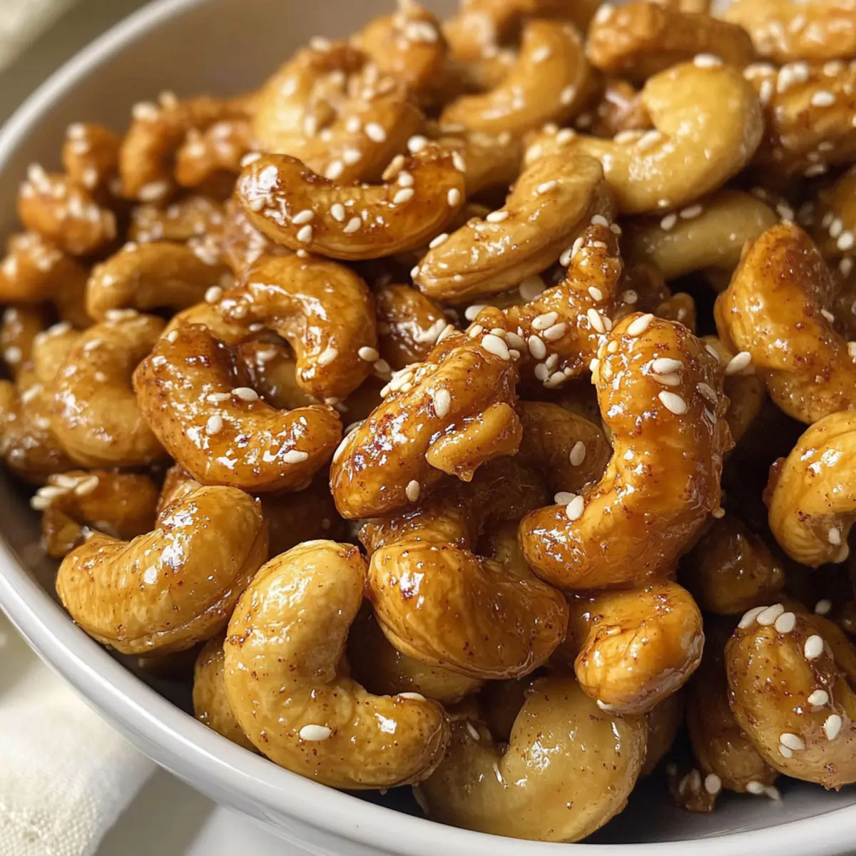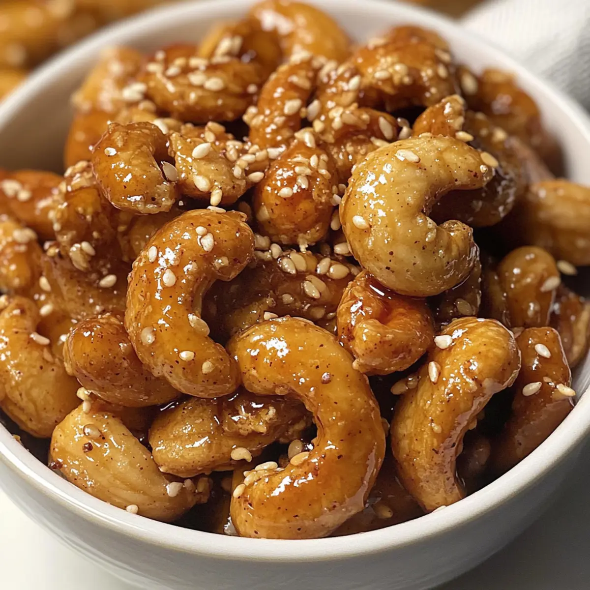 Stell dir vor, du stehst in deiner Küche und der köstliche Duft von frisch gerösteten Cashews erfüllt den Raum. Mit nur wenigen einfachen Zutaten zauberst du in nur 5 Minuten diese unwiderstehlichen Honig-Sesam-Cashews. Dieser Snack vereint die süße Note von Honig mit der herzhaften Röstung von Sesamsamen und einem Hauch von Cayennepfeffer für das gewisse Etwas. Ob für den geselligen Abend mit Freunden oder einfach zum Knabbern zwischendurch – diese glutenfreien Leckerbissen sind nicht nur schnell zubereitet, sondern auch vielseitig einsetzbar, sei es auf einem bunten Salat oder als edles Topping auf deiner nächsten Charcuterie-Platte. Bist du bereit, dein Snackspiel auf das nächste Level zu heben? Warum sind Honig-Sesam-Cashews so unwiderstehlich? Einfachheit pur: In nur 5 Minuten zauberst du diese köstlichen Snacks, die jeder lieben wird. Verführerische Süße: Der süße Honig umhüllt die Cashews und sorgt für ein fantastisches Geschmackserlebnis. Knuspriger Biss: Die gerösteten Sesamsamen verleihen nicht nur einen tollen Crunch, sondern auch eine wunderbar nussige Note. Vielseitig einsetzbar: Ob als Snack für zwischendurch, als knackiger Topping für Salate oder auf deiner nächsten Charcuterie-Platte, diese Cashews passen überall! Gesund und glutenfrei: Ein guilt-free Snack, der nicht nur lecker ist, sondern auch voller Energie steckt. Probiere auch unsere Hahnchen Teriyaki Nudeln für mehr schnelle und köstliche Rezeptideen! Honig-Sesam-Cashews Zutaten Für die Cashews • Honig – sorgt für die perfekte Süße und bindet die Zutaten zusammen; für ein veganes Rezept kannst du auch Ahornsirup verwenden. • Salz – verstärkt den Geschmack und balanciert die Süße; kann für eine reduzierte Natriumaufnahme weggelassen werden. • Cayennepfeffer – verleiht eine leichte Schärfe; je nach Geschmack kannst du ihn weglassen oder die Menge anpassen. • Geröstete Sesamsamen – bringen Knusprigkeit und Nussigkeit; unbedingt vorher rösten, um das Aroma zu intensivieren. • Geröstete Cashews – die Hauptzutat für diesen Snack mit crunchy Textur; kann auch durch Erdnüsse, Mandeln, Walnüsse oder Pekannüsse ersetzt werden. Schritt-für-Schritt-Anleitung für Honig-Sesam-Cashews Step 1: Ofen vorheizen und Backblech vorbereiten Heize den Ofen auf 163°C (325°F) vor und lege ein Backblech mit Backpapier aus. Achte darauf, dass das Backpapier gut haftet, damit die Honig-Sesam-Cashews später nicht ankleben. Während der Ofen vorheizt, kannst du alle Zutaten bereitstellen, damit du in den nächsten Schritten Zeit sparen kannst. Step 2: Zutaten vermengen Gib in einer mittelgroßen Schüssel den Honig, das Salz und den Cayennepfeffer zusammen. Rühre die Mischung gründlich um, bis sich die Inhaltsstoffe gut verbunden haben und der Honig die ganze Schüssel bedeckt. Dies wird die köstliche Basis für deine Honig-Sesam-Cashews bilden. Step 3: Cashews und Sesamsamen hinzufügen Füge nun die gerösteten Sesamsamen und die gerösteten Cashews in die Schüssel mit der Honigmischung hinzu. Rühre kräftig um, bis alle Cashews gleichmäßig mit der klebrigen Mischung umhüllt sind. Achte darauf, dass keine Stellen übersprungen werden, damit die Cashews gleichmäßig süß und geschmackvoll sind. Step 4: Cashews auf das Backblech bringen Verteile die beschichteten Cashews gleichmäßig auf dem vorbereiteten Backblech. Achte darauf, dass sie in einer einzelnen Schicht liegen, um ein gleichmäßiges Backen zu gewährleisten. Es ist wichtig, dass die Cashews nicht übereinander liegen, damit sie schön knusprig werden können. Step 5: Backen und umrühren Schiebe das Backblech in den vorgeheizten Ofen und backe die Cashews für 15-18 Minuten. Rühre sie nach etwa der Hälfte der Backzeit um, damit sie gleichmäßig bräunen. Achte darauf, dass sie goldbraun sind und einen köstlichen Duft verströmen, bevor du sie aus dem Ofen nimmst. Step 6: Abkühlen lassen Lass die Honig-Sesam-Cashews vollständig auf dem Backblech abkühlen, damit sie ihre knusprige Textur bewahren. Das Abkühlen ist entscheidend, da die Zuckermischung aushärtet und eine köstliche, klebrige Kruste bildet. Zerbrich die Cashews nach dem Abkühlen in kleine Cluster und genieße deinen Snack! Aufbewahrungstipps für Honig-Sesam-Cashews Raumtemperatur: Bewahre die Honig-Sesam-Cashews in einem luftdichten Behälter auf, um ihre Knusprigkeit zu bewahren; sie sind bei Raumtemperatur bis zu einer Woche haltbar. Kühlschrank: Wenn du die Cashews länger lagern möchtest, kannst du sie im Kühlschrank aufbewahren; achte darauf, sie gut zu verpacken, um Feuchtigkeit zu vermeiden. Gefrierschrank: Für eine längere Haltbarkeit kannst du die Cashews bis zu drei Monate im Gefrierfach aufbewahren; verpacke sie in einem gefrierfesten Beutel, um Aromaverlust zu verhindern. Wiedereingeben: Um die Cashews nach dem Tod im Kühlschrank oder Gefrierfach wieder aufzufrischen, röste sie kurz in einer Pfanne oder im Ofen bei niedriger Temperatur, bis sie knusprig sind. Was passt zu Honig-Sesam-Cashews? Stelle dir vor, wie die süßen und salzigen Aromen der Honig-Sesam-Cashews perfekt mit anderen Gerichten harmonieren. Frischer grüner Salat: Diese crunchy Cashews verleihen jedem Biss eine nussige Textur und süßen Geschmack, der den frischen Gemüse-Aromen schmeichelt. Quinoasalat: Die Honig-Sesam-Cashews sind eine proteinreiche Ergänzung zu einem bunten Quinoasalat, der die Aromen noch besser zur Geltung bringt. Charcuterie-Platte: Streue sie über eine Auswahl von Wurst und Käse, um eine unerwartete süß-salzige Dimension zu schaffen, die deine Gäste begeistern wird. Asiatische Gemüsepfanne: Das Aroma der Honig-Sesam-Cashews harmoniert großartig mit der Sojasauce und dem gebratenen Gemüse, während sie dem Gericht eine knusprige Note hinzufügen. Verlockende Getränke: Probiere dazu einen aromatischen Grüntee oder einen fruchtigen Eistee, um die Geschmäcker der Cashews aufzufrischen und zu ergänzen. Obstsalat