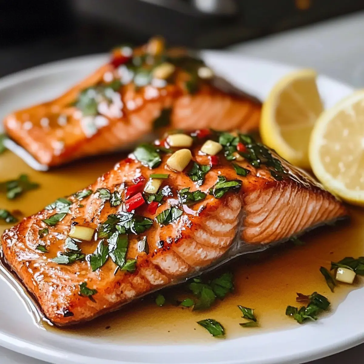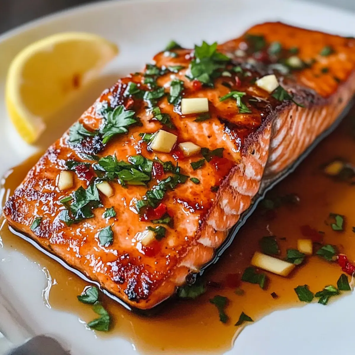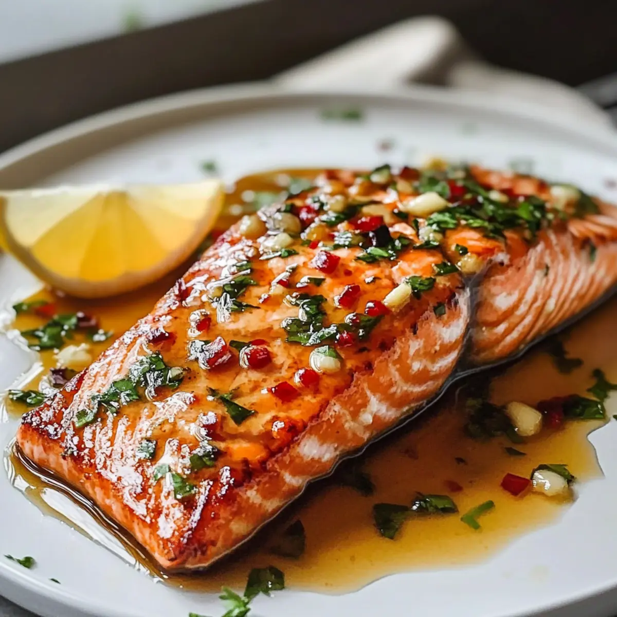 Ein unerwarteter Besuch in meiner Küche führte zur Entdeckung eines ganz besonderen Gerichts: Easy Hot Honey Salmon. Diese Kombination aus süßen, pikanten und herzhaften Aromen entführt mich immer wieder aufs Neue. Der köstliche Hot Honey Glanz karamelisiert perfekt und sorgt nicht nur für ein visuelles Festmahl, sondern auch für einen unvergesslichen Geschmack. Diese einfache und dennoch raffinierte Zubereitung eignet sich nicht nur für entspannte Wochentage, sondern auch für besondere Anlässe mit Freunden und Familie. Wenn du auf der Suche nach einer glutenfreien, low-carb Option bist, die sowohl sättigt als auch verführt, dann ist dieses Rezept genau das Richtige! Hast du schon den perfekten Begleiter im Kopf, um deinen Hot Honey Salmon zu servieren? Warum wirst du dieses Rezept lieben? Einfachheit pur: Die Zubereitung ist mühelos und erfordert lediglich grundlegende Kochkünste, sodass du in kürzester Zeit ein köstliches Gericht zaubern kannst. Reiche Aromen: Der Hot Honey verleiht dem Lachs eine perfekte Balance aus Süße und Schärfe, die deine Geschmacksnerven begeistern wird. Vielseitig einsetzbar: Ob für ein hektisches Wochendinner oder ein festliches Essen mit Freunden, dieser Lachs ist immer eine hervorragende Wahl. Gesund und nahrhaft: Reich an Omega-3-Fettsäuren und glutenfrei, ist dieses Gericht ideal für gesundheitsbewusste Feinschmecker. Beeindruckende Optik: Der glänzende Glanz des Lachses macht ihn zu einem echten Hingucker auf jedem Tisch. Probiere dazu gleich das One Pan Rezept für ein vollständiges Dinner-Erlebnis! Hot Honey Salmon Zutaten • Die perfekte Grundlage für dein Dinner! Für den Lachs Lachsfilets – Reich an Omega-3-Fettsäuren und hochwertigem Protein; frische, hautbelassene Filets sind am besten. Für die Glasur Hot Honey – Bring Süße mit einem würzigen Kick; ersetzbar durch normalen Honig mit etwas zusätzlicher scharfer Soße nach Geschmack. Knoblauch (gehackt) – Verleiht der Glasur ein aromatisches Aroma; frischer Knoblauch hat die beste Wirkung. Zitronensaft – Bietet Säure und Helligkeit, um die Reichhaltigkeit des Lachses auszugleichen; frisch gepresster Saft wird empfohlen. Räucherpaprika – Sorgt für eine geschmackliche Tiefe mit subtiler Rauchnote; kann durch normale Paprika ersetzt werden. Salz und Pfeffer – Verbessert den Gesamtschmack; nach Geschmack anpassen. Ein einfaches, köstliches Rezept, das sowohl als glutenfrei als auch low-carb gilt! Schritt-für-Schritt-Anleitung für Easy Hot Honey Salmon Step 1: Ofen vorheizen Heize deinen Ofen auf 220°C vor und lege ein Backblech mit Backpapier aus. Diese hohe Temperatur sorgt dafür, dass der Hot Honey Glanz perfekt karamellisiert und der Lachs zart und saftig bleibt. Während der Ofen vorheizt, kannst du alle Zutaten bereitlegen, um den Kochprozess zu beschleunigen. Step 2: Glasur vorbereiten Vermische in einer Schüssel den Hot Honey, den gehackten Knoblauch, den Zitronensaft, die Räucherpaprika, Salz und Pfeffer gründlich miteinander. Rühre mit einem Schneebesen, bis alle Zutaten gut vermischt sind und eine homogene Mischung entsteht. Der scharfe Duft des Knoblauchs wird wunderbar deine Küche durchziehen und verspricht ein köstliches Ergebnis. Step 3: Glasur auftragen Lege die Lachsfilets auf das vorbereitete Backblech und benutze einen Pinsel, um die Hot Honey Mischung großzügig auf den Filets zu verteilen. Achte darauf, die Filets gleichmäßig zu bestreichen, um jedem Bissen Intensität und Geschmack zu verleihen. Das sichtbare Glänzen der Glasur wird dein Auge erfreuen und Appetit auf den Hot Honey Salmon machen. Step 4: Backen Schiebe das Backblech in den vorgeheizten Ofen und backe den Lachs für 15 bis 20 Minuten. Achte darauf, den Lachs zu beobachten; er ist fertig, wenn er leicht mit einer Gabel zerfällt und die Glasur eine wunderschöne, karamellisierte Farbe annimmt. Die Kombination aus Duft und Aussehen wird dich überzeugen, dass der Hot Honey Salmon fast fertig ist. Step 5: Ruhen lassen und servieren Nimm das Backblech aus dem Ofen und lasse den Lachs einige Minuten ruhen, bevor du ihn servierst. Diese kurze Ruhezeit lässt die Aromen in den Lachs eindringen und sorgt für eine bessere Textur. Richte den Hot Honey Salmon dann auf einem schönen Teller an und genieße ihn mit einer Beilage deiner Wahl. Meal Prep für deinen Hot Honey Salmon Diese Zubereitung des Hot Honey Salmon ist perfekt für die Wochenplanung und spart dir wertvolle Zeit! Du kannst die Glasur (Hot Honey, Knoblauch, Zitronensaft, Räucherpaprika, Salz und Pfeffer) bis zu 24 Stunden im Voraus vorbereiten und im Kühlschrank aufbewahren – somit bleiben die Aromen frisch und intensiv. Auch die Lachsfilets kannst du marinieren und bis zu 3 Tage im Voraus einlegen; das verhindert, dass sie trocken werden oder ihren Geschmack verlieren. Wenn du bereit bist, den Lachs zu garen, heize einfach den Ofen vor, bestreiche die Filets mit der Glasur und backe sie für 15 bis 20 Minuten. So erhältst du im Handumdrehen ein Gericht, das sowohl köstlich als auch zeitsparend ist! Expertentipps für Hot Honey Salmon Richtig vorheizen: Stelle sicher, dass dein Ofen vollständig vorgeheizt ist, um eine gleichmäßige Garung und optimale Karamellisierung der Glasur zu erreichen. Kochzeit im Blick: Überbacke den Lachs nicht; er sollte leicht zerfallen, aber trotzdem saftig sein. Nutze ein Fleischthermometer, um auf 62°C zu prüfen. Glasur schützen: Wenn die Glasur zu schnell bräunt, senke die Ofentemperatur leicht oder decke den Lachs während des Backens mit Folie ab, um Verbrennungen zu vermeiden. Frische Zutaten: Verwende frischen Knoblauch und frisch gepressten Zitronensaft für das beste Aroma und Geschmack in deinem Hot Honey Salmon. Variiere die Beilagen: Überlege dir, den Lachs mit belebendem Gemüse oder einem gesunden Reisgericht zu kombinieren, um die Aromen zu ergänzen. Was passt zu Easy Hot Honey Salmon? Ein köstliches Gericht wie dieser Hot Honey Salmon verdi
