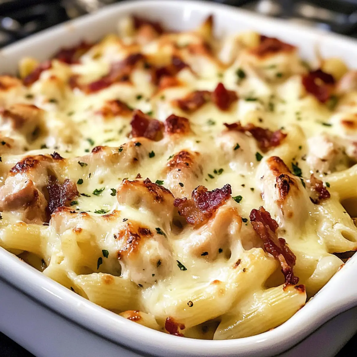 Hunger kann manchmal unerwartet aufkommen, besonders nach einem langen Tag. Plötzlich läuft einem das Wasser im Mund zusammen, wenn ich an meinen ultimativen Hühnchen Ranch Nudelauflauf denke. Diese köstliche Kombination aus zartem Hähnchen, krossem Speck und einer cremigen Ranch-Soße umhüllt perfekt gegarte Penne-Nudeln. Dieses Rezept ist nicht nur schnell zubereitet, sondern auch ein echter Hit bei der ganzen Familie – ideal für stressige Wochentage, wenn die Zeit knapp ist. Die cremige Konsistenz und die herzhaften Aromen machen jeden Bissen zu einem Genuss, der sowohl Kinder als auch Erwachsene erfreut. Seid ihr bereit, eure Küche in ein wahres Pasta-Paradies zu verwandeln? Warum werden Sie dieses Rezept lieben? Einfachheit: Der Prozess ist unkompliziert und erfordert nur grundlegende Kochkenntnisse. Jeder Schritt ist klar beschrieben, sodass auch Kochanfänger schnell ans Ziel kommen. Reiche Aromen: Die Kombination von zartem Hähnchen, knusprigem Speck und der cremigen Ranch-Soße sorgt für einen kräftigen Geschmack, der Ihre Geschmacksknospen verwöhnt. Familienfreundlich: Dieses Rezept ist ein echter Hit für die ganze Familie, ideal, um auch die wählerischen Esser unter uns zu überzeugen. Vielfältig: Passen Sie das Rezept an, indem Sie Gemüse wie Brokkoli oder Spinat hinzufügen, um die Nährstoffe zu erhöhen und die Farben zu intensivieren. Zeitsparend: In weniger als einer Stunde können Sie ein köstliches Abendessen zubereiten, das sowohl sättigt als auch mit einem hohen Komfortfaktor punktet. Perfekt für Geselligkeit: Ob bei einem Familienessen oder einem geselligen Abend mit Freunden, dieser Hühnchen Ranch Nudelauflauf wird mit Sicherheit für Begeisterung sorgen. Hühnchen Ranch Nudelauflauf Zutaten • Hier sind die Zutaten, die Sie benötigen, um diesen köstlichen Hühnchen Ranch Nudelauflauf zuzubereiten: Für die Nudeln Getrocknete Penne-Nudeln – Ihre Hauptquelle für Kohlenhydrate. Ersetzen Sie sie durch jede andere Pastaform, die Ihnen gefällt. Für das Hähnchen Entbeinte, hautlose Hähnchenbrust – Liefert wertvolles Eiweiß. Sie können auch bereits gebratenes Hähnchen verwenden, um Zeit zu sparen. Für die Ranch-Soße Ranch-Gewürz-/Dressing-Mischung – Verleiht dem Gericht Geschmack. Verwenden Sie selbstgemachtes Ranch-Gewürz, wenn Sie es bevorzugen. Gesalzene Butter – Sorgt für eine cremige Konsistenz. Ungesalzene Butter kann verwendet werden, wenn Sie auf Natrium achten. Gehackter Knoblauch – Fügt Aroma und herzhaften Geschmack hinzu. Frischer Knoblauch ist am besten für den optimalen Geschmack. Schlagsahne – Macht die Soße cremig. Sie können sie durch Halb-und-Halb ersetzen, um eine leichtere Variante zu erhalten. Frisch geriebener Parmesan – Intensiviert den Geschmack und verdickt die Soße. Geriebener oder geschredderter Käse funktioniert ebenfalls gut. Schwarzer Pfeffer – Zum Würzen. Nach Geschmack anpassen. Für das Topping Geriebener Mozzarella-Käse – Sorgt für eine schön schmelzende Kruste. Sie können jede schmelzende Käseart verwenden. Gekochter Speck – Bringt Knusprigkeit und zusätzlichen Geschmack. Verwenden Sie Soja- oder Truthahn-Speck für eine leichtere Option. Frisch gehackte Petersilie – Optional als Garnitur für Frische. Step-by-Step Instructions for Hühnchen Ranch Nudelauflauf Step 1: Nudeln kochen Bringen Sie einen großen Topf mit gesalzenem Wasser zum Kochen. Fügen Sie die Penne-Nudeln hinzu und kochen Sie sie gemäß den Anweisungen auf der Verpackung, bis sie al dente sind. Dies dauert in der Regel etwa 9-11 Minuten. Gießen Sie die Nudeln anschließend in ein Sieb, um das Wasser abzulassen, und stellen Sie sie beiseite. Step 2: Hähnchen vorbereiten Würzen Sie die entbeinte, hautlose Hähnchenbrust großzügig mit der Ranch-Gewürzmischung. Erhitzen Sie eine beschichtete Pfanne bei mittlerer Hitze und geben Sie das gewürzte Hähnchen hinein. Braten Sie das Hähnchen 10-12 Minuten lang, bis es durchgegart ist und eine goldene Kruste hat. Nach dem Garen das Hähnchen auf einen Teller legen und abgedeckt ruhen lassen. Step 3: Ranch-Soße zubereiten Nehmen Sie die gleiche Pfanne und schmelzen Sie bei mittlerer Hitze die gesalzene Butter. Fügen Sie den gehackten Knoblauch hinzu und sautieren Sie ihn etwa 1 Minute lang, bis er duftet. Streuen Sie die Ranch-Gewürzmischung und das Mehl hinein und rühren Sie die Mischung 30 Sekunden lang, während Sie stetig weiter rühren. Fügen Sie langsam die Schlagsahne hinzu und bringen Sie die Soße zum Kochen. Vom Herd nehmen, den Parmesan einrühren und mit schwarzem Pfeffer abschmecken. Step 4: Zutaten kombinieren Geben Sie die gekochten Penne-Nudeln und das in Stücke geschnittene Hähnchen zurück in die Pfanne mit der Ranch-Soße. Rühren Sie alles gut um, damit die Nudeln und das Hähnchen gleichmäßig mit der cremigen Soße umhüllt werden. Achten Sie darauf, dass jede Nudel mit der köstlichen Ranch-Soße bedeckt ist. Step 5: Backen Heizen Sie den Ofen auf 190 °C vor und fetten Sie eine 9 x 13 Zoll große Auflaufform ein. Geben Sie die Mischung aus Hühnchen und Nudeln gleichmäßig in die Auflaufform. Bestreuen Sie die Oberfläche mit geriebenem Mozzarella-Käse und dem gekochten Speck. Backen Sie den Auflauf 20 Minuten lang, bis der Käse geschmolzen und sprudelnd ist. Lassen Sie das Gericht 5-10 Minuten abkühlen, bevor Sie es servieren. Garnieren Sie nach Wunsch mit frisch gehackter Petersilie. Lagerungstipps für Hühnchen Ranch Nudelauflauf Zimmertemperatur: Lassen Sie den Auflauf nicht länger als 2 Stunden bei Zimmertemperatur stehen, um eine optimale Frische zu gewährleisten. Kühlschrank: Bewahren Sie Reste in einem luftdichten Behälter im Kühlschrank auf, wo sie bis zu 3 Tage frisch bleiben. Gefrierschrank: Für längere Lagerung können Sie den Auflauf portionsweise in gefriergeeigneten Behältern für bis zu 3 Monate einfrieren. Denken Sie daran, ihn gut abgedeckt zu lagern, um Gefrierbrand zu vermeiden. Aufwärm