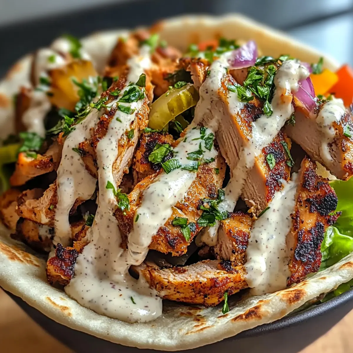 • Pita-Brot: Weiche Pita-Taschen sind ideal, um die zarten Hühnchenstreifen und die aromatische Knoblauchsauce zu umarmen.