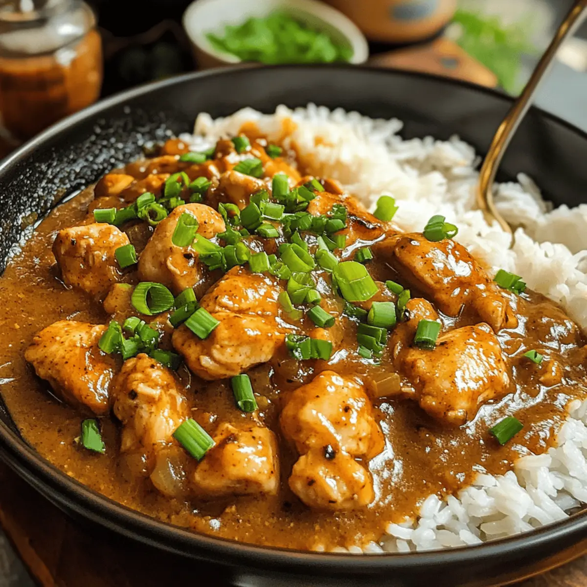 Die Aromen von Louisiana haben eine bemerkenswerte Fähigkeit, einen direkt in ihren Bann zu ziehen. Wenn ich in der Küche stehe und die Zutaten für mein Classic Chicken Étouffée bereitstelle, kann ich kaum widerstehen, mir vorzustellen, wie das Gericht die Herzen und Mägen meiner Familie begeistert. Mit zarten Hähnchenschenkeln in einer cremigen, schmackhaften Soße, die mit der Cajun-heiligen Dreifaltigkeit zusammenkommt, zaubert dieses Rezept nicht nur ein herzhaftes Hauptgericht, sondern ist auch ein echtes Wohlfühlessen. Die einfache Zubereitung und die Möglichkeit, die Reste problemlos einzufrieren, machen es zum perfekten Gericht für geschäftige Wochentage. Neugierig, wie Sie dieses Stück Louisiana-Küche selbst erleben können? Warum lieben Sie dieses Rezept? Herzhaft und Befriedigend: Hühnchen Étouffée ist das perfekte Gericht, um sich nach einem langen Tag zu entspannen. Einfache Zubereitung: Mit nur wenigen grundlegenden Zutaten und ein bisschen Geduld können Sie ein fantastisches Abendessen zaubern. Vielfältig: Passen Sie das Rezept an, indem Sie shrimp oder crawfish verwenden – es bleibt immer ein Genuss! Aromatische Geschmackskombination: Die Cajun-heilige Dreifaltigkeit bringt einen unvergesslichen Geschmack mit sich, der Ihre Geschmacksnerven verwöhnt. Ideal für Reste: Wenn Sie etwas übrig haben, lässt sich das Gericht wunderbar einfrieren, perfekt für später! Genießen Sie dazu eine Scheibe knuspriges französisches Brot oder probieren Sie unser Hähnchen Ramen Pfanne für ein weiteres köstliches Erlebnis. Hühnchen Étouffée Zutaten Hinweis: Diese Zutatenliste wird Ihnen helfen, das perfekte Hühnchen Étouffée zu kreieren! Für die Basis Boneless Chicken Thighs – Hauptprotein; sorgt für Reichhaltigkeit. Ersetzen Sie sie durch knochenlose Schenkel für mehr Geschmack oder Hähnchenbrust für eine magere Option. Cajun Seasoning – Fügt Würze und Tiefe hinzu. Stellen Sie Ihre eigene Mischung her oder passen Sie sie mit handelsüblichem Geschmack an. Avocado Oil – Zum Anbraten des Huhns; kann durch Pflanzenöl ersetzt werden. Unsalted Butter – Unentbehrlich für die Roux; sorgt für zusätzliche Reichhaltigkeit. All-Purpose Flour – Verdickt die Sauce; notwendig für die Roux. Für das Aromatische Onion – Grundaroma; sorgt für eine süße Grundlage. Green Bell Pepper – Ein weiterer Bestandteil der “heiligen Dreifaltigkeit”; bringt Frische ins Spiel. Red Bell Pepper – Verleiht eine schöne Süße und Farbe; ersetzen Sie durch mehr grüne Paprika, wenn gewünscht. Celery – Für Textur und Geschmack; unbezahlbar in der Kombination. Green Onions – Zum Garnieren und für zusätzlichen Geschmack; können durch Schnittlauch ersetzt werden. Garlic – Fügt Tiefe hinzu; erhöht die Geschmacksvielfalt. Für die Sauce Chicken Broth – Grundbestandteil der Sauce; vor der Verwendung erwärmen. Verwenden Sie Gemüsebrühe für eine leichtere Version. Browning Sauce – Vertieft die Farbe und das Geschmacksprofil; verwenden Sie Kitchen Bouquet oder andere Marken bei Bedarf. Parsley Leaves – Für Frische; tauschen Sie sie gegen Thymian oder Koriander aus, wenn gewünscht. Für das Servieren Cooked White Rice – Dient als Basis für das Étouffée; überlegen Sie, es durch braunen Reis zu ersetzen. Schritt-für-Schritt-Anleitung für klassisches Hühnchen Étouffée Step 1: Vorbereiten Zuerst schneiden Sie die Zwiebeln, die Paprika (sowohl grün als auch rot), den Sellerie, die Frühlingszwiebeln und die Petersilie in kleine Stücke. Hacken Sie den Knoblauch fein. Dann würzen Sie die entbeinten Hähnchenschenkel großzügig mit Cajun-Gewürz, um die Aromen zu intensivieren und eine solide Geschmacksbasis für Ihr klassisches Hühnchen Étouffée zu schaffen. Step 2: Hähnchen anbraten Erhitzen Sie eine große Pfanne auf mittelhoher Stufe und geben Sie etwas Avocadoöl dazu. Wenn das Öl heiß ist, legen Sie die gewürzten Hähnchenschenkel hinein und braten Sie sie etwa 3-5 Minuten pro Seite an, bis sie goldbraun sind. Dies gibt dem Fleisch eine schöne Kruste und verstärkt den Geschmack. Nehmen Sie das Hähnchen aus der Pfanne und legen Sie es beiseite. Step 3: Roux zubereiten Reduzieren Sie die Hitze auf mittlere Stufe und lassen Sie die Pfanne leicht abkühlen. Fügen Sie die ungesalzene Butter hinzu und lassen Sie sie schmelzen. Sobald die Butter geschmolzen ist, streuen Sie das Allzweckmehl hinein und rühren mit einem Schneebesen um, bis die Mischung eine schöne, mittlere braune Farbe annimmt. Dies dauert etwa 10-15 Minuten. Achten Sie darauf, ständig zu rühren, um ein Anbrennen zu vermeiden. Step 4: Gemüse anbraten Geben Sie die gehackten Zwiebeln, die grünen und die roten Paprika sowie den Sellerie in die Roux. Braten Sie die Mischung unter gelegentlichem Rühren etwa 10 Minuten lang an, bis das Gemüse weich wird. Fügen Sie anschließend den Knoblauch hinzu und rühren Sie ihn eine weitere Minute kräftig um, um den vollmundigen Geschmack freizusetzen. Step 5: Köcheln lassen Reduzieren Sie die Hitze auf niedrig und gießen Sie nach und nach die vorgewärmte Hühnerbrühe in die Pfanne, während Sie ständig rühren. Achten Sie darauf, dass keine Klumpen entstehen. Fügen Sie die Browning-Sauce hinzu, um den Geschmack zu vertiefen, und legen Sie das angebratene Hähnchen zurück in die Pfanne. Lassen Sie alles etwa 30 Minuten lang bei schwacher Hitze köcheln, bis die Sauce dickflüssig wird und das Hähnchen durchgegart ist. Step 6: Fertigstellen Nehmen Sie die Hähnchenschenkel aus der Pfanne und schneiden Sie sie in mundgerechte Stücke. Geben Sie das Hähnchen zurück in die Pfanne und rühren Sie die gehackte Petersilie unter die Mischung. Schmecken Sie die Soße ab und passen Sie sie nach Belieben mit mehr Cajun-Gewürz an, um die Geschmacksintensität zu optimieren. Step 7: Servieren Servieren Sie das klassische Hühnchen Étouffée großzügig über einer Portion frisch gekochtem weißen Reis. Garnieren Sie 