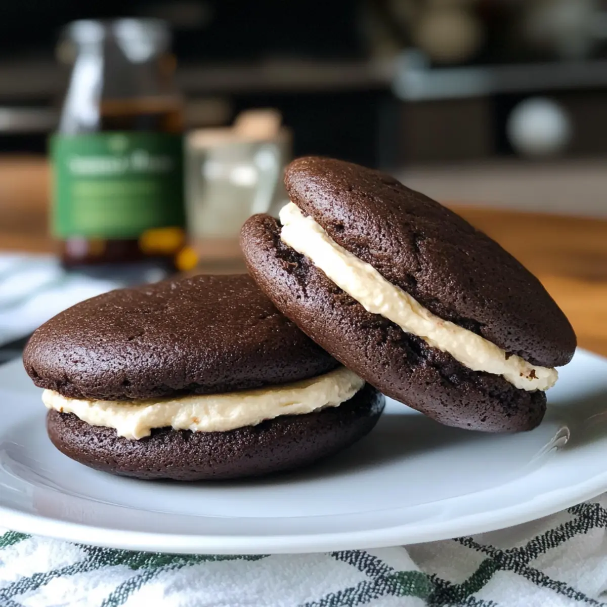 In einem gemütlichen Café in Dublin, während der Duft von frisch gebrühtem Kaffee durch die Luft schwebt, habe ich die Idee für die perfekten Schokoladenkaffee-Whoopie-Pies geboren. Diese köstlichen Leckerbissen verbinden den vollmundigen Geschmack von Kaffee mit einer Prise Whiskey und zaubern ein Stück Irland auf deinen Tisch. Mit einem schnellen Zubereitungsprozess und dem Wow-Faktor, den sie bei jedem festlichen Anlass bringen, sind diese Whoopie-Pies nicht nur ein Genuss für den Gaumen, sondern auch ein echter Hingucker. Ihre weichen, schokoladigen Kekse umhüllen eine cremige Whiskey-Buttercreme, die das Gefühl von Gemütlichkeit und Freude perfekt einfängt. Bereit, deine Gäste oder dich selbst mit dieser süßen Köstlichkeit zu verwöhnen? Lass uns gleich loslegen! Warum sind Schokoladenkaffee-Whoopie-Pies unwiderstehlich? Genussvolle Kombination: Diese Whoopie-Pies vereinen den intensiven Geschmack von Kaffee und Whiskey in jedem Bissen. Einfach zubereitet: Mit einem unkomplizierten Rezept wird das Backen zu einem wahren Vergnügen! Beeindruckende Präsentation: Ihre charmante Form und Füllung sind der perfekte Hingucker für jede Feier. Vielseitig einsetzbar: Sie passen hervorragend zu Kaffee, Dessertwein oder sogar einer Tasse Irish Cream Liqueur. Vorbereitung leicht gemacht: Du kannst die Kekse im Voraus backen und die Füllung kurz vor dem Servieren hinzufügen – ideal für spontane Gäste! Schokoladenkaffee-Whoopie-Pie Zutaten Hinweis: Diese Zutaten verleihen deinen Schokoladenkaffee-Whoopie-Pies den ultimativen Genuss! Für den Teig: Allzweckmehl – sorgt für Struktur und Textur; für eine glutenfreie Variante kannst du glutenfreies Mehl verwenden. Salz – hebt den Geschmack hervor; für einen subtileren Unterschied verwende Meersalz. Backpulver – als Treibmittel für einen leichten Keks; achte darauf, dass es frisch ist. Backnatron – unterstützt das Backpulver bei der Lockerung; kontrolliere das Haltbarkeitsdatum. Dunkles ungesüßtes Kakaopulver – bringt Schokoladengeschmack und Farbe; Valrhona ist empfohlen für mehr Tiefe. Instant-Espressopulver – verstärkt den Kaffeegeschmack; kann bei Bedarf durch andere Instantkaffees ersetzt werden. Kalte Brew oder starker Kaffee – verleiht kräftiges Kaffeearoma; bei Bedarf kann auch normaler Kaffee verwendet werden. Abgekochtes Wasser – hydratisiert die trockenen Zutaten und aktiviert den Kakao; ersetze es durch heißen Kaffee für mehr Geschmack. Hellbrauner Zucker – sorgt für Feuchtigkeit und Süße; kann durch weißen Zucker für einen milderen Geschmack ersetzt werden. Rapsöl – bewahrt die Feuchtigkeit der Kekse; kann durch Pflanzen- oder geschmolzenes Kokosöl ersetzt werden. Ei – bindet die Zutaten und bringt Feuchtigkeit; für eine vegane Option kann ein Flax-Ei verwendet werden. Reines Vanilleextrakt – fügt Aroma und Süße hinzu; achte darauf, dass es rein ist für den besten Geschmack. Buttermilch (Zimmertemperatur) – sorgt für Zartheit und Geschmack; kann durch Milch mit Zitronensaft oder Essig für selbstgemachte Buttermilch ersetzt werden. Für die Whiskey-Buttercreme-Füllung: Butter (Zimmertemperatur) – sorgt für eine cremige Textur; unsalze Butter gibt dir mehr Kontrolle über die Aromen. Puderzucker – süßt und verdickt die Füllung; zur optimalen Textur vorher sieben. Irischer Whiskey – verleiht der Füllung Tiefe und Geschmack; jeder bevorzugte irische Whiskey kann verwendet werden. Reines Vanilleextrakt – verstärkt den Geschmack; nach Bedarf verwenden, um das ausgewogene Aroma zu erreichen. Schritt-für-Schritt-Anleitung für Schokoladenkaffee-Whoopie-Pies Step 1: Ofen vorheizen Heize deinen Ofen auf 175°C (350°F) vor und lege Backbleche mit Backpapier oder Silpat aus, um ein Ankleben der Kekse zu verhindern. Achte darauf, dass der Ofen vollständig vorgeheizt ist, bevor du die Schokoladenkaffee-Whoopie-Pies backst, um die bestmögliche Konsistenz zu erreichen. Step 2: Trockene Zutaten mischen In einer großen Schüssel vermenge das Allzweckmehl, Salz, Backpulver und Backnatron gründlich miteinander. Diese Kombination sorgt für die Struktur deiner Whoopie-Pies. Mische alles gut durch, damit sich die Zutaten gleichmäßig verteilen und die Kekse perfekt aufgehen. Step 3: Kaffee-Mischung zubereiten In einer separaten Schüssel mische das Kakaopulver und das Instant-Espressopulver. Gieße dann die kalte Brew oder den starken Kaffee und das abgekochte Wasser schrittweise hinein, während du kräftig rührst, bis alles gut aufgelöst ist. Der kräftige Kaffeegeschmack wird die Grundlage für die Schokoladenkaffee-Whoopie-Pies bilden. Step 4: Feuchte Zutaten kombinieren In einer anderen Schüssel vermenge den hellbraunen Zucker und das Rapsöl, bis sie gut verbunden sind. Füge die Kaffee-Mischung, das Ei, das Vanilleextrakt und die Buttermilch hinzu und rühre alles, bis die Mischung glatt und cremig ist. Diese Grundlage gibt den Keksen ihre Feuchtigkeit und den vollen Geschmack. Step 5: Teig zusammenführen Füge die trockenen Zutaten nach und nach zur feuchten Mischung hinzu. Rühre vorsichtig, bis alles gerade so kombiniert ist – vermeide es, den Teig zu übermixen, um zarte Schokoladenkaffee-Whoopie-Pies zu erhalten. Die Mischung sollte noch leicht klumpig sein, was dir hilft, die perfekte Textur zu erzielen. Step 6: Kekse portionieren Verwende einen Esslöffel oder einen Eisportionierer, um großzügige Portionen des Keksteigs auf die vorbereiteten Backbleche zu setzen. Lass dabei einen Abstand von etwa 2,5 cm zwischen den Portionen, damit die Kekse beim Backen ausreichend Platz haben, um aufzugehen und sich auszubreiten. Step 7: Backen Backe die Whoopie-Pies im vorgeheizten Ofen für 10-15 Minuten, bis die Oberflächen rissig aussehen und ein Zahnstocher sauber herauskommt. Die Kekse sollten fest, aber noch leicht weich sein, um die perfekte Konsistenz für die späteren Sandwiches zu gewährleisten. Step 8: Auskühlen lassen Nimm die Backbleche au
