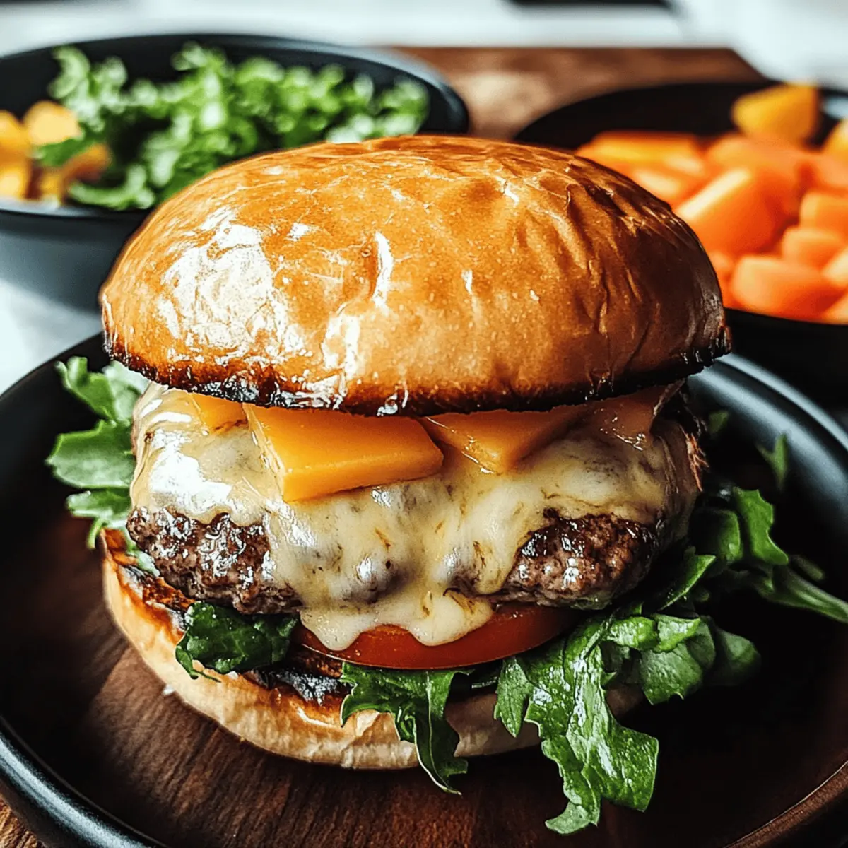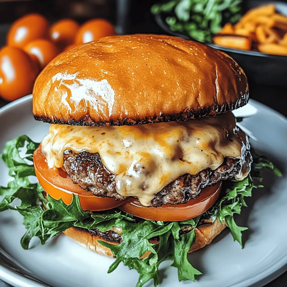 Beim Zubereiten dieser Irish Pub Burgers fühlte ich mich wie in einer gemütlichen Pinte in Dublin, umgeben von herzlichem Lachen und dem Duft von frisch gegrilltem Fleisch. Diese saftigen Burger, durchtränkt mit der malzigen Tiefe von Irish Stout, sind nicht nur einfach zuzubereiten, sondern auch ein echtes Geschmackserlebnis. Mit einer cremigen Schicht irischem Cheddar, die verführerisch auf dem heißen Patty schmilzt, und perfekt gerösteten Brötchen genießen Sie eine schöne Kombination aus knusprigen und weichen Texturen – und das alles in weniger als 30 Minuten. Egal, ob Sie Gäste beeindrucken oder einfach nur eine schnelle, aber schmackhafte Mahlzeit genießen möchten, diese Burger sind eine hervorragende Wahl. Welche anderen köstlichen Toppings würden Ihre perfekte Burger-Kreation abrunden? Warum werden Sie dieses Rezept lieben? Einfachheit: Die Zubereitung des Irish Pub Burgers erfordert nur grundlegende Kochkenntnisse und ist in weniger als 30 Minuten möglich. Reichhaltiger Geschmack: Die Kombination aus Irish Stout und würzigem Cheddar liefert ein unverwechselbares Geschmackserlebnis, das jeden Bissen aufregend macht. Vielseitigkeit: Passen Sie Ihren Burger ganz nach Ihrem Geschmack an! Fügen Sie frisches Gemüse oder unterschiedliche Käsesorten wie Gouda hinzu, je nach Vorliebe. Klassischer Charme: Dieser Burger bringt das pubartige Ambiente direkt in Ihre Küche und sorgt für ein geselliges Ess-Erlebnis. Für einen erfrischenden Nachtisch könnten Sie auch unser Mango Sago Rezept ausprobieren. Crowd-Pleaser: Ob bei einem Familienessen oder einem Grillfest mit Freunden – diese saftigen Burger kommen bei jedem gut an! Irish Pub Burger Zutaten Für die Patties: • Rinderhackfleisch – sorgt für das Hauptprotein; verwenden Sie 80/20 für saftige Patties. • Irish Stout Bier – verleiht dem Fleisch Geschmack und Feuchtigkeit; ersetzen Sie es durch braunes Bier oder Porter für ähnliche Noten. • Worcestershiresauce – fügt Umami und Tiefe hinzu; kann durch Sojasauce oder eine Mischung aus Soja und Essig ersetzt werden. • Knoblauchpulver – intensiviert das Geschmacksprofil; frischer Knoblauch kann für einen schärferen Geschmack verwendet werden. • Zwiebelpulver – bringt Süße und Tiefe; kann durch fein gehackte frische Zwiebeln ersetzt werden. • Salz & Pfeffer – essentielle Gewürze zur Verbesserung des Gesamtschmacks. Für den Käse und die Brötchen: • Irischer Cheddar – sorgt für reichhaltige Cremigkeit beim Schmelzen; kann durch einen anderen scharfen Käse ersetzt werden, wenn nicht verfügbar. • Hamburgerbrötchen – halten alle Burger-Komponenten zusammen; sollten für einen Texturkontrast geröstet werden. Brioche oder Vollkorn können als Alternativen verwendet werden. Optionale Toppings: • Salat – fügt Frische hinzu; verwenden Sie Römersalat oder Kopfsalat für den besten Crunch. • Tomate – bringt saftige Süße; wählen Sie reife, feste Tomaten. • Zwiebel – verstärkt den Geschmack; rote Zwiebeln sind milder und süßer. • Essiggurken – sorgen für Knackigkeit; der ideale Kontrast zu den salzigen und cremigen Aromen. • Senf oder Mayonnaise – zur individuellen Geschmacksanpassung hinzufügen; nehmen Sie Ihre Lieblingssorte. Genießen Sie das Kochen Ihres einzigartigen Irish Pub Burgers! Step-by-Step Instructions für Irish Pub Burger mit cremigem Irish Cheddar Step 1: Zutaten vermengen In einer großen Rührschüssel kombinieren Sie das Rinderhackfleisch mit dem Irish Stout, der Worcestershiresauce, dem Knoblauchpulver, dem Zwiebelpulver, Salz und Pfeffer. Achten Sie darauf, alle Zutaten sanft zu vermischen, um die Textur des Fleisches zu bewahren. Dieser erste Schritt sorgt dafür, dass alle Aromen gut in die Patties eindringen und verbessert den Geschmack Ihres Irish Pub Burgers. Step 2: Patties formen Teilen Sie die Mischung in vier gleich große Portionen auf und formen Sie aus jeder Portion einen etwa 1,5 cm dicken Patty. Drücken Sie dabei eine leichte Vertiefung in die Mitte jedes Pattys, damit sie beim Grillen gleichmäßig durchgaren. Diese Patties sind das Herzstück Ihres Gerichts und stellen sicher, dass die Aromen perfekt zur Geltung kommen. Step 3: Grill oder Pfanne erhitzen Heizen Sie Ihren Grill oder eine Pfanne auf mittelhohe Hitze vor (ca. 200 °C). Sobald die Temperatur erreicht ist, legen Sie die Patties vorsichtig auf die Grillfläche oder in die Pfanne. Lassen Sie sie für etwa 4-5 Minuten braten, bis sie eine schöne, goldbraune Kruste bilden, bevor Sie sie drehen. Achten Sie darauf, die Patties nicht zu häufig zu wenden, um ihre saftige Textur zu erhalten. Step 4: Käse hinzufügen Wenden Sie die Patties nach 4-5 Minuten, sodass sie gleichmäßig garen. In der letzten Minute des Garens legen Sie eine Scheibe irischen Cheddar auf jeden Patty und decken Sie die Pfanne oder den Grill ab, um den Käse zum Schmelzen zu bringen. Dies verleiht dem Burger eine cremige, köstliche Note und intensifiziert den Geschmack des Irish Pub Burgers. Step 5: Brötchen rösten Während die Patties fertig garen, buttern Sie die Innenseiten der Hamburgerbrötchen. Legen Sie die Brötchen mit der buttrigen Seite nach unten auf den Grill oder die Pfanne und rösten Sie sie bis sie goldbraun und knusprig sind. Diese Röstung sorgt für einen schönen Kontrast zur saftigen Textur der Patties und verbessert das gesamte Esserlebnis. Step 6: Burger zusammenstellen Nehmen Sie die fertigen Patties mit dem geschmolzenen Cheddar vom Grill oder aus der Pfanne. Belegen Sie die gerösteten Brötchen mit den Patties und fügen Sie nach Belieben Ihre ausgewählten Toppings wie Salat, Tomate, Zwiebel und Essiggurken hinzu. Krönen Sie den Burger mit der oberen Brötchenhälfte und sorgen Sie so für einen wunderbaren Anblick und Geschmack. Step 7: Servieren Servieren Sie die fertigen Irish Pub Burgers sofort, zusammen mit Beilagen wie knusprigen Pommes oder einem leichten Salat. Diese Burgers sind nicht nur köstl
