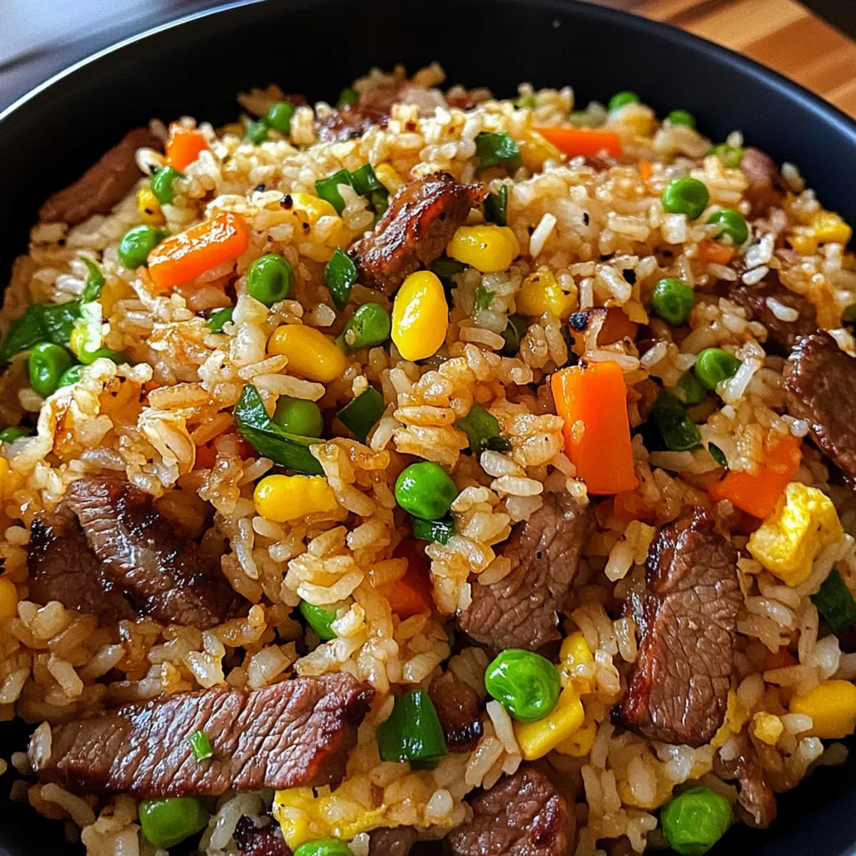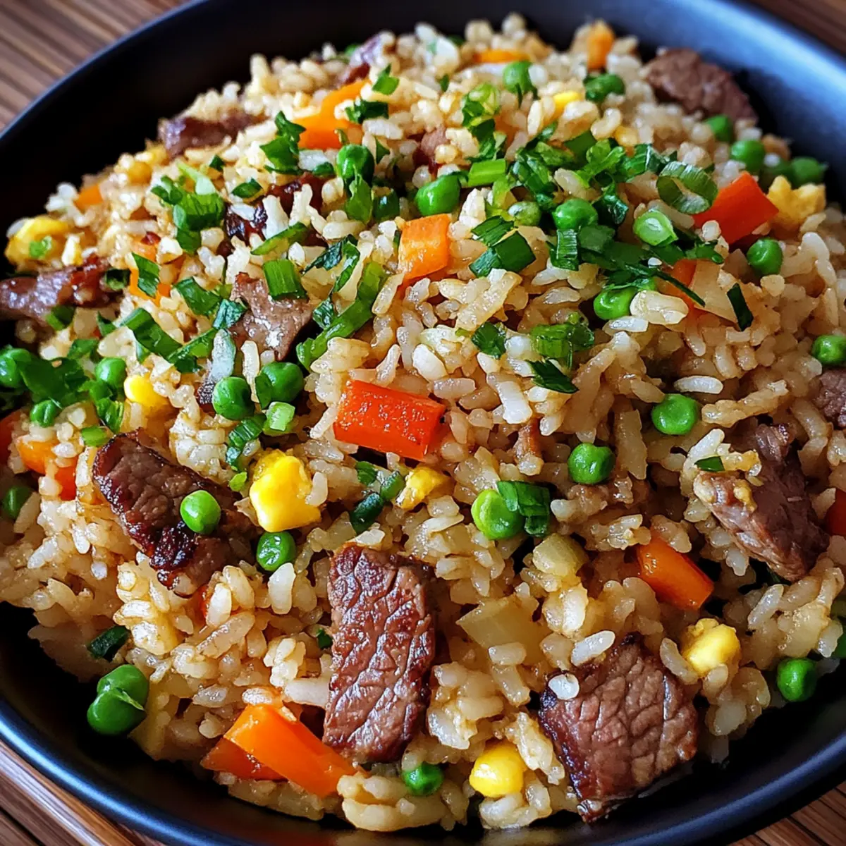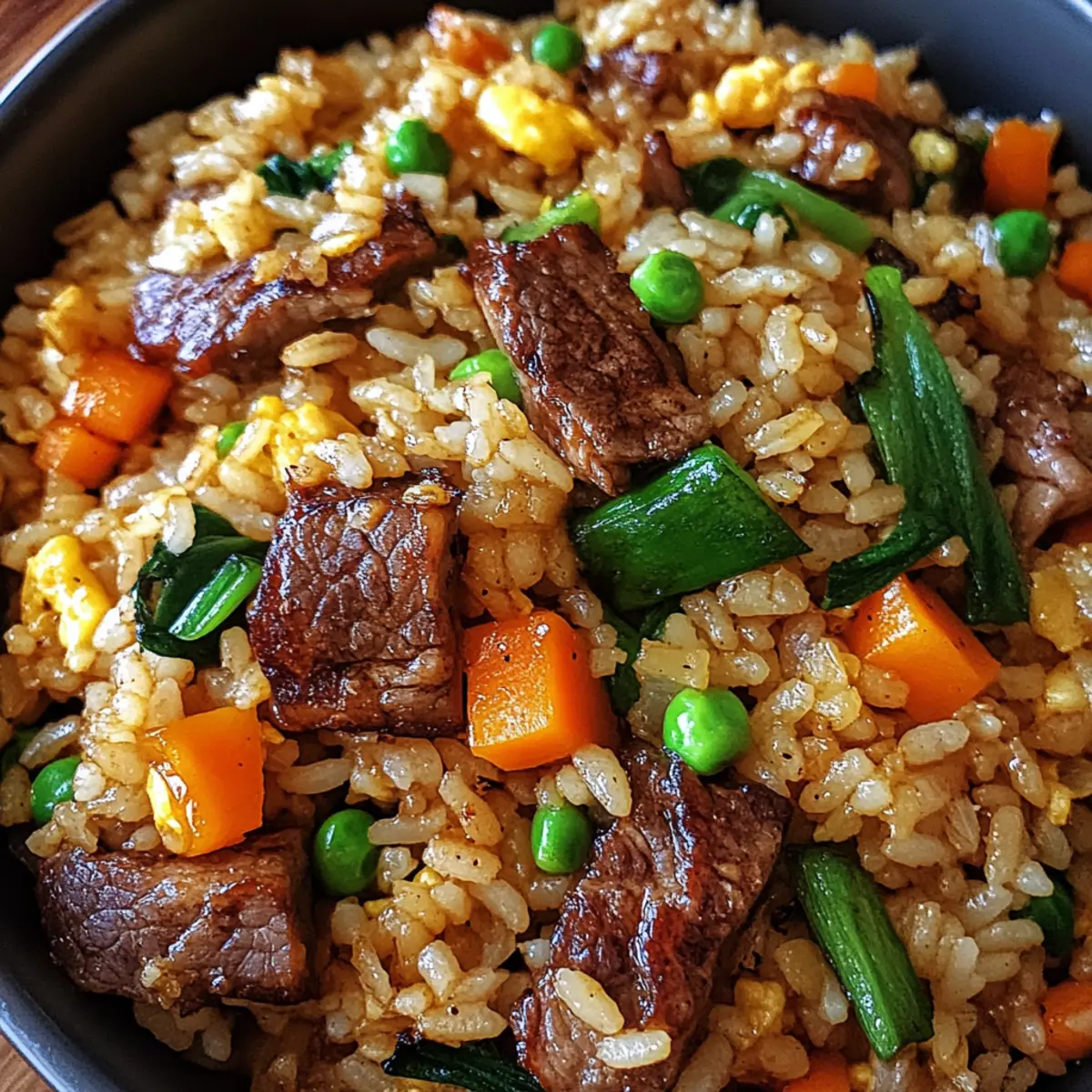 Das Zischen der Pfanne und der verlockende Duft von Japanischem BBQ gebratenem Reis entführen mich sofort in die Küche eines gemütlichen kleinen Restaurants in Tokyo. Diese einfache, aber köstliche Speise vereint zarte Rind- oder Hühnerstreifen, lebendige, knackige Gemüse und perfekt gewürzten Jasminreis – alles umhüllt von einer reichen, würzigen BBQ-Sauce, die den Gaumen erfreut. In weniger als 25 Minuten zaubern wir ein schnelles und zugleich herzhaftes Gericht, das selbst die eiligsten Tage rettet. Mit etwa 600 Kalorien pro Portion ist dies die ideale Lösung für alle, die gesundes und wohltuendes Comfort Food schätzen, ohne viel Zeit in der Küche zu verbringen. Seid ihr bereit, euer Abendessen auf das nächste Level zu heben? Warum wirst du dieses Rezept lieben? Einfachheit: Die Zubereitung ist unkompliziert und erfordert nur grundlegende Kochkünste, perfekt für Anfänger! Schnell und köstlich: In weniger als 25 Minuten zauberst du eine herzhafte Mahlzeit, die deinem Hunger gerecht wird. Vielfältig: Du kannst das Rezept leicht anpassen, indem du Tofu oder verschiedene Gemüse hinzufügst – ideal für jeden Geschmack! Umami-Geschmack: Die harmonische Kombination aus japanischer BBQ-Sauce und gebratenem Reis sorgt für ein unvergleichliches Geschmackserlebnis. Perfekt für jeden Anlass: Ob als schnelles Mittagessen oder gemütliches Abendessen – dieser Reis ist ein Hit bei jedem! Entdecke auch, wie du ihn mit einer zitrus-dressierten Salat kombinieren kannst, um dein Essen abzurunden! Zutaten für Japanischen BBQ gebratenen Reis • Diese Zutaten sind die Bausteine für ein köstliches Gericht, das du lieben wirst! Für den Reis Gekochter Jasminreis – am besten geeignet ist Tag-öfter-Restreis, da er beim Braten nicht verklebt. Gemischtes Gemüse (1/2 Tasse) – verwende buntes Gemüse wie Karotten, Paprika und Erbsen für mehr Nährstoffe und Farbe. Für das Protein Rindfleisch/Huhn (200 g, in Scheiben) – sorgt für eine herzhafte Note; gut braten für intensiven Geschmack. Eier (2, geschlagen) – liefern fluffige Stückchen, die den Reis umhüllen. Für die Würze Gemüseöl (1 EL) – sorgt für hohen Rauchpunkt beim Braten; eine neutrale Wahl, die nicht dominiert. Japanische BBQ-Sauce (2 EL) – die Hauptzutat für einen süß-salzigen Geschmack; Teriyaki-Sauce ist ein guter Ersatz. Sojasauce (1 EL) – verstärkt den Umami-Geschmack und balanciert die Süße; je nach Vorliebe salzen. Knoblauch (2 Zehen, gehackt) – bringt aromatische Wärme und Tiefe in das Gericht. Für die Garnierung Geröstete Sesamsamen – sorgen für einen knusprigen Biss und Nussigkeit. Fein gehackte Frühlingszwiebeln (2 EL) – fügt frische Kräuteraromen hinzu und wird zum Garnieren verwendet. Füge deinen persönlichen Touch hinzu! Lass deiner Kreativität freien Lauf und genieße das Kochen! Schritt-für-Schritt-Anleitung für Japanischen BBQ gebratenen Reis Step 1: Öl erhitzen Erhitze in einer großen Pfanne oder einem Wok bei mittelhoher Temperatur 1 Esslöffel Gemüseöl. Warte, bis das Öl schimmert, was signalisiert, dass es heiß genug ist, um das Fleisch zu braten, und bereite dich vor, die Aromen aufzufangen, die bald deine Küche durchziehen werden. Step 2: Fleisch anbraten Füge 200 g in Scheiben geschnittenes Rindfleisch oder Huhn hinzu und brate es etwa 4–5 Minuten lang, bis es gut gebräunt und durchgegart ist. Achte darauf, dass das Fleisch an den Rändern leicht knusprig wird; dies gibt dem Japanischen BBQ gebratenen Reis mehr Geschmack. Nehme es anschließend aus der Pfanne und stelle es beiseite. Step 3: Gemüse und Knoblauch anbraten Gib nun 2 gehackte Knoblauchzehen und 1/2 Tasse gemischtes Gemüse, wie Karotten und Paprika, in die gleiche Pfanne. Brate das Gemüse für 2–3 Minuten, bis es zart ist, aber noch knackige Textur hat. Der verlockende Duft kündigt an, dass die Aromen sich verbinden und der Reis bald vollendet wird. Step 4: Eier hinzufügen und rühren Schiebe das Gemüse an eine Seite der Pfanne und gieße 2 geschlagene Eier in die andere Seite. Rühre die Eier, bis sie gerade gestockt sind und eine fluffige Textur haben, etwa 1–2 Minuten. Die Eier verleihen dem Japanischen BBQ gebratenen Reis eine reichhaltige Note und machen ihn noch herzhafter. Step 5: Reis hinzufügen Füge nun 3 Tassen gekochten Jasminreis in die Pfanne undwerte diese mit der Gemüsemischung und den Eiern zusammen. Verwende einen Spatel, um den Reis gründlich zu falten und alles gleichmäßig zu vermengen. Achte darauf, dass der Reis überall die Aromen aufnimmt. Step 6: Fleisch und Saucen einfüllen Gib das gebratene Rindfleisch oder Huhn zurück in die Pfanne. Träufle 2 Esslöffel japanische BBQ-Sauce und 1 Esslöffel Sojasauce über die Mischung. Vermenge alles gründlich, sodass der Reis die köstlichen Saucen gleichmäßig aufnehmen kann, und koche dies für etwa 2 Minuten, bis alles gut erhitzt ist. Step 7: Würzen und servieren Schmecke deinen Japanischen BBQ gebratenen Reis nun mit etwas Salz und Pfeffer ab. Koche ihn für weitere 2–3 Minuten, um sicherzustellen, dass alles warm und gut gewürzt ist. Die verlockende Kombination der Aromen wird dich und deine Gäste begeistern. Step 8: Garnieren und genießen Vor dem Servieren kannst du den gebratenen Reis mit 2 Esslöffeln fein gehackten Frühlingszwiebeln und gerösteten Sesamsamen garnieren. Diese frischen Kräuter und der knackige Biss bringen nicht nur Farbe, sondern auch Geschmack auf den Teller. Mach dich bereit, diesen köstlichen Japanischen BBQ gebratenen Reis zu genießen! Variationen & Alternativen zu Japanischem BBQ gebratenem Reis Gestalte dein Gericht mit diesen spannenden Variationen und zaubere neue Geschmackserlebnisse in deine Küche! Vegetarisch: Ersetze das Fleisch durch Tofu oder fang an, zusätzliche Gemüse wie Brokkoli oder Zucchini zu integrieren. So bleibt die Textur spannend und sättigend. Wie wäre es mit einer bunten Mischung, die noch mehr Nährstoffe bietet? Vegan: Verwe