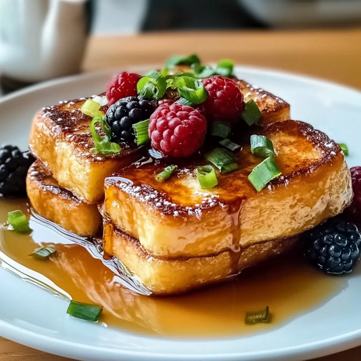 Träufle deinen Japanischen Tamagoyaki-Franzosen-Toast mit etwas Ahornsirup oder Honig. Garnieren kannst du das Gericht mit frischen Früchten, wie Beeren oder Bananenscheiben, um einen lebhaften Farbakzent und zusätzliche Frische zu bieten.