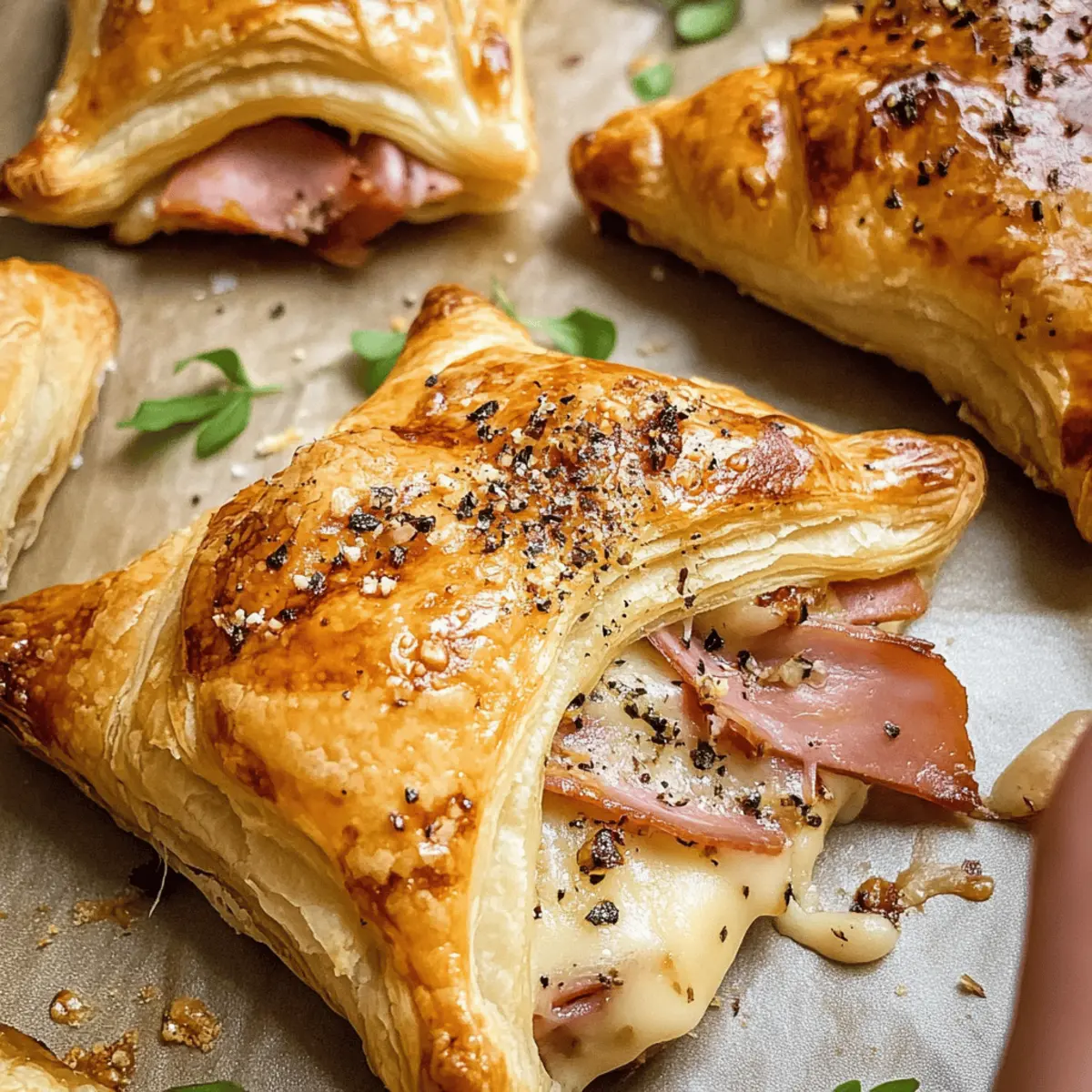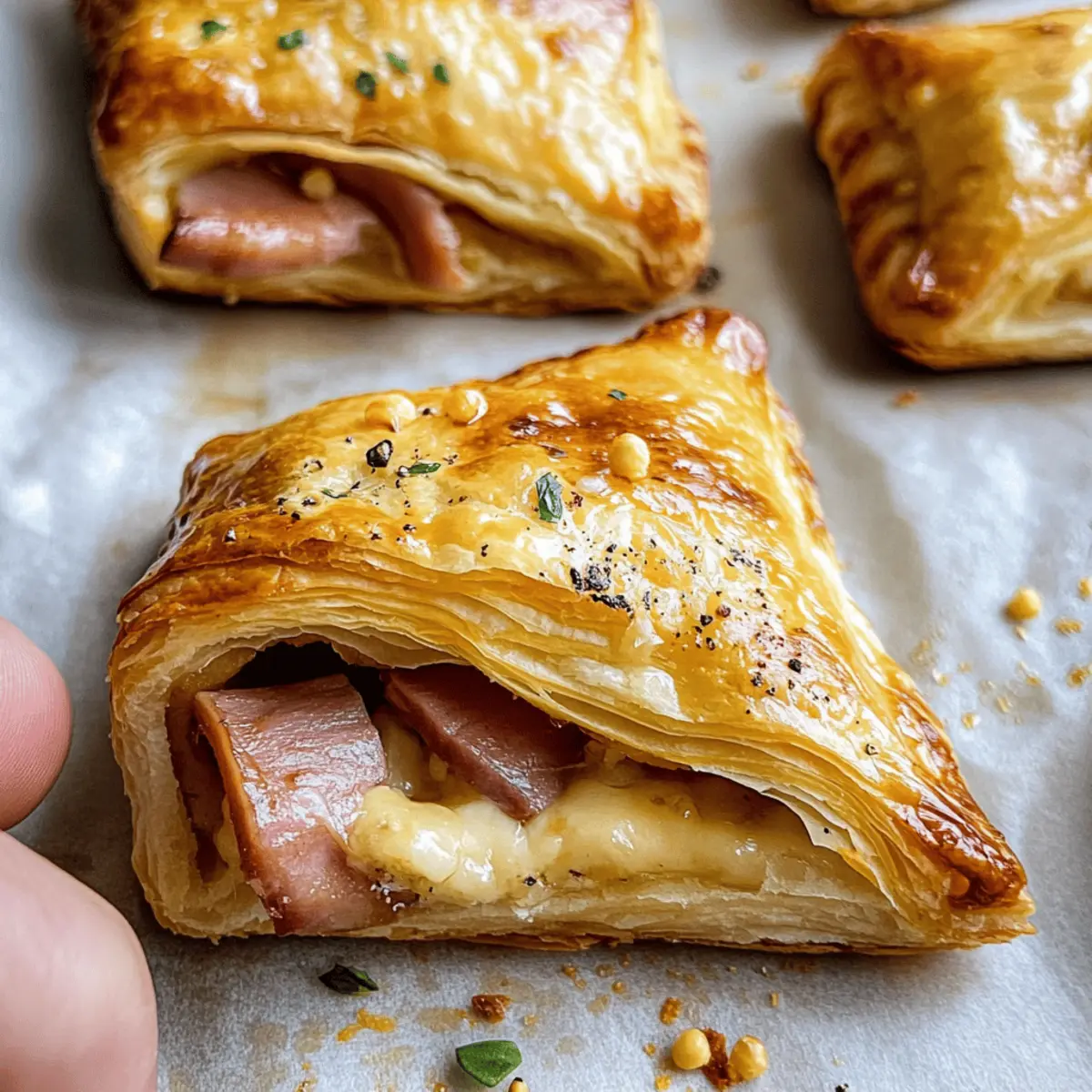Der goldene Duft von frisch gebackenem Blätterteig hat etwas Magisches an sich. Wenn der erste Biss in die luftige, knusprige Hülle des Blätterteigs erfolgt und sich der Geschmack von herzhaftem Schinken und dem cremigen Gruyere-Käse vereint, fühlt es sich wie ein kleiner Festtag an. Das Rezept für die Ham and Cheese Puff Pastry ist nicht nur ein unkompliziertes Gericht, das schnell zubereitet werden kann, sondern es ist zudem unglaublich vielseitig und eignet sich perfekt sowohl für ein herzhaftes Frühstück als auch als schmackhafte Vorspeise. Mit minimalem Aufwand zaubert Ihr diese leckeren Häppchen, die jeder genießen wird. Seid ihr bereit, eure nächste Küchenkreation zu entdecken? Warum wird dieses Rezept begeistern? Einfachheit: Die Zubereitung ist unkompliziert, sodass jeder es gerne nachmachen kann. Köstlicher Geschmack: Die Kombination aus herzhaftem Schinken und cremigem Gruyere-Käse sorgt für ein unvergleichliches Geschmackserlebnis. Vielseitigkeit: Ideal für jedes Frühstück oder als Fingerfood bei Partys. Verleiht jeder Gelegenheit einen besonderen Touch. Schnelle Zubereitung: In nur 25 Minuten steht dieses leckere Gericht frisch auf dem Tisch. Perfekte Kombination: Die knusprige Textur des Blätterteigs harmoniert wunderbar mit dem geschmolzenen Käse und dem zarten Schinken. Für noch mehr Genuss probiert unsere Käsebrötchen Philly Cheesesteak als weitere schmackhafte Variante! Käse-Schinken-Blätterteig Zutaten • Für das einfache Blätterteigrezept benötigt ihr nur ein paar einfache, aber schmackhafte Zutaten. Für den Blätterteig Blätterteig – sorgt für die luftige und knusprige Hülle; stelle sicher, dass er nach Anleitung aufgetaut ist. Für die Füllung Schinken – gibt einen herzhaften Geschmack und Protein; wähle deine Lieblingssorte für verschiedene Geschmacksrichtungen. Gruyere-Käse – bringt eine cremige und nussige Note; kann durch Schweizer Käse oder Cheddar ersetzt werden. Thymian – verstärkt das Aroma und den Geschmack; frisch ist vorzuziehen, aber getrockneter kann auch verwendet werden. Everything Bagel Gewürz – sorgt für einen knusprigen Geschmack; kann weggelassen oder durch Sesamsamen ersetzt werden, falls nicht verfügbar. Dijon-Senf (optional) – bringt eine würzige Note; probiere, wenn möglich, Vollkornsenf für einen anderen Geschmack. Ei und Schlagsahne (für die Ei-Mischung) – sorgt für einen goldbraunen Glanz; garantiert, dass der Blätterteig schön glänzt. Verwöhne deine Geschmacksknospen mit diesen leckeren Zutaten für dein Blätterteigrezept! Schritt-für-Schritt-Anleitung für Käse-Schinken-Blätterteig Step 1: Ofen vorheizen Heize deinen Ofen auf 220°C (425°F) vor, damit er rechtzeitig die ideale Temperatur erreicht. Dies ist wichtig, um eine perfekte, goldbraune Kruste für deinen Käse-Schinken-Blätterteig zu gewährleisten. Während der Ofen aufheizt, kannst du die anderen Vorbereitungen treffen. Step 2: Ei-Mischung zubereiten In einer Schüssel verquirlst du das Ei mit der Schlagsahne, um die Ei-Mischung für das Bestreichen der Blätterteigtaschen herzustellen. Diese Mischung sorgt für einen schönen Glanz und eine appetitliche Farbe nach dem Backen. Stelle die Mischung für später beiseite, während du die Blätterteigplatten vorbereitest. Step 3: Blätterteig vorbereiten Lasse den Blätterteig auftauen und rolle ihn dann auf einer bemehlten Arbeitsfläche aus. Schneide den Teig in sechs gleich große Rechtecke. Achte darauf, dass die Kanten schön glatt sind, damit du später die Taschen gut verschließen kannst. Jeder dieser Rechtecke wird die Basis für deinen herzhaften Käse-Schinken-Blätterteig. Step 4: Füllung hinzufügen Lege auf jedes Rechteck eine Scheibe Schinken und ein Stück Gruyere-Käse in der Mitte. Wenn du möchtest, kannst du optional 2 Teelöffel Dijon-Senf gleichmäßig auf dem Blätterteig verteilen, bevor du die Füllung hinzufügst. Dies gibt deinem Käse-Schinken-Blätterteig eine zusätzliche Geschmacksnote und macht ihn noch köstlicher. Step 5: Taschen verschließen Bestreiche die äußeren Kanten jedes Rechtecks mit der vorbereiteten Ei-Mischung, um eine gute Versiegelung zu gewährleisten. Klappe zwei gegenüberliegende Ecken zusammen und drücke sie vorsichtig zusammen, um die Füllung einzuschließen, während die anderen zwei Ecken offen bleiben. So entsteht eine appetitliche Form für deine Häppchen. Step 6: Mit Ei-Mischung bestreichen Bestriche nun die gesamte Oberfläche der Blätterteigtaschen mit der restlichen Ei-Mischung. Dies verleiht deinem Käse-Schinken-Blätterteig eine goldene Farbe beim Backen. Streue daraufhin frischen Thymian und das Everything Bagel Gewürz, um zusätzlichen Geschmack und Textur zu schaffen. Step 7: Backen Lege die Blätterteigtaschen auf ein mit Backpapier ausgelegtes Blech und schiebe es in den vorgeheizten Ofen. Backe sie 20-25 Minuten lang, bis sie schön aufgebläht und tief goldbraun sind. Du wirst den köstlichen Duft spüren, während sie backen, und das perfekte Ergebnis sehen, wenn du sie herausnimmst. Lagerungstipps für Käse-Schinken-Blätterteig Zimmertemperatur: Bewahre die Blätterteigtaschen nicht länger als 1-2 Stunden bei Zimmertemperatur auf, um die Frische zu erhalten. Kühlschrank: Lagere Reste in einem luftdichten Behälter bis zu 2 Tage im Kühlschrank. Vor dem Verzehr aufbacken, um die Knusprigkeit wiederherzustellen. Gefrierschrank: Ungebackene Käse-Schinken-Blätterteigtaschen können bis zu 3 Monate eingefroren werden. Backe sie direkt aus dem Gefrierschrank, verlängere jedoch die Backzeit um einige Minuten. Wiedereinfrieren: Einmal aufgetaut, sollten die Blätterteigtaschen nicht erneut eingefroren werden, um die Qualität und Sicherheit zu gewährleisten. Variationen & Substitutionen Mach dein Rezept einzigartig, indem du individuelle Anpassungen vornimmst! Poultry Swap: Ersetze den Schinken durch Hähnchen oder Truthahn für eine leichtere Variante. Diese Optionen bleiben zart 