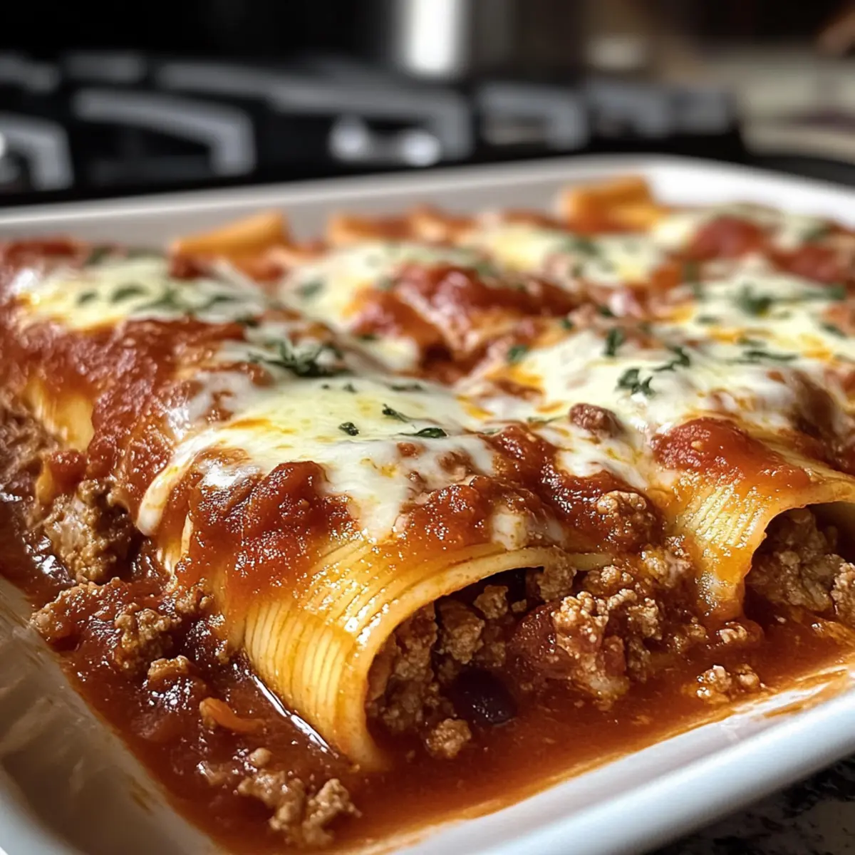 Die Luft ist erfüllt vom betörenden Duft einer köstlich köchelnden Fleischsauce, und plötzlich fühle ich mich in eine traditionelle italienische Trattoria versetzt. Heute teile ich mit euch mein Rezept für Käsegefüllte Manicotti mit schmackiger Fleischsauce, ein Gericht, das selbst die wählerischsten Esser in Ekstase versetzt. Gefüllt mit samtiger Ricotta und umarmt von einer herzhaften Sauce, ist es nicht nur ein wunderbares Trostessen, sondern auch ein schnelles und einfaches Rezept, das ihr ohne viel Aufwand zubereiten könnt. Ideal für entspannte Familienabende oder um Gäste zu beeindrucken, bringt dieses Gericht die Wärme und den Geschmack Italiens direkt auf euren Tisch. Seid ihr bereit, euren Küchenzauber zu entfalten? Warum wirst du dieses Rezept lieben? Einfache Zubereitung: Die Schritte sind klar und unkompliziert, sodass es perfekt für Köche aller Fähigkeitsstufen ist. Herzhafter Geschmack: Die Kombination aus Ricotta und einer aromatischen Fleischsauce bringt jeden Bissen zum Leben und lässt italienische Restaurantbesuche vergessen. Vielseitige Optionen: Ob mit Putenfleisch oder verschiedenen Käsesorten, du kannst die Zutaten nach deinem Geschmack anpassen. Trost für die Seele: Jedes Stück erinnert an behagliche Familienabende und zaubert ein Lächeln auf die Gesichter deiner Lieben. Zeitsparend: Bereite die Manicotti im Voraus zu und genieße sie bei Bedarf, ideal für hektische Wochentage. Perfekt für Gäste: Beeindrucke deine Freunde mit diesem schmackhaften Gericht, das sowohl sättigend als auch delikat ist. Käsegefüllte Manicotti Zutaten • Entdecke die perfekten Zutaten für dein nächstes Lieblingsgericht! Für die Manicotti Manicotti-Schalen – Die Grundlage für die Füllung; vorgefertigte Schalen sparen Zeit. Für die Fleischsauce Rinderhackfleisch – Liefert Protein und reichhaltigen Geschmack; kann durch mageres Putenfleisch ersetzt werden. Italienische Wurst – Sorgt für zusätzliche Tiefe und Aroma; verwende zum Beispiel Putenwurst, wenn du es leichter magst. Zwiebel – Für eine herzliche Geschmackstiefe; Schalotten können für einen milderen Geschmack verwendet werden. Knoblauch – Verstärkt den Geschmack; frischer Knoblauch sorgt für das beste Aroma. Marinara Sauce – Die Basis für die Fleischsauce; du kannst jede gekaufte oder hausgemachte Variante nutzen. Für die Füllung Ricotta Käse – Die cremige Grundlage der Füllung; kann bei Bedarf durch Hüttenkäse ersetzt werden. Mozzarella Käse – Sorgt für die köstliche, gooey Oberfläche; für Füllung und Topping aufteilen. Parmesan Käse – Für zusätzliche Würze und Tiefe in der Füllung. Ei – Bindet die Füllung; Aquafaba eignet sich als vegane Alternative. Basilikum/Oregano – Frische Kräuter bringen den Geschmack der Füllung zum Strahlen; frische Kräuter sind am aromatischsten. Salz/Pfeffer – Für die Würze und die Geschmacksbalance. Zusätzliche Optionen Gewürze – Füge nach Belieben einen Hauch von roten Pfefferflocken für Schärfe hinzu. Schritt-für-Schritt-Anleitung für Käsegefüllte Manicotti mit schmackiger Fleischsauce Step 1: Ofen vorheizen Heize deinen Ofen auf 190°C vor. Diese Temperatur sorgt dafür, dass die Käsegefüllte Manicotti gleichmäßig und perfekt gebacken wird. Bereite ein Backblech oder eine große Auflaufform vor, in die du später die Manicotti mit der Fleischsauce schichten wirst. Step 2: Manicotti-Schalen kochen Bringe einen großen Topf mit gesalzenem Wasser zum Kochen. Füge die Manicotti-Schalen hinzu und koche sie 6-7 Minuten lang, bis sie al dente sind. Achte darauf, sie nicht zu lange zu kochen, damit sie nicht zerfallen. Gieße die Schalen anschließend ab und lasse sie kurz abkühlen. Step 3: Fleisch anbraten Erhitze eine große Pfanne auf mittlerer Hitze und füge das Rinderhackfleisch und die italienische Wurst hinzu. Brate die Mischung mit der gehackten Zwiebel 8 Minuten lang an, bis das Fleisch durchgegart ist und die Zwiebel weich wird. Gieße das überschüssige Fett ab, um eine fettige Sauce zu vermeiden. Step 4: Knoblauch und Sauce hinzufügen Füge den frisch gehackten Knoblauch zur Fleischmischung in der Pfanne hinzu und brate ihn für 1 Minute mit. Rühre dann die Marinara-Sauce ein und lasse alles 10 Minuten bei niedriger Hitze köcheln, damit sich die Aromen gut vermischen. In dieser Phase sollte die Sauce schön aromatisch sein. Step 5: Füllung zubereiten In einer großen Schüssel mische den Ricotta, 1 Tasse Mozzarella, Parmesan, das Ei, Basilikum, Oregano, Salz und Pfeffer. Rühre die Mischung gut durch, bis sie cremig und glatt ist. Diese Füllung wird die köstliche Basis für deine Käsegefüllten Manicotti mit schmackiger Fleischsauce. Step 6: Gericht zusammenstellen Verteile die Hälfte der Fleischsauce gleichmäßig auf dem Boden der vorbereiteten Auflaufform. Fülle nun jede Manicotti-Schale großzügig mit der Ricotta-Mischung und lege sie mit der offenen Seite nach unten in die Form. Decke die gefüllten Schalen mit der restlichen Fleischsauce ab. Step 7: Käse hinzufügen und backen Streue den restlichen Mozzarella gleichmäßig über die oberste Schicht der Fleischsauce. Decke die Auflaufform mit Alufolie ab, um ein Austrocknen zu verhindern, und bakke die Manicotti 30 Minuten lang im vorgeheizten Ofen. Nach der Backzeit entferne die Folie und backe für weitere 10 Minuten, bis der Käse schön goldbraun und blubbernd ist. Step 8: Ausruhen und servieren Lasse die Käsegefüllte Manicotti mit schmackiger Fleischsauce 5 Minuten ruhen, bevor du sie servierst. Dies gibt den Aromen die Möglichkeit, sich zu setzen und macht es einfacher, die Portionen zu schneiden. Ergänze das Gericht nach Belieben mit frischen Kräutern oder Parmesan und genieße deine köstliche Kreation! Variationen für Käsegefüllte Manicotti Gestalte dein italienisches Lieblingsgericht ganz nach deinen Wünschen und entdecke aufregende Variationen! Vegetarisch: Ersetze das Fleisch durch sautierten Spinat, Ch