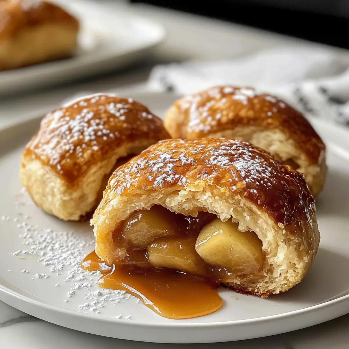 Als ich kürzlich in der Küche stand und den herbstlichen Duft von frisch gebackenen Karamell-Apfel-Pie-Bomben in der Luft wahrnahm, wurde ich sofort in Erinnerungen an liebevolle Familientreffen zurückversetzt. Diese kleinen, goldbraunen Köstlichkeiten sind nicht nur ein wahrer Genuss für die Sinne, sondern auch unglaublich einfach zuzubereiten – ideal für geschäftige Wochenenden oder wenn der süße Zahn ruft. Mit einer Füllung aus zarten Äpfeln und schmelzendem Karamell, umhüllt von luftiger Teighülle, sind diese Bomben der perfekte Komfort-Snack für jeden Anlass. und sie sind in nur 20 Minuten fertig! Bereit, etwas Traditionelles mit einem modernen Twist zu probieren? Warum sind diese Karamell-Apfel-Pie-Bomben ein Muss? Unwiderstehlicher Geschmack: Die perfekte Kombination aus süßen Äpfeln und schmelzendem Karamell sorgt für ein Geschmackserlebnis, das jeden begeistert. Einfachheit pur: Mit nur wenigen Zutaten und in nur 20 Minuten zubereitet, sind diese Bomben ideal für spontane Dessert-Feiern. Vielseitigkeit: Ob zu einem besonderen Anlass oder einfach zum Schlemmen am Abend, sie passen immer! Probieren Sie sie auch mit verschiedenen Füllungen wie Nüssen oder anderen Früchten aus. Köstlicher Duft: Der verführerische Duft, der beim Backen durch die Küche zieht, wird Ihre Familie und Freunde anziehen. Perfekte Textur: Der luftige Teig kombiniert sich mit der warmen, karamellisierten Apfel-Füllung zu einer unschlagbaren Genuss-Erfahrung. Wenn Sie nach weiteren tollen Rezepten suchen, werfen Sie einen Blick auf unsere schnellen und einfachen Dessertideen. Karamell-Apfel-Pie-Bomben Zutaten Für die Füllung Äpfel – Wählen Sie frische, saftige Sorten wie Granny Smith oder Honeycrisp für die beste Füllung. Brauner Zucker – Verleiht der Füllung zusätzliche Süße und unterstützt die Karamellisierung. Gemahlener Zimt – Sorgt für einen warmen, würzigen Geschmack, der an traditionellen Apfelkuchen erinnert. Salz – Ein Hauch Salz hebt die Süße der Äpfel hervor. Ungeklärte Butter (für die Füllung) – Sautiert die Äpfel und macht sie zart. Für den Teig Kühlregal-Teig (Biskuitteig) – Sorgt für eine schnelle und luftige Kruste. Sie können auch selbstgemachten Teig verwenden. Karamellbonbons – Geben Sie die köstliche, schmelzende Süße hinzu. Probieren Sie auch Schokolade oder Butterscotch. Butter (zum Bestreichen) – Schafft eine goldbraune Oberfläche. Sie können auch Olivenöl als milchfreie Alternative verwenden. Zimt-Zucker (optional) – Für eine süße, knusprige Oberfläche, einfach Zucker und Zimt vermischen. Schritt-für-Schritt-Anleitung für Karamell-Apfel-Pie-Bomben Step 1: Ofen vorheizen Heizen Sie den Ofen auf 175°C vor und fetten Sie eine mittelgroße Backform ein. Dies sorgt dafür, dass Ihre Karamell-Apfel-Pie-Bomben gleichmäßig backen und eine goldbraune Oberfläche entwickeln. Während der Ofen aufheizt, können Sie sich auf die Füllung vorbereiten. Step 2: Apfelfüllung zubereiten Schmelzen Sie in einer Pfanne bei mittlerer Hitze etwas Butter und geben Sie die gewürfelten Äpfel hinzu. Fügen Sie braunen Zucker, Zimt und eine Prise Salz hinzu. Kochen Sie die Mischung etwa 5 Minuten lang, bis die Äpfel zart sind und die Aromen sich gut verbinden. Lassen Sie die Füllung danach abkühlen. Step 3: Teig vorbereiten Öffnen Sie den Kühlschrank-Teig und drücken Sie jeden Biskuit mit den Fingern oder einem Nudelholz flach. Achten Sie darauf, dass der Teig gleichmäßig dick ist, um sicherzustellen, dass die Karamell-Apfel-Pie-Bomben gleichmäßig durchbacken und eine perfekte Konsistenz haben. Step 4: Bomben füllen Nehmen Sie etwa einen Esslöffel der abgekühlten Apfelfüllung und geben Sie ihn in die Mitte jeder flachgedrückten Teigscheibe. Fügen Sie dann ein Karamellbonbon hinzu, um das süße, schmelzende Herz der Karamell-Apfel-Pie-Bomben zu schaffen. Drücken Sie die Ränder zusammen und rollen Sie die Teigstücke zu kleinen Bällen. Step 5: Anordnen in der Backform Legen Sie die vorbereiteten Bomben mit der Naht nach unten in die gefettete Backform. Bestreichen Sie die Oberseite jeder Bombe mit geschmolzener Butter für eine appetitliche goldene Kruste. Wenn gewünscht, können Sie die Oberseite mit Zimt-Zucker bestreuen, um zusätzlichen Geschmack hinzuzufügen. Step 6: Backen Backen Sie die Karamell-Apfel-Pie-Bomben im vorgeheizten Ofen für 30-35 Minuten, bis sie außen goldbraun und knusprig sind. Achten Sie darauf, dass die Bomben gut aufgegangen sind und eine köstliche Farbe angenommen haben. Nehmen Sie sie anschließend aus dem Ofen und lassen Sie sie einige Minuten ruhen, bevor Sie sie servieren. Expert Tips für Karamell-Apfel-Pie-Bomben Füllmenge beachten: Verwenden Sie nur etwa 1 Esslöffel der Apfelfüllung, um ein Überlaufen zu vermeiden. Zu viel Füllung kann beim Backen herausquellen. Teigränder versiegeln: Drücken Sie die Ränder des Teigs gut zusammen, um ein Auslaufen während des Backens zu verhindern. Platzieren Sie die Bomben mit der Naht nach unten in der Form. Äpfel trocken tupfen: Tupfen Sie die gewürfelten Äpfel vor dem Kochen trocken. So vermeiden Sie einen matschigen Boden und sorgen für eine schönere Textur der Karamell-Apfel-Pie-Bomben. Backzeit im Auge behalten: Überprüfen Sie die Bomben nach 30 Minuten, um sicherzustellen, dass sie goldbraun und knusprig sind, ohne zu überbacken. Variationen ausprobieren: Fühlen Sie sich frei, mit der Füllung zu experimentieren! Nüsse oder andere Früchte können für interessante Geschmackskombinationen sorgen. Lagerungstipps für Karamell-Apfel-Pie-Bomben Raumtemperatur: Lagern Sie unbenutzte Karamell-Apfel-Pie-Bomben in einem luftdichten Behälter bis zu 2 Tagen, um ihren frisch gebackenen Geschmack zu erhalten. Kühlschrank: Wenn Sie die Bomben länger aufbewahren möchten, können Sie sie im Kühlschrank bis zu 5 Tage lagern. Wickeln Sie sie gut ein, um ein Austrocknen zu verhindern. Gefrierer: Für eine längere Haltbark