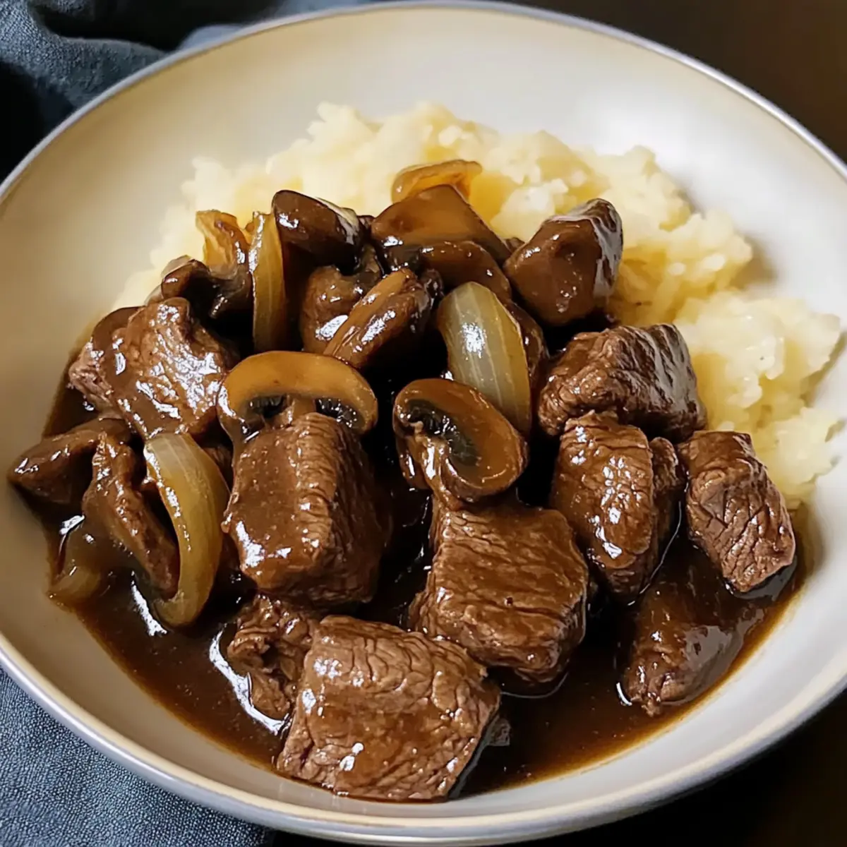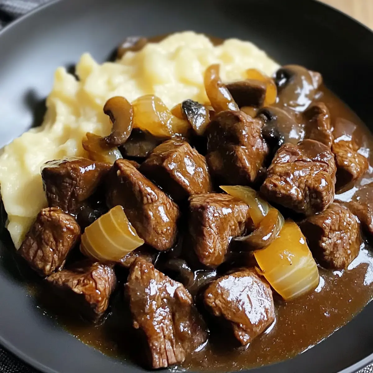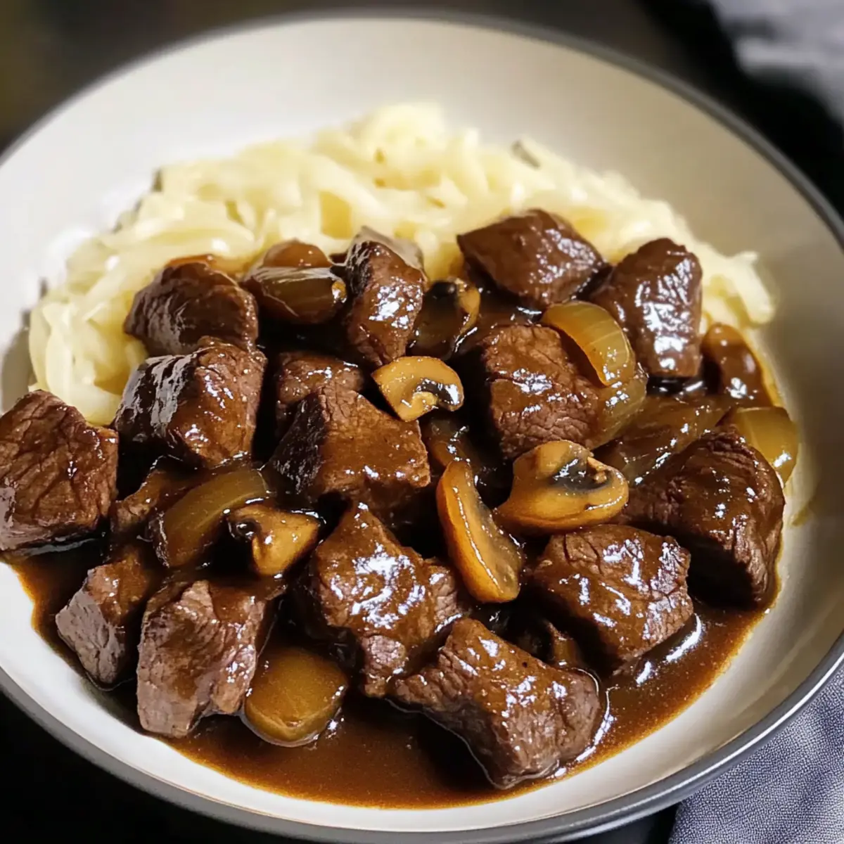 Als ich neulich in meiner Küche stand, durchtränkt von dem verlockenden Duft von gebratenem Fleisch und süßen Zwiebeln, wurde mir wieder bewusst, wie sehr ich einfache, aber schmackhafte Gerichte liebe. Die Kein Gucken Rindfleisch ist genau das – ein unkompliziertes One-Skillet-Abendessen, das im Handumdrehen auf dem Tisch steht. Mit minimalem Vorbereitungsaufwand verwandelt sich eine Handvoll Grundzutaten in ein unglaublich wohltuendes Gericht, das perfekt für stressige Wochentage oder entspannte Zusammenkünfte ist. Man kann es sogar im Voraus zubereiten und die restlichen Portionen einfrieren! Leckeres Essen muss nicht kompliziert sein, und ich kann kaum erwarten, dass du diesen köstlichen Komfort in deiner eigenen Küche entdeckst. Bist du bereit, den Herd anzuwerfen und deine Familie zu begeistern? Warum wirst du dieses Rezept lieben? Einfachheit, die begeistert: Der gesamte Kochprozess dauert nur etwa 30 Minuten, perfekt für hektische Abende. Herzhaft und lecker: Die Mischung aus zartem Rindfleisch und karamellisierten Zwiebeln sorgt für ein unwiderstehliches Geschmackserlebnis. Vielseitigkeit pur: Du kannst ganz einfach auf Hähnchen oder Tofu wechseln, um es an deine Vorlieben anzupassen. Einfache Vorbereitung: Bereite die Zutaten am Vortag vor, um einen noch schnelleren Kochprozess zu garantieren – ideal für stressige Tage! Klassiker neu interpretiert: Diese Kein Gucken Rindfleisch-Rezept ist eine wahre Gaumenfreude, die jeden beeindruckt, vom Chef bis zum Hobbykoch – hier kommt wirklich jeder auf seine Kosten! Kein Gucken Rindfleisch Zutaten Für das Fleisch • Rindfleisch Tipps – Ein zartes Stück, das reich an Geschmack und perfekt für diese unkomplizierte Pfanne ist; könnte auch durch Hühnerkeulen ersetzt werden. Für das Gemüse • Zwiebel – Fügt Süße und Tiefe beim Karamellisieren hinzu; verwende auch Schalotten für einen besonderen Geschmack. • Knoblauch – Sorgt für aromatische Fülle; frischer Knoblauch ist am besten! • Cremini-Pilze – bringen Umami in dein Gericht; Button-Pilze sind eine gute Alternative oder einfach weglassen. Für die Soße • Rinderbrühe – Verleiht Feuchtigkeit und Intensität; kann durch Gemüsebrühe für eine leichtere Version ersetzt werden. • Sojasauce oder Tamari – Bringt eine salzige Umami-Note; Tamari ist glutenfrei. • Worcestershire-Sauce – Fügt Komplexität hinzu; veganer Worcestershire ist eine tolle pflanzliche Option. • Geräuchertes Paprika – Verstärkt die Geschmacksvielfalt mit einer rauchigen Note; reguläres Paprika kann verwendet werden, jedoch variiert der Geschmack. • Getrockneter Thymian – Passt wunderbar zu Rindfleisch; frischer Thymian ist ebenfalls eine gute Wahl. • Tomatenmark – Bringt Tiefe und eine leichte Süße; in der Not kann auch Ketchup verwendet werden. • Maisstärke – Verdickt die Soße perfekt; Pfeilwurzstärke ist eine glutenfreie Alternative. Für die Beilage • Frische Petersilie – Zum Garnieren; Chives sind ein erfrischender Ersatz. Würzen • Salz und schwarzer Pfeffer – Unverzichtbar für die richtige Würze; nach Geschmack anpassen. Sonstiges • Wasser – Aktiviert die Maisstärke zur Verdickung der Soße. Entdecke, wie einfach es ist, dieses köstliche Kein Gucken Rindfleisch zu zaubern! Schritt-für-Schritt-Anleitungen für Kein Gucken Rindfleisch Einfache Geschmackvolle Slow Cooker Step 1: Rindfleisch vorbereiten Trockne die Rindfleisch Tipps gründlich mit Papierhandtüchern ab und würze sie großzügig mit Salz und schwarzem Pfeffer. Erhitze eine große Pfanne bei mittlerer bis hoher Hitze, füge etwas Olivenöl hinzu und brate die Rindfleisch Tipps in Portionen für 2-3 Minuten pro Seite an, bis sie schön gebräunt sind. Nimm sie anschließend aus der Pfanne und stelle sie beiseite. Step 2: Zwiebeln und Pilze anbraten Reduziere die Hitze der Pfanne auf mittel und füge nach Bedarf ein wenig mehr Öl hinzu. Gib die gewürfelten Zwiebeln in die Pfanne und brate sie unter häufigem Rühren an, bis sie weich und leicht goldbraun sind, etwa 4-5 Minuten. Füge dann den gehackten Knoblauch und die Cremini-Pilze hinzu und koche, bis die Pilze ihr Wasser abgegeben haben und schön angebraten sind, erfahrungsgemäß etwa 5 Minuten. Step 3: Zutaten mischen Gib das angebratene Rindfleisch zurück in die Pfanne und vermische es gründlich mit den Zwiebeln und Pilzen. Füge das geräucherte Paprika, den getrockneten Thymian und das Tomatenmark hinzu. Rühre alles gut um, bis das Fleisch gleichmäßig mit den Gewürzen und der Paste überzogen ist, etwa 1-2 Minuten. Step 4: Flüssigkeiten hinzufügen Gieße die Rinderbrühe, Sojasauce und Worcestershire-Sauce in die Pfanne. Kratze mit einem Holzlöffel den Boden der Pfanne ab, um die Röststoffe zu lösen, und lasse das Ganze aufkochen. Reduziere die Hitze und lasse die Mischung für etwa 5 Minuten leicht köcheln, damit sich die Aromen verbinden. Step 5: Soße verdicken In einer kleinen Schüssel mische die Maisstärke mit dem Wasser und rühre gut um, um Klumpen zu vermeiden. Gieße diese Mischung in die Pfanne, während du ständig rührst. Koche alles unter Rühren für etwa 1-2 Minuten, bis die Soße dicker wird, aber achte darauf, dass sie nicht stark kocht. Step 6: Abschmecken und servieren Schmecke die Soße ab und füge bei Bedarf mehr Salz oder Sojasauce hinzu. Lasse das Gericht für ein paar Minuten ruhen, damit sich die Geschmäcker weiter entfalten können. Garniere dein kein Gucken Rindfleisch mit frischer Petersilie und serviere es heiß, damit die köstliche Soße gut an dem zarten Fleisch und den Gemüse haftet. Vorbereitungs-Tipps für Kein Gucken Rindfleisch Die Kein Gucken Rindfleisch-Zubereitung ist nicht nur einfach, sondern lässt sich auch wunderbar im Voraus planen, was dir wertvolle Zeit an hektischen Wochentagen spart! Du kannst das Rindfleisch bis zu 24 Stunden im Voraus anbraten und dann im Kühlschrank aufbewahren. Auch die Zwiebeln und den Knoblauch kannst du b