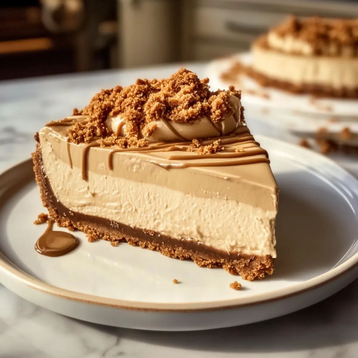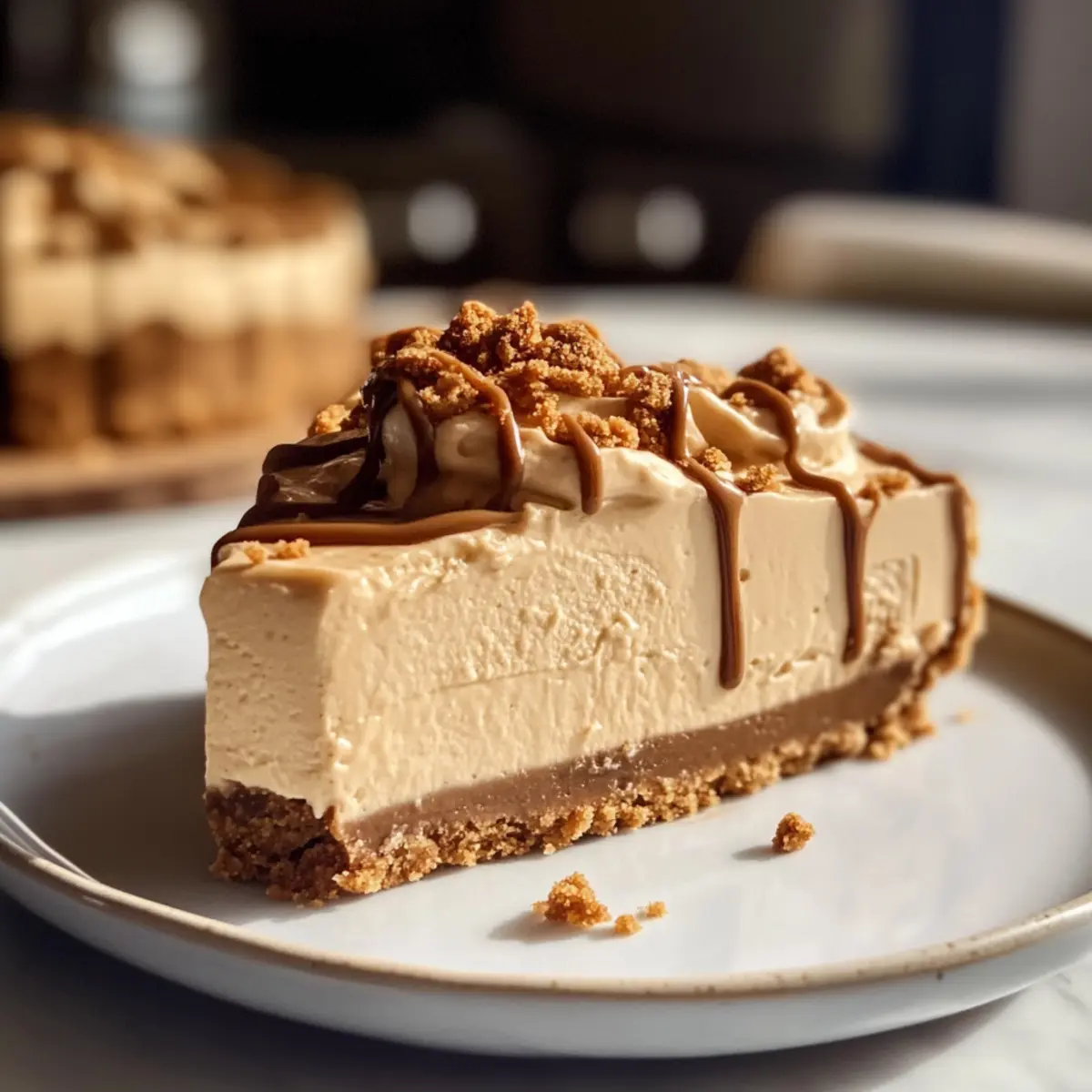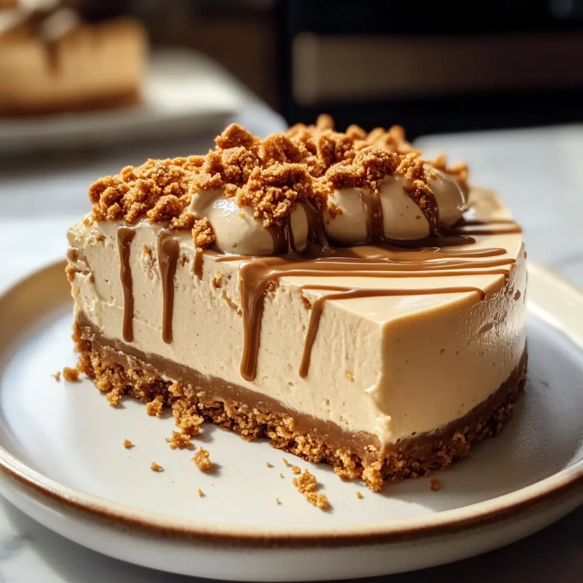Stell dir vor, du sitzt an einem warmen Sommerabend mit Freunden im Garten und eine köstliche, cremige Überraschung steht auf dem Tisch – unser Keine Backen Biscoff Käsekuchen. Dieses Dessert ist ein wahrhaftiger Genuss für alle Biscoff-Liebhaber und lässt sich im Handumdrehen zubereiten, ohne den Ofen einschalten zu müssen. Mit einer buttrigen Kruste und einer seidigen Füllung bringt dieser Käsekuchen zwei Texturen zusammen, die sowohl den Gaumen erfreuen als auch die Zubereitung zum Kinderspiel machen. Egal, ob für eine Feier oder einfach nur für einen süßen Genuss zu Hause, dein neues Lieblingsdessert wartet darauf, entdeckt zu werden. Bist du bereit für diese himmlische Erfahrung? Warum wirst du diesen Käsekuchen lieben? Einfachheit, die begeistert: Die Zubereitung dieses No Bake Biscoff Käsekuchens ist kinderleicht und benötigt keine speziellen Backkenntnisse. Cremiger Genuss: Die Kombination aus frischer Sahne und cremigem Frischkäse sorgt für eine himmlische, samtige Textur, die jeden Bissen zum Erlebnis macht. Vielseitigkeit: Ob als krönenden Abschluss eines Festmahls oder als süßer Snack für zwischendurch, dieser Käsekuchen passt einfach immer. Beeindruckende Optik: Mit dem goldenen Biscoff-Überzug und der knackigen Keksdeko wird dieser Käsekuchen zum Blickfang auf jedem Tisch. Zeitsparend: Er lässt sich im Voraus zubereiten und erfordert keine lange Kühlung – perfekt für spontane Einladungen oder wenn der süße Zahn ruft! Erlebe den köstlichen Geschmack und die Einfachheit, die dieser No Bake Biscoff Käsekuchen zu bieten hat und kombiniere ihn mit einer Tasse Kaffee oder Tee für das perfekte Dessert! Zutaten für den Keine Backen Biscoff Käsekuchen • Für alle Hobbyköche, die ein einfaches und köstliches Dessert möchten, hier sind die Zutaten! Für den Boden Biscoff-Kekse – Hauptbestandteil der Kruste; gut zermahlen für die perfekte Textur. Kann durch Speculoos-Kekse oder andere knusprige Kekse ersetzt werden. Geschmolzene Butter – Bindet die Keksbrösel; ohne Ersatz, um die Struktur zu bewahren. Für die Füllung Frischkäse – Sorgt für die cremige Basis; am besten eignet sich vollfetter Frischkäse in Blockform. Biscoff-Kekse Butter – Fügt reichhaltigen, gewürzten Geschmack hinzu; andere Nussbutter sind ebenfalls möglich für ein anderes Geschmackserlebnis. Puderzucker – Süßt die Füllung und stabilisiert die Mischung; nach Geschmack anpassen. Vanilleextrakt – Verbessert den Geschmack; kann weggelassen werden für puren Biscoff-Geschmack. Kaltes Schlagsahne – Macht die Füllung leicht und luftig; kann für Zeitersparnis durch Cool Whip ersetzt werden (2 Tassen für 1 Tasse Schlagsahne). Für die Dekoration Geschmolzene Biscoff-Kekse Butter – Optionale Glasur für zusätzlichen Geschmack und ansprechende Optik; nach Belieben verwenden. Zerdrückte Biscoff-Kekse – Fügt eine knackige Textur zur Garnitur hinzu; kann für Einfachheit weggelassen werden. Freu dich auf diesen köstlichen Keine Backen Biscoff Käsekuchen, der nicht nur deinen Gaumen verwöhnt, sondern auch einfach zuzubereiten ist! Schritt-für-Schritt-Anleitung für den Keine Backen Biscoff Käsekuchen Step 1: Kruste vorbereiten Zerbrösele die Biscoff-Kekse in einer Küchenmaschine oder in einem zip-top Beutel, bis sie die Konsistenz von feinem Sand haben. Mische die Keksbrösel mit geschmolzener Butter, bis die Mischung feucht und strukturfähig ist. Drücke die Mischung gleichmäßig in eine 23 cm große Springform und stelle sie für mindestens 30 Minuten in den Kühlschrank, damit sie fest wird. Step 2: Füllung vorbereiten Schlage den Frischkäse in einer großen Schüssel mit einem Handmixer auf mittlerer Stufe, bis er schön cremig ist, etwa 2-3 Minuten. Füge die Biscoff-Kekse Butter, den Puderzucker und Vanilleextrakt hinzu und mixe alles gut durch, bis eine homogene Masse entsteht. Du solltest eine glatte, samtige Konsistenz erhalten, die hervorragend für den Keine Backen Biscoff Käsekuchen ist. Step 3: Sahne aufschlagen In einer separaten Schüssel die kalte Schlagsahne mit einem Handmixer auf hoher Stufe schlagen, bis sich steife Spitzen bilden, was etwa 3-5 Minuten dauert. Achte darauf, die Sahne nicht zu übermixen, damit sie leicht und luftig bleibt. Diese luftige Sahne wird gleich vorsichtig unter die Frischkäse-Füllung gehoben. Step 4: Füllung kombinieren Nehme die geschlagene Sahne und falte sie sanft mit einem Spatel in die Frischkäse-Mischung. Achte darauf, dies sorgfältig zu tun, um die Luftigkeit der Sahne zu bewahren. Das Ergebnis sollte eine helle und luftige Konsistenz sein, die ideal für den Keine Backen Biscoff Käsekuchen ist. Step 5: Käsekuchen zusammenstellen Verteile die Füllung gleichmäßig über den abgekühlten Keksboden in der Springform. Glätte die Oberseite mit einem Spatel, damit ein schöner Abschluss entsteht. Decke den Kuchen ab und lasse ihn mindestens 6 Stunden, idealerweise über Nacht, im Kühlschrank ruhen, damit er fest werden kann. Step 6: Finale Dekoration Vor dem Servieren kannst du den Käsekuchen mit geschmolzener Biscoff-Kekse Butter dekorieren, indem du sie gleichmäßig darüber träufelst. Streue nach Belieben zerdrückte Biscoff-Kekse oben auf den Kuchen, um eine knackige Textur zu verleihen. Serviere den Keine Backen Biscoff Käsekuchen gut gekühlt und genieße die Begeisterung deiner Gäste! Expertentipps für den Keine Backen Biscoff Käsekuchen Raumtemperatur Frischkäse: Achte darauf, dass der Frischkäse Zimmertemperatur hat, damit er sich leicht cremig schlagen lässt und keine Klumpen entstehen. Sahne richtig schlagen: Schlage die Schlagsahne bis sie steife Spitzen hat, aber übertreibe es nicht, um eine glatte Textur zu bewahren. Kühlen ist entscheidend: Lass den Käsekuchen mindestens 6 Stunden oder besser über Nacht im Kühlschrank ruhen, um die beste Konsistenz und den intensivsten Geschmack zu erzielen. Saubere Schnitte: Wenn du perfekte Stücke möchtest, friere d
