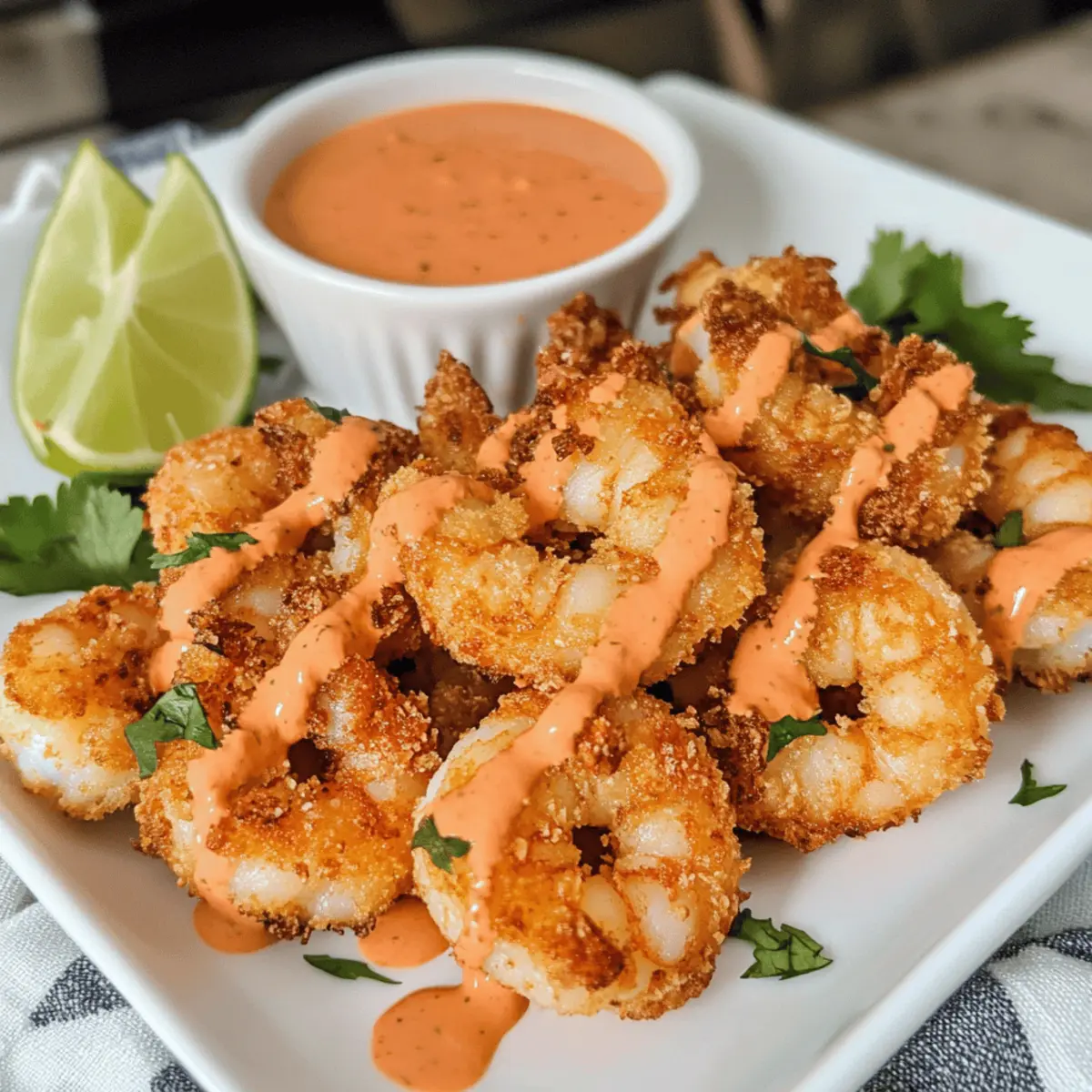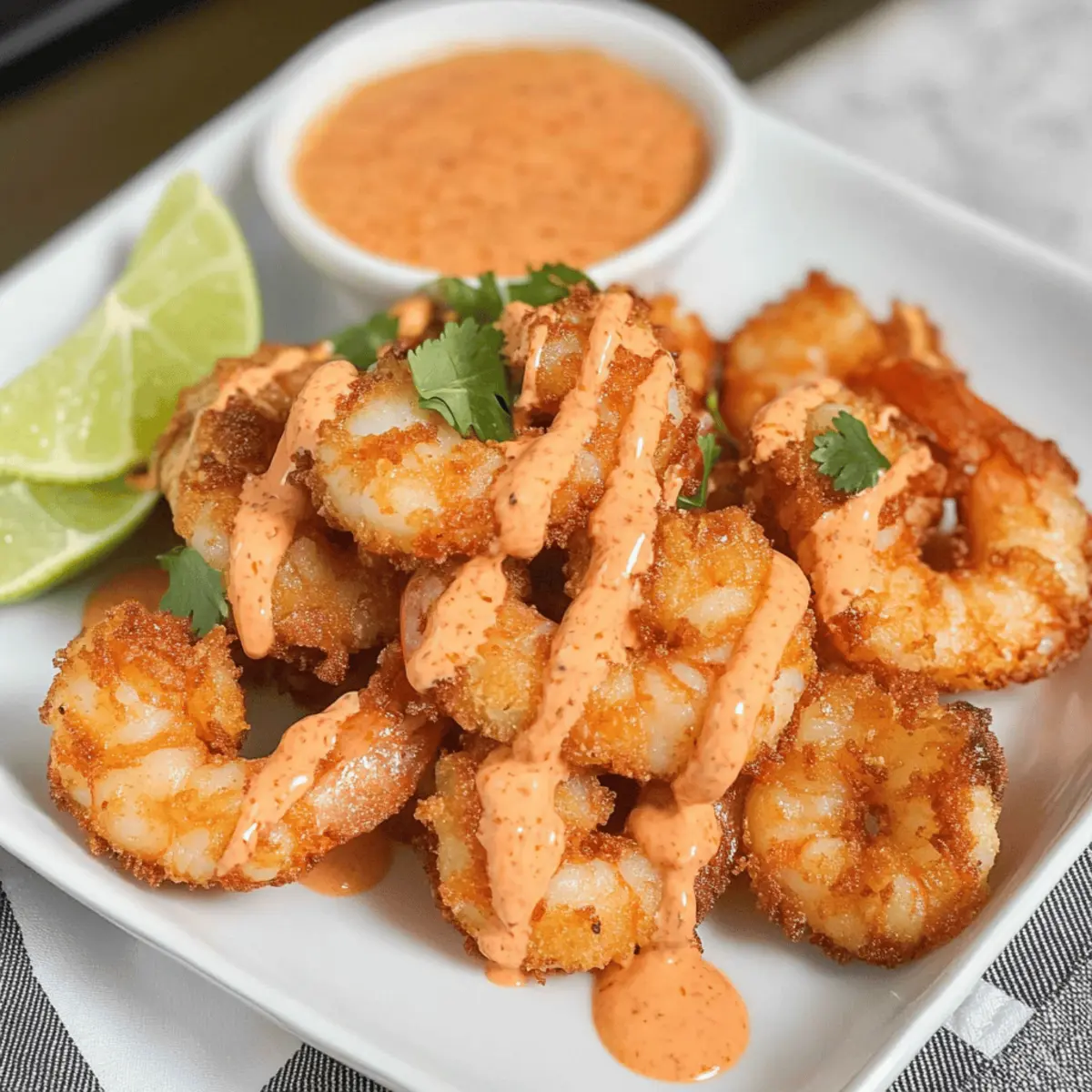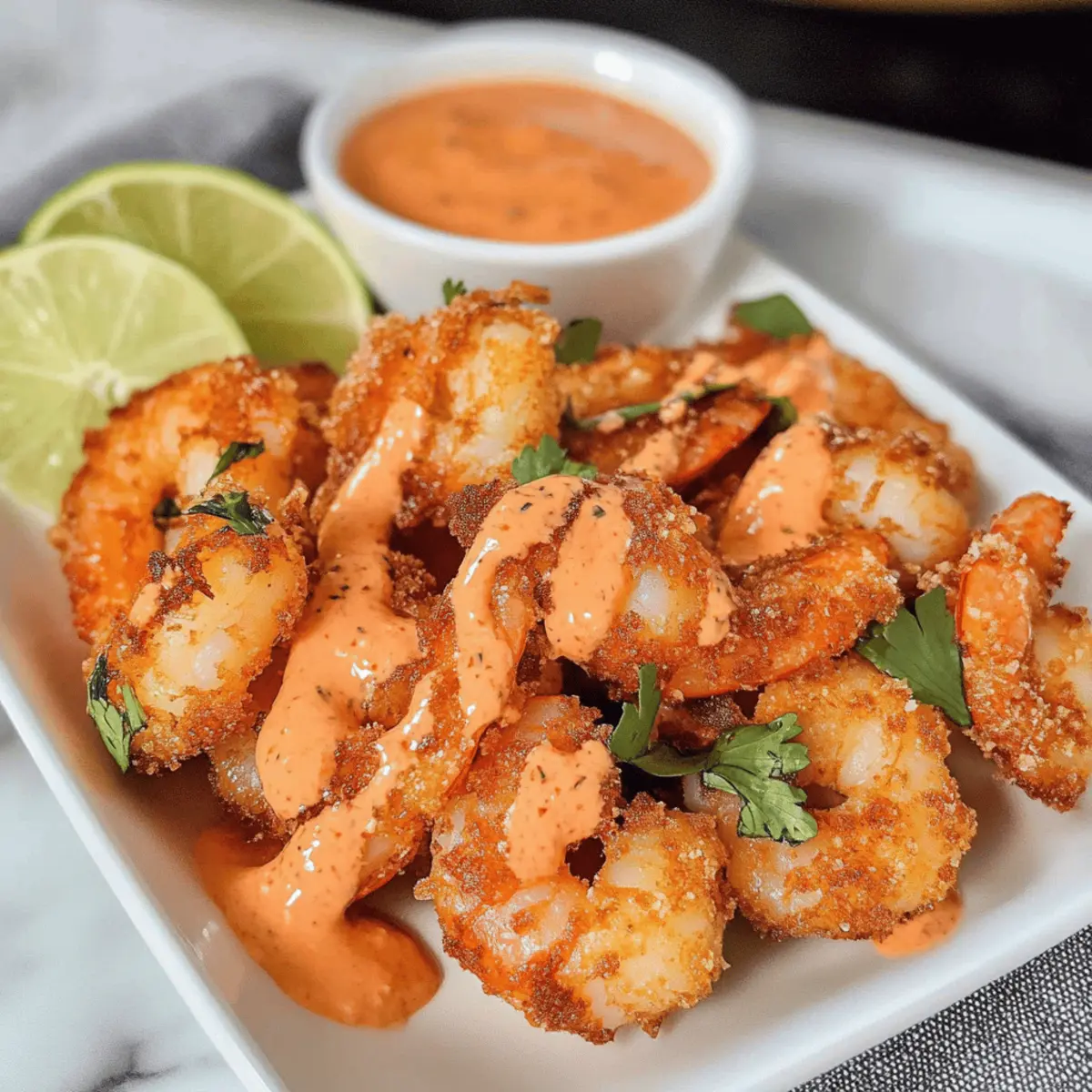 Wenn ich an köstliche und knusprige Snacks denke, kommt mir sofort der Gedanke an meine Lieblings-Keto Bang Bang Shrimp. Diese geschmackvolle Vorspeise ist nicht nur eine wahre Gaumenfreude, sondern auch unglaublich schnell zubereitet – perfekt, wenn der Hunger nach etwas Pikantem ruft, ohne dabei gegen die Keto-Diät zu verstoßen. Glutenfrei und kohlenhydratarm, lassen diese knusprigen Garnelen die langweilige Fast-Food-Option im Nu vergessen. Der cremige und würzige Bang Bang Sauce verleiht dem Gericht die besondere Note, die es zum absoluten Hit wird. Neugierig, wie du diese Leckerei selbst zubereiten kannst? Lass uns gemeinsam ins Kochen eintauchen! Warum solltest du Bang Bang Shrimp lieben? Crunchy und Knusprig: Das perfekte Aroma umhüllt jede Garnelen, die außen knusprig und innen zart ist. Keto-freundlich und Glutenfrei: Genuss ohne schlechtes Gewissen, ideal für jeden, der die Kohlenhydrate reduzieren will. Spicy Kick: Der würzige Bang Bang Sauce bringt Schwung in dein Geschmackserlebnis. Schnelle Zubereitung: In nur wenigen Minuten zauberst du diese köstliche Vorspeise, ideal für spontane Gäste. Vielseitig: Ob als Snack, Vorspeise oder Hauptgericht – diese Garnelen passen immer! Kombiniere sie mit Erdbeer Zuckerplaetzchen Rezept für ein perfektes Menü. Erlebe den ultimativen Geschmack mit dieser schnellen und einfachen Keto-Variante! Keto Bang Bang Shrimp Zutaten • Für die Bang Bang Sauce Mayonnaise – sorgt für eine cremige Basis der Sauce. Chili Knoblauch Sauce – verleiht der Sauce eine pikante Note. Sriracha – für eine scharfe zusätzliche Würze. Salz – abschmecken für ein harmonisches Geschmacksprofil. • Für die Garnelen Grove Garnelen (1 Pfund) – die Hauptzutat, die Geschmack und Textur bietet. Beachte: Diese sollten geschält und entdarmt sein, mit Schale zum leichteren Essen. Eier (1 großes) – bindet die Panade an den Garnelen. Schwere Schlagsahne (2 Esslöffel) – erhöht die Cremigkeit. Substitutionsmöglichkeit: Buttermilch kann verwendet werden. • Für die Panade Zerkleinerte Schweinehaut Brösel (1 Tasse) – fungiert als glutenfreies Paniermehl. Hinweis: Verwende ungewürzte für die besten Ergebnisse. Parmesan Käse (¼ Tasse) – fügt der Panade einen herzhaften Geschmack hinzu. Knoblauchpulver (½ Teelöffel) – zum Würzen und Geschmacksverstärkung. Salz und Pfeffer – grundlegend für die würzige Note der Garnelen. • Zum Frittieren Öl zum Frittieren – wähle dein bevorzugtes Keto-freundliches Öl, wie Oliven- oder Avocadoöl. Genieße die Zubereitung und entdecke die Welt der köstlichen Keto Bang Bang Shrimp! Schritt-für-Schritt-Anleitung für Keto Bang Bang Shrimp Step 1: Bang Bang Sauce zubereiten In einer Schüssel vermischst du Mayonnaise, Chili Knoblauch Sauce und Sriracha. Füge eine Prise Salz hinzu, um den Geschmack zu optimieren. Rühre alles gut durch, bis die Sauce eine einheitliche, cremige Konsistenz erreicht hat. Stelle die fertige Sauce beiseite, damit die Aromen sich entfalten können. Step 2: Garnelen vorbereiten Wenn du die Garnelen noch nicht geschält und entdarmt hast, ist jetzt der richtige Zeitpunkt. Nimm attentiv die Schale ab und entferne den Darm, sodass du 1 Pfund große, saftige Garnelen erhältst. Lasse sie auf Küchenpapier abtropfen, um überschüssige Feuchtigkeit zu reduzieren, damit die Panade später gut haftet. Step 3: Panade vorbereiten In einer Schüssel verquirlst du das große Ei zusammen mit den 2 Esslöffeln schwerer Schlagsahne, bis eine glatte Mischung entsteht. In einer anderen Schüssel kombinierst du die zerkleinerten Schweinehaut Brösel, Parmesan Käse, Knoblauchpulver, Salz und Pfeffer. Vermische alles gut, damit die Panade gleichmäßig gewürzt ist. Step 4: Garnelen panieren Nimm jede Garnelen und tauche sie zuerst in die Ei-Sahne-Mischung, sodass sie rundum bedeckt ist. Danach wälzt du die Garnelen in der Schweinehaut-Panade, bis sie vollständig damit umhüllt sind. Achte darauf, dass jede Garnelen gut paniert ist, um die Knusprigkeit bei der Zubereitung zu gewährleisten. Step 5: Öl erhitzen In einer großen Pfanne erhitzt du bei mittelhoher Temperatur ausreichend Öl zum Frittieren – es sollte genug sein, um die Garnelen fast vollständig zu bedecken. Warte einige Minuten, bis das Öl heiß genug ist; ein kleiner Test mit einem Brösel zeigt, dass es umgehend brutzelt, wenn das Öl bereit ist. Step 6: Garnelen frittieren Platziere vorsichtig die panierten Garnelen in der heißen Pfanne, aber achte darauf, die Pfanne nicht zu überladen, damit sie schön gleichmäßig frittieren. Brate die Garnelen für etwa 2-3 Minuten auf jeder Seite, bis sie goldbraun und knusprig sind. Sie sind fertig, wenn sie eine schöne Farbe erhalten und sich leicht umfärbten. Step 7: Servieren Nach dem Frittieren legst du die Garnelen auf ein mit Küchenpapier ausgelegtes Blech, um überschüssiges Öl zu entfernen. Drizzle dann die vorbereitete Bang Bang Sauce großzügig darüber oder serviere sie separat zum Dippen. Die Keto Bang Bang Shrimp sind jetzt bereit, genossen zu werden! Lagerungstipps für Keto Bang Bang Shrimp Kühlschrank: Lagere die frittierten Garnelen in einem luftdichten Behälter für bis zu 3 Tage. So bleiben sie frisch und genießen. Gefrierschrank: Die Keto Bang Bang Shrimp können nach dem Frittieren eingefroren werden. Lege sie in einer einzigen Schicht auf einem Backblech, lasse sie einfrieren, und transferiere sie dann in einen Gefrierbeutel für bis zu 6 Monate. Wiedererwärmung: Um die Garnelen aufzuwärmen, erhitze sie in der Pfanne bei niedriger Temperatur, bis sie wieder knusprig sind. Vermeide die Mikrowelle, da dies die Textur beeinträchtigen kann. Variationen & Alternativen für Keto Bang Bang Shrimp Lass deiner Kreativität freien Lauf und passe das Rezept nach deinem Geschmack an! Hühnchen-Alternative: Verwende Hähnchenstreifen anstelle von Garnelen für eine herzhaftere Option, die genauso knusprig wird. Vegetarische Version: Ersetze