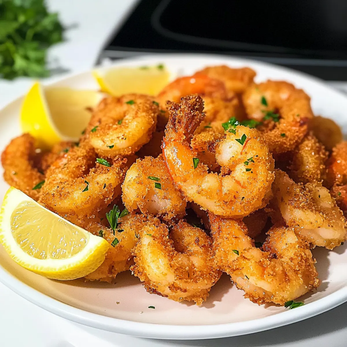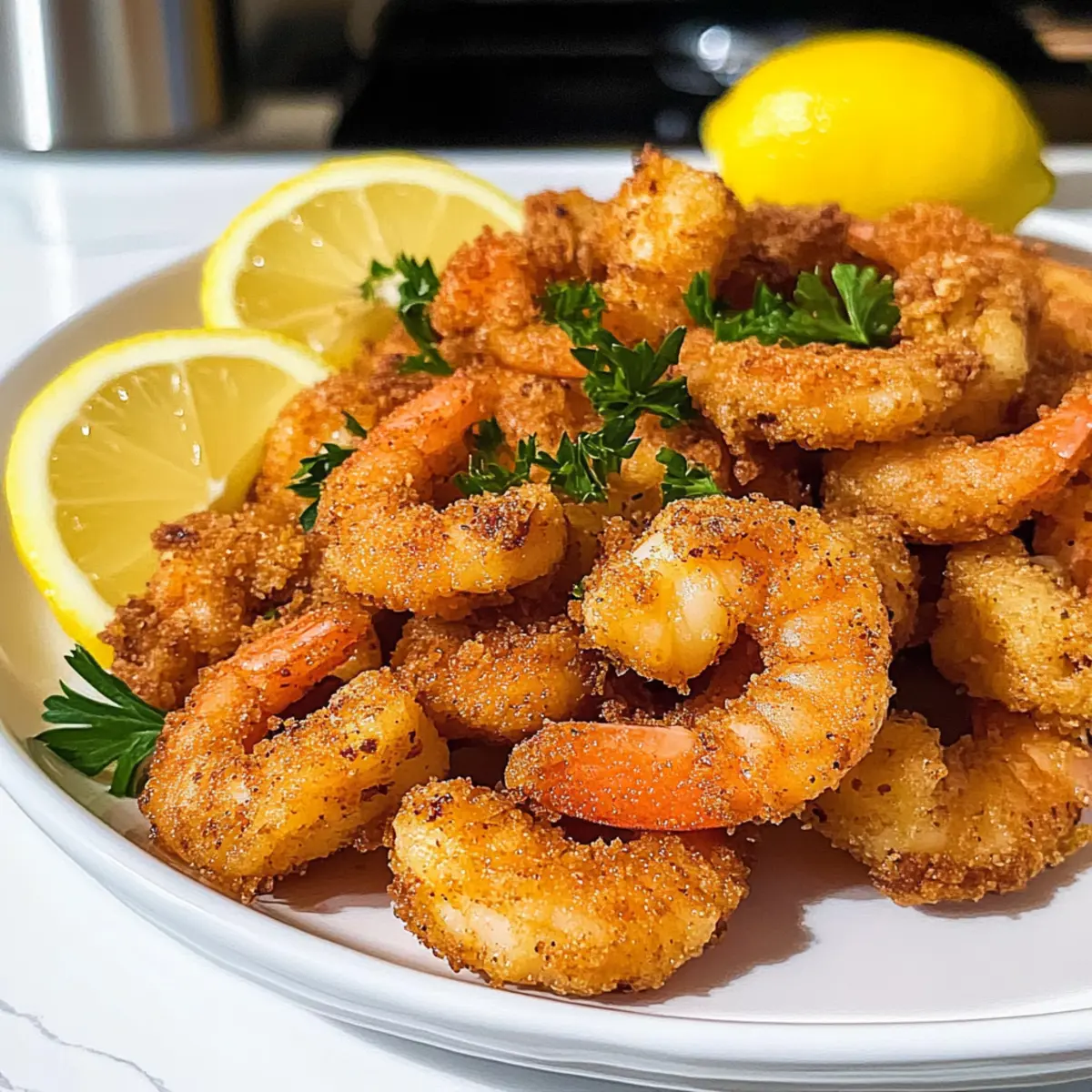 Es gibt etwas Beruhigendes an der knusprigen Textur von frittierten Garnelen, besonders wenn sie in nur 15 Minuten zubereitet sind! Heute teile ich mit euch mein Rezept für Keto Frittierte Garnelen, das nicht nur schnell, sondern auch unwiderstehlich lecker ist. Diese Garnelen sind perfekt für einen Snack, als Appetizer oder sogar als schnelles Abendessen für die ganze Familie. Mit verschiedenen Breading-Optionen wie Kokosnussmehl oder Mandelmehl könnt ihr die perfekte Geschmacksrichtung finden, während ihr gleichzeitig euren kohlenhydratarmen Lebensstil unterstützen. Und das Beste daran? Sie sind glutenfrei und bringen einen Hauch von Restaurant-Feeling direkt in eure Küche. Seid ihr bereit, die perfekte knusprige Garnelenexplosion zu erleben? Lasst uns gemeinsam in die Zubereitung eintauchen! Warum sind Keto Frittierte Garnelen so unwiderstehlich? Unwiderstehlicher Geschmack: Jede Garnele ist perfekt gewürzt und bietet eine köstliche Kombination aus Aromen, die das Wasser im Mund zusammenlaufen lassen. Schnelle Zubereitung: In nur 15 Minuten könnt ihr diese leckeren Snacks auf den Tisch bringen – ideal für stressige Tage! Vielseitige Varianten: Mit verschiedenen Breading-Optionen wie Kokosnussmehl oder Mandelmehl könnt ihr die Textur und den Geschmack ganz nach eurem Wunsch anpassen. Gesund und nahrhaft: Diese Garnelen sind nicht nur kohlenhydratarm, sondern auch glutenfrei, was sie zu einer perfekten Wahl für eure Diät macht. Familienfreundlich: Ob als Snack oder Hauptgericht, dieses Rezept wird bei Groß und Klein gleichermaßen beliebt sein! Werft auch einen Blick auf unsere anderen schnellen Rezepte für mehr köstliche Ideen! Keto Frittierte Garnelen Zutaten Für die Panade: • Kokosmehl / Mandelmehl / Zerkrümelte Schweinekrusten – Diese Optionen bieten eine köstliche knusprige Schicht, die perfekt für unsere Keto Frittierte Garnelen ist. • Meersalz – Hebt den Geschmack hervor; ein Muss für beste Ergebnisse. • Schwarzer Pfeffer – Für eine subtile Wärme; frisch gemahlener Pfeffer wird empfohlen. • Knoblauchpulver – Für ein aromatisches Aroma; frischer Knoblauch kann alternativ verwendet werden. • Paprika – Verleiht Farbe und einen milden, pfeffrigen Geschmack; geräucherte Paprika sorgt für mehr Tiefe. • Oregano – Für einen Hauch von Kräutern; kann durch italienische Gewürzmischung ersetzt werden. Für die Garnelen: • Rohe große Garnelen – Wählt frische, geschälte und entdarmte Garnelen für einfache Zubereitung. • Große Eier – Dienen als Bindemittel; ein Flachsei ist eine gute vegane Alternative. Zum Frittieren: • Kokosöl – Ideal für das Frittieren; Avocadoöl kann als weitere Option verwendet werden. Schritt-für-Schritt-Anleitung für Keto Frittierte Garnelen Step 1: Panade vorbereiten In einer Schüssel die großen Eier gut verquirlen, bis sie leicht schaumig sind. In einer zweiten Schüssel das Kokosmehl, Meersalz, schwarzen Pfeffer, Knoblauchpulver, Paprika und Oregano gründlich vermengen. Diese Mischung sorgt für die köstliche Panade der Keto Frittierte Garnelen und wird bald für den perfekten Crunch sorgen. Step 2: Garnelen panieren Nehmt jede rohe große Garnele und taucht sie zuerst in die Ei-Mischung, sodass sie vollständig bedeckt ist. Danach in die vorbereitete Mehlmischung tauchen und gut wenden, bis die Garnelen gleichmäßig mit der Panade bedeckt sind. Legt die panierten Garnelen auf einen großen Teller und lasst sie für einen Moment ruhen, damit die Panade anhaften kann. Step 3: Öl erhitzen In einer großen, tiefen Pfanne das Kokosöl bei mittelhoher Hitze erhitzen. Der ideale Temperaturbereich liegt zwischen 180 und 190 Grad Celsius, damit die Garnelen beim Frittieren perfekt knusprig werden. Testet die Temperatur, indem ihr ein kleines Stück der Panade ins Öl fallen lasst; es sollte sofort zischen und an die Oberfläche steigen. Step 4: Garnelen frittieren Sobald das Öl heiß genug ist, gebt die panierten Garnelen vorsichtig in die Pfanne. Bratet sie in Chargen für etwa 2-3 Minuten auf jeder Seite oder bis sie goldbraun und knusprig sind. Achtet darauf, die Garnelen nicht zu überfüllen, damit sie gleichmäßig garen. Nach dem Frittieren die Garnelen auf Küchenpapier abtropfen lassen. Step 5: Servieren Die knusprigen Keto Frittierte Garnelen sofort servieren, idealerweise mit Zitronenspalten und frisch gehackter Petersilie als Garnitur. Diese köstlichen Garnelen sind nicht nur perfekt für den Snack zwischendurch, sondern auch hervorragend als Appetizer oder schnelles Abendessen für die ganze Familie! Was passt gut zu Keto Frittierte Garnelen? Ein köstliches Festmahl entsteht, wenn verschiedene Aromen und Texturen harmonisch zusammenkommen. Frischer Mohnsalat: Eine Mischung aus knackigem Gemüse und frischem Dressing bringt eine erfrischende Leichtigkeit, die perfekt zu den würzigen Garnelen passt. Die Kombination aus Knackigkeit und Frische balanciert die knusprige Textur der Garnelen wunderbar. Zitronen-Knoblauch-Dip: Dieser cremige Dip ergänzt die Garnelen perfekt und verleiht ihnen einen zusätzlichen Hauch von Zitrusfrische. Der Knoblauch verstärkt den geschmacklichen Kontrast und macht jedes Bissen unwiderstehlich. Blumenkohlreis: Als kohlenhydratarme Beilage ist Blumenkohlreis eine tolle Option. Sein milder Geschmack harmoniert mit den Garnelen, während die weiche Textur eine wunderbare Abwechslung zu dem knusprigen Biss bietet. Knusprige Zucchini-Chips: Diese Chips sind eine großartige knackige Ergänzung und bringen eine gesunde Note ins Spiel. Sie sind einfach zuzubereiten und liefern das perfekte Crunch. Keto-Cocktail-Sauce: Eine hausgemachte Sauce aus Zuckeralternativen und Gewürzen ergänzt die frittierten Garnelen ideal. Sie sorgt für eine süß-saure Note und fördert das Geschmackserlebnis. Frischer Gurkensalat: Mit seinem frischen, spritzigen Charakter bringt ein Gurkensalat einen tollen Kontrast zu den würzigen Garnelen und sorgt für Erfrischung. Trock