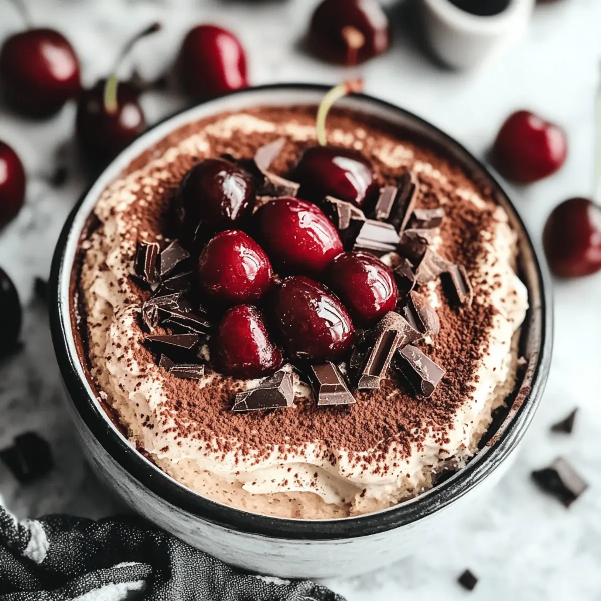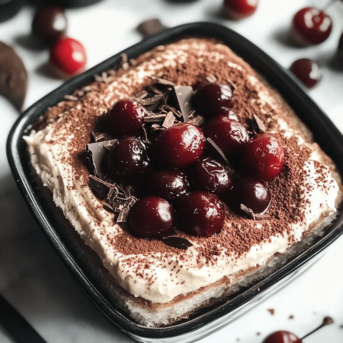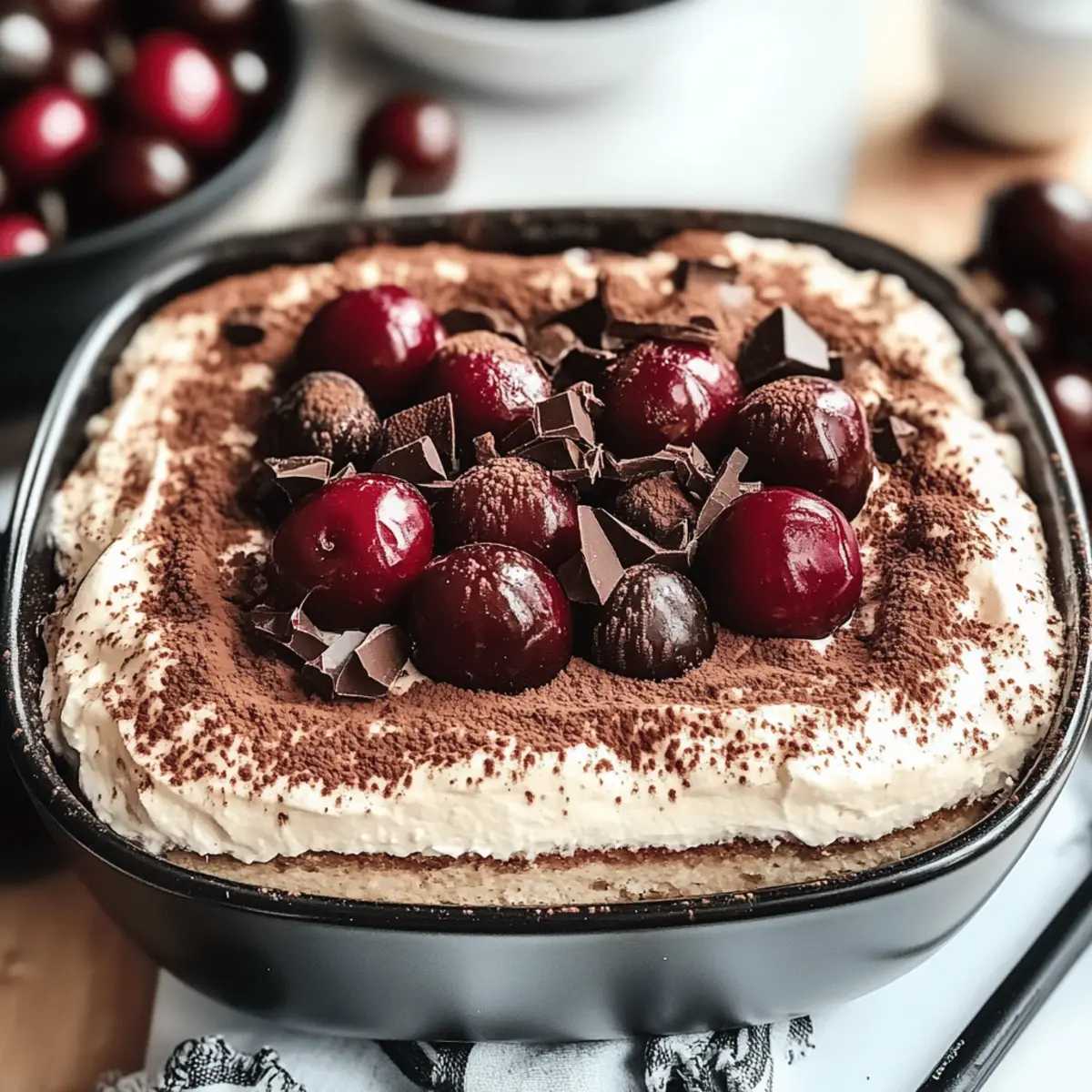 In einem kleinen, charmanten Café in Italien entdeckte ich einst ein Dessert, das meine Sinne verzauberte: das Cherry Amaretto Tiramisu. Diese himmlische Kombination aus cremiger Mascarpone, süßen Kirschen und dem verführerischen Aroma von Amaretto entführt jeden Bissen in eine Welt des Genusses. Die beste Nachricht? Dieses Rezept ist nicht nur durchgehend köstlich, sondern auch unglaublich einfach zuzubereiten – perfekt für alle, die sich nach einer geschmackvollen Abwechslung zu schnellem Essen sehnen. Es ist ein Dessert, das nicht nur den Gaumen erfreut, sondern auch Raum für unvergessliche Momente mit Familie und Freunden schafft. Neugierig, wie du dieses italienische Meisterwerk nach Hause holen kannst? Warum solltest du dieses Rezept lieben? Einfachheit: Die Zubereitung ist kinderleicht und benötigt nur grundlegende Kochfähigkeiten. Fruchtige Frische: Die Kombination aus Kirschen und Amaretto verleiht dem klassischen Tiramisu eine erfrischende und fruchtige Note. Köstliches Erlebnis: Jede Gabel bietet ein himmlisches Zusammenspiel aus cremiger Mascarpone, saftigen Kirschen und zartem Kakao. Vielseitigkeit: Variiere die Früchte oder experimentiere mit verschiedenen Likören, um deinem Dessert einen persönlichen Touch zu verleihen. Beeindruckende Präsentation: Ob in einer Schale oder in Gläsern serviert, dieses Dessert sieht immer verführerisch aus. Vorbereitungsfreundlich: Lass die Aromen über Nacht ziehen – so sparst du Zeit und genießt eine intensivere Geschmacksexplosion! Probiere auch, es mit boldem Kaffee oder Espresso zu kombinieren, um das Geschmackserlebnis zu perfektionieren! Zutaten für Kirsch-Amaretto Tiramisu • Um dieses köstliche Dessert zuzubereiten, benötigst du die folgenden Zutaten: Für die Mascarpone-Mischung Mascarpone Käse – sorgt für die reichhaltige und cremige Basis des Desserts, kann durch Frischkäse ersetzt werden, um einen etwas herben Geschmack zu erzielen. Schlagsahne – verleiht der Mascarpone-Mischung Leichtigkeit und Volumen; keine Alternativen empfohlen, jedoch kann eine fettärmere Variante in Betracht gezogen werden. Amaretto Likör – fügt mit seinen Mandelnoten Tiefe hinzu; für eine alkoholfreie Version, ersetze ihn durch eine Mischung aus Mandelextrakt und Wasser oder Kirschsaft. Kirschsaft – sorgt für einen lebhaften Geschmack, der gut mit Amaretto harmoniert; frischen oder abgefüllten verwenden, ohne zugesetzten Zucker. Frische Kirschen – bieten natürliche Süße und Farbexplosion; gefrorene Kirschen sind ebenfalls möglich, vorausgesetzt, sie werden aufgetaut und abgetropft, um überschüssige Feuchtigkeit zu vermeiden. Zucker – gleicht die Säure der Kirschen aus; bei süßeren Kirschen kann die Menge reduziert werden. Kirschmarmelade – intensiviert den Kirschgeschmack in der Mischung; optional, kann weggelassen oder durch mehr frische Kirschen ersetzt werden. Vanilleextrakt – verstärkt die geschmackliche Tiefe; keine Substitutionen empfohlen. Für die Schichtung Löffelbiskuits – bilden die Struktur und die Schichten im Tiramisu, ideal sind Savoiardi-Kekse, aber Biskuitteig kann als Alternative verwendet werden. Kakaopulver – bestäubt die oberste Schicht für Geschmack und Präsentation; dunkles Kakaopulver sorgt für einen reicheren Geschmack, Standardkakao kann ebenfalls verwendet werden. Dunkle Schokolade, gehobelt oder gerieben – fügt dem Dessert Eleganz und zusätzliche Geschmacksnuancen hinzu; Milchschokolade kann für ein süßeres Profil verwendet werden. Schritt-für-Schritt-Anleitung für Kirsch-Amaretto-Tiramisu ** Schritt 1: Mascarpone und Sahne mischen** In einer großen Schüssel gib den Mascarpone-Käse und die Schlagsahne. Schlage alles mit einem Handmixer oder einer Küchenmaschine auf hoher Stufe für 2-3 Minuten, bis die Mischung glatt und fluffig ist. Achte darauf, dass sich keine Klumpen in der Masse befinden, das ist wichtig für die cremige Textur deines Kirsch-Amaretto-Tiramisu. Schritt 2: Aromen hinzufügen Integriere nun den Amaretto-Likör, den Kirschsaft und den Vanilleextrakt in die Mascarpone-Mischung. Schlage alles weiter, bis die Zutaten sehr gut vermischt sind und ein gleichmäßiger Geschmack entsteht. Diese aromatische Mischung wird die Grundlage deiner verschiedenen Schichten im Tiramisu sein. Schritt 3: Zucker und Marmelade vermengen Nimm eine separate Schüssel und vermische den Zucker mit der Kirschmarmelade. Rühre die Zutaten gründlich um, bis eine gleichmäßige, klebrige Konsistenz entsteht. Diese Süße verstärkt das fruchtige Aroma in deinem Dessert und wird in der nächsten Schicht integriert. Schritt 4: Zucker-Mischung einarbeiten Inkorporiere nun die Zucker-Marmeladen-Mischung in die Mascarpone-Creme. Mische alles für etwa eine weitere Minute mit dem Handmixer, bis die Masse gut verrührt ist. Achte darauf, dass sich die süßen Aromen gleichmäßig in die cremige Basis verteilen, um einen harmonischen Geschmack zu erzielen. Schritt 5: Kirschen einfügen Schneide die frischen Kirschen in kleine Stücke und hebe sie vorsichtig unter die Mascarpone-Mischung. Achte darauf, dass die Kirschen gleichmäßig verteilt sind, um jedem Bissen des Kirsch-Amaretto-Tiramisu fruchtige Frische zu verleihen. Die Kirschen werden so auch von der Creme umhüllt. Schritt 6: Ladyfingers vorbereiten Bereite nun eine flache Schüssel vor, indem du eine Mischung aus Amaretto und Kirschsaft dafür verwendest. Tauche die Löffelbiskuits schnell in die Flüssigkeit, wobei du darauf achtest, dass sie nicht zu lange getränkt werden, damit sie nicht auseinanderfallen. Diese Biskuits bilden die Basis und Struktur deines Desserts. Schritt 7: Erste Schicht anrichten Platziere die getränkten Löffelbiskuits gleichmäßig auf dem Boden einer 9×13 Zoll großen Backform. Achte darauf, dass die gesamte Fläche bedeckt ist, da dies die erste Schicht des Kirsch-Amaretto-Tiramisu darstellt. Dies wird sein geschmackliches Fundament sein, das die Cremeschichten überdeckt. 