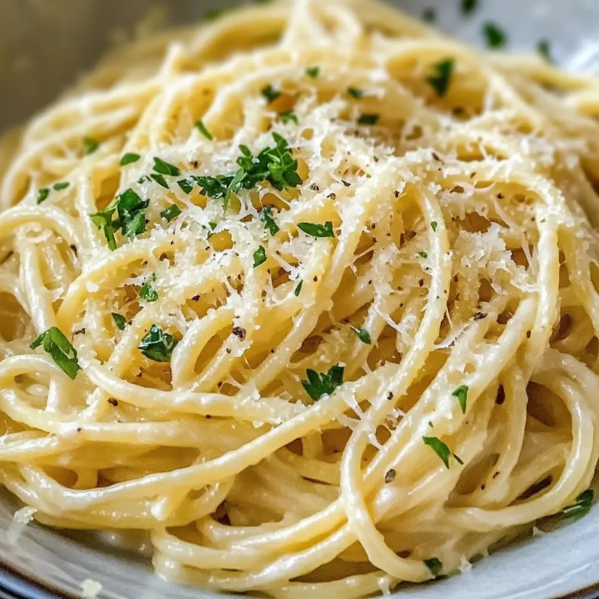Schmecke die Knoblauch Parmesan Pasta mit Salz und frisch gemahlenem Pfeffer ab, um den Geschmack zu intensivieren. Um das Gericht frisch zu verfeinern, streue gehackte frische Petersilie darüber. Serviere die Pasta sofort in tiefen Tellern, damit jeder die köstliche, cremige Sauce genießen kann.
