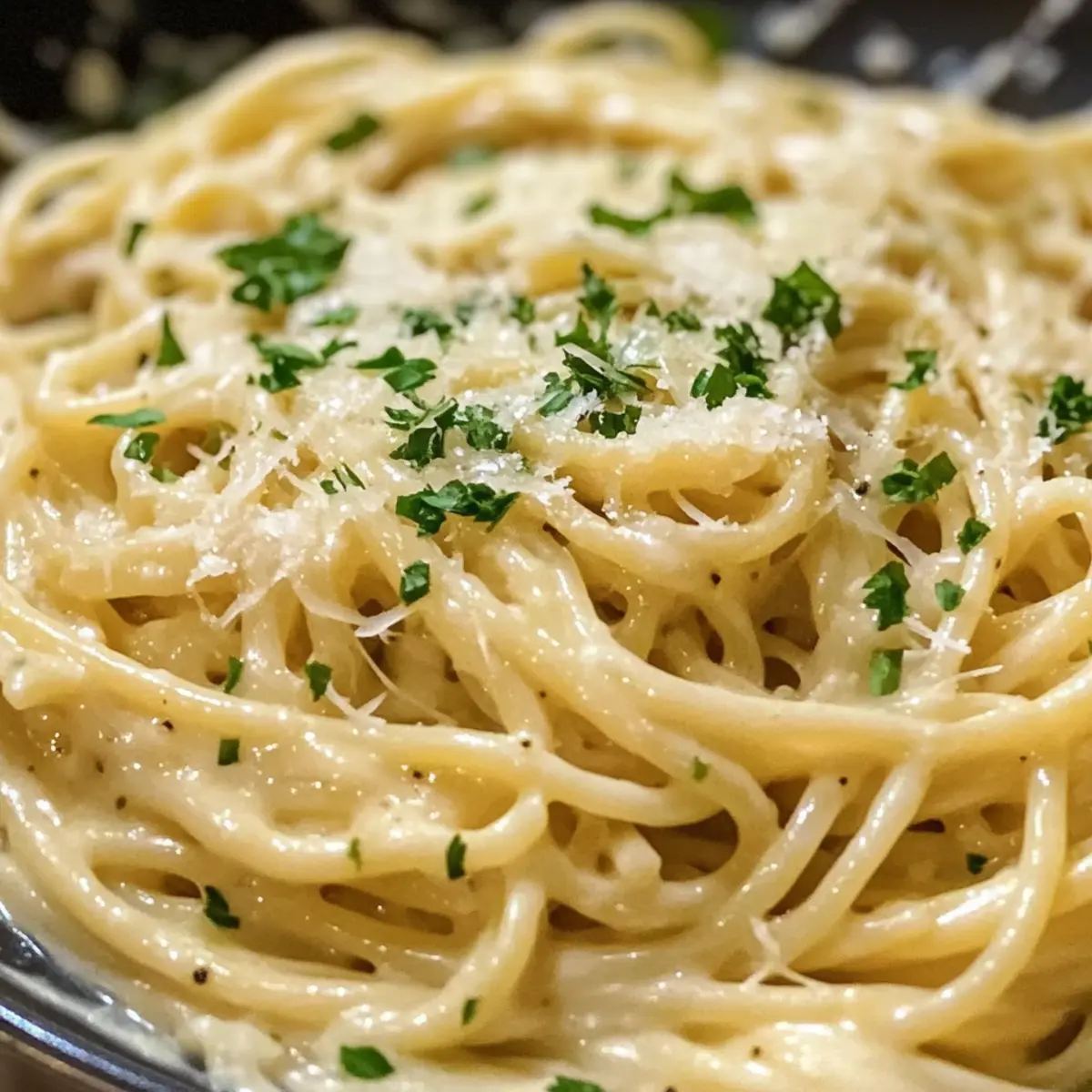 Cremiger Genuss: Mit der Kombination aus frischem Knoblauch und reichem Parmesan entsteht eine unwiderstehlich cremige Sauce, die perfekt am Pasta haftet.