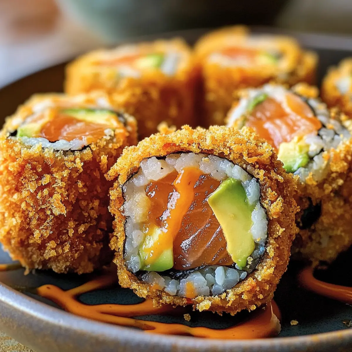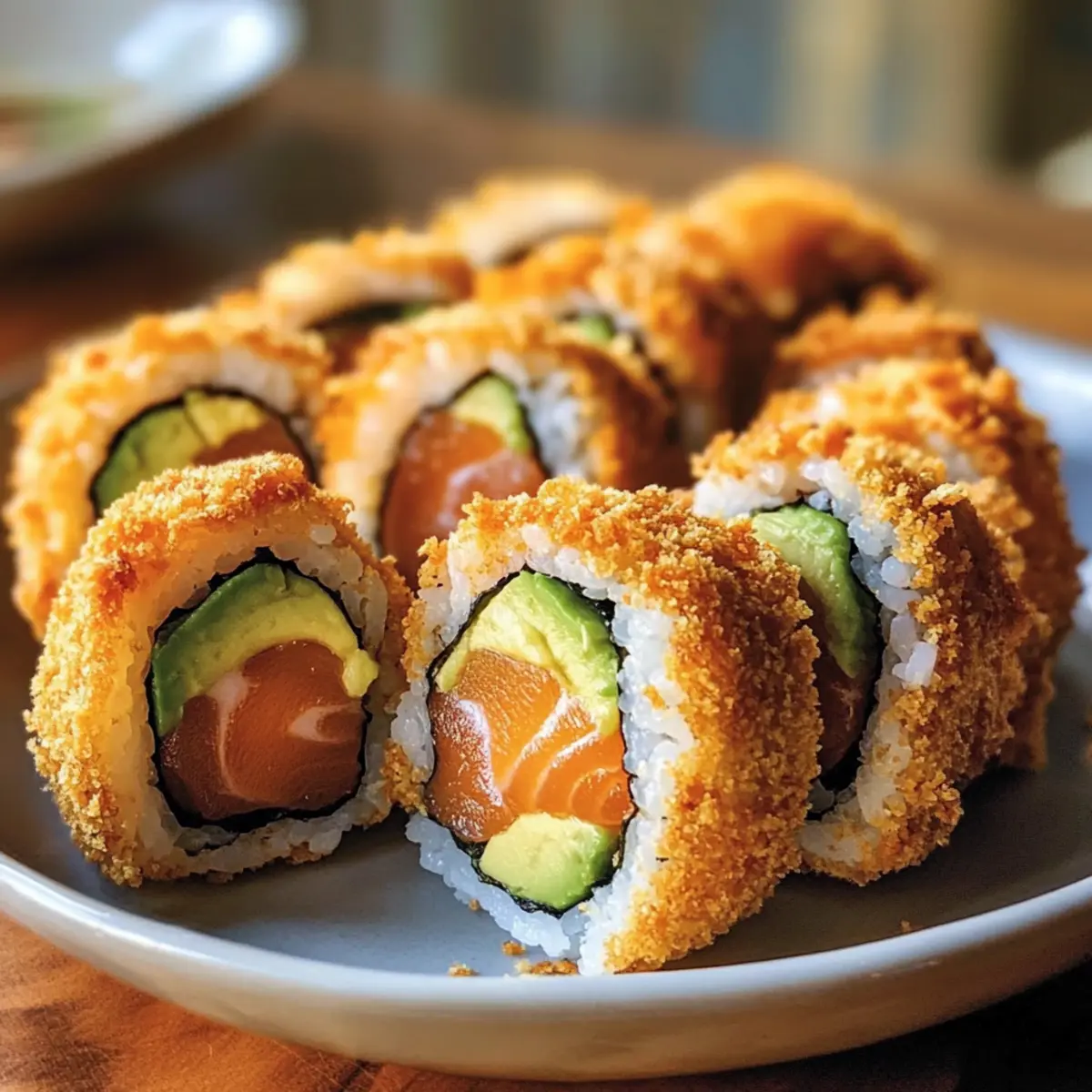 Die knusprige Textur dieser gebratenen Lachs- und Avocado-Rollen wird jeden Feinschmecker begeistern. Mit ihrem goldenen, knackigen Äußeren und der zarten Füllung aus frisch verarbeitetem Lachs und cremiger Avocado sind diese Rollen eine unschlagbare Kombination, die perfekt für ein geselliges Abendessen oder einen besonderen Anlass ist. Mit dieser einfachen Anleitung gelingt dir das Frittieren von Sushi-Rollen zu Hause, und du kannst dich auf eine köstliche Geschmacksexplosion freuen, die nicht fettig ist! Und das Beste daran? Diese knusprigen Leckerbissen sorgen nicht nur für Staunen bei deinen Gästen, sondern sind auch ein nährstoffreicher Snack voller gesunder Fette und Proteine. Bist du bereit, deine eigenen Sushi-Kreationen mit diesem Rezept zum Leben zu erwecken?