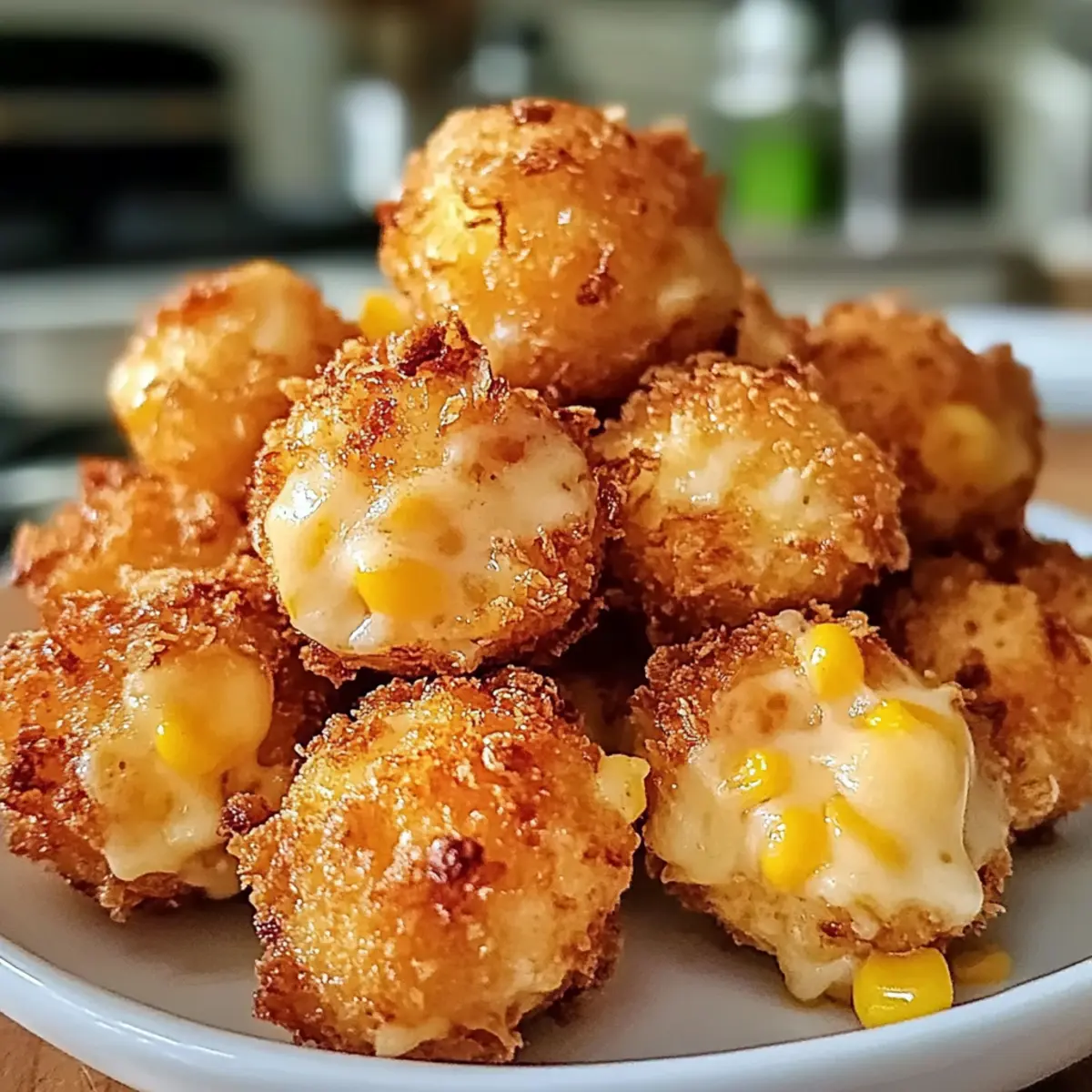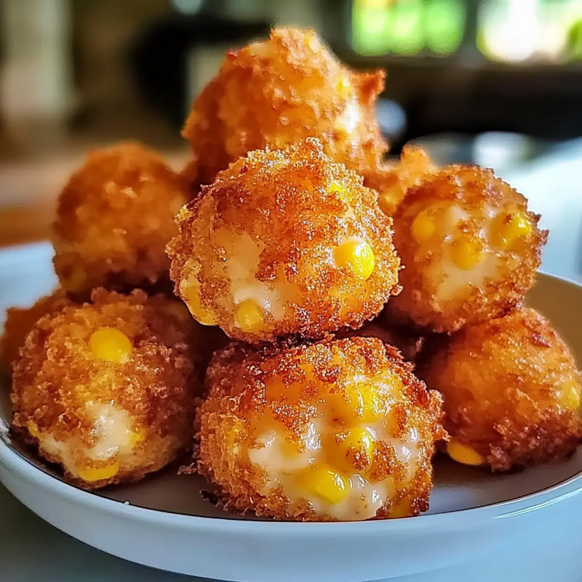 Es war der erste sonnige Tag des Frühlings, als ich die Idee für meine knusprigen Mais-Käse-Bissen hatte. Diese kleinen Snacks vereinen den süßen Geschmack von Mais mit dem schmelzenden Genuss von Käse, alles eingehüllt in eine wunderbar knusprige Hülle. Perfekt für entspannte Abende mit Freunden oder einfach als schnelle Feierabend-Snack, sind sie auch ideal für all jene, die auf der Suche nach schnellen Rezepten sind, die sich kinderleicht zubereiten lassen. Zudem gibt es glutenfreie Alternativen und gesunde Backmethoden, die jeden Anspruch erfüllen. Wer kann da schon widerstehen? Ich kann Ihnen sagen, diese Bissen sind nicht nur ein Hit bei den Kleinen, sondern begeistern auch die Großen! Neugierig, wie Sie diese köstlichen Snacks zubereiten können? Warum sind knusprige Mais-Käse-Bissen so beliebt? Einfachheit trifft Geschmack: Die Zubereitung dieser Bissen ist blitzschnell und erfordert nur wenige Grundzutaten. Vielseitigkeit: Sie können mit verschiedenen Käsesorten und Gemüsevariationen experimentieren, um Ihren persönlichen Favoriten zu finden. Gesundheitsbewusste Optionen: Ob glutenfrei oder im Airfryer zubereitet, dieser Snack passt zu jedem Ernährungsstil. Perfekte Ergänzung für jede Feier: Diese Bissen sind ein echter Publikumsmagnet – sowohl bei Kindern als auch bei Erwachsenen! Verfeinern Sie sie mit leckeren Dips wie Ketchup oder süßem Chili, um das Geschmackserlebnis zu steigern. Probieren Sie auch meine Honig Butter Reis Kekse für einen süßen Abschluss! Knusprige Mais-Käse-Bissen Zutaten Für den Teig: Canned Corn – Der Hauptbestandteil, der Süße liefert; vor der Verwendung gut abtropfen lassen für die beste Textur. Shredded Cheese – Fügt Cremigkeit und Geschmack hinzu; verwenden Sie Mozzarella für eine dehnbare Textur oder Cheddar für einen scharfen Geschmack. All-Purpose Flour – Bindet die Zutaten; kann durch glutenfreies Mehl ersetzt werden, um eine glutenfreie Version zuzubereiten. Breadcrumbs – Schafft eine knusprige Oberfläche beim Frittieren oder Backen; Panko sorgt für zusätzlichen Crunch. Egg – Wirkt als Bindemittel; im veganen Rezept kann ein Flachsei verwendet werden. Für die Gewürze: Spices (Paprika, Pepper, Salt) – Verbessert den Geschmack; nach persönlichem Geschmack anpassen. Vegetable Oil or Canola Oil – Wird zum Frittieren verwendet; kann durch Olivenöl für eine gesündere Option ersetzt werden. Diese knusprigen Mais-Käse-Bissen sind nicht nur köstlich, sondern auch leicht zuzubereiten und bieten verschiedene Möglichkeiten der Anpassung, um jedem Geschmack gerecht zu werden! Schritt-für-Schritt-Anleitung für knusprige Mais-Käse-Bissen Step 1: Mais vorbereiten Lassen Sie den Dosenmais gut abtropfen und geben Sie ihn in eine große Schüssel. Zerdrücken Sie den Mais leicht mit einer Gabel, sodass er etwas zerkleinert, aber nicht vollständig püriert wird. Dies hilft, eine bessere Textur für die knusprigen Mais-Käse-Bissen zu erzielen, wenn Sie sie später formen. Step 2: Feuchte Zutaten kombinieren Fügen Sie das Ei zu dem zerdrückten Mais in der Schüssel hinzu. Rühren Sie die Mischung gut durch, bis das Ei gleichmäßig verteilt ist und sich mit dem Mais verbindet. Diese Mischung wird die Basis für Ihre köstlichen knusprigen Bissen bilden. Step 3: Trockene Zutaten und Käse mischen In einer separaten Schüssel kombinieren Sie das Mehl, die Paniermehl und die Gewürze wie Paprika, Pfeffer und Salz. Mischen Sie alles gründlich, bis die trockenen Zutaten gut vermischt sind. Diese Mischung sorgt für die perfekte Bindung und den knusprigen Überzug der knusprigen Mais-Käse-Bissen. Step 4: Maismischung einarbeiten Geben Sie die feuchte Maismischung in die Schüssel mit den trockenen Zutaten. Vermengen Sie alles gründlich, bis eine gleichmäßige Masse entsteht. Achten Sie darauf, dass sich die Zutaten gut verbinden und die Masse nicht zu feucht oder bröckelig bleibt. Step 5: Bissen formen Nehmen Sie mit Ihren Händen portionsweise die Mischung und formen Sie kleine Bällchen oder Patties. Die Größe sollte ungefähr einem Golfball entsprechen. Achten Sie darauf, dass sie gut zusammenhalten, damit die knusprigen Mais-Käse-Bissen beim Kochen nicht zerfallen. Step 6: Zubereitung vorbereiten Wählen Sie, ob Sie die Bissen frittieren oder backen möchten. Wenn Sie frittieren, erhitzen Sie das Öl in einer tiefen Pfanne auf mittlere Hitze. Möchten Sie sie backen, heizen Sie den Ofen auf 200°C vor und legen Sie ein Backblech mit Backpapier aus. Step 7: Frittieren oder Backen Für das Frittieren geben Sie die geformten Bissen vorsichtig in das heiße Öl und frittieren sie etwa 3-4 Minuten lang pro Seite, bis sie goldbraun und knusprig sind. Wenn Sie sie backen, legen Sie die Bissen auf das vorbereitete Backblech, sprühen Sie sie leicht mit Öl ein und backen Sie sie 20-25 Minuten lang, bis sie knusprig sind. Step 8: Abkühlen lassen und servieren Wenn die knusprigen Mais-Käse-Bissen fertig sind, nehmen Sie sie aus dem Öl oder dem Ofen und lassen Sie sie einige Minuten auf einem Kuchengitter abkühlen. Dies sorgt dafür, dass sie knusprig bleiben. Servieren Sie die Bissen warm mit Ihrem Lieblingsdip und genießen Sie den köstlichen Geschmack! Variationen von knusprigen Mais-Käse-Bissen Entdecken Sie kreative Wege, um Ihre knusprigen Mais-Käse-Bissen individuell zu gestalten! Glutenfrei: Ersetzen Sie das Allzweckmehl durch glutenfreies Mehl, um diese Snacks für alle zugänglich zu machen. Perfekt für Gäste mit speziellen Ernährungsbedürfnissen! Vegan: Verwenden Sie anstelle des Eies ein Flachsei aus geschroteten Leinsamen. Sie erhalten eine geile Bindung und alles bleibt vegan. Diese Option begeistert nicht nur Veganer! Schärfer: Fügen Sie gehackte Jalapeños oder Chili-Flocken hinzu, um den Bissen eine würzige Note zu verleihen. Ideal für alle, die den Kick lieben! Gemüsereiche: Mischen Sie gewürfelte Paprika oder grüne Zwiebeln in die Mischung für zusätzliche Frische un