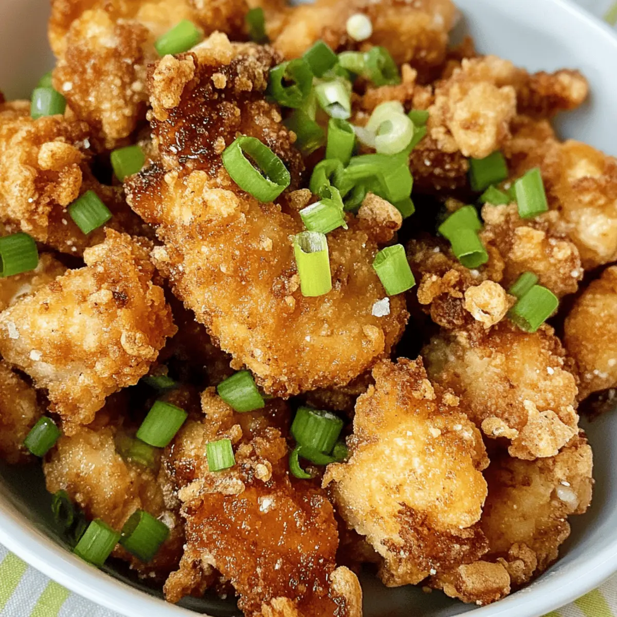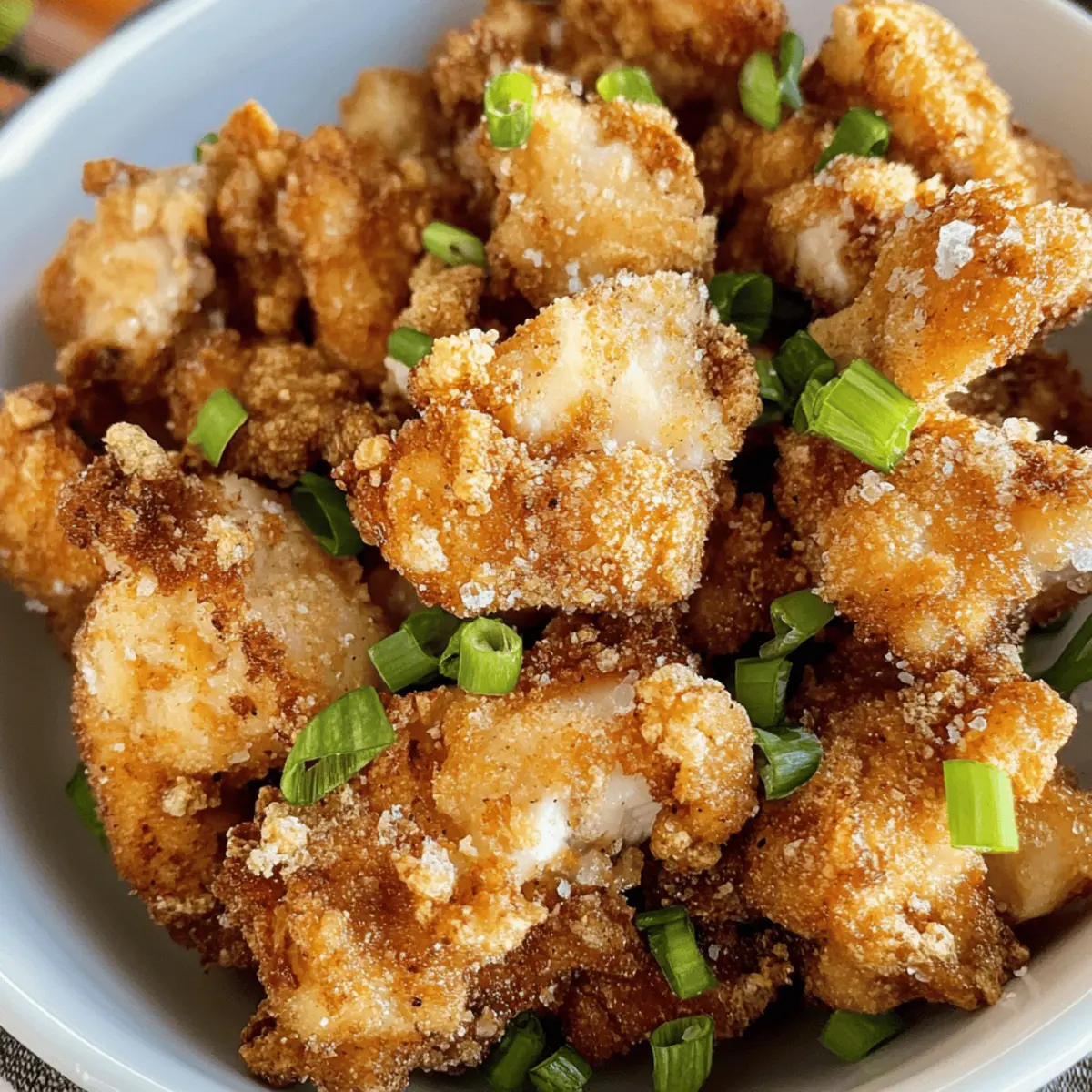 Die köstliche Kombination aus knusprigen Hühnchenstücken, die mit Salz und Pfeffer gewürzt sind, steckt voller Geschmack und erinnert an den unverwechselbaren Genuss von chinesischem Takeout. Mit nur 15-30 Minuten Marinierzeit ist das Rezept für das Crispy Salt and Pepper Chicken die perfekte Wahl für einen schnellen, aber dennoch schmackhaften Wochentagsabend. Besonders praktisch ist, dass sich dieses Gericht leicht zubereiten lässt und sowohl in einer geselligen Runde als auch als schnelles Abendessen für sich selbst begeistert. Stellen Sie sich vor, wie das knusprige Hühnchen sanft auf Ihrer Zunge schmilzt, während die gewürzte Kruste einen unwiderstehlichen Crunch liefert. Neugierig auf die Geheimnisse, die hinter diesem Rezept stecken? Lassen Sie uns loslegen! Warum wirst du dieses Rezept lieben? Einfachheit: Die Zubereitung ist unkompliziert und benötigt nur grundlegende Kochfähigkeiten. Köstlicher Geschmack: Die perfekte Kombination aus Salz und Pfeffer verleiht dem Hühnchen eine unverwechselbare Würze, die jeden begeistert. Vielseitigkeit: Dieses Rezept lässt sich leicht anpassen – probiere verschiedene Gewürze oder füge Gemüse hinzu, um deiner Kreativität freien Lauf zu lassen! Schnell zubereitet: In weniger als 30 Minuten hast du ein schmackhaftes Gericht auf dem Tisch, ideal für stressige Wochentage. Crowd-Pleaser: Egal, ob du Familie oder Freunde bekochst, jeder wird um Nachschlag bitten! Für eine erfrischende Ergänzung zum Abendessen, schau dir auch unser Sago Rezept Erfrischendes oder die Spinat Feta Quesadillas an. Zutaten für das Knusprige Salz- und Pfeffer-Hühnchen • Perfekt für dein nächstes Dinner! Für das Hühnchen Hähnchenbrust – Hauptproteinquelle; in mundgerechte Stücke schneiden für gleichmäßiges Garen. Für mehr Saftigkeit können auch Hähnchenschenkel verwendet werden. Ei – Bindet die Stärke am Hühnchen für eine knusprige Panade; als Ei-Ersatz eignet sich ein Leinsamen-Ei für eine vegane Variante. Speisestärke – Sorgt für eine knusprige Textur beim Frittieren; kann durch Pfeilwurzmehl für eine glutenfreie Option ersetzt werden. Pflanzenöl – Notwendig zum Frittieren; wähle ein Öl mit hohem Rauchpunkt wie Raps- oder Erdnussöl. Salz – Hebt den Geschmack des Hühnchens hervor; nach Geschmack anpassen oder fettarme Optionen verwenden, wenn gewünscht. Pfeffer – Fügt eine würzige Note hinzu; frisch gemahlener schwarzer Pfeffer hat ein besseres Aroma als vorgebackener. Frühlingszwiebeln – Für die Garnitur; gibt Frische dazu. Bei Bedarf mit Schnittlauch ersetzen. Knoblauch – Sorgt für einen intensiven Geschmack in der Marinade; frischer Knoblauch ist empfehlenswert, aber Knoblauchpulver kann in der Not verwendet werden. Brauner Zucker – Balanciert die Salzigkeit aus; kann durch Honig für ein anderes Geschmacksprofil ersetzt werden. Wasser – Dient zum Verdünnen der Marinade; keine spezifischen Ersatzstoffe notwendig. Reiswein – Verleiht einen authentischen Geschmack; kann durch Weißwein ersetzt oder für eine einfachere Marinade weggelassen werden. Backsoda – Zartet das Hühnchen und sorgt für einen saftigen Biss; optional, kann weggelassen werden. Schritt-für-Schritt-Anleitung für das Knusprige Salz- und Pfeffer-Hühnchen Step 1: Hühnchen marinieren In einer großen Schüssel Knoblauch, Salz, braunen Zucker, Wasser, Reiswein und Backsoda gut vermischen. Fügt die Hähnchenstücke hinzu und rührt um, bis sie gleichmäßig bedeckt sind. Deckt die Schüssel ab und lasst das Hühnchen für 30 Minuten marinieren, damit die Aromen gut einziehen können. Step 2: Panade vorbereiten In einer separaten Schüssel das Ei aufschlagen und gut verquirlen. Nachdem das Hühnchen mariniert ist, lasst die überschüssige Marinade abtropfen. Gebt das Hühnchen in die Schüssel mit dem geschlagenen Ei und mischt es gründlich durch, bevor ihr die Speisestärke hinzufügt. Sorgt dafür, dass jedes Stück Hühnchen gleichmäßig mit der Stärke bedeckt ist. Step 3: Hühnchen frittieren Erhitzt in einem Wok oder einer tiefen Pfanne das Pflanzenöl bei mittlerer bis hoher Temperatur. Wenn das Öl heiß genug ist (ca. 180 °C), gebt die Hähnchenstücke portionsweise hinein. Frittier das Hühnchen für etwa 4-5 Minuten pro Portion, bis es goldbraun und knusprig ist, und achtet darauf, die Pfanne nicht zu überfüllen. Step 4: Würzen und servieren Lasst das fertig frittierte Hühnchen auf Küchenpapier abtropfen, um überschüssiges Öl zu entfernen. Gebt es dann zurück in den Wok und werft es schnell mit Salz und frisch gemahlenem Pfeffer. Verziert das Gericht mit gehackten Frühlingszwiebeln und serviert es heiß als köstliches knuspriges Salz- und Pfeffer-Hühnchen. Vorbereitung für stressfreies Kochen Diese Knusprigen Salz- und Pfeffer-Hühnchen sind ideal für die Vorbereitung im Voraus! Du kannst das Hühnchen bis zu 24 Stunden im Voraus marinieren, damit die Aromen gut einziehen und das Fleisch besonders zart wird. Einfach das Hühnchen mit der Marinade in einem luftdichten Behälter im Kühlschrank aufbewahren. Für die Panade kannst du die Zutaten – Ei und Speisestärke – ebenfalls im Voraus vorbereiten: Schlage das Ei und bewahre es in einem separaten Behälter auf. Wenn du bereit bist, zu servieren, nimm das mariniertes Hühnchen, wälze es in dem Ei und der Speisestärke, und frittiere es wie gewohnt. Achte darauf, dass das Öl heiß genug ist, um die Knusprigkeit zu gewährleisten – so wirst du ein genauso leckeres Ergebnis erzielen wie frisch zubereitet! Lagerungstipps für Knuspriges Salz- und Pfeffer-Hühnchen Kühlschrank: Bewahre übrig gebliebenes Hühnchen in einem luftdichten Behälter im Kühlschrank auf, wo es bis zu 3 Tage frisch bleibt. Gefrierer: Das Knusprige Salz- und Pfeffer-Hühnchen kann bis zu 2 Monate eingefroren werden. Stelle sicher, dass es gut verpackt ist, um Gefrierbrand zu vermeiden. Aufwärmen: Um die Knusprigkeit zu erhalten, erwärmst du das Hühnchen am best