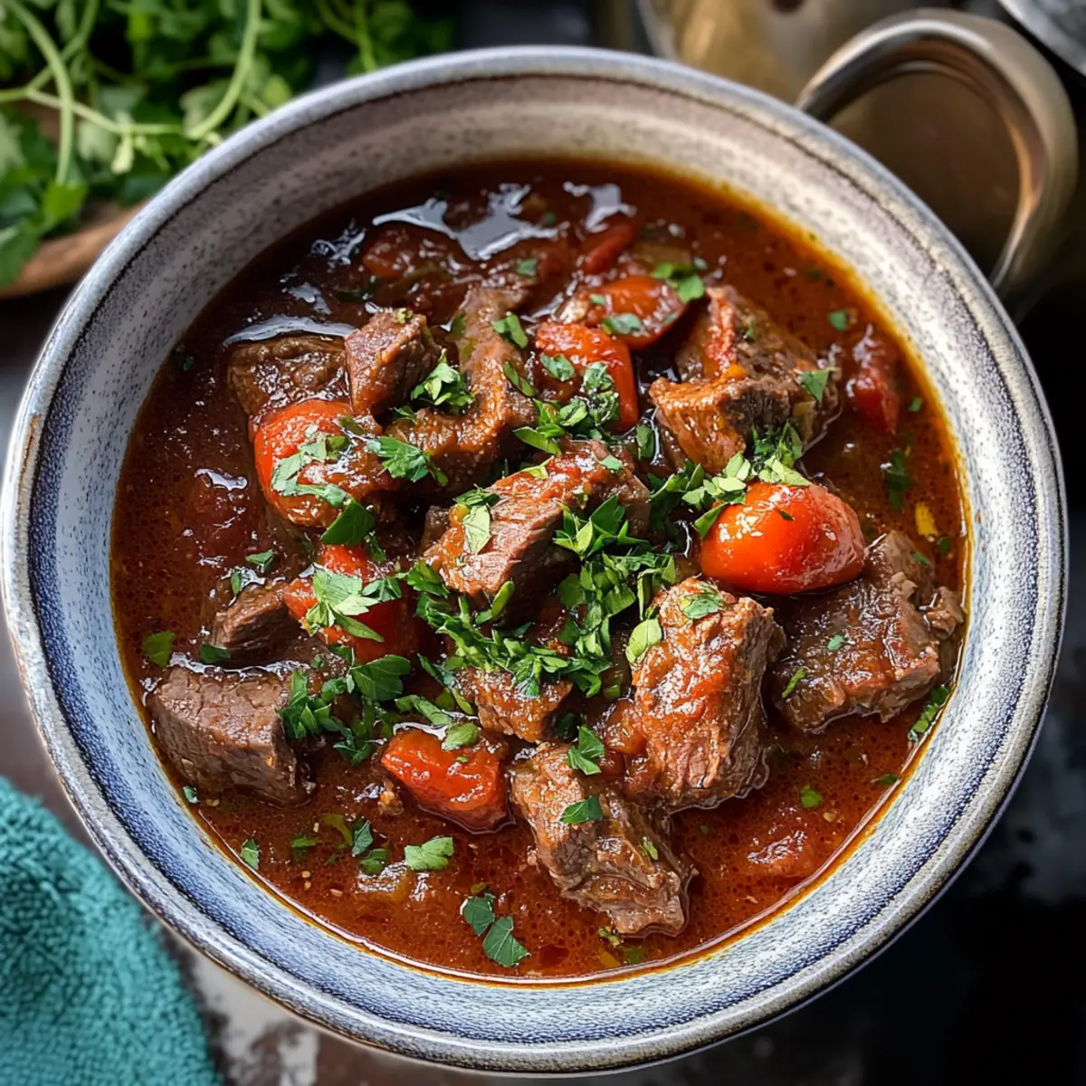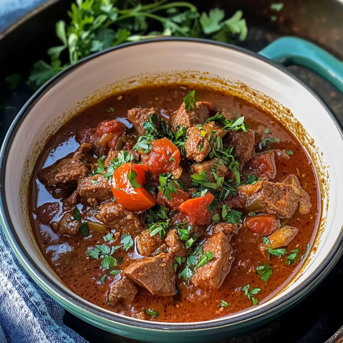 Als die Kälte draußen an die Fenster klopft und die Abende länger werden, wünsche ich mir oft den wärmenden Komfort eines traditionellen Gerichts. So entdeckte ich Kokkinisto, ein herzhaftes griechisches Rindergulasch, das nicht nur den Magen, sondern auch die Seele wärmt. Diese köstliche Stew besteht aus zartem Fleisch, umhüllt von einer reichhaltigen Tomatensauce, die mit Zimt und Nelken verfeinert ist. Mit nur wenigen Zutaten lässt sich dieses Gericht kinderleicht zubereiten, egal ob im Instant Pot, Slow Cooker oder auf dem Herd. Ein weiterer Vorteil? Kokkinisto ist vielseitig: Du kannst ihn im Voraus zubereiten und immer wieder genießen. Bereitest du dich darauf vor, deine Küche in ein duftendes griechisches Restaurant zu verwandeln? Warum wirst du Kokkinisto lieben? Herzhaftes Wohlfühlessen: Kokkinisto ist der Inbegriff von Comfort Food – perfekt für kalte Nächte und wärmende Umarmungen auf dem Teller. Einfache Zubereitung: Mit wenigen Zutaten und einfachen Schritten gelingt dir dieses Gericht im Handumdrehen. Vielseitig einsetzbar: Ob im Instant Pot, Slow Cooker oder auf dem Herd – du hast die Wahl! Wunderbare Aromen: Die Kombination aus Tomaten, Zimt und Nelken sorgt für eine geschmackliche Explosion. Zufriedenheit garantiert: Dieses Rezept wird deine Familie und Freunde begeistern und lässt sich hervorragend mit Beilagen wie Pasta Zitronen Knoblauch kombinieren. Perfekt, um den Alltag zu bereichern! Kokkinisto Zutaten Für das Fleisch Rindfleisch (3 Pfund/1,3 kg, gewürfelt) – Ideal sind Rinderbraten oder Schmorstücke für maximale Zartheit. Für die Sauce Olivenöl – Verleiht dem Gericht Reichhaltigkeit. Kann durch Kochspray für eine leichtere Variante ersetzt werden. Schalotten oder Zwiebel (5 Schalotten oder 1 große Zwiebel, gewürfelt) – Für zusätzlichen Geschmack; bei Bedarf können gelbe oder weiße Zwiebeln verwendet werden. Knoblauch (3 Zehen, gehackt) – Für eine tiefere Geschmacksnote; frischer Knoblauch hat das beste Aroma. Tomatenmark (4 EL) – Intensiviert den Tomatengeschmack und hilft, die Sauce zu binden. Zerdrückte oder gehackte Tomaten (14 oz / 400g) – Bildet die Basis der Sauce; frische Tomaten können ebenfalls verwendet werden. Rinderbrühe (½ Tasse / 125 ml) – Für zusätzliche Tiefe; selbstgemachte Brühe ist bevorzugt, funktioniert aber auch mit gekaufter. Rotwein (½ Tasse / 125 ml) – Trägt entscheidend zum Geschmack und zur Säure bei; benutze einen mittel-trockenen Wein. Für die Gewürze Zimtstange (1 große) – Fügt Wärme und Tiefe hinzu; ein Muss für die traditionelle Zubereitung von Kokkinisto! Lorbeerblatt (1) – Gibt eine subtile aromatische Note. Gemahlene Nelken (¼ TL) – Sorgt für eine wohltuende, würzige Note; kann durch Piment ersetzt werden. Salz (1 TL) – Wichtig zur Geschmacksverstärkung; nach Geschmack anpassen. Gemahlener Pfeffer (¼ TL) – Frisch gemahlen ist am besten. Für die Garnitur Petersilie (2 EL, gehackt) – Für Frische und als schöne Dekoration. Bereite dich darauf vor, dein eigenes Kokkinisto zu kreieren und genieße ein Gericht, das nicht nur den Gaumen erfreut, sondern auch die Seele wärmt! Schritt-für-Schritt-Anleitung für Kokkinisto Step 1: Fleisch anbraten Erhitze in einem großen gusseisernen Topf oder einer Pfanne bei mittlerer Hitze etwas Olivenöl. Brate das gewürfelte Rindfleisch in kleinen Portionen für etwa 5–7 Minuten pro Charge an, bis es auf allen Seiten schön braun ist. Achte darauf, das Fleisch nicht zu überfüllen, damit es gleichmäßig bräunt. Nimm das angebratene Fleisch aus der Pfanne und stelle es beiseite. Step 2: Aromaten anbraten Im selben Topf füge die gewürfelten Schalotten und den Zucker hinzu und brate sie bei mittlerer Hitze für etwa 3–5 Minuten, bis sie weich und golden sind. Gebe dann den gehackten Knoblauch, das Lorbeerblatt, die Zimtstange, Salz, gemahlene Nelken und Pfeffer dazu und rühre alles für eine weitere Minute um, bis die Aromen freigesetzt werden. Step 3: Zutaten verbinden Füge die zerdrückten Tomaten, das Tomatenmark, die Rinderbrühe und den Rotwein in den Topf hinzu. Vermenge alles gut, damit die Aromen des Kokkinisto sich harmonisch verbinden. Gib das angebratene Rindfleisch zurück in den Topf und rühre erneut um, sodass alles gleichmäßig verteilt ist. Step 4: Kochen Falls du einen Instant Pot verwendest, schließe den Deckel und stelle ihn auf hohe Druckstufe. Koche das Kokkinisto für 45 Minuten, gefolgt von einer natürlichen Druckentlastung für 10 Minuten, bevor du den restlichen Druck manuell ablässt. Wenn du auf dem Herd kochst, lasse das Gericht bei niedriger Hitze 1,5 bis 2 Stunden köcheln, bis das Fleisch zart ist und die Sauce eindickt. Step 5: Fertigstellen Nehme das Kokkinisto vom Herd oder aus dem Instant Pot. Rühre die gehackte Petersilie unter und schmecke das Gericht nach Belieben mit zusätzlichem Salz und Pfeffer ab. Serviere das köstliche griechische Rindergulasch mit Beilagen wie Kartoffelpüree, Reis oder Orzo-Pasta, um das Geschmackserlebnis zu perfektionieren. Was passt perfekt zu Kokkinisto? Genieße die herzhafte Wärme von Kokkinisto, während du es mit köstlichen Beilagen kombinierst, die den Geschmack noch verstärken. Cremiges Kartoffelpüree: Die samtige Textur des Pürees ergänzt die reichhaltige Sauce und macht jeden Bissen zum Erlebnis. Perfekt zum Aufsaugen der Aromen. Orzo-Pasta: Diese kleinen Teigstückchen bieten eine wunderbare Grundlage, um die köstliche Sauce des Kokkinisto aufzunehmen und fügen zusätzlich Substanz hinzu. Knoblauchbrot: Das knusprige, aromatische Brot ist ideal, um die Reste der köstlichen Sauce aufzunehmen. Ein unwiderstehliches Duo für die Geschmacksknospen! Dijon-Senf-Karotten: Gehobelte Karotten, sanft gedünstet und mit einem Hauch von Dijon-Senf, bieten einen frischen Kontrast zu den herzhaften Aromen des Eintopfs. Grünes Salat mit Zitronen-Vinaigrette: Der frische, knackige Salat balanciert die Reichhaltigkeit von Kokkini