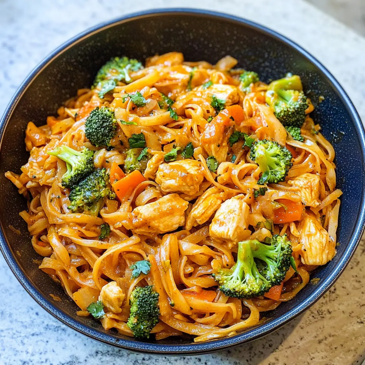 Ja, absolut! Dieses Gericht kann leicht glutenfrei zubereitet werden, indem Sie Tamari anstelle von Sojasauce verwenden und darauf achten, dass die Reisnudeln glutenfrei sind. Es empfiehlt sich auch, beim Kauf der Zutaten auf Allergene zu achten, insbesondere bei Produkten wie Sojasauce oder Currypaste. Wenn Sie auf tierische Produkte verzichten möchten, können Sie das Hühnchen durch Tofu oder eine pflanzliche Proteinquelle ersetzen.