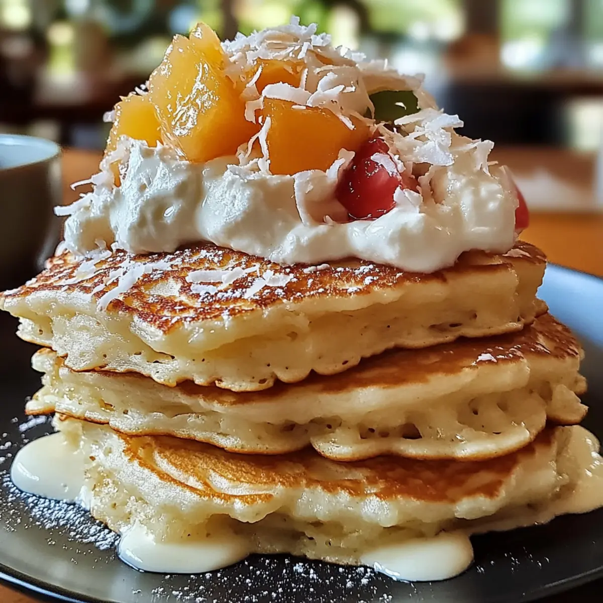 Als ich die Küche betrat, durchströmte der Duft von frisch gebackenem Brot und süßer Kokosnuss die Luft—ein magischer Moment, der mir sofort den Kopf frei machte. Heute teile ich mit euch mein Rezept für Kokosnusscreme Pfannkuchen, eine flauschige, tropische Frühstücksverführung, die nicht nur die Sinne, sondern auch die Seele erfreut. In nur 25 Minuten zubereitet, sind diese Pfannkuchen nicht nur kinderleicht, sondern auch perfekt für die ganze Familie geeignet. Sie bieten den idealen Ausgleich zwischen Genuss und praktischem Kochen, wenn die Morgenstunden mal wieder stressig werden. Wollt ihr euch auch in den schnellen Genuss dieser exotischen Leckerei stürzen? Warum sind Kokosnusscreme Pfannkuchen unwiderstehlich? Einfachheit: Mit nur wenigen Grundzutaten lässt sich ein tropisches Frühstück zaubern, das jeder in der Familie lieben wird. Reichhaltiger Geschmack: Der Geschmack von Kokosnussmilch und süßer Kokosnuss sorgt für ein Geschmackserlebnis, das Sie in die Karibik entführt. Schnelle Zubereitung: In nur 25 Minuten sind diese Pfannkuchen bereit, was sie zur perfekten Lösung für hektische Morgen macht. Vielseitig: Ob mit frischem Obst, joghurt oder Honig – Sie können die Pfannkuchen nach Belieben variieren und anpassen. Perfekte Textur: Die fluffige Konsistenz macht jeden Bissen zu einem Genuss, der sowohl Sättigung als auch Freude bereitet. Fragen Sie sich, wie Sie unvergessliche Frühstücksroutine kreieren können? Diese Kokosnusscreme Pfannkuchen sind der ideale Beginn! Kokosnusscreme Pfannkuchen Zutaten Hinweis: Diese Zutatenliste wird Ihnen helfen, die perfekten Kokosnusscreme Pfannkuchen zuzubereiten. Für den Teig • Allzweckmehl – sorgt für die Struktur, kann auch durch Vollkornmehl ersetzt werden, um eine gesündere Variante zu erhalten. • Zucker – fügt die süße Note hinzu, passen Sie die Menge nach Ihrem persönlichen Geschmack an. • Backpulver – dient als Treibmittel und sorgt für die nötige Fluffigkeit; stellen Sie sicher, dass es frisch ist. • Backsoda – unterstützt das Backpulver, um die Pfannkuchen noch höher zu machen. • Salz – verbessert den Geschmack. • Kokosmilch – ist die Hauptzutat, die für den cremigen Kokosgeschmack sorgt; kann bei Bedarf durch Mandel- oder normale Milch ersetzt werden, aber beachten Sie die Geschmacksänderung. • Großes Ei – verbindet den Teig; für eine vegane Version kann es weggelassen oder durch ein Leinsamen-Ei ersetzt werden. • Geschmolzene Butter – verleiht einen reichhaltigen Geschmack, kann jedoch durch Kokosöl ersetzt werden, um eine milchfreie Variante zu erhalten. • Vanilleextrakt – fügt eine warme Note hinzu und hebt den Kokosgeschmack hervor. • Gesüßte, geraspelte Kokosnuss – sorgt für Textur und zusätzlichen Kokosgeschmack. Schritt-für-Schritt-Anleitung für Kokosnusscreme Pfannkuchen Schritt 1: Trockene Zutaten vermengen In einer großen Schüssel das Allzweckmehl, den Zucker, das Backpulver, das Backsoda und das Salz gründlich miteinander vermengen. Rühren Sie mit einem Schneebesen, bis die Mischung gleichmäßig und klumpenfrei ist. Diese trockenen Zutaten bieten die Basis für die Kokosnusscreme Pfannkuchen und sorgen für die nötige Struktur. Schritt 2: Feuchte Zutaten kombinieren In einer separaten Schüssel die Kokosmilch, das große Ei, die geschmolzene Butter und den Vanilleextrakt gut vermischen. Verwenden Sie einen Schneebesen, um sicherzustellen, dass alles gleichmäßig verbunden ist und eine cremige Textur entsteht. Diese feuchte Mischung bringt den köstlichen Kokosgeschmack in die Pfannkuchen. Schritt 3: Teig zubereiten Gießen Sie die feuchten Zutaten vorsichtig in die Schüssel mit den trockenen Zutaten. Mischen Sie alles sanft, bis es gerade so vereint ist; einige Klumpen sind in Ordnung, da diese für fluffige Kokosnusscreme Pfannkuchen sorgen. Fügen Sie nun die gesüßte, geraspelte Kokosnuss hinzu und heben Sie sie unter, um zusätzliche Textur und Geschmack zu erhalten. Schritt 4: Pfanne erhitzen Erhitzen Sie eine beschichtete Pfanne bei mittlerer Hitze. Fügen Sie einen kleinen Spritzer Öl oder etwas geschmolzene Butter hinzu, um die Oberfläche leicht zu fetten. Wenn einige Tropfen Wasser in der Pfanne zischen, ist sie bereit für das Backen der Pfannkuchen. Schritt 5: Pfannkuchen backen Geben Sie etwa 1/4 Tasse des Teigs in die heiße Pfanne für jeden Pfannkuchen. Lassen Sie den Teig backen, bis sich kleine Blasen auf der Oberfläche bilden und die Ränder leicht fest werden – das dauert etwa 2 bis 3 Minuten. Wenn dies passiert, wenden Sie die Pfannkuchen vorsichtig um und backen Sie sie für weitere 1 bis 2 Minuten, bis sie goldbraun sind. Schritt 6: Servieren und genießen Die fertigen Kokosnusscreme Pfannkuchen warm servieren. Genießen Sie sie pur oder mit einer Portion Kokoscreme, Sirup und frischen Früchten. Diese tropischen Leckereien sind nicht nur ein Höhepunkt beim Frühstück, sondern auch eine Freude für die gesamte Familie! Kokosnusscreme Pfannkuchen vorausschauend vorbereiten Die Kokosnusscreme Pfannkuchen sind ideal für alle, die ihre Frühstückszeit effektiv nutzen möchten! Sie können den Teig bis zu 24 Stunden im Voraus zubereiten und im Kühlschrank aufbewahren, um den Stress an einem hektischen Morgen zu verringern. Achten Sie darauf, den Teig in einem luftdichten Behälter zu lagern, um die Frische zu erhalten; ein leichtes Umrühren vor dem Backen ist ebenfalls hilfreich, um die Konsistenz wiederherzustellen. Alternativ können übrig gebliebene Pfannkuchen bis zu drei Tage im Kühlschrank gelagert oder eingefroren werden, indem Sie Schichten aus Backpapier zwischen den Pfannkuchen verwenden, um ein Festkleben zu vermeiden. Wenn Sie bereit sind, servieren Sie die Pfannkuchen einfach in der Pfanne bei mittlerer Hitze, bis sie wieder warm und goldbraun sind. So genießen Sie jederzeit das tropische Frühstückserlebnis der Kokosnusscreme Pfannkuchen! Lagerungstipps für Kokosnusscreme Pfa