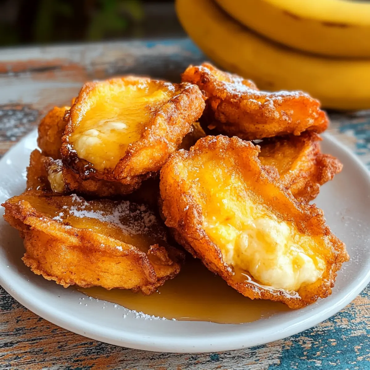 • Garnieren für den letzten Schliff: Garnisere die fertigen Aborrajados mit Puderzucker und einem Honig- oder Sirup-Topping, um den perfekten süßen Abschluss zu erzielen!