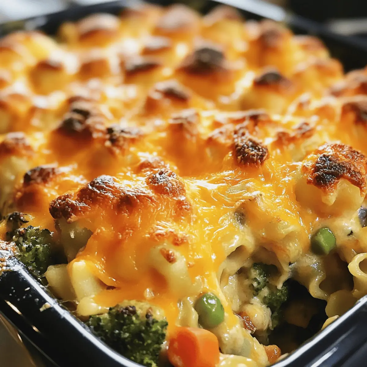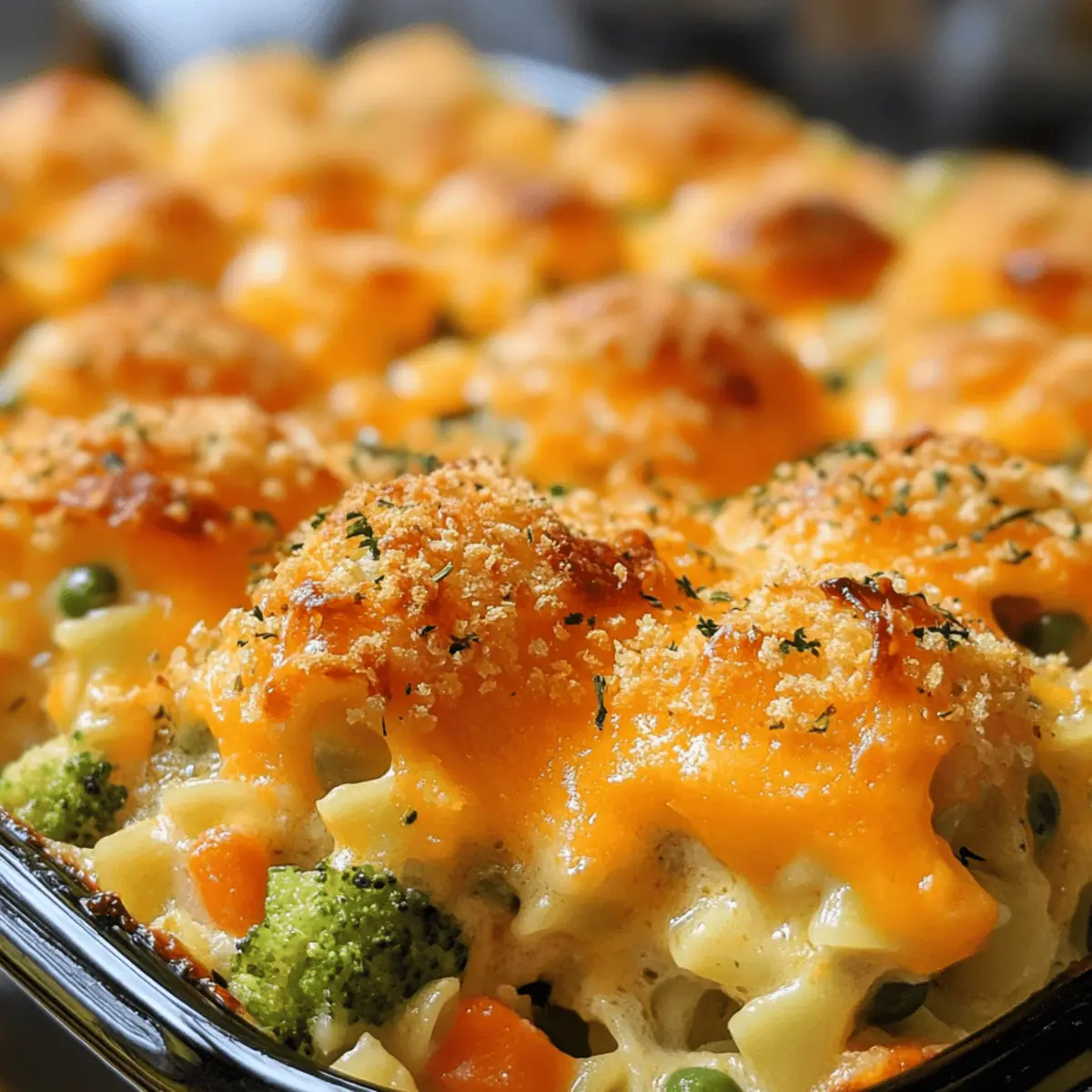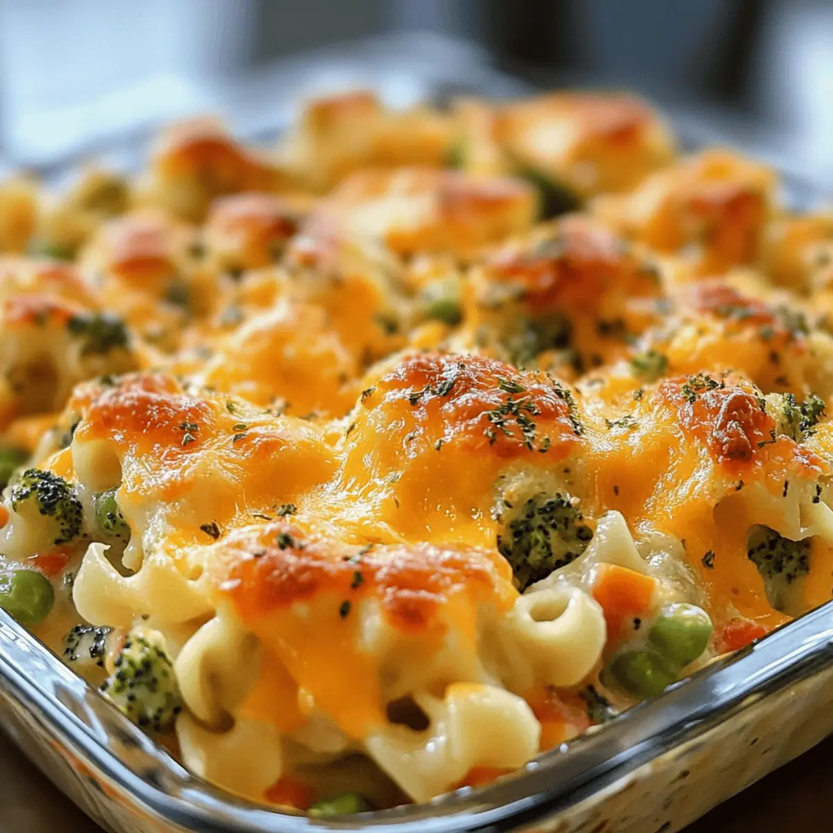 Es gibt nichts Beruhigenderes als die Vorstellung, an einem kühlen Abend ein warmes, herzhaftes Gericht zu genießen. Mein Ultimate Comfort Food Casserole ist genau das – eine wohlige Umarmung in Form von Essen, die jeden bei Tisch zusammenbringt. Diese einfache Rezeptur kombiniert geschmolzenen Käse, zarte Nudeln und eine köstliche Mischung aus Fleisch und Gemüse, um eine wahre Gaumenfreude zu schaffen. Die Zubereitung ist schnell und unkompliziert, sodass du mehr Zeit mit deinen Liebsten verbringen kannst, anstatt dich in der Küche abzuplagen. Es ist das perfekte Gericht für jeden Anlass und wird garantiert zum neuen Favoriten deiner Familie. Bist du bereit, diesen kulinarischen Genuss auszuprobieren? Warum wirst du dieses Rezept lieben? Einfachheit: Die Zubereitung ist unkompliziert und benötigt nur grundlegende Kochkenntnisse, damit jeder diese köstlichen Aromen genießen kann. Alleskönner: Variiere das Rezept mit verschiedenen Käsesorten oder Gemüsen, um es deiner Familie noch schmackhafter zu machen. Wie wäre es mit Kaesebroetchen Philly Cheesesteak? Gemütlichkeit: Diese herzhafte Kombination aus Nudelauflauf und geschmolzenem Käse sorgt für warme, nostalgische Erinnerungen beim Essen. Schnelles Kochen: Bereite das Gericht in nur 30-35 Minuten zu und genieße mehr Zeit mit deinen Liebsten. Familienfreundlich: Bring die ganze Familie zusammen und mache es bei jedem Anlass zum Hauptgericht! Zutaten für den Auflauf • Probier dieses herzhaftes Komfort Lebensmittel Rezept! Für die Fleischbasis Rinderhackfleisch – sorgt für die Hauptproteinzufuhr und kann durch gemahlenen Truthahn ersetzt werden, um es leichter zu machen. Für die Sauce Cheddar Käse – fügt Cremigkeit und Geschmack hinzu; verwende Mozzarella für einen milderen Geschmack oder veganen Käse für eine laktosefreie Option. Dose Rahm von Champignon-Suppe – fungiert als Bindemittel und sorgt für Feuchtigkeit; kann durch eine hausgemachte weiße Sauce ersetzt werden, um einen frischeren Geschmack zu erzielen. Für die Füllung Gefrorenes gemischtes Gemüse – bringt Nährstoffe und Textur; frisches Gemüse wie Paprika oder Brokkoli können je nach Verfügbarkeit verwendet werden. Eiernudeln – bilden die Basis und geben Struktur; glutenfreie Nudeln können als Alternative für glutenempfindliche Personen verwendet werden. Für die Würze Zwiebel (gewürfelt) – bietet Aromatik und Tiefe, geschmacklich sind auch Schalotten oder Lauch eine gute Wahl. Knoblauch (gehackt) – verstärkt den Geschmack des Gerichts; trockener Knoblauch kann als Ersatz genutzt werden, wenn nötig. Schritt-für-Schritt-Anleitung für Herzhaftes Komfort Lebensmittel Auflauf Step 1: Ofen vorheizen Heize den Ofen auf 175°C (350°F) vor. Diese Temperatur ist ideal, um den Auflauf gleichmäßig zu garen und eine köstlich goldene Kruste zu erzielen. Während der Ofen vorheizt, kannst du die Vorbereitung für die anderen Schritte abschließen. Step 2: Fleisch anbraten Erhitze eine große Pfanne auf mittlerer Stufe und gebe das Rinderhackfleisch hinzu. Brate es für etwa 5-7 Minuten an, bis es gut durchgegart und leicht gebräunt ist. Achte darauf, das Fleisch mit einem Kochlöffel zu zerteilen, damit es gleichmäßig bräunt und keine Klumpen entstehen. Lass überschüssiges Fett abtropfen. Step 3: Zwiebeln und Knoblauch hinzufügen Füge die gewürfelte Zwiebel und den gehackten Knoblauch in die Pfanne mit dem angebratenen Fleisch hinzu. Koche alles für weitere 3-4 Minuten, bis die Zwiebeln weich und durchsichtig sind. Der Duft von Zwiebeln und Knoblauch wird dein Zuhause mit einem einladenden Aroma erfüllen. Step 4: Weitere Zutaten einrühren Rühre die Dose Rahm von Champignon-Suppe, die vorgekochten Eiernudeln und das gefrorene gemischte Gemüse in die Pfanne ein. Mische alles gut durch und lasse es für ca. 2-3 Minuten kochen, bis alles schön verbunden und erhitzt ist. Diese Kombination bringt die wohltuenden Aromen des herzhaften Komfort Lebensmittel Auflaufs zusammen. Step 5: In die Auflaufform übertragen Nehme eine gefettete Auflaufform und gebe die Mischung gleichmäßig hinein. Verteile die Zutaten so, dass eine gleichmäßige Schicht entsteht, um ein beständiges Backen im Ofen zu gewährleisten. Achte darauf, dass die Mischung gleichmäßig in der Form verteilt ist, damit sie überall schön durchgart. Step 6: Mit Käse dekorieren Streue eine großzügige Schicht geriebenen Cheddar Käse über die Füllung in der Auflaufform. Der Käse wird beim Backen schmelzen und eine köstliche, goldene Kruste bilden. Achte darauf, dass jeder Bereich der Füllung mit Käse bedeckt ist, um einen köstlichen geschmolzenen Belag zu garantieren. Step 7: Backen Schiebe die Auflaufform in den vorgeheizten Ofen und backe den Auflauf für 30-35 Minuten. Achte darauf, dass der Käse sprudelt und eine goldbraune Farbe annimmt. Dies ist das Zeichen, dass dein herzhaftes Komfort Lebensmittel Auflauf fertig ist und darauf wartet, serviert zu werden. Step 8: Abkühlen lassen Lass den Auflauf nach dem Backen für einige Minuten abkühlen, bevor du ihn servierst. Dies gibt dem Gericht Zeit, sich zu setzen und erleichtert das Portionieren. Der Auflauf wird weiterhin warm und lecker sein und die Vorfreude auf ein herzhaftes Essen steigern. Was passt zu Herzhaftes Komfort Lebensmittel Auflauf? Es gibt nichts Schöneres, als dein perfektes Gericht für ein herzhaftes Familienessen ideal zu ergänzen. Crispy Side Salad: Ein frischer, knuspriger Salat bringt eine knackige Textur und belebt den Gaumen. Perfekt, um die cremige Fülle des Auflaufs auszugleichen. Knoblauchbrot: Mit seinem buttrigen Geschmack und der knusprigen Kruste ist Knoblauchbrot ein wunderbarer Begleiter. Es eignet sich hervorragend, um die köstlichen Reste der herzhaften Sauce aufzusaugen. Gedünsteter Brokkoli: Dieses zarte Gemüse liefert Vitalstoffe und einen frischen Biss, der die Geschmäcker harmonisch abrundet, während es dem Gericht Farbe verleiht. Apfel-Cranberr