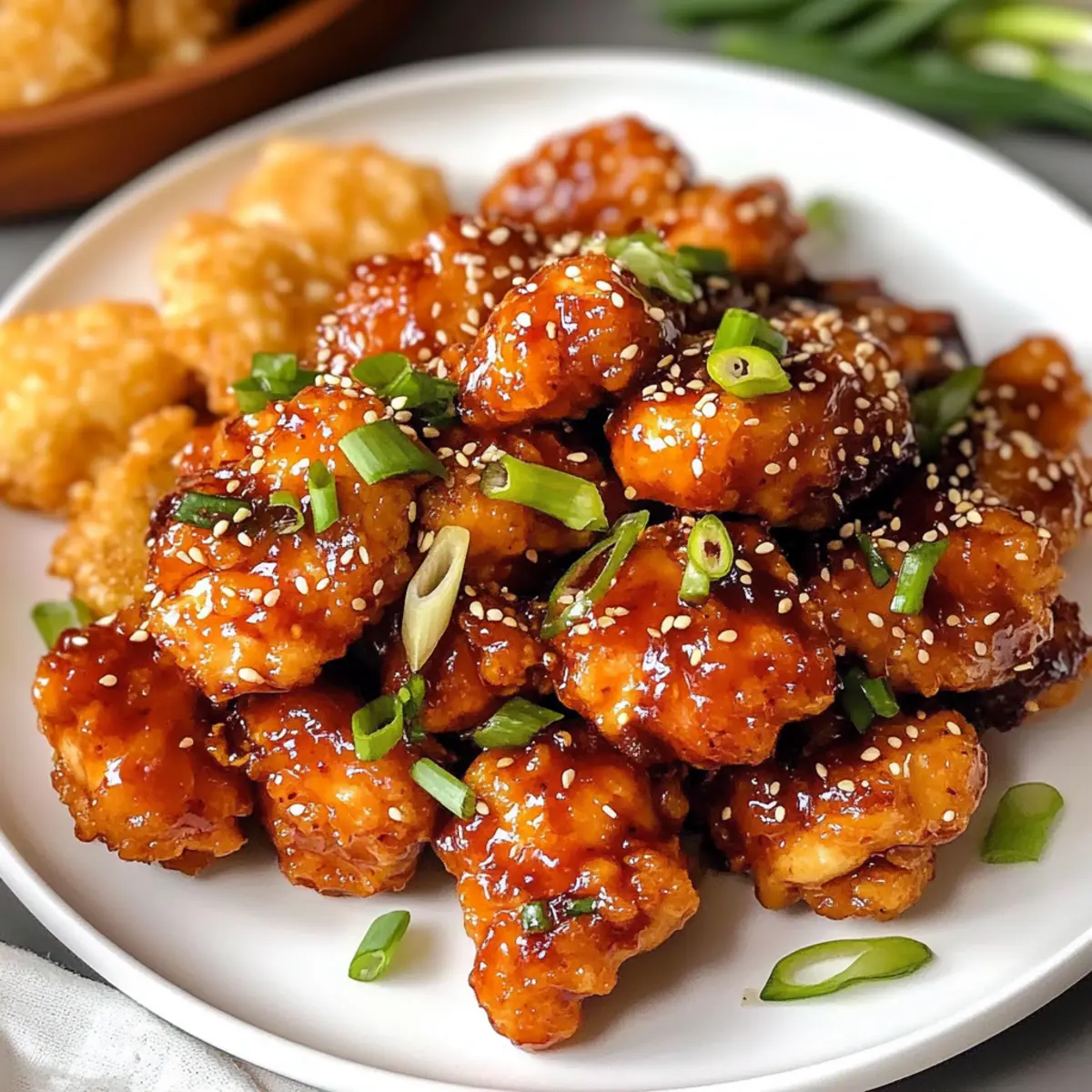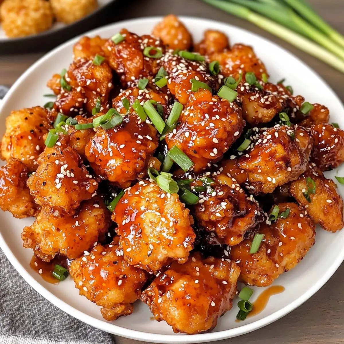 Es war ein verregneter Nachmittag, als ich zum ersten Mal die Magie koreanischer Popcorn-Hühnchenbissen entdeckte. Diese kleinen, knusprigen Häppchen haben sofort mein Herz erobert und sich als perfekt für gesellige Abende oder einen Filmabend entpuppt. Mit einem leichten, herzhaften Glasur, die süße und würzige Aromen vereint, sind diese Bissen ein wahrer Genuss. Die doppelt frittierte Hühnchen sorgt für eine unschlagbare Knusprigkeit, während die zähen Reisgerichte einen spannenden Kontrast bieten. Egal, ob ihr sie als Appetizer oder Snack serviert, dieses Rezept ist nicht nur blitzschnell zubereitet, sondern auch glutenfrei und lässt sich mit verschiedenen Proteinen und Saucen anpassen. Seid ihr bereit, in die Welt der koreanischen Küche einzutauchen und eure Gäste zu beeindrucken? Warum sind diese Koreanischen Popcorn-Hühnchenbissen so besonders? Knusprigkeit ist hier das A und O! Durch das doppelte Frittieren wird das Hühnchen außen wunderbar crispy und bleibt innen saftig. Einfachheit ist ein weiteres Plus – mit wenigen Zutaten zaubert ihr im Handumdrehen einen köstlichen Snack. Vielfältig und anpassbar, könnt ihr das Hühnchen durch Tofu oder Pork ersetzen und neue Geschmackskombinationen ausprobieren. Perfekt für gesellige Abende, ob über dampfendem Reis oder als Fingerfood, diese Bissen sind ein echter Crowd-Pleaser. Und wenn ihr nach weiteren köstlichen Rezepten sucht, probiert doch mal die Mango Sago Dessert oder die Spinat Feta Quesadillas! Koreanische Popcorn-Hühnchenbissen Zutaten • Für alle, die sich nach einem köstlichen, einfach zubereiteten Snack sehnen! Für die Reisgerichte Gefrorene oder frische koreanische Reisgerichte – Sie sorgen für die nötige Zähe. Hinweis: Vor dem Frittieren in warmem Wasser einweichen. Für das Hühnchen Boneless Chicken Thigh Fillets (500g) – Diese bieten ein saftiges Aroma und Zartheit. Hähnchenbrust kann ersetzt werden, ist aber weniger saftig. Mirin (1 EL) – Verleiht Marinaden Süße und Tiefe. Kann durch eine Mischung aus Zucker und Essig ersetzt werden. Frischer Ingwer (1 cm, gehackt) – Unterstreicht die Geschmacksvielfalt. Frischer Ingwer ist zu bevorzugen; getrockneter Ingwer hat nicht denselben Effekt. Salz (1/2 TL) – Wird für die Würze benötigt. Nach Geschmack anpassen, insbesondere wenn Sojasauce verwendet wird. Schwarzer Pfeffer, gemahlen (1/8 TL) – Fügt eine milde Schärfe hinzu. Frisch gemahlen für den besten Geschmack verwenden. Speisestärke oder Kartoffelstärke (120g) – Sorgt für eine knusprige Textur. Beide sind glutenfreie Alternativen zu Mehl. Für die Sauce Gochujang (1 EL) – Sorgt für den traditionellen würzigen Geschmack. Kann bei Bedarf durch Chili-Paste und Tomatenmark ersetzt werden. Ketchup (5 EL) – Süßt und gleicht die Schärfe aus. Zuckerfreier Ketchup kann für eine gesündere Option verwendet werden. Brauner Zucker (2 EL) – Fügt der Sauce Komplexität und Süße hinzu. Weißer Zucker kann verwendet werden, verändert jedoch den Geschmack. Honig (2 EL) – Intensiviert die Süße und verbessert die Klebrigkeit der Sauce. Ahornsirup ist eine vegane Alternative. Knoblauch (1 Zehe, gehackt) – Trägt zu aromatischem Geschmack bei. Knoblauchpulver kann als Ersatz dienen, aber die Menge reduzieren. Sojasauce (1 EL) – Umami-reicher Bestandteil der Sauce. Tamari kann für eine glutenfreie Option verwendet werden. Sesamöl (2 TL) – Verleiht der Sauce einen nussigen Geschmack. Neutralöl kann verwendet werden, aber der Geschmack wird variieren. Optionales Topping Geröstete Sesamsamen, fein gehackte Frühlingszwiebeln, zerstoßene Nüsse – Diese Garnierungen fügen Geschmack und Textur hinzu. Schritt-für-Schritt-Anleitung für Koreanische Popcorn-Hühnchenbissen Schritt 1: Reisgerichte vorbereiten Weichen Sie die gefrorenen koreanischen Reisgerichte in warmem Wasser für 20-30 Minuten ein, bis sie weich sind. Sobald sie aufgeweicht sind, nehmen Sie sie heraus, patten Sie sie trocken und schneiden Sie sie in etwa 5 cm lange Stücke, um die perfekte Größe für das Frittieren zu erhalten. Schritt 2: Hühnchen marinieren In einer Schüssel das gewürfelte Hühnchen mit Mirin, gehacktem Ingwer, Salz und frisch gemahlenem Pfeffer vermengen. Lassen Sie die Mischung mindestens 30 Minuten bei Raumtemperatur marinieren, damit die Aromen gut in das Fleisch einziehen können, wodurch die koreanischen Popcorn-Hühnchenbissen besonders zart werden. Schritt 3: Sauce zubereiten In einer separaten Schüssel alle Zutaten für die Sauce miteinander vermengen: Gochujang, Ketchup, braunen Zucker, Honig, gehackten Knoblauch, Sojasauce und Sesamöl. Rühren Sie die Mischung gründlich, bis sie eine glatte und homogene Konsistenz erreicht, die später die Hühnchenbissen perfekt umhüllen wird. Schritt 4: Erstes Frittieren Erhitzen Sie in einer tiefen Pfanne oder Fritteuse etwa 2,5 cm Öl auf mittlerer Hitze. Während das Öl erhitzt wird, die marinierten Hühnchenstücke gleichmäßig in der Speisestärke wälzen, um eine knusprige Kruste zu erhalten. Frittieren Sie die Hühnchenstücke in kleinen Portionen 4-5 Minuten lang, bis sie leicht golden sind, und lassen Sie sie auf einem Gitter abtropfen. Schritt 5: Zweites Frittieren Erhitzen Sie das Öl erneut auf eine höhere Temperatur und frittieren Sie die Hühnchenstücke ein zweites Mal, bis sie tiefgolden und richtig knusprig sind. Dieser Schritt erhöht die Knusprigkeit und sorgt dafür, dass die Hühnchenbissen unwiderstehlich lecker werden. Lassen Sie sie erneut auf einem Gitter abtropfen, um überschüssiges Öl zu entfernen. Schritt 6: Reisgerichte frittieren Wischen Sie die Pfanne sauber, fügen Sie frisches Öl hinzu und erhitzen Sie es. Frittieren Sie die vorbereiteten Reisgerichte für etwa 3-4 Minuten, bis sie knusprig und goldbraun sind. Diese Kombination aus knusprigen Hühnchen und Reisgerichten wird den Geschmack der koreanischen Popcorn-Hühnchenbissen perfekt abrunden. Schritt 7: Kombinieren Reduzieren S