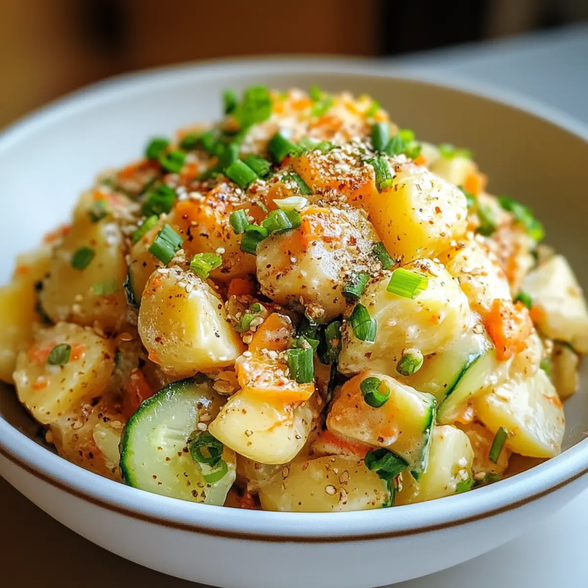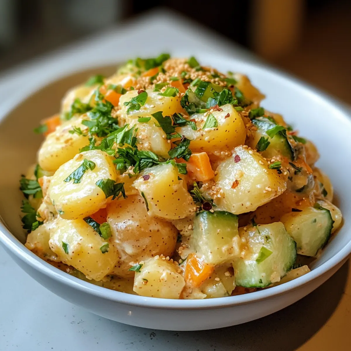 Als ich das erste Mal koreanischen Kartoffelsalat probierte, war ich sofort verzaubert von der cremigen Textur und dem überraschenden Geschmack. Ganzer Genuss ohne das Gefühl von schweren Kalorien – das ist genau das, was ich an dieser Koreanischer Kartoffelsalat (Gamja Salad) liebe! Diese köstliche Beilage kombiniert zarte, pürierte Kartoffeln mit knackigem Gemüse und gekochten Eiern, was nicht nur ein Fest für den Gaumen ist, sondern auch unendlich anpassbar. Egal, ob Sie ein Barbecue planen oder einfach nur eine gesunde Beilage zu Ihrem Mittagessen suchen, dieses Rezept ist im Handumdrehen zubereitet. Außerdem können Sie es ganz nach Ihrem Geschmack variieren! Neugierig, wie Sie diesen Hit aufpeppen können? Warum ist dieser Kartoffelsalat einzigartig? Cremige Textur: Der koreanische Kartoffelsalat hat eine unvergleichlich cremige Konsistenz, die durch die Kombination von pürierten Kartoffeln und einer leichten Mayonnaise-Dressing entsteht. Vielfältige Anpassungsmöglichkeiten: Mit einfachen Variationen können Sie das Rezept nach Ihren Wünschen anpassen – fügen Sie knackiges Gemüse oder auch fruchtige süße Elemente hinzu, um einen individuellen Geschmack zu kreieren. Perfekt für jede Gelegenheit: Egal ob beim Barbecue, als Beilage zu einer Grillparty oder im Büro-Lunch – dieser Salat passt immer! Einzigartiger Geschmack: Die Kombination aus zarten Kartoffeln und frischen Zutaten macht diesen Salat zu einem wahren Geschmackserlebnis. Wenn Sie etwas Neues ausprobieren möchten, warum nicht auch andere leckere Beilagen wie Cremige Knoblauch Baby oder Knoblauch Roestgemuese Rezept dazu servieren? Schnell zubereitet: In nur wenigen Schritten schaffen Sie es, diesen Salat im Kühlschrank zum Durchziehen bereit zu machen – für ein einfaches, aber köstliches Gericht. Koreanischer Kartoffelsalat Zutaten Hinweis: Hier sind die Zutaten, die Sie für Ihren köstlichen koreanischen Kartoffelsalat benötigen – eine Taste der Heimat! Für die Kartoffeln • Kartoffeln – Verwenden Sie Yukon Gold oder rote Kartoffeln, um eine cremige Textur zu erzielen. Für das Dressing • Mayonnaise – Sorgt für die Cremigkeit; für eine leichtere Version können Sie griechischen Joghurt verwenden. • Essig – Fügt eine angenehme Säure hinzu; Apfelessig oder Reisessig funktionieren hervorragend. • Zucker – Balanciert die Aromen aus; nach Geschmack anpassen, Honig ist eine gute Alternative. Für das Gemüse und die Eier • Gemüse (z.B. Karotten, Gurken, Zwiebeln) – Sorgt für Crunch und Frische; variieren Sie gern mit Paprika oder Erbsen. • Gekochte Eier – Trägt zur Cremigkeit und zum Eiweißgehalt bei; für eine vegane Option Tofu verwenden. Für die süßen Ergänzungen • Süße Zusätze (wie gewürfelte Äpfel oder Mais) – Verstärkt die Süße; je nach Vorliebe optional. Schritt-für-Schritt-Anleitung für den Koreanischen Kartoffelsalat Step 1: Kartoffeln kochen Kochen Sie die Yukon Gold oder roten Kartoffeln in einem großen Topf mit gesalzenem Wasser für etwa 15-20 Minuten, bis sie weich sind. Testen Sie die Konsistenz mit einer Gabel; sie sollten leicht durchstochen werden können. Gießen Sie das Wasser ab und lassen Sie die Kartoffeln bei Zimmertemperatur abkühlen, damit sie nicht zu klebrig werden. Step 2: Kartoffeln pürieren Geben Sie die abgekühlten Kartoffeln in eine große Schüssel und zerdrücken Sie sie mit einer Kartoffelpresse oder einem Stampfer, bis eine cremige Konsistenz entsteht. Achten Sie darauf, dass keine Klümpchen zurückbleiben. Dies ist der grundlegende Bestandteil für Ihren Koreanischen Kartoffelsalat, der die Grundlage für den vollen Geschmack bildet. Step 3: Dressing zubereiten In einer separaten Schüssel kombinieren Sie die Mayonnaise, den Essig und den Zucker. Rühren Sie alles gut um, bis eine glatte und cremige Sauce entsteht. Passen Sie die Süße des Dressings nach Belieben an; die Balance zwischen süß und sauer ist der Schlüssel zu einem köstlichen Kartoffelsalat. Step 4: Gemüse und Eier hinzufügen Fügen Sie nun das gewürfelte Gemüse wie Karotten, Gurken und Zwiebeln sowie die gekochten, gehackten Eier zu den pürierten Kartoffeln hinzu. Mischen Sie alles vorsichtig, um die Zutaten gleichmäßig zu verteilen und den Salat nicht zu zerdrücken. Der Koreanische Kartoffelsalat wird durch die verschiedenen Texturen und Farben noch ansprechender. Step 5: Finale Gewürze verfeinern Schmecken Sie den Salat ab und fügen Sie bei Bedarf mehr Salz, Pfeffer oder einen Schuss zusätzlicher Süße hinzu. Achten Sie darauf, die Aromen gut abzugleichen, um das beste Geschmackserlebnis zu erzielen. Dieser letzte Schritt sorgt dafür, dass der Koreanische Kartoffelsalat perfekt abgestimmt ist. Step 6: Kühlen und Servieren Decken Sie die Schüssel mit Frischhaltefolie ab und stellen Sie den Kartoffelsalat für mindestens 30 Minuten in den Kühlschrank. Dies lässt die Aromen wirklich miteinander verschmelzen und macht den Salat erfrischender. Vor dem Servieren können Sie ihn noch mit frischen Kräutern garnieren, um den Geschmack zu unterstreichen. Bereiten Sie den Koreanischen Kartoffelsalat im Voraus vor Koreanischer Kartoffelsalat ist ideal für eine stressfreie Essensvorbereitung! Sie können die Kartoffeln bereits bis zu 24 Stunden vorher kochen und pürieren, damit sie sich abkühlen lassen. Das Dressing aus Mayonnaise, Essig und Zucker kann ebenfalls einen Tag im Voraus zubereitet werden; stellen Sie sicher, dass Sie es in einem luftdichten Behälter im Kühlschrank aufbewahren, um die Frische zu erhalten. Wenn Sie bereit sind, den Salat zu vollenden, fügen Sie einfach die vorbereiteten Gemüsestücke und Eier hinzu und verrühren alles gut. Dieser köstliche Kartoffelsalat bleibt bis zu 3 Tage frisch, wenn Sie ihn gut verpacken, sodass Sie immer eine schmackhafte Beilage zur Hand haben – perfekt für hektische Tage! Was passt zum Koreanischen Kartoffelsalat? Der perfekte Begleiter für Ihr nächstes Essen kan