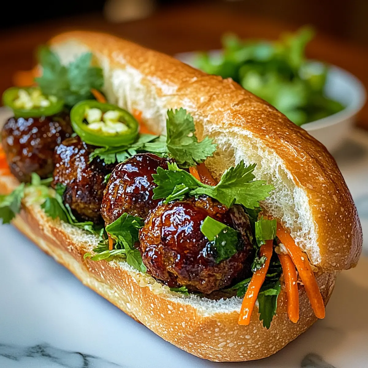 In der Hektik des Alltags gehörte das abendliche Essen oft zu meinen ganz persönlichen Mini-Krisen. Das Bedürfnis nach etwas Schnell zubereitetem, aber dennoch Leckerem, wurde immer größer. Dann stieß ich auf das Rezept für Koreanisches BBQ-Fleischbällchen Banh Mi – eine köstliche Fusion, die alles verändern sollte! Dieses Rezept vereint die saftigen, süß-sauren Fleischbällchen mit dem knusprigen Baguette und erinnert daran, dass schnelles Essen nicht langweilig sein muss. Ideal als schnelles Abendessen und absolut anpassbar, sorgt es für Begeisterung bei Familie und Freunden. Möchtet ihr herausfinden, wie ihr diesen Geschmackstransport auf den Tisch bringt? Warum wirst du dieses Rezept lieben? Einfachheit, die begeistert: Die Zubereitung ist schnell und intuitiv, sodass du nach einem langen Tag im Handumdrehen ein köstliches Gericht auf den Tisch zaubern kannst. Einzigartiger Geschmack: Die Kombination aus koreanischem BBQ und vietnamesischem Banh Mi sorgt für ein Geschmackserlebnis, das deine Geschmacksknospen verführt. Anpassungsfähig: Du kannst die Zutaten nach deinem eigenen Geschmack variieren, was es ideal für jeden Anlass macht – egal, ob mit mehr Gemüse oder schärferen Chilis! Perfekte Textur: Die knusprige Baguettehülle kombiniert sich perfekt mit den saftigen, glasierten Fleischbällchen, was jede Bissen zu einem Genuss macht. Besonderer Hingucker: Ob beim Abendessen oder bei geselligen Zusammenkünften – dieses Banh Mi ist ein echter Crowd-Pleaser und bringt jeden zum Staunen. Praktische Tipps: Bereite die Fleischbällchen einen Tag im Voraus vor und genieße die Leichtigkeit, die dir dieses Rezept bietet! So bleibt mehr Zeit für Gespräche und Geselligkeit. Zutaten für Koreanisches BBQ-Fleischbällchen Banh Mi Hier sind die Zutaten, die du benötigst, um dieses köstliche Gericht zuzubereiten: Für die Fleischbällchen • Gemahlenes Schweinefleisch – sorgt für Proteine und Saftigkeit; kann durch mageres Truthahn- oder Hühnerfleisch ersetzt werden. • Panko-Toastbrösel – fügt Struktur und Leichtigkeit hinzu; normale Brösel können verwendet werden, verändern aber die Konsistenz. • Ei – bindet die Zutaten der Fleischbällchen; ein Leinsamenei ist eine vegane Alternative. • Knoblauch – verstärkt den Geschmack; frischer, gehackter Knoblauch sorgt für das beste Ergebnis, während Knoblauchpulver als Alternative genutzt werden kann. • Ingwer – fügt Wärme und ein tolles Aroma hinzu; gemahlener Ingwer ist ein geeigneter Ersatz. • Küchensalz und schwarzer Pfeffer – Würzmittel zur Geschmacksverstärkung; nach Belieben anpassen. • Neutrales Öl – zum Anbraten der Fleischbällchen; Olivenöl kann ersetzt werden, kann aber den Geschmack verändern. • Koreanische BBQ-Sauce – sorgt für die charakteristische Glasur; Teriyaki- oder Hoisinsauce können als Alternativen verwendet werden. Für die eingelegten Gemüse • Karotten und Daikon-Rettich – bringen Knusprigkeit und Frische; zusätzliche Gemüse wie Gurken können ebenfalls verwendet werden. • Reisessig, Zucker und feines Meersalz – essentielle Zutaten für das Einlegen der Gemüse; weißer Essig kann Reisessig ersetzen, und Honig kann den Zucker substituieren. Für das Banh Mi • Mayonnaise – für die Cremigkeit und den Geschmack; vegane Mayo ist eine pflanzliche Alternative. • Jalapeños – fügt Schärfe und Knusprigkeit hinzu; weglassen für eine mildere Variante oder mit geschnittenen Paprika ersetzen. • Frischer Koriander – bringt Frische ins Sandwich; Petersilie kann als Ersatz verwendet werden. • Baguettes – leichtes, luftiges Brot, um die Füllungen zu halten; französische Baguette oder weiche Hoagie-Rollen sind verwendbar, wenn vietnamesische Baguettes nicht verfügbar sind. Erlebe, wie diese Zutaten zusammenkommen, um dein Koreanisches BBQ-Fleischbällchen Banh Mi zu einem unvergesslichen Geschmackserlebnis zu machen! Schritt-für-Schritt-Anleitung für Koreanisches BBQ-Fleischbällchen Banh Mi Schritt 1: Gemüse einlegen Karotten und Daikon-Rettich in dünne Scheiben schneiden. In einem kleinen Topf Reisessig, Zucker und feines Meersalz bei mittlerer Hitze erhitzen, bis sich der Zucker löst. Die Mischung über das geschnittene Gemüse gießen und für mindestens 30 Minuten ziehen lassen, damit die Aromen sich entfalten können. Schritt 2: Fleischbällchen zubereiten In einer großen Schüssel das gemahlene Schweinefleisch mit Panko-Toastbröseln, Ei, frischem Knoblauch, Ingwer sowie Küchensalz und schwarzem Pfeffer vermengen. Sanft mischen, bis alles gut verbunden ist, aber nicht übermischen, um die Textur der Koreanischen BBQ-Fleischbällchen zu bewahren. Schritt 3: Fleischbällchen braten Eine große Pfanne bei mittlerer Hitze mit neutralem Öl erhitzen. Aus der Fleischmasse kleine Bällchen formen und in die Pfanne geben. Die Fleischbällchen ca. 10-12 Minuten braten, bis sie schön braun sind und eine Innentemperatur von 75°C erreicht haben. Ab und zu wenden, damit sie gleichmäßig garen. Schritt 4: Fleischbällchen glasieren Sobald die Fleischbällchen durchgegart sind, die Koreanische BBQ-Sauce in die Pfanne geben und die Bällchen sorgfältig darin wenden. Für etwa 2-3 Minuten köcheln lassen, bis die Sauce leicht eindickt und die Bällchen gut umhüllt sind, sodass sie glänzend und appetitlich aussehen. Schritt 5: Baguette rösten Die Baguettes längs aufschneiden, aber nicht ganz durchtrennen. Im Toaster oder im Backofen bei 180°C leicht rösten, bis sie goldbraun und knusprig sind. So wird verhindert, dass sie durch die saftigen Fleischbällchen durchweichen. Schritt 6: Sandwiches zusammenstellen Eine großzügige Schicht Mayonnaise auf die Innenseiten der gerösteten Baguettes streichen. Dann mit den eingelegten Gemüse, den glasierten Koreanischen BBQ-Fleischbällchen, Jalapeños und frischem Koriander belegen. Die Kombination sorgt für ein perfektes Geschmackserlebnis in jedem Biss. Schritt 7: Servieren Die K