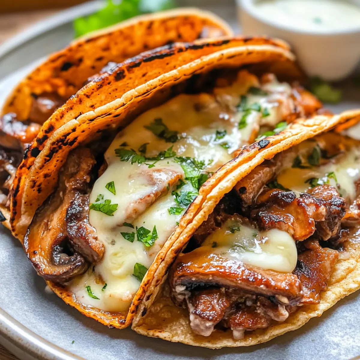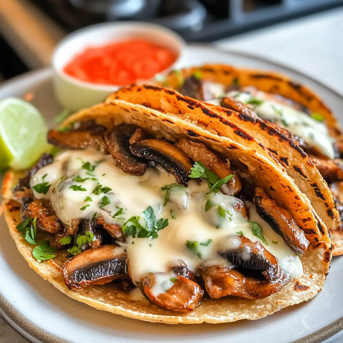Als ich kürzlich in der Küche stand und das Aroma von frischen Pilzen wahrnahm, fühlte ich mich direkt in eine kleine Taquería in Mexiko versetzt. Diese Krosse Pilz-Tacos sind nicht nur ein Fest für die Sinne, sondern sie bieten auch eine willkommene Abwechslung zu den üblichen schnellen Gerichten. Mit ihrer knusprigen Hülle und dem schmelzenden veganen Mozzarella sind sie das perfekte Komfortessen für einen entspannten Abend zu Hause oder ein schnelles Abendessen nach einem langen Tag. Sie sind einfach zuzubereiten und sorgen garantiert für leuchtende Augen bei Familie und Freunden. Neugierig, wie man diese köstliche Kombination aus Texturen und Aromen ganz leicht selbst zaubern kann? Warum werden Sie diese Tacos lieben? Einfache Zubereitung: Die Krosse Pilz-Tacos sind im Handumdrehen gemacht, selbst Kochanfänger meistern dieses Rezept mühelos. Herzhafter Geschmack: Die Kombination aus aromatischen Pilzen und schmelzendem veganem Mozzarella sorgt für eine Geschmacksexplosion, die alle begeistert. Vielseitigkeit: Passen Sie die Zutaten an Ihre Vorlieben an – ob mit verschiedenen Pilzen oder einer scharfen Note, diese Tacos sind anpassbar. Perfekte Textur: Die knusprige Hülle trifft auf eine saftige Füllung, die jeden Bissen zu einem Genuss macht. Schnelle Mahlzeit: Ideal für ein schnelles Abendessen nach einem langen Tag, ohne auf Geschmack zu verzichten. Genießen Sie dazu eine frische Guacamole oder einen leichten Salat für einen völligen Genuss. Krosse Pilz-Taco-Zutaten • Diese Krosse Pilz-Tacos werden mit frischen und köstlichen Zutaten zubereitet, die jeder liebt! Für die Füllung Pilze – Saftige Füllung. Nutzen Sie Cremini oder Portobello für ein intensiveres Aroma. Zwiebel – Bringt Süße und Aroma. Alternativ können Sie Schalotten oder Frühlingszwiebeln verwenden. Olivenöl – Zum Sautieren der Füllung und Frittieren der Tacos. Sie können auch ein anderes Öl mit hohem Rauchpunkt nutzen. Sojasauce – Verstärkt den Umami-Geschmack. Tamari eignet sich als glutenfreie Option. Paprika – Fügt milde Wärme und Farbe hinzu. Verwenden Sie Chili-Pulver für einen schärferen Kick. Knoblauchpulver – Verstärkt den Geschmack. Frischer, gehackter Knoblauch bringt mehr Aroma. Schwarzer Pfeffer – Zum Würzen. Passen Sie die Menge nach Geschmack an; Cayenne kann für Schärfe sorgen. Wasser oder Gemüsebrühe – Sorgt für Feuchtigkeit ohne Sumpfigkeit; Brühe bringt zusätzlichen Geschmack. Für die Tacos Tortillas – Die Basis für die Tacos. Maistortillas sind eine glutenfreie Variante. Vegane Mozzarella – Bietet Cremigkeit und Schmelze. Cashewkäse kann als Alternative dienen. Frittieröl – Gewährleistet die knusprige Textur. Avocadoöl ist ebenfalls eine gute Option. Schritt-für-Schritt-Anleitung für Krosse Pilz-Tacos Step 1: Pilze anbraten Erhitzen Sie in einer großen Pfanne bei mittlerer Hitze 2 Esslöffel Olivenöl. Fügen Sie die gewürfelten Pilze hinzu und lassen Sie sie 2–3 Minuten lang ungestört braten, um eine schöne Bräunung zu erzeugen. Rühren Sie um und kochen Sie weiter, bis die Feuchtigkeit verdunstet ist und die Kanten goldbraun aussehen, etwa 5–7 Minuten. Step 2: Zwiebel hinzufügen Mischen Sie die gewürfelte Zwiebel mit den Pilzen in der Pfanne und braten Sie alles zusammen für weitere 2–3 Minuten. Die Zwiebel sollte weich und leicht transparent sein, die Mischung wird aromatisch. Achten Sie darauf, häufig umzurühren, damit nichts ansetzt. Step 3: Füllung würzen Fügen Sie 2 Esslöffel Sojasauce, 1 Teelöffel Paprika, 1 Teelöffel Knoblauchpulver und einen Spritzer Wasser oder Gemüsebrühe zur Pilz-Zwiebel-Mischung hinzu. Rühren Sie alles gut um und lassen Sie es weitere 3–5 Minuten köcheln, bis die Füllung saftig, aber nicht matschig ist. Step 4: Tacos zusammenstellen Legt eine Tortilla auf eine Arbeitsfläche und streuen Sie eine Schicht veganen Mozzarella auf die eine Hälfte. Geben Sie dann einen großzügigen Löffel der Pilzfüllung darauf und verstreuen Sie mehr Käse. Falten Sie die Tortilla vorsichtig in der Mitte, sodass die Füllung gut verpackt ist. Step 5: Tacos frittieren Erhitzen Sie in einer Pfanne bei mittlerer bis hoher Hitze etwas Frittieröl. Legen Sie die gefalteten Tacos vorsichtig in die Pfanne und braten Sie sie für 3–4 Minuten auf jeder Seite, bis sie goldbraun und knusprig sind. Drücken Sie beim Braten sanft auf die Tacos, um eine gleichmäßige Knusprigkeit zu erreichen. Step 6: Servieren Nehmen Sie die Tacos aus der Pfanne und lassen Sie sie kurz auf Küchenpapier abtropfen, um überschüssiges Öl zu entfernen. Servieren Sie die Krosse Pilz-Tacos heiß, idealerweise mit einem Dip aus Guacamole oder einem frischen Salat, um das Geschmackserlebnis zu vervollständigen. Was passt zu Krossen Pilz-Tacos? Um ein rundum gelungenes Essen zu kreieren, probieren Sie diese köstlichen Beilagen, die perfekt mit den Krossen Pilz-Tacos harmonieren! Frischer Guacamole: Die cremige Konsistenz der Guacamole ergänzt die knusprigen Tacos perfekt und sorgt für einen frischen Geschmack. Die Aromen harmonieren ideal und bieten einen tollen Kontrast. Zitronen-Koriander-Reis: Dieser aromatische Reis bringt eine erfrischende Note, die die herzhaften Aromen der Tacos ideal ergänzt. Perfekt für eine sättigende Beilage! Eingemachte Jalapeños: Für alle, die es schärfer mögen, bringen eingelegte Jalapeños eine würzige Note ins Spiel, die Ihren Tacos das gewisse Extra verleiht. Tomatensalat: Ein leichter Tomatensalat mit frischen Kräutern bringt Abwechslung und frische Farbe auf den Teller. Er erfrischt den Gaumen zwischen den herzhaften Bissen der Tacos. Vegane Sour Cream: Ein Klecks veganer Sour Cream fügt eine cremige Komponente hinzu und balanciert die Texturen der Tacos wunderbar aus. Kühle Gurkensalat: Ein erfrischender Gurkensalat mit Dill bietet eine knackige Beilage, die die Aromen der Tacos wunderbar ergänzt und den Gaumen erfrischt. Lagerungstipps für Krosse Pilz-Tacos 