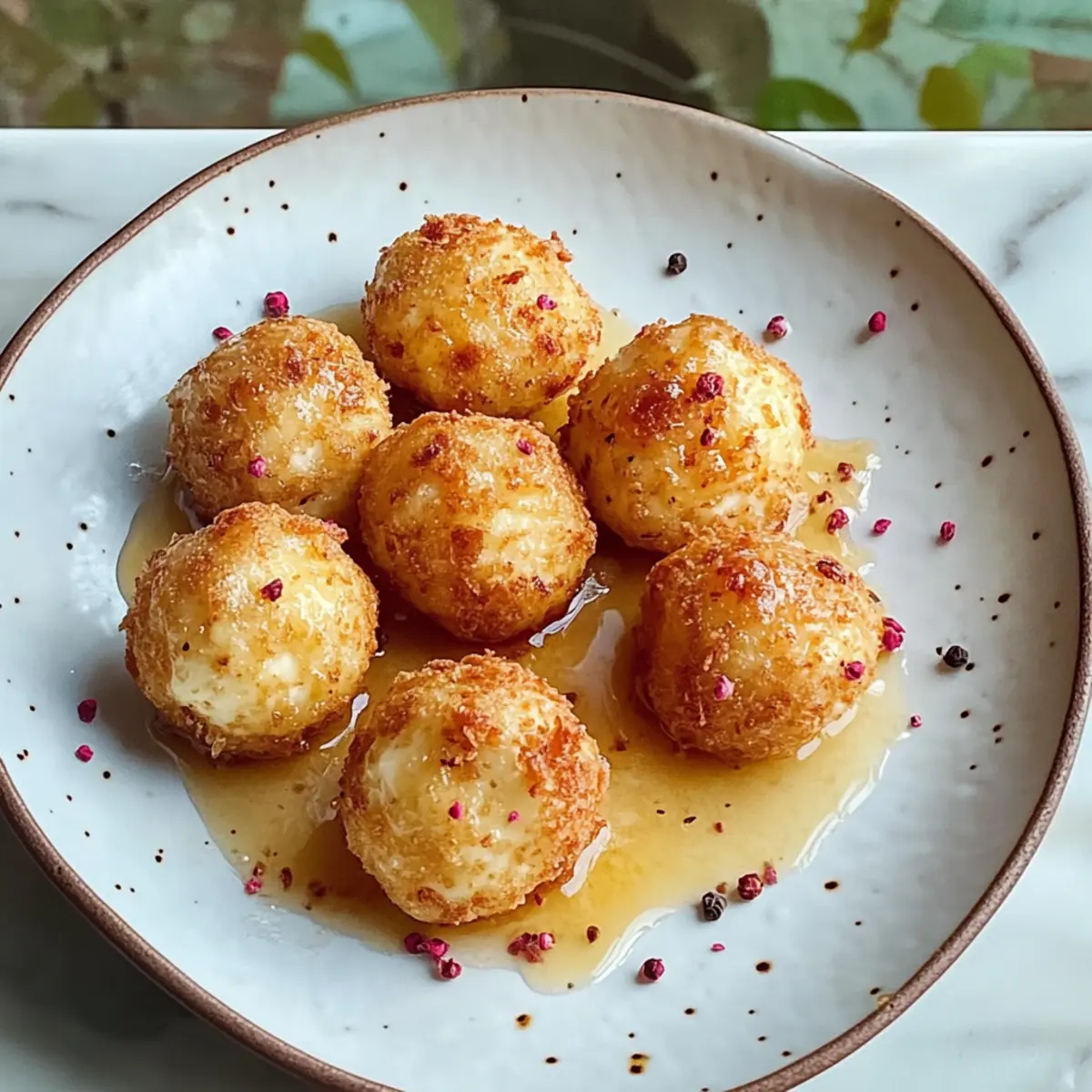 Wenn ich an gesellige Abende mit Freunden denke, kommt mir sofort der unwiderstehliche Duft von frisch frittierter Käse in den Sinn – und nichts ist vergleichbar mit knusprigen, tiefgebackenen Ziegenkäse-Bällchen! Diese kleinen Köstlichkeiten sind nicht nur ein einfacher Snack, sondern auch ein echter Publikumsliebling, der sowohl Anfänger als auch erfahrene Köche begeistert. Bei der Zubereitung dieser leckeren Ziegenkäse-Bällchen mit rosa Pfefferkorn-Honig wird man mit einem knusprigen Äußeren und einem cremigen Innenleben belohnt. Sie sind perfekt für deine nächste Feier oder einfach, um dir selbst etwas Gutes zu tun. Wer kann da widerstehen? Lass uns entdecken, wie leicht du diese Gaumenfreude selbst zaubern kannst! Warum wirst du dieses Rezept lieben? Einfachheit: Die Zubereitung dieser knusprigen Ziegenkäsebällchen ist kinderleicht und benötigt keine umfangreichen Kochkünste. Vielfalt: Du kannst die Zutaten anpassen, indem du verschiedene Käsesorten oder Kräuter verwendest. Aromen: Die Kombination aus dem würzigen Ziegenkäse und dem süßen Pfefferhonig sorgt für eine Geschmacksexplosion, die deine Gäste begeistern wird. Perfekte Snackgröße: Ideal für gesellige Abende oder als Fingerfood bei Partys! Diese Bällchen werden sicher zum Star deines nächsten Buffets, besonders wenn du sie mit anderen Leckereien wie Kaesebroetchen Philly Cheesesteak kombinierst. Zutaten für Krosse Ziegenkäsebällchen • Hier sind die perfekten Zutaten, die du für die Zubereitung dieser köstlichen Ziegenkäsebällchen benötigst. Für die Bällchen Ziegenkäse – sorgt für die cremige, würzige Basis der Bällchen; wähle weichen, rindlosen Käse zum einfachen Formen. Thymian – fügt eine frische, herbe Note hinzu; optional kannst du Oregano oder Rosmarin verwenden, um verschiedene Geschmäcker zu erzielen. Weißmehl – sorgt für die nötige Struktur des Teigs; du kannst statt dessen auch eine glutenfreie Mehlmischung verwenden. Maisstärke – hilft, eine leichtere Teigkonsistenz zu erreichen. Backpulver – wirkt als Treibmittel, damit der Teig luftig und knusprig wird. Sprudelwasser (eiskalt) – schafft einen leichten Teig; die Kohlensäure fördert die Knusprigkeit der Bällchen. Orangenblütenhonig – schenkt eine blumige Süße; du kannst ihn auch durch normalen Honig oder Agavendicksaft ersetzen. Öl (zum Frittieren) – notwendig, um die Bällchen goldbraun zu garen; benutze ein neutrales Öl mit hohem Rauchpunkt. Rosa Pfefferkörner – verleihen den Bällchen ein einzigartiges Geschmacksprofil und eine schöne Optik; reguläre schwarze Pfefferkörner sind ebenfalls eine gute Alternative. Schritt-für-Schritt-Anleitung für Krosse Ziegenkäsebällchen mit Pfefferhonig Step 1: Ziegenkäse vorbereiten In einer Rührschüssel den Ziegenkäse mit frischem Thymian und einer Prise Salz gut vermengen. Die Mischung in gleichmäßige, walnussgroße Bällchen rollen und diese auf ein mit Backpapier ausgelegtes Blech legen. Die Bällchen für etwa 30 Minuten im Gefrierfach fest werden lassen, damit sie die Form behalten. Step 2: Teig zubereiten Für den Teig, in einer separaten Schüssel, das Weißmehl, die Maisstärke, das Backpulver und eine Prise Salz vermischen. Langsam genug eiskaltes Sprudelwasser hinzufügen, um eine dickflüssige Konsistenz zu erreichen. Zuletzt den Orangenblütenhonig einrühren, um dem Teig eine süße Note zu verleihen und die krosse Kruste der Ziegenkäsebällchen zu unterstützen. Step 3: Öl erhitzen In einem großen Topf oder einer tiefen Pfanne das Öl erhitzen, bis es eine Temperatur von 180 °C erreicht hat. Du kannst dies überprüfen, indem du ein kleines Stück Brot hineinwirfst; wenn es in etwa 30 Sekunden goldbraun wird, ist das Öl bereit. Achte darauf, das Öl nicht zu überhitzen, um ein Anbrennen zu vermeiden. Step 4: Ziegenkäsebällchen frittieren Die gefrorenen Ziegenkäsebällchen leicht in etwas extrahiertem Mehl wälzen, dann in den vorbereiteten Teig tauchen, sodass sie gut bedeckt sind. Vorsichtig die Bällchen einzeln in das heiße Öl ablassen und sie in kleinen Portionen frittieren, bis sie etwa 45 Sekunden bis 1 Minute lang knusprig und goldbraun sind. Step 5: Bällchen abtropfen lassen Die frittierten Ziegenkäsebällchen mit einer Schaumkelle aus dem Öl heben und auf Küchenpapier abtropfen lassen, um überschüssiges Fett zu entfernen. Diese herzhaften Köstlichkeiten am besten warm servieren, mit zusätzlichem Orangenblütenhonig überzogen und mit zerstoßenen rosa Pfefferkörnern dekoriert, um den perfekten Snack für deine nächste Feier zu kreieren. Ideal für die Vorbereitung: Krosse Ziegenkäsebällchen mit Pfefferhonig Diese krossen Ziegenkäsebällchen mit Pfefferhonig sind perfekt für die Vorbereitung und sparen dir wertvolle Zeit an geschäftigen Abenden! Du kannst die Ziegenkäsebällchen bis zu 24 Stunden im Voraus formen und dann im Gefrierfach aufbewahren, damit sie ihre Form behalten. Wenn du bereit bist, sie zuzubereiten, tauche die gefrorenen Bällchen einfach in den vorbereiteten Teig und frittiere sie in heißem Öl für 45 Sekunden bis 1 Minute, bis sie goldbraun sind. Achte darauf, die Bällchen in kleinen Portionen zu frittieren, um gleichmäßige Ergebnisse und beste Qualität gewährleistet zu haben. So kannst du dich auf den Geschmack dieser köstlichen Snacks konzentrieren, ohne in der Küche viel Aufwand zu haben! Aufbewahrungstipps für Krosse Ziegenkäsebällchen Raumtemperatur: Die Ziegenkäsebällchen sollten am besten sofort nach dem Frittieren serviert werden, da sie frisch und knusprig am leckersten sind. Kühlschrank: Wenn du Reste hast, bewahre sie in einem luftdichten Behälter im Kühlschrank auf, wo sie bis zu 1–2 Tage frisch bleiben. Aufwärmen: Um die Knusprigkeit wiederherzustellen, heize die Bällchen im Ofen bei 180 °C für etwa 10 Minuten auf, anstatt sie in der Mikrowelle zu erhitzen. Einfrieren: Du kannst die ungebackenen, geformten Ziegenkäsebällchen im G