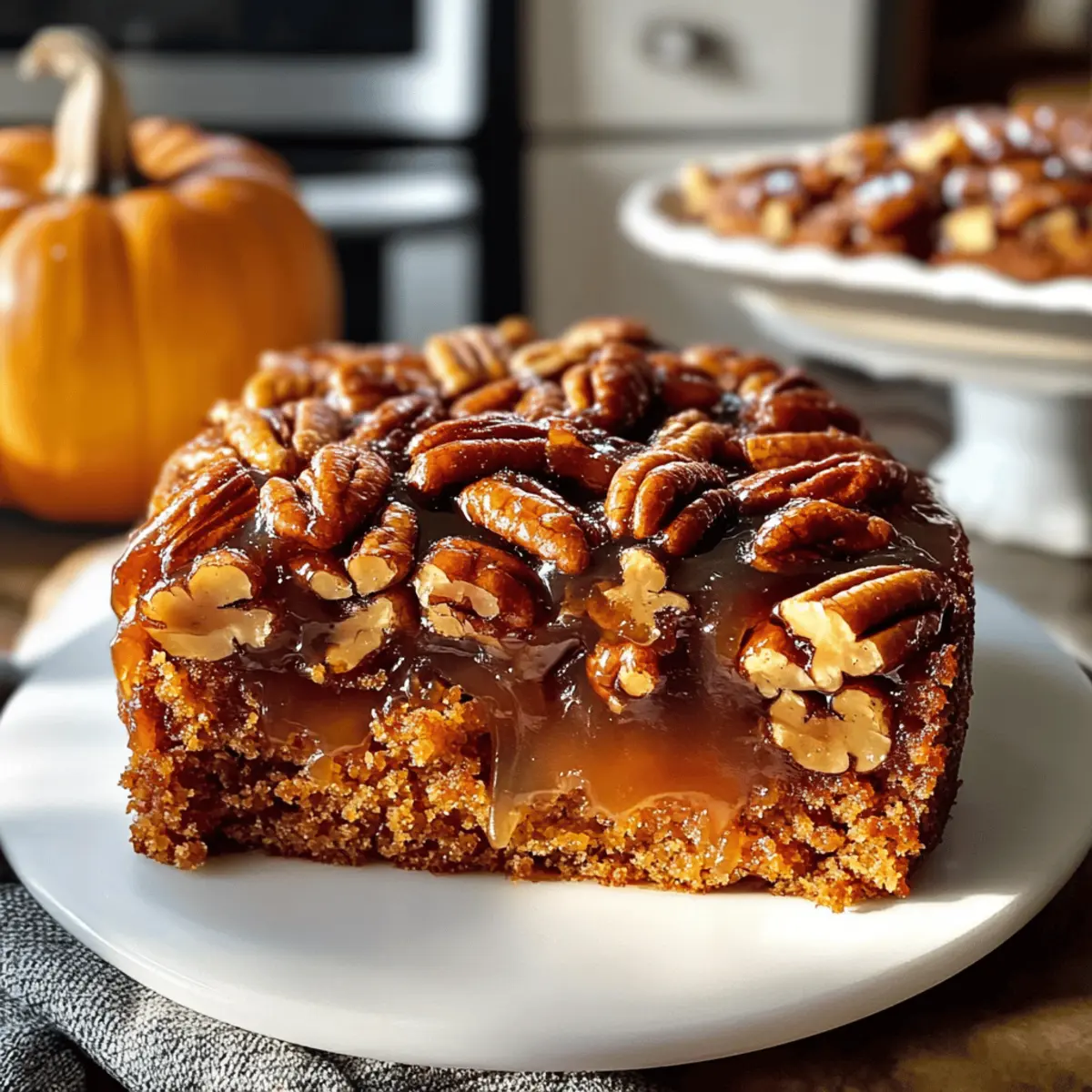 Der Duft von frisch gebackenem Kuchen, der durch die Herbstluft zieht, ist einfach unwiderstehlich. Wenn sich die Blätter färben und die Temperaturen sinken, finde ich Trost in meinem Rezept für einen köstlichen Pumpkin Pecan Upside Down Cake. Dieser herzhafte Herbst-Klassiker überzeugt nicht nur durch seine weiche und feuchte Kürbiskuchenbasis, sondern auch durch eine unwiderstehliche, süße Pecandecke, die zum Verweilen einlädt. Es ist der perfekte Begleiter für gemütliche Nachmittage mit Freunden oder für besondere Feiertagsversammlungen. Und das Beste daran? Die Zubereitung ist einfach und schnell, sodass du mehr Zeit für das genießen der herbstlichen Atmosphäre hast. Bist du bereit, deinem Zuhause mit diesem aromatischen Dessert ein Gefühl von Wärme zu verleihen? Warum ist dieser Kuchen so besonders? Einfachheit: Mit nur wenigen gängigen Zutaten ist das Rezept leicht nachzuvollziehen und perfekt für jeden Bäcker, egal ob Anfänger oder Profi. Aromatischer Geschmack: Die Kombination aus Kürbis und Pekannüssen bringt die herbstlichen Aromen wunderbar zur Geltung, während Gewürze wie Zimt und Muskatnuss den Genuss abrunden. Vielfalt: Du kannst das Rezept ganz nach deinem Geschmack anpassen – wie wäre es mit Schokoladenstückchen im Teig oder einem Hauch von Kürbiskuchen-Gewürz? Köstlicher Blickfang: Die karamelisierte Pekan-Schicht verleiht dem Kuchen nicht nur einen köstlichen Geschmack, sondern auch eine beeindruckende Optik, die Gäste begeistern wird. Schnelligkeit: Bereite dieses Dessert in weniger als einer Stunde zu und genieße es warm mit einer Kugel Vanilleeis oder einem Klecks Schlagsahne. Verwende dein neues Wissen über Asiatisches Rinderhackfleisch Mit als Begleitgericht oder kombiniere es mit dem zarten Geschmack von Rinderrouladen Enoki Pilze für das perfekte Menü. Zutaten für den Kürbis-Pekannuss-Kuchen • Um diesen herbstlichen Kuchen zuzubereiten, benötigst du nur frische und saisonale Zutaten! Für die Pecandecke Salzbutter (85 g) – sorgt für Reichtum und hilft bei der Karamellisierung der Pekannüsse. Substitution: Ungesalzene Butter kann verwendet werden, einfach eine Prise Salz hinzufügen. Brauner Zucker (70 g) – süßt und verleiht der Pecandecke mehr Tiefe. Substitution: Dunkler Brauner Zucker für einen reicheren Geschmack. Reiner Ahornsirup (60 mL) – verstärkt die Süße und fügt einen einzigartigen Geschmack hinzu. Hinweis: Honig oder Maissirup können ersetzt werden, aber Ahornsirup ist für den besten Geschmack bevorzugt. Vanilleextrakt (1 TL) – sorgt für ein angenehmes Aroma und Geschmacksverbesserung. Keine Substitutionen notwendig. Gemahlener Zimt (1/4 TL) – bietet Wärme und Gewürz für die Decke. Kann durch Kürbiskuchengewürz ersetzt werden für einen komplexeren Geschmack. Pekannüsse (180 g) – sorgen für Knusprigkeit und nussigen Geschmack. Substitution: Kürbiskerne für eine nussfreie Option. Für den Kürbiskuchen Rapsöl (60 mL) – sorgt für Feuchtigkeit im Kuchen. Substitution: Jedes neutrale Öl funktioniert gut. Kristallzucker (100 g) – süßt den Kuchen. Keine Substitutionen notwendig. Brauner Zucker (100 g) – fügt Feuchtigkeit und einen Hauch von Karamellgeschmack zum Kuchen hinzu. Substitution: Dunkler Brauner Zucker kann ebenfalls verwendet werden. Eier (2 große) – binden die Zutaten und sorgen für Struktur. Keine Substitutionen, bevorzugt bei Zimmertemperatur. Griechischer Joghurt (56 g) – verleiht Feuchtigkeit und eine leichte Säure. Substitution: Saure Sahne. Kürbispüree (180 g) – Hauptgeschmacksträger des Kuchens, sollte dick sein. Hinweis: Gerösteter und zerdrückter Kürbis kann genutzt werden. Allzweckmehl (150 g) – sorgt für die Struktur des Kuchens. Substitution: Für glutenfrei, verwende eine 1:1 Backmischung. Backpulver (2 TL) – sorgt für die Lockerung. Keine Substitutionen notwendig. Backsoda (1/2 TL) – unterstützt zusätzlich das Aufgehen. Keine Substitutionen notwendig. Feines Meersalz (1/2 TL) – verstärkt den Geschmack. Keine Substitutionen notwendig. Gewürze (Zimt 1 TL, Muskatnuss 1/2 TL, Ingwer 1/2 TL, Nelken 1/4 TL, Piment 1/4 TL) – tragen zum warmen Geschmacksprofil bei. Spic levels je nach persönlichem Geschmack anpassen. Dieses Rezept für den Kürbis-Pekannuss-Kuchen ist ein wahrer Genuss, ideal für die Herbstsaison! Schritt-für-Schritt-Anleitung für den Kürbis-Pekannuss-Kuchen Schritt 1: Ofen vorheizen Heize deinen Ofen auf 175°C (350°F) vor. Bereite eine quadratische Backform von 20×7,5 cm vor, indem du sie gründlich einfettest und mit Backpapier auslegst. Dies sorgt dafür, dass sich der Kuchen später mühelos aus der Form löst, während die Aromen des Kürbis-Pekannuss-Kuchens allmählich durch die Küche ziehen. Schritt 2: Pecandecke zubereiten In einem kleinen Topf bei mittlerer Hitze die Butter, den braunen Zucker und den Ahornsirup schmelzen. Rühre die Mischung mit einem Schneebesen, bis sie glatt ist, was etwa 3 bis 5 Minuten dauert. Nimm den Topf vom Herd, füge Vanille, Zimt und die Pekannüsse hinzu und verteile die Mischung gleichmäßig auf dem Boden der vorbereiteten Backform. Schritt 3: Kürbiskuchen-Mischung herstellen In einer großen Schüssel das Rapsöl, den Kristallzucker und den braunen Zucker mit einem Schneebesen gut vermengen. Füge die Eier einzeln hinzu und rühre weiter, bis die Masse cremig und gut gemischt ist. Mische anschließend den griechischen Joghurt und das Kürbispüree unter, bis eine homogene Masse entsteht. Schritt 4: Trockene Zutaten hinzufügen Sieb das Allzweckmehl zusammen mit dem Backpulver, dem Backsoda, dem Salz und den Gewürzen in die Schüssel mit der Kürbiskuchen-Mischung. Rühre die Zutaten sanft unter, bis alles gerade eben vermischt ist, um die Textur des Kürbis-Pekannuss-Kuchens zu bewahren. Achte darauf, nicht zu lange zu rühren, um einen saftigen Kuchen zu garantieren. Schritt 5: Teig in die Form füllen Gieße den Kürbiskuchenteig vorsichtig über die 