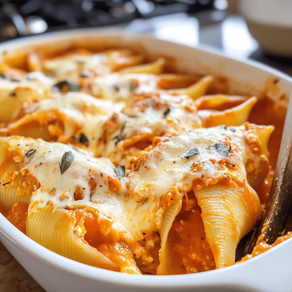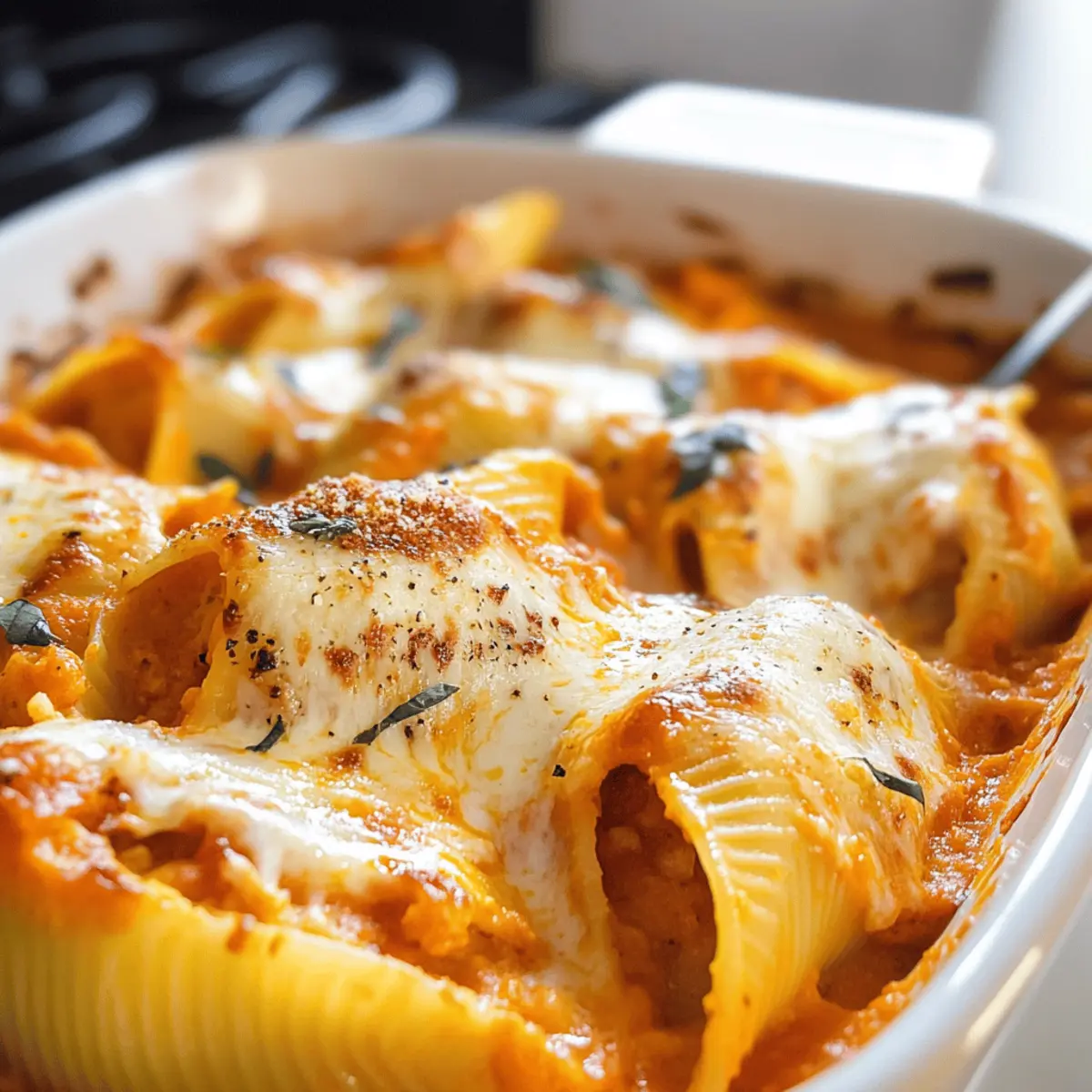 Bei jedem Bissen dieser cremigen Pumpkin Ricotta Stuffed Shells fühle ich mich wie an einem kuschligen Herbstabend, umgeben von der warmen Atmosphäre des Zuhauses. Diese gefüllten Nudeln sind nicht nur einfach zuzubereiten, sondern auch der Inbegriff von Comfort Food, das den Herbst in voller Pracht zelebriert. Mit der reichhaltigen Kürbisnote und dem herzhaften Käsegeschmack wird dieses Gericht zu einem echten Publikumsliebling – perfekt für ein entspanntes Abendessen oder ein festliches Familienessen. Darüber hinaus lassen sich die Reste problemlos einfrieren oder für einen späteren Genuss vorbereiten. Bist du bereit, deine Küche in einen herbstlichen Genussort zu verwandeln? Warum werden Sie dieses Rezept lieben? Einfachheit: Die Zubereitung ist unkompliziert und benötigt nur grundlegende Kochkenntnisse, sodass es für jeden einfach ist, die schnelle Küche zu genießen. Reiche Aromen: Die Kombination aus Kürbis und Ricotta verleiht den Muscheln einen herzhaften und cremigen Geschmack, der den Herbst perfekt einfängt. Vielseitigkeit: Diese Füllung lässt sich auch wunderbar in Lasagne verwandeln oder mit anderen Gemüsesorten wie Spinat oder Pilzen kombinieren. Zeitersparnis: Perfekt für stressige Tage, da die vorbereiteten Muscheln einen Tag im Kühlschrank aufbewahrt werden können. Einfach aufwärmen und genießen! Publikumsfavorit: Dieses Gericht begeistert Familie und Freunde und fügt jedem Dinner eine festliche Note hinzu. Es ist ideal, um die Geschichte der traditionellen italienischen Küche neu zu interpretieren. Für zusätzliche Ideen probieren Sie auch unsere Cremige Scharfe Knoblauchbutter, die als Beilage hervorragend passt. Kürbis-Ricotta Zutaten • Entdecken Sie die schmackhaften Zutaten für die köstlichen Kürbis-Ricotta gefüllten Muscheln! Für die Muscheln Jumbo Muschel-Nudeln – Verwenden Sie hochwertige Nudeln, damit sie beim Backen ihre Form behalten. Ricotta-Käse – Sorgt für cremigen Geschmack; kann durch Hüttenkäse ersetzt werden, wenn Sie eine leichtere Option wünschen. Kürbispüree – Verleiht Feuchtigkeit und herbstlichen Geschmack; verwenden Sie bequemes Dosen-Kürbispüree. Für die Füllung Frischer Parmesan (gerieben) – Gibt eine herzhafte Tiefe; gereifter Parmesan ist ebenfalls ein guter Ersatz. Ei – Bindet die Füllung; für eine milchfreie Version können Sie Seidentofu verwenden. Muskatnuss – Verstärkt die warmen Aromen; gemahlener Zimt kann für einen subtilen Geschmack verwendet werden. Koscheres Salz & Pfeffer – Gewürze nach Geschmack. Knoblauchpulver – Fügt aromatischen Geschmack hinzu; frischer Knoblauch kann für einen stärkeren Geschmack verwendet werden. Frischer Salbei (gehackt) – Bringt eine kräuterige Note; Thymian kann als Ersatz verwendet werden. Für die Sauce Eingekochte Sauce (Rao’s Vodka Sauce) – Basis des Gerichts, bietet Feuchtigkeit und Geschmack; jede gekaufte Marinara funktioniert auch. Schlagsahne – Fügt der Sauce Reichtum hinzu; kann durch halb und halb oder Mandelmilch ersetzt werden. Für den Belag Geriebener Mozzarella-Käse – Für eine geschmolzene Kruste; kann durch veganen Käse als milchfreie Alternative ersetzt werden. Schritt-für-Schritt-Anleitung für Kürbis-Ricotta gefüllte Muscheln Step 1: Muscheln kochen Bringen Sie einen großen Topf mit Wasser zum Kochen. Fügen Sie die Jumbo Muschel-Nudeln hinzu und kochen Sie sie gemäß den Anweisungen auf der Verpackung al dente, sodass sie bissfest sind. Achten Sie darauf, dass das Wasser sprudelnd kocht und die Nudeln nicht aneinanderkleben. Step 2: Für die Füllung vorbereiten Nach dem Kochen die Muscheln abtropfen lassen und vorsichtig auseinanderziehen. Träufeln Sie etwas Olivenöl über die Nudeln, um ein Verkleben zu vermeiden, und lassen Sie sie bei Zimmertemperatur auskühlen. Dies hilft, dass sie beim Füllen nicht zerbrechen. Step 3: Ofen vorheizen Heizen Sie Ihren Ofen auf 175 °C (350 °F) vor. Dies ist wichtig, damit die Kürbis-Ricotta gefüllten Muscheln gleichmäßig gebacken werden, sodass sie beim Backen schön warm und geschmolzen sind. Step 4: Füllung zubereiten In einer großen Schüssel kombinieren Sie den Ricotta, das Kürbispüree, den geriebenen Parmesan, das Ei, die Muskatnuss, Salz, Pfeffer, Knoblauchpulver und den gehackten Salbei. Mischen Sie alles gut, bis die Füllung eine cremige Konsistenz erreicht hat und keine Klümpchen mehr vorhanden sind. Step 5: Sauce vorbereiten In einer separaten Schüssel vermengen Sie das verbleibende Kürbispüree mit der eingekochten Sauce und der Schlagsahne. Rühren Sie die Mischung gut um, bis alles gleichmäßig kombiniert ist. Diese Sauce wird die Grundlage für die Kürbis-Ricotta gefüllten Muscheln und bringt zusätzlichen Geschmack. Step 6: Zusammenstellen Verteilen Sie etwa drei Viertel der Sauce gleichmäßig auf dem Boden einer Auflaufform. Füllen Sie jede Muschel mit ca. zwei Esslöffeln der Kürbis-Ricotta-Füllung und legen Sie sie mit der offenen Seite nach oben in die Form. Achten Sie darauf, dass die Muscheln gut platziert sind, um eine gleichmäßige Garung zu gewährleisten. Step 7: Abdecken und backen Decken Sie die Auflaufform mit Aluminiumfolie ab und stellen Sie sie in den vorgeheizten Ofen. Backen Sie die gefüllten Muscheln für etwa 30 Minuten. Diese Abdeckung hilft, die Feuchtigkeit zu bewahren, sodass die Füllung schön saftig bleibt. Step 8: Käse hinzufügen und weiterbacken Nach 30 Minuten die Aluminiumfolie entfernen und den geriebenen Mozzarella gleichmäßig über die Muscheln streuen. Backen Sie die Muscheln dann für weitere 15 Minuten, bis der Käse geschmolzen und goldbraun ist. Durch das Entfernen der Folie wird die Oberfläche knusprig und die Aromen intensiver. Step 9: Optional grillen Wenn Sie eine zusätzliche Bräunung wünschen, können Sie die gefüllten Muscheln kurz unter den Grill stellen. Achten Sie jedoch darauf, dass Sie sie ständig beobachten, damit der Käse nicht verbrennt. Dies fügt eine k