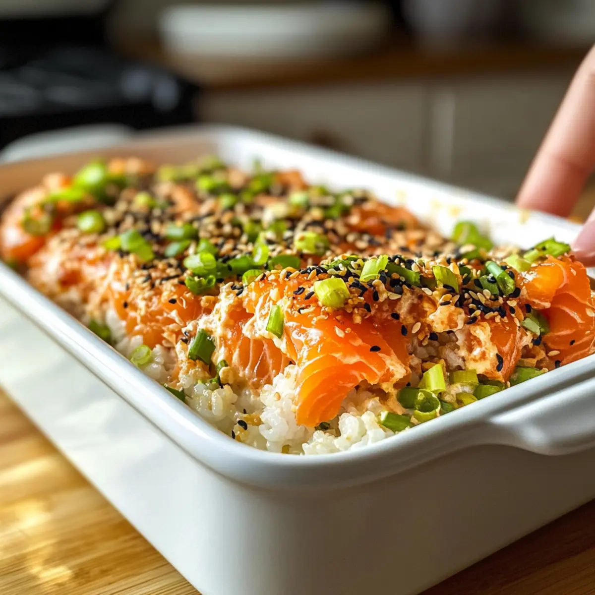 Genießen Sie das Kochen Ihres Lachs Sushi Auflaufs und entdecken Sie die schmackhafte Kombination von Zutaten, die dieses Gericht zu einem Highlight macht!