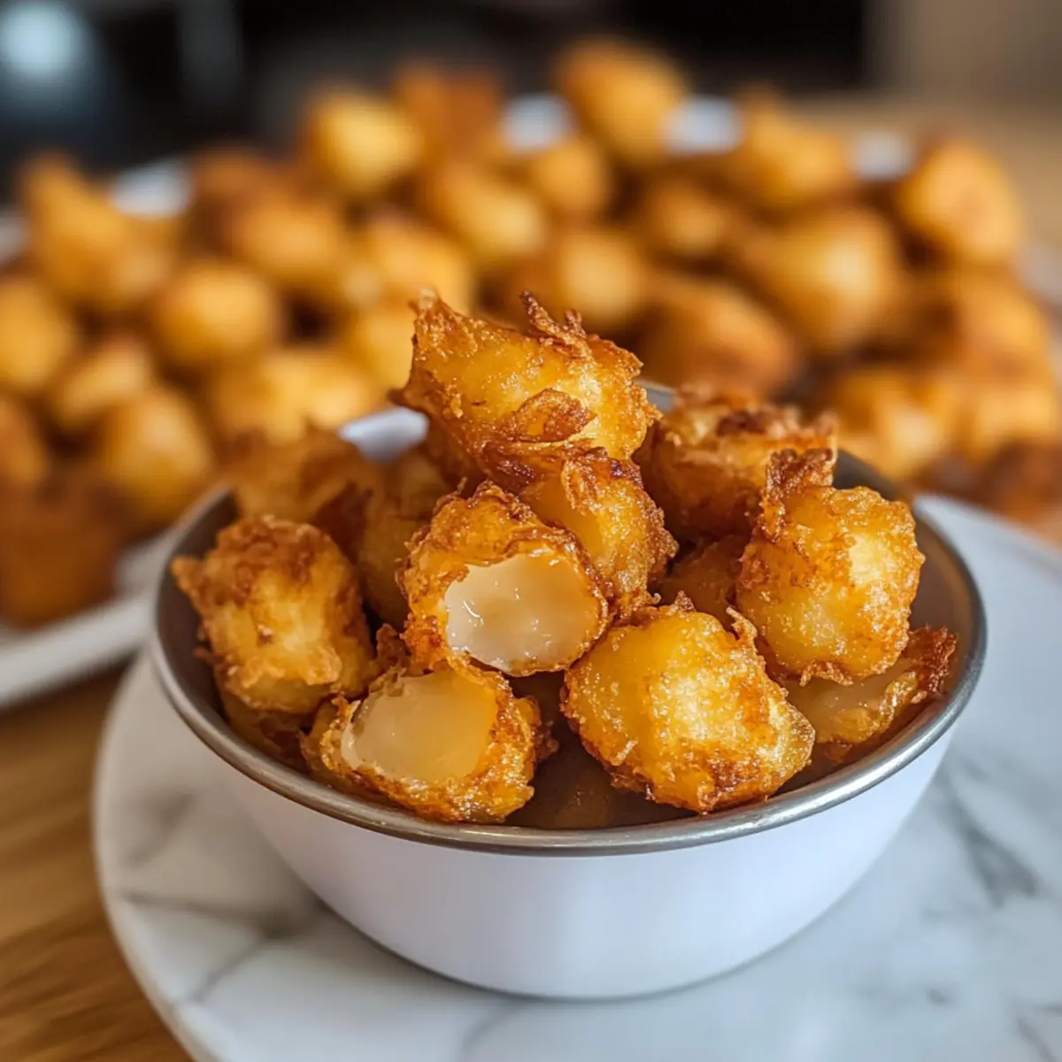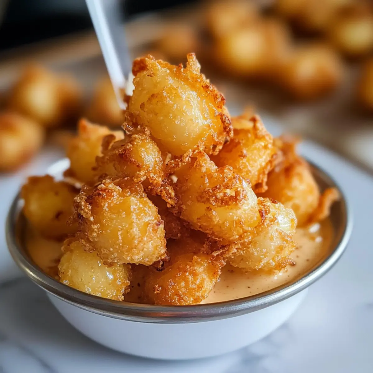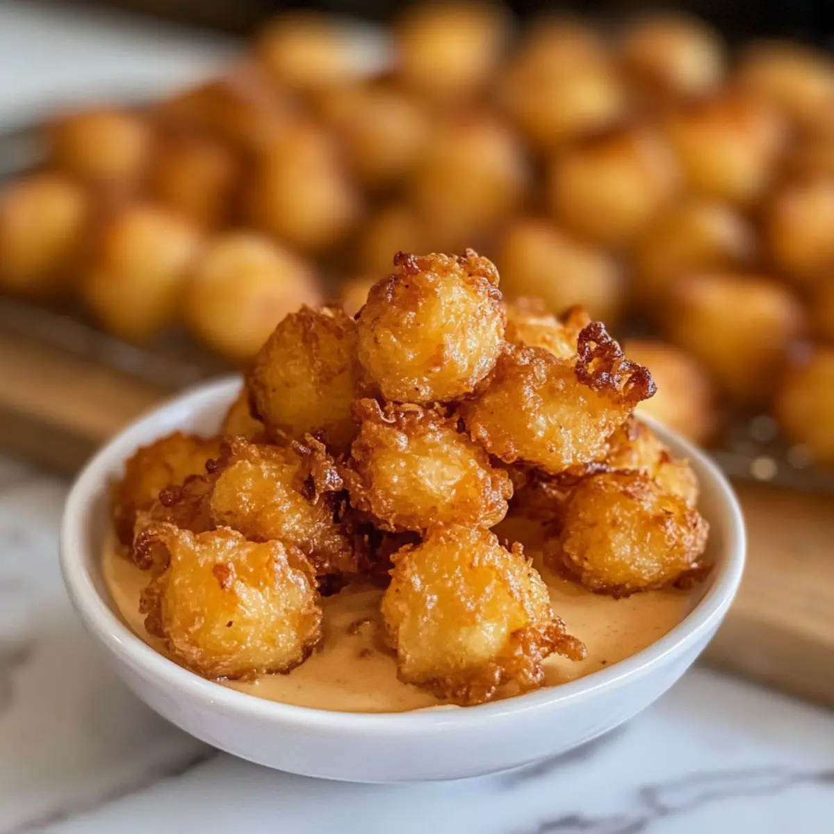 Ein unverhoffter Genuss hat sich eingeschlichen: die Luftgebratenen Perlenzwiebeln! Diese niedlichen, knusprigen Happen bringen den beliebten Geschmack von Blumenzwiebeln auf ein ganz neues, handliches Level. Wenn Sie bei Ihrem nächsten Treffen oder Spieltag nach einer unkomplizierten und dennoch köstlichen Vorspeise suchen, sind diese luftgebratenen Perlenzwiebeln genau das Richtige. Mit ihrer süßen und milden Note sind sie nicht nur ein echter Zuschauerliebling, sondern auch einfache und saubere Snack-Optionen, die stressfreies Kochen versprechen. Bereit, sich von der Idee des herkömmlichen Frittierens zu verabschieden und diese kleinen Schönheiten zu probieren? Warum sind luftgebratene Perlenzwiebeln ein Hit? Einfachheit: Die Zubereitung ist kinderleicht und benötigt keine speziellen Kochkünste. Knusprig und Lecker: Diese Mini-Zwiebeln werden außen goldbraun und knusprig, während sie innen zart und mild bleiben – ein Genuss in jedem Bissen! Vielseitige Serviermöglichkeiten: Kombinieren Sie sie mit verschiedenen Dips, wie selbstgemachtem Boom Boom Sauce oder pikantem Ranch-Dressing, für zusätzlichen Geschmack. Wenig Aufwand, viel Geschmack: Anders als bei traditionellem Frittieren ist die Zubereitung mit dem Air Fryer nicht nur zeitsparend, sondern auch weniger chaotisch. Gesunde Alternative: Mit nur 80 Kalorien pro Portion sind sie die perfekte guilt-free Snack-Option, die jeder genießen kann. Sie können diese luftgebratenen Perlenzwiebeln auch mit anderen Appetizern wie Spinat Feta Quesadillas kombinieren, um ein köstliches Buffet zu kreieren! Luftgebratene Perlenzwiebeln Zutaten • Diese luftgebratenen Perlenzwiebeln sind einfach zuzubereiten und benötigen nur wenige Zutaten! Für die Panade Mehl – Bildet die Grundlage für die knusprige Außenhülle. Paprika – Verleiht Farbe und eine süße, rauchige Note. Salz – Essenzielles Gewürz zur Geschmacksverstärkung. Schwarzer Pfeffer – Fügen Sie nach Geschmack Wärme hinzu. Cayennepfeffer – Optional für die, die es schärfer mögen. Knoblauchpulver – Gibt den Zwiebeln ein aromatisches Profil. Für die Bindung Ei – Binding-Agent, sorgt dafür, dass die Panade gut haftet. Für die Zubereitung Öl in einer Sprühflasche – Wichtig für die goldbraune und knusprige Oberfläche im Air Fryer. Für die Zwiebeln Gefrorene Perlenzwiebeln – Süßere und mildere Zwiebeln, die ideal für dieses Rezept sind. Entdecken Sie, wie diese köstlichen luftgebratenen Perlenzwiebeln eine gesunde und schmackhafte Appetizer-Option für Ihre nächste Zusammenkunft darstellen! Schritt-für-Schritt-Anleitung für Luftgebratene Perlenzwiebeln Step 1: Zwiebeln vorbereiten Mikrowellieren Sie die gefrorenen Perlenzwiebeln für etwa zwei Minuten, also halb so lange wie auf der Verpackung angegeben. Danach die Zwiebeln abtropfen lassen und mit einem Küchentuch sanft abtrocknen. So entfernen Sie überschüssige Feuchtigkeit und bereiten sie perfekt für die Panade vor. Step 2: Panade erstellen In einer Schüssel das Ei gut verquirlen, um eine gleichmäßige Bindung zu schaffen. In einer separaten Schüssel Mehl, Paprika, Salz, schwarzen Pfeffer, Cayennepfeffer und Knoblauchpulver vermengen. Diese Mischung wird Ihre luftgebratenen Perlenzwiebeln knusprig und geschmackvoll machen. Step 3: Zwiebeln panieren Tauchen Sie jede Zwiebel zuerst in die Mehlmischung, dann in das verquirlte Ei und schließlich wieder in die Mehlmischung. Achten Sie darauf, dass jede Zwiebel gleichmäßig mit der Panade bedeckt ist, um den besten Geschmack und die optimale Knusprigkeit zu erzielen. Step 4: Kühlen Legen Sie die panierten Zwiebeln auf einen Teller oder ein Blech und stellen Sie sie für 10 Minuten in den Kühlschrank. Diese Kühlzeit hilft dabei, dass die Panade besser an den Zwiebeln haftet, was zu einem noch knusprigeren Ergebnis führt, wenn Sie die luftgebratenen Perlenzwiebeln zubereiten. Step 5: Air Fryer vorheizen Heizen Sie den Air Fryer auf 193 °C (380 °F) vor und lassen Sie ihn etwa 3 Minuten lang laufen. Dadurch ist der Air Fryer optimal vorbereitet, um die Luftgebratenen Perlenzwiebeln gleichmäßig knusprig zu garen. Step 6: Zwiebeln luftbraten Legen Sie die Perlenzwiebeln in einer einzigen Schicht in den Air Fryer-Korb. Besprühen Sie sie leicht mit Öl aus einer Sprühflasche für eine goldbraune Oberfläche. Frittieren Sie die Zwiebeln für 3 Minuten, schütteln Sie den Korb und sprühen Sie erneut mit Öl, bevor Sie sie für weitere 3 Minuten garen. Step 7: Anrichten und genießen Sobald die Zwiebeln goldbraun und knusprig sind, nehmen Sie sie vorsichtig aus dem Air Fryer. Lassen Sie sie kurz abkühlen und servieren Sie sie dann warm mit Ihren Lieblingsdips. Die luftgebratenen Perlenzwiebeln sind nicht nur köstlich, sondern auch eine gesunde Alternativ zu herkömmlichen Snacks! Expertentipps für Luftgebratene Perlenzwiebeln Cooler Trick: Kühlen nicht vergessen: Lassen Sie die panierten Zwiebeln für 10 Minuten im Kühlschrank, damit die Panade besser haftet und knuspriger wird. Tipps zur Beschichtung: Gleichmäßige Panade: Achten Sie darauf, die Zwiebeln gleichmäßig in der Mehlmischung, im Ei und wieder in der Mehlmischung zu wälzen, um perfekte Luftgebratene Perlenzwiebeln zu erhalten. Öl statt Sprays: Bedarf an Öl: Verwenden Sie eine Sprühflasche mit Öl, um die Zwiebeln gleichmäßig zu benetzen und Schäden am Air Fryer-Korb zu vermeiden. Vorsicht beim Frittieren: Nicht überladen: Frittieren Sie die Zwiebeln in einer einzigen Schicht, damit die heiße Luft zirkulieren kann und alle Seiten schön knusprig werden. Variationen ausprobieren: Folgen Sie Ihrer Kreativität: Experimentieren Sie mit verschiedenen Gewürzen in der Panade, um den Geschmack der luftgebratenen Perlenzwiebeln zu variieren! Variationen der luftgebratenen Perlenzwiebeln Lassen Sie Ihrer Kreativität freien Lauf und passen Sie dieses Rezept nach Ihrem Geschmack an! Würzige Variante: Fügen Sie mehr Cayennepfeffer hinzu oder verwenden Sie eine