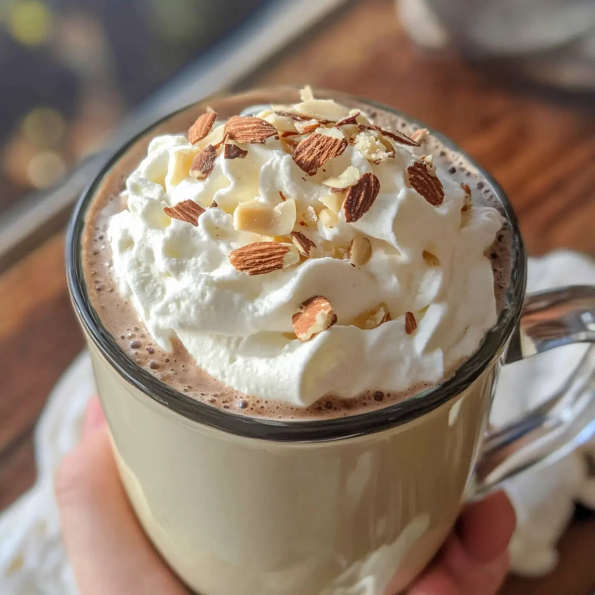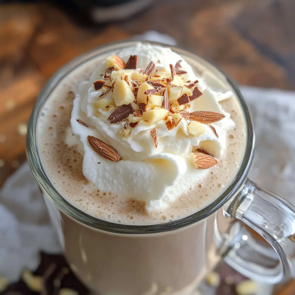 Der Duft von frisch geschmolzener Schokolade weht durch die Küche und weckt Erinnerungen an kuschelige Winterabende. Bei meiner Suche nach der perfekten winterlichen Seele entstand die Idee für diese Mandeln heiße Schokolade – eine köstliche, milchfreie Variante des Klassikers. Diese himmlische Mischung vereint die süße Note von weißer Schokolade mit dem zarten Aroma von Mandeln und bietet eine schnelle, gesunde Möglichkeit, in der kalten Jahreszeit zu schlemmen. Ob bei einem gemütlichen Filmabend oder einer festlichen Zusammenkunft – diese warme Umarmung für die Seele sorgt garantiert für wohlige Stimmung! Wer könnte da widerstehen? Bereit, die Geheimnisse dieser verwöhnenden Kreation zu entdecken? Warum ist diese Mandeln heiße Schokolade besonders? Einzigartig – Diese Mandeln heiße Schokolade bringt einen frischen Twist in die traditionelle Rezeptwelt. Milchfrei – Ideal für alle, die eine pflanzliche Option suchen, ohne auf cremigen Genuss zu verzichten. Schnell zubereitet – In nur wenigen Minuten entsteht ein köstliches Getränk, perfekt für spontane Gästebesuche oder den persönlichen Genuss. Vielseitig – Mit verschiedenen Toppings wie Sahne oder Nüssen kann jeder seine eigene Note hinzufügen. Herzhaft – Die Kombination aus weißer Schokolade und Mandeln sorgt für einen reichen, herzlichen Geschmack, der jeden begeistert. Wenn dir die Kombination von Geschmack und Leichtigkeit gefällt, probiere auch unsere Apfel Pie Heissluftfritteuse für ein weiteres himmlisches Dessert! Mandeln heiße Schokolade Zutaten • Eine köstliche Mischung, die jeden Winterabend verzaubert! Für die Basis 4 Tassen Vanille-Mandelmilch – Sorgt für Cremigkeit und einen subtilen Vanillegeschmack; kann durch jede andere Pflanzenmilch wie Hafermilch ersetzt werden. 1 Tasse weiße Schokoladenstückchen – Fügt Süße und reichhaltigen Geschmack hinzu; für eine zuckerärmere Option, verwende zuckerfreie weiße Schokolade oder eine Alternative. 1 Teelöffel Mandelessenz (optional) – Verstärkt den Mandelgeschmack; kann weggelassen oder durch Vanilleextrakt ersetzt werden, wenn gewünscht. Für die Toppings Sahne, Marshmallows oder gehackte Nüsse – Bringen Persönlichkeit in dein Getränk; wähle nach Lust und Laune, um zusätzliches Aroma und Textur hinzuzufügen. Genieße diese Mandeln heiße Schokolade und lass dich von ihrem außerordentlichen Geschmack verzaubern! Schritt-für-Schritt-Anleitung für Mandeln heiße Schokolade Step 1: Mandelmilch erwärmen Gieße 4 Tassen Vanille-Mandelmilch in einen schweren Topf und erhitze sie bei mittlerer Hitze. Rühre gelegentlich um, bis die Milch dampft, aber nicht kocht; dies sollte etwa 5 Minuten dauern. Achte darauf, dass die Milch nicht anbrennt, indem du sie im Auge behältst. Step 2: Schokolade hinzufügen Reduziere die Hitze auf niedrig und füge 1 Tasse weiße Schokoladenstückchen und 1 Teelöffel Mandelessenz (optional) hinzu. Rühre ständig mit einem Schneebesen, bis die Schokolade vollständig geschmolzen ist und die Mischung cremig wird. Dies dauert nochmals etwa 3-4 Minuten, bis alle Zutaten gut vermischt sind. Step 3: Servieren Nehme den Topf vom Herd und ladle die Mandeln heiße Schokolade vorsichtig in Tassen. Achte darauf, die köstliche, schaumige Konsistenz in jede Tasse zu bekommen. Step 4: Toppings hinzufügen Garnieren die heiße Schokolade nach Belieben mit Sahne, Marshmallows oder gehackten Nüssen. Diese Toppings verleihen der Mandeln heiße Schokolade zusätzliche Textur und Geschmack. Step 5: Genießen Serviere die Mandeln heiße Schokolade umgehend, um die Wärme und den vollmundigen Geschmack zu genießen. Nimm dir einen Moment Zeit, um die Aromen zu genießen und dich an den kalten Tagen gemütlich zu fühlen. Aufbewahrungstipps für Mandeln heiße Schokolade Kühlschrank: Bewahre Reste der Mandeln heiße Schokolade in einem luftdichten Behälter im Kühlschrank auf. Sie bleibt bis zu 3 Tage frisch und bereit für eine schnelle Wiederholung! Mikrowelle: Zum Aufwärmen einfach die kalte Mischung in der Mikrowelle erhitzen. Beginne mit 30 Sekunden, rühre um und wiederhole, bis die gewünschte Temperatur erreicht ist. Einfrieren: Wenn du mehr vorbereiten möchtest, kannst du die Mandeln heiße Schokolade auch in einem gefrierfesten Behälter aufbewahren. Tight-Verschließen und bis zu einen Monat einfrieren. Vorbereitung: Bereite die Mischung im Voraus vor und genieße sie an kühlen Tagen jederzeit – perfekt für entspannte Nachmittage oder einen herzlichen Empfang von Freunden! Was passt zu Mandeln heiße Schokolade? Erlebe die Freude, ein vollständiges Menü für kalte Tage zu kreieren, das deiner warmen Mandeln heißen Schokolade das perfekte Flair verleiht. Kekse: Frisch gebackene Kekse wie Haferflocken-Rosinen-CSF sind eine tolle Beilage. Ihre Karamellisierung verbindet sich wunderbar mit der süßen Note der Schokolade. Zimtstangen: Verwende sie als Rührhilfe, um einen zusätzlichen Hauch von Wärme hinzuzufügen. Zimt harmoniert perfekt mit den Aromen der Mandel und der weißen Schokolade. Marshmallows: Diese süßen kleinen Leckerbissen sorgen für eine luftige Textur und verstärken das nostalgische Gefühl von klassischem Hot Chocolate. Nüsse: Geröstete Mandeln oder Haselnüsse verleihen eine knusprige Note und ein nussiges Aroma. Sie ergänzen das milchfreie Getränk und sorgen für Abwechslung. Früchteteller: Frische fruchtige Komponenten wie Himbeeren oder Erdbeeren bringen eine leichte Säure ins Spiel, die den Geschmack der Mandeln heiße Schokolade auflockert. Patisserie: Leckereien wie Schokoladen-Croissants oder Mandelhörnchen passen thematisch gut zur heißen Schokolade und bieten einen Hauch von Luxus. Diese Kombinationen schaffen nicht nur geschmackliche Höhenflüge, sondern runden auch den perfekten Winterabend ab. Expertentipps für Mandeln heiße Schokolade Perfekte Temperatur: Achte darauf, die Mandelmilch nur bis zum Dampfen zu erhitzen. Kochen kann die Textu