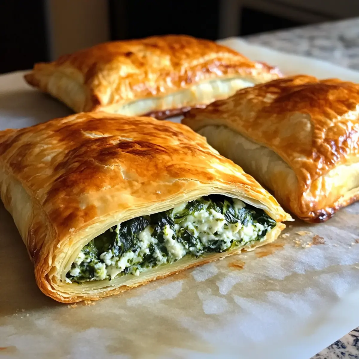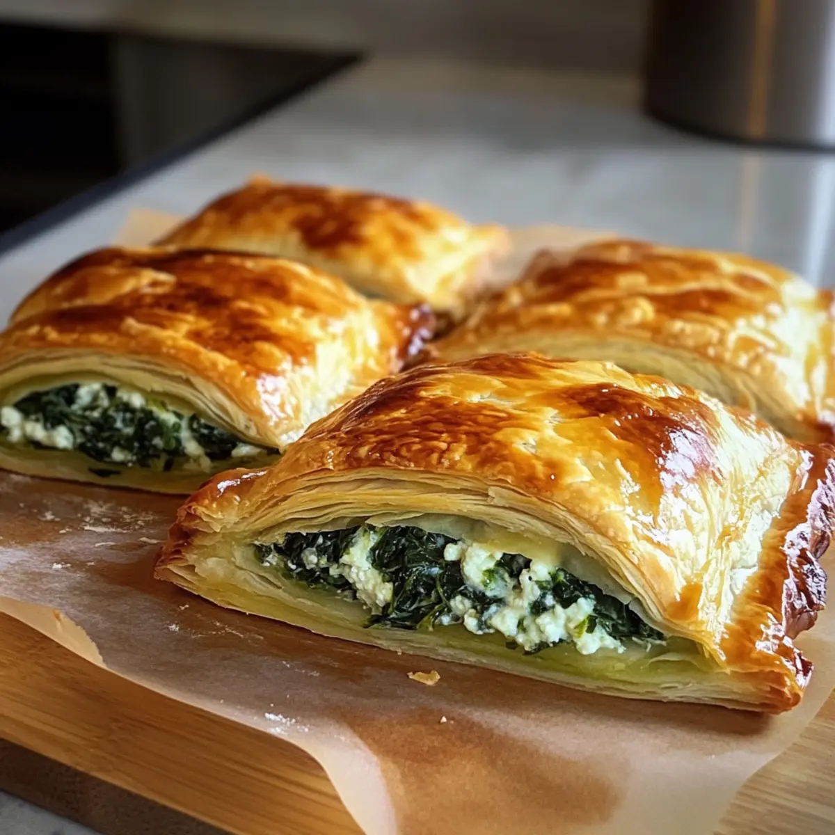 Wenn ich an die Aromen des Mittelmeers denke, fühle ich mich sofort in eine warme, einladende Taverne versetzt, wo frisch zubereitete Köstlichkeiten serviert werden. Diese Mediterrane süchtig machende Spinat gefüllte Teigtasche bringt genau dieses Gefühl in meine Küche. Mit frischem Spinat, cremigem Ricotta und nussigem Parmesan in einem goldenen, buttrigen Blätterteig vereint diese einfache Rezeptur Geschmack und Genuss in nur etwa 40 Minuten. Die ideale Wahl für einen Brunch oder als eleganter Snack, dieser gefüllte Blätterteig ist nicht nur schnell zuzubereiten, sondern auch vielfältig anpassbar, je nach dem, was gerade in deinem Kühlschrank auf Verwendung wartet. Hast du schon Lust bekommen, in die Welt der mediterranen Aromen einzutauchen? Lass uns gemeinsam in die Zubereitung eintauchen! Warum wirst du dieses Rezept lieben? Simplicity, die Zubereitung ist ganz unkompliziert und erfordert nur grundlegende Kochfähigkeiten. Vielfalt, du kannst mit verschiedenen Käsesorten experimentieren oder Gemüse nach Wahl hinzufügen. Flair für jeden Anlass, perfekt als Snack für Partys oder als Beilage zu einem festlichen Dinner. Zeitersparnis, in nur 40 Minuten hast du ein köstliches Gericht auf dem Tisch, das deine Gäste beeindruckt. Aromen des Mittelmeers, jeder Bissen entführt dich auf eine geschmackliche Reise, die Erinnerungen an warme Sommertage weckt. Wenn du nach einer weiteren köstlichen Idee suchst, schau dir auch unser Mango Sago Rezept oder die Spinat Feta Quesadillas an, um dein Mediteranes Menü zu ergänzen! Mediterrane süchtig machende Spinat gefüllte Teigtasche Zutaten Für den Teig Blätterteigplatten – Bieten die perfekte, flauschige Basis für die Teigtaschen; du kannst vorgefertigte verwenden, um es einfach zu halten. Für die Füllung Frischer Spinat – Der Hauptbestandteil, der Nährstoffe und lebendige Farben bietet; kann durch Babygrünkohl oder Mangold ersetzt werden. Ricotta-Käse – Verleiht Cremigkeit und reiche Aromen; Quark ist ein fettärmerer Ersatz. Parmesan-Käse – Sorgt für nussigen Geschmack und Reichtum; Pecorino Romano kann als Alternative verwendet werden. Ei – Wird als Eiwäsche verwendet, um eine goldene, glänzende Oberfläche zu erzielen. Knoblauchpulver – Verstärkt die Geschmacksvielfalt; frischer, gehackter Knoblauch kann für einen intensiveren Knoblauchgeschmack verwendet werden. Salz & Pfeffer – Unverzichtbare Gewürze für den letzten Schliff. Olivenöl – Optional zum Anbraten des Spinats; verleiht zusätzlichen Reichtum. Schritt-für-Schritt-Anleitung für Mediterrane süchtig machende Spinat gefüllte Teigtasche Step 1: Ofen vorheizen Heize den Ofen auf 200°C vor und lege ein Backblech mit Backpapier aus. Diese Umgebung sorgt dafür, dass die Mediterrane süchtig machende Spinat gefüllte Teigtasche gleichmäßig gebacken wird und eine goldbraune, knusprige Oberfläche erhält. Step 2: Spinat anbraten In einer Pfanne erhitzt du etwas Olivenöl bei mittlerer Hitze. Füge den gehackten Spinat hinzu und brate ihn für etwa 3–4 Minuten an, bis er zusammenfällt. Lass ihn dann kurz abkühlen, damit er die anderen Zutaten in der Füllung nicht verwässert. Step 3: Füllung zubereiten In einer Schüssel kombinierst du den abgekühlten Spinat mit Ricotta, Parmesan, Knoblauchpulver, Salz und Pfeffer. Rühre alles gut um, bis die Mischung cremig und gleichmäßig ist. Diese Füllung sorgt für den beliebten mediterranen Geschmack in deinen Teigtaschen. Step 4: Blätterteig vorbereiten Entfalte den aufgetauten Blätterteig auf einer bemehlten Arbeitsfläche und schneide ihn in 4–6 gleichmäßige Quadrate. Achte darauf, den Teig nicht zu dünn auszurollen, damit die Mediterrane süchtig machende Spinat gefüllte Teigtasche genug Halt hat. Step 5: Füllen und Formen Lege jeweils 1–2 Esslöffel der Spinat-Ricotta-Mischung in die Mitte jedes Teigquadrats. Klappe die Ecken über die Füllung, sodass eine Tasche entsteht, und drücke die Ränder mit einer Gabel fest, um sie zu versiegeln. So vermeidest du, dass die Füllung beim Backen herausläuft. Step 6: Eiwäsche auftragen Schlage ein Ei in einer kleinen Schüssel auf und bestreiche die Oberseite der Teigtaschen großzügig mit der Eiwäsche. Diese gibt den Teigtaschen eine schöne, goldene Farbe beim Backen und sorgt für einen glänzenden Look. Step 7: Backen Lege die gefüllten Teigtaschen auf das vorbereitete Backblech und backe sie für 20–25 Minuten im vorgeheizten Ofen. Achte darauf, dass sie golden braun und schön aufgegangen sind. Sie sind fertig, wenn sie an den Rändern knusprig sind. Step 8: Abkühlen und Servieren Lass die Mediterrane süchtig machende Spinat gefüllte Teigtaschen nach dem Backen für einige Minuten auf dem Blech abkühlen. Serviere sie warm als köstlichen Snack oder eleganten Appetizer. Perfekte Vorbereitung für Mediterrane süchtig machende Spinat gefüllte Teigtasche Diese Mediterrane süchtig machende Spinat gefüllte Teigtasche eignet sich hervorragend für die vorherige Zubereitung, ideal für vielbeschäftigte Kochenthusiasten! Du kannst die Füllung aus Spinat, Ricotta und Parmesan bis zu 3 Tage im Voraus zubereiten und im Kühlschrank aufbewahren. Achte darauf, die Mischung gut zu kühlen, um die Frische zu bewahren. Zudem kannst du die gefüllten Teigtaschen bis zu 24 Stunden im Voraus formen und bis zum Backen im Kühlschrank lagern. Wenn du bereit bist, sie zu servieren, bestreiche die Teigtaschen einfach mit der Eiwäsche und backe sie wie gewohnt für 20–25 Minuten, um sicherzustellen, dass sie frisch und köstlich bleiben. So hast du binnen kürzester Zeit ein leckeres Gericht auf dem Tisch! Was passt zur Mediterranen süchtig machenden Spinat gefüllten Teigtasche? Um deine Mahlzeit zu vervollständigen, probiere diese wunderbaren Begleiter, die die Aromen der mediterranen Teigtaschen wunderbar ergänzen. Tzatziki-Sauce: Frisch und cremig; die kühlende Gurkensauce harmoniert perfekt mit den warmen Teigtaschen
