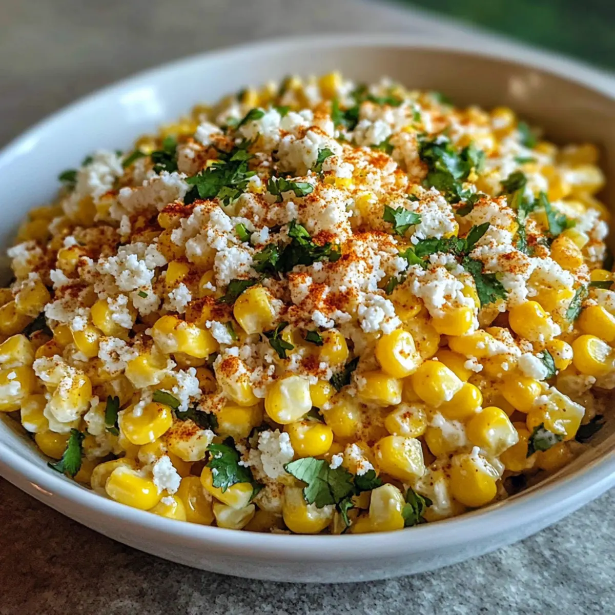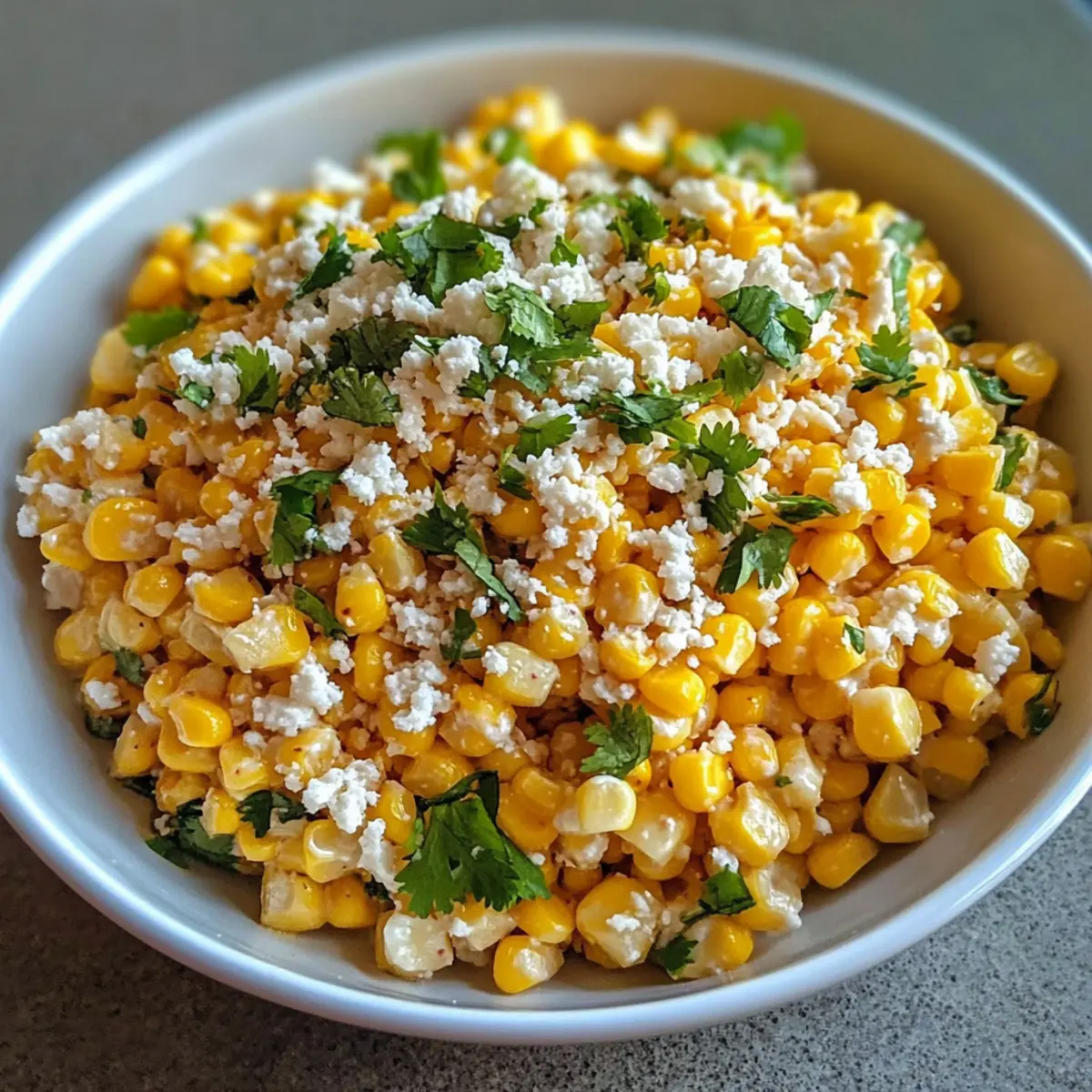 Es war ein sonniger Nachmittag, als ich mit Freunden ein Stückchen Mexiko in meinem Garten kreierte. Der Duft von frisch gegrilltem Mais und einer knackigen, bunten Salatmischung lag in der Luft. Der Mexikanische Straßenmais-Salat, oder Elote-Salat, ist eine kulinarische Hommage an die Straßenstände Mexikos, der die Herzen aller, die ihn kosten, im Sturm erobert. Diese einfache und schnelle Rezeptur bietet nicht nur eine erfrischende Abwechslung zu herkömmlichen Beilagen, sondern ist auch perfekt für jedes Treffen, von einem entspannten Abendessen bis hin zu einem fröhlichen Grillfest. Mit seinen frischen Zutaten und dem cremigen Dressing bringt dieser Salat eine schmackhafte Leichtigkeit auf den Tisch und sorgt garantiert für Begeisterung. Wie wird er wohl bei deinem nächsten Essen ankommen? Warum wirst du diesen Salat lieben? Einfachheit: Die Zubereitung ist kinderleicht! Mit nur wenigen frischen Zutaten kannst du diesen köstlichen Mexikanischen Straßenmais-Salat im Handumdrehen auf den Tisch bringen. Frische Aromen: Die Kombination aus süßem Mais, spritzigem Limettensaft und würzigem Feta sorgt für ein Geschmackserlebnis, das Erinnerungen an sonnige Tagungen weckt. Vielseitigkeit: Ob als Beilage zum Grillen oder als leichtes Mittagessen – dieser Salat ist extrem wandelbar. Du kannst ihn ganz nach deinem Geschmack anpassen und beispielsweise Avocado oder schwarze Bohnen hinzufügen! Partyhit: Mit diesem Salat beeindruckst du deine Gäste garantiert. Die bunte Optik und der einzigartige Geschmack werden alle zum Staunen bringen! Zeitersparnis: In weniger als 30 Minuten kannst du dieses Gericht zaubern – perfekt für hektische Tage oder spontane Einladungen! Entdecke auch andere köstliche Rezepte, um deiner Sammlung mehr Vielfalt zu verleihen, wie zum Beispiel unseren Mexikanischen Kaktussalat. Zutaten für Mexikanischer Straßenmais-Salat Für den Salat Mais – Frischer Mais (ca. 6-8 Ähren) oder gefrorener Mais; dieser ist essenziell für die Süße. Für ein rauchiges Aroma empfehle ich, frischen Mais vorher zu grillen. Mayonnaise – 1/2 Tasse; sorgt für die cremige Konsistenz. Kann durch griechischen Joghurt ersetzt werden, wenn du es leichter magst. Sauerrahm oder Mexikanische Crema – 1/4 Tasse; fügt Reichtum hinzu. Griechischer Joghurt ist auch hier eine gute Alternative. Limettensaft – Frisch gepresst, nach Geschmack; bringt Helligkeit ins Gericht. Bei Bedarf kannst du auch Zitronensaft verwenden. Chilipulver – 1/2 Teelöffel; gibt einen milden Kick und ergänzt die Tiefe. Passe die Menge an, je nachdem, wie scharf du es magst. Cotija-Käse – 1/4 Tasse (zerkrümelt); bereichert das Gericht mit salzigen, würzigen Noten. Feta-Käse kann ebenfalls Verwendung finden. Koriander – Frisch, gehackt; sorgt für Frische und Kräuteraromen. Jalapeño – Fein gehackt (optional); für zusätzliche Schärfe und Geschmack. Lass es weg, wenn du es weniger scharf magst. Butter oder Olivenöl – 2 Esslöffel; zum Anbraten des Mais. Entdecke bei der Zubereitung die vielen Möglichkeiten, wie du mit diesem Mexikanischen Straßenmais-Salat kreative Akzente setzen kannst! Schritt-für-Schritt-Anleitung für Mexikanischer Straßenmais-Salat Step 1: Mais vorbereiten Erhitze in einer großen Pfanne bei mittlerer bis hoher Temperatur 2 Esslöffel Butter oder Olivenöl. Gib die frischen Maiskörner (ca. 6-8 Ähren oder gefroren) in die Pfanne und brate sie für etwa 5-7 Minuten an. Rühre regelmäßig um, bis der Mais zart und leicht angebräunt ist. Nimm die Pfanne vom Herd und lass den Mais etwas abkühlen. Step 2: Dressing zubereiten In einer separaten Schüssel kombinierst du 1/2 Tasse Mayonnaise, 1/4 Tasse Sauerrahm oder mexikanische Crema, 1/4 Tasse zerkrümelten Cotija-Käse, frisch gepressten Limettensaft nach Geschmack und 1/2 Teelöffel Chilipulver. Vermische alles gründlich, bis eine glatte, cremige Konsistenz entsteht. Dieses Dressing verleiht deinem Mexikanischen Straßenmais-Salat eine köstliche, reichhaltige Basis. Step 3: Zutaten kombinieren Sobald der Mais etwas abgekühlt ist, füge ihn zu dem vorbereiteten Dressing in der Schüssel hinzu. Ergänze die Mischung mit frisch gehacktem Koriander und optional feingehacktem Jalapeño, wenn du es etwas schärfer magst. Rühre alles vorsichtig um, bis der Mais gleichmäßig mit dem Dressing überzogen ist. Achtung: Zu aggressives Umrühren könnte den zarten Mais zerdrücken. Step 4: Abschmecken Kosten und nach Belieben mit Salz und Pfeffer würzen, um den Geschmack des Mexikanischen Straßenmais-Salats weiter zu verfeinern. Achte darauf, dass alle Aromen gut harmonieren und der Salat zu deinem gewünschten Geschmack passt. Wenn nötig, kannst du auch mehr Limettensaft oder Chilipulver hinzufügen, um den Frische- und Schärfegrad zu justieren. Step 5: Servieren Der Mexikanische Straßenmais-Salat kann sofort serviert werden, schmeckt aber noch besser, wenn die Aromen einige Zeit durchziehen konnten. Stelle den Salat für mindestens 15-30 Minuten in den Kühlschrank, damit sich die Aromen entfalten können. Serviere ihn als köstliche Beilage zu gegrilltem Fleisch, Tacos oder genieße ihn pur als leichtes Mittagessen. Was servierst du zum Mexikanischen Straßenmais-Salat? Dieser frische, cremige Salat ist ein Genuss, der in jedem Bissen leuchtet und zum gemeinsamen Essen einlädt. Grilled Chicken: Saftiges, gegrilltes Hähnchen passt perfekt zur Cremigkeit des Salats und sorgt für eine köstliche Kombination aus Aromen. Tacos al Pastor: Die würzigen Tacos unterstreichen die frischen Zutaten des Salats und verwandeln jede Mahlzeit in ein mexikanisches Festmahl. Avocado Toast: Eine samtige Avocado auf knusprigem Brot ergänzt die Texturen des Salats wunderbar und ist ideal für ein leichtes Mittagessen. Quinoa-Bowl: Neben dem Salat sorgt eine Quinoa-Bowl für gesunde Fette und Proteine und stellt eine nahrhafte, sättigende Option dar. Elote (Maiskolben): Die klassische Kombination mit gegrilltem Mais ergibt 