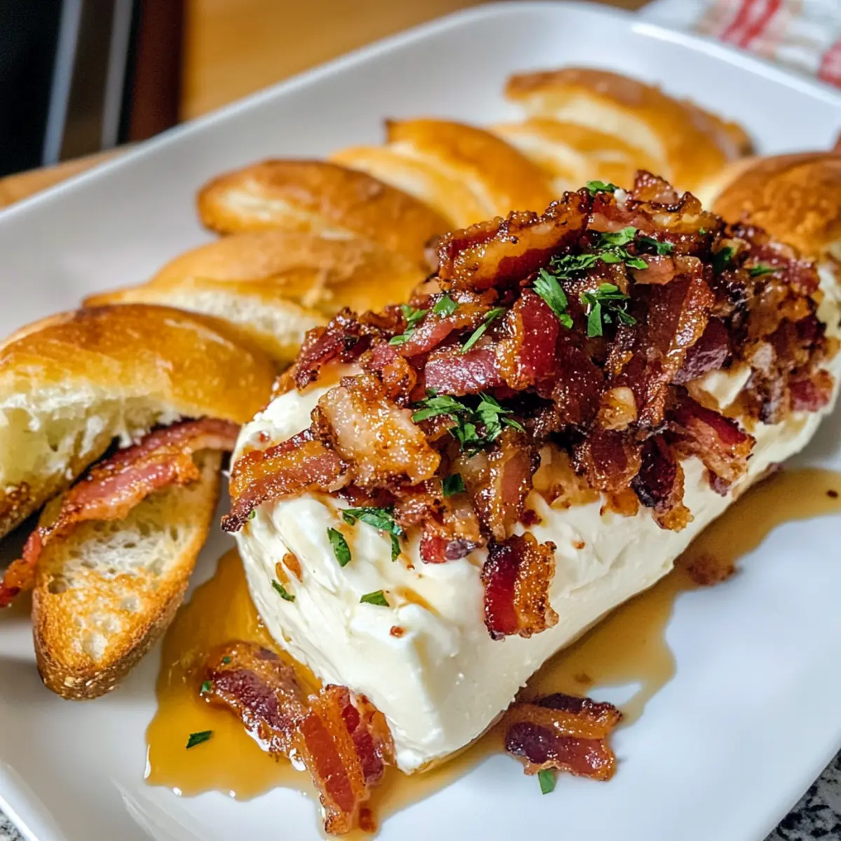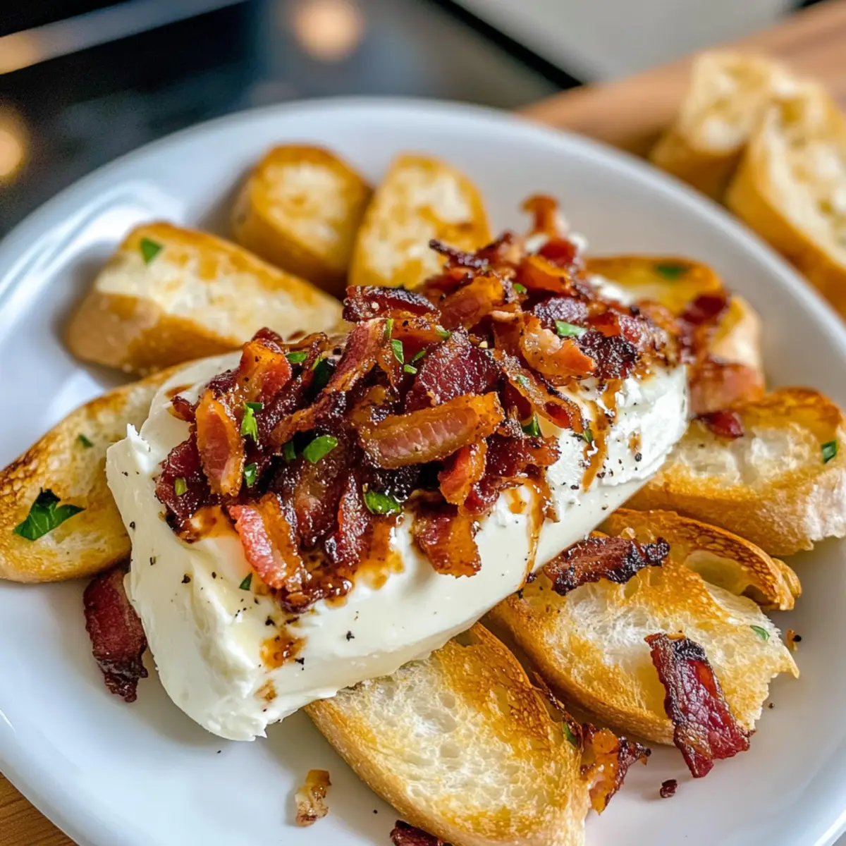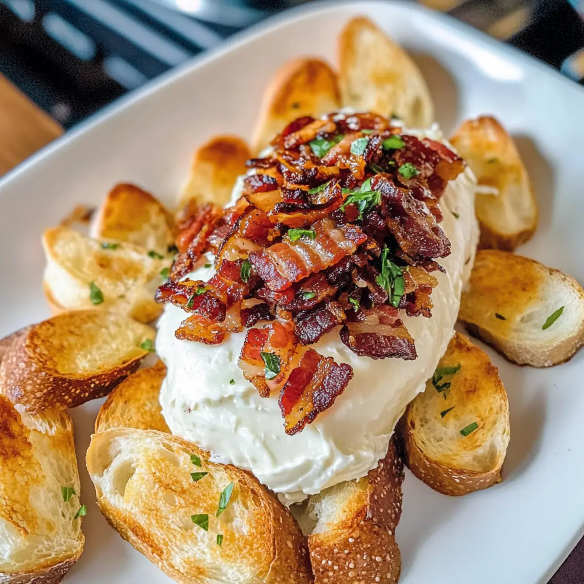 Draußen scheint die Sonne, und ich kann die köstlichen Aromen von frisch gebackenem Brot und knusprigem Bacon fast schon riechen, während ich mich in die Küche begebe. Mein neuestes Projekt? Ein Million Dollar Bacon Goat Cheese Appetizer Log! Diese Gaumenfreude kombiniert cremigen Ziegenkäse mit süßem, würzigem kandierten Bacon und knusprigen Crostini – perfekt für gesellige Abende oder als Hauptattraktion auf einem bunten Charcuterie-Board. Der Clou? Die Zubereitung ist nicht nur schnell, sondern sie verspricht auch, deine Gäste zu beeindrucken und sie nach mehr verlangen zu lassen. Hast du schon jetzt Lust auf diese leckere Überraschung? Warum ist dieser Snack so besonders? Kombination, die begeistert: Der Million Dollar Bacon Goat Cheese ist eine unwiderstehliche Fusion aus cremigem Ziegenkäse und süß-würzigem Bacon, die jeden Appetit stillt. Einfache Zubereitung: In nur wenigen Schritten zauberst du dieses beeindruckende Gericht, ideal für alle, die frische Aromen lieben, ohne dabei Stunden in der Küche zu verbringen. Vielseitige Variationen: Ob mit frischen Kräutern oder einem Hauch von Honig – du kannst es nach deinem Geschmack anpassen! Probiere auch unsere Asiatisches Rinderhackfleisch Mit oder die zart geschmorte Rinderkurzbraten für mehr Ideen. Perfekte Partybeilage: Dieser Snack passt hervorragend zu Wein und macht sich toll auf dem Tisch bei jeder Feier! Textur, die begeistert: Die Kombination aus knusprigem Bacon und cremigem Ziegenkäse bietet eine unvergessliche Geschmacksexplosion. Million Dollar Bacon Goat Cheese Zutaten • Erwecke deine Neugier mit diesen köstlichen Zutaten! Für den Bacon Dick geschnittener Bacon – Sorgt für einen kräftigen, herzhaften Geschmack; probiere Putenbacon für eine leichtere Variante. Brauner Zucker – Verleiht Süße und hilft, eine karamellisierte Kruste zu kreieren; nutze Kokoszucker für eine milchfreie Option. Wasser – Hilft, den Zucker am Bacon haften zu lassen; keine substitutions nötig. Schwarzer Pfeffer – Gibt einen Hauch von Schärfe und Ausgewogenheit; frisch gemahlener Pfeffer ist am besten. Cayennepfeffer – Fügt zusätzliche Schärfe hinzu; nach Geschmack anpassen oder für eine mildere Version weglassen. Rote Pfefferflocken – Optional für zusätzlichen Schwung; weglassen, wenn nicht gewünscht. Für die Crostini Baguette – Die Basis für die Crostini und sorgt für eine knusprige Textur; verwende glutenfreies Brot für eine glutenfreie Option. Olivenöl – Verbessert den Geschmack und hilft, die Crostini knusprig zu machen; lässt sich auch durch Avocadoöl ersetzen. Salz und Pfeffer – Zum Würzen der Crostini; nach Belieben anpassen. Für den Ziegenkäse Ziegenkäse – Cremige und würzige Basis für den Bacon; tausche ihn gegen Frischkäse für einen milderen Geschmack oder vegane Käse für eine pflanzliche Option. Ahornsirup, Honig oder scharfer Honig – Zum Beträufeln, fügt eine Süße hinzu, die den herzhaften Bacon ergänzt; wähle je nach Geschmack. Diese Zutaten machen den Million Dollar Bacon Goat Cheese zu einem unverwechselbaren Erlebnis, das du nicht verpassen möchtest! Schritt-für-Schritt-Anleitung für den Million Dollar Bacon Goat Cheese Schritt 1: Ofen vorheizen Heize den Ofen auf 175°C vor und bereite ein Backblech mit Folie und einem Backrost vor. Diese Vorbereitung sorgt dafür, dass das Fett des Bacons ablaufen kann und der Bacon gleichmäßig knusprig wird. Während der Ofen aufheizt, kannst du die Zutaten für den kandierten Bacon vorbereiten. Schritt 2: Bacon-Mischung zubereiten Vermische in einer Schüssel den braunen Zucker, schwarzen Pfeffer, Wasser und Cayennepfeffer gut miteinander. Diese Mischung sorgt für die süße und würzige Kruste, die den Bacon so unwiderstehlich macht. Stelle sicher, dass alle Zutaten gut kombiniert sind, bevor du mit der nächsten Schritt fortfährst. Schritt 3: Bacon beschichten Lege die Baconscheiben auf das vorbereitete Backblech und bedecke sie gleichmäßig mit der Zuckermischung. Drücke die Mischung sanft in den Bacon, sodass sie gut haftet. Achte darauf, dass die Scheiben nicht überlappen, damit sie gleichmäßig garen und schön knusprig werden. Schritt 4: Bacon backen Backe den Bacon für 15 Minuten im vorgeheizten Ofen. Nach der Hälfte der Zeit, wende die Scheiben vorsichtig, damit sie von beiden Seiten knusprig werden. Lasse den Bacon anschließend weitere 10–15 Minuten backen, bis er schön goldbraun und knusprig ist. Schritt 5: Bacon abkühlen lassen Übertrage den gebackenen Bacon auf einen mit Küchenpapier ausgelegten Teller, um überschüssiges Fett aufzusaugen. Diese einfache Methode sorgt dafür, dass der Bacon knusprig bleibt. Warte, bis er auf Zimmertemperatur abgekühlt ist, bevor du ihn in Stücke brichst. Schritt 6: Ofentemperatur erhöhen für Crostini Erhöhe die Ofentemperatur auf 220°C, um die Crostini zu backen. Während der Ofen aufheizt, kannst du den Baguette für die Crostini vorbereiten und in der Zwischenzeit deine Zutaten zusammenstellen. Schritt 7: Baguette vorbereiten Schneide das Baguette in 1,5 cm dicke Scheiben. Lege die Scheiben gleichmäßig auf ein weiteres Backblech, bestreiche sie leicht mit Olivenöl und würze sie mit Salz und Pfeffer. Diese Schritte sorgen dafür, dass die Crostini goldbraun und aromatisch werden. Schritt 8: Crostini backen Backe die vorbereiteten Crostini im Ofen für 7–10 Minuten, bis sie goldbraun und knusprig sind. Achte darauf, sie in den letzten Minuten im Auge zu behalten, damit sie nicht zu stark rösten. Nach dem Backen lasse sie einige Minuten abkühlen. Schritt 9: Anrichten des Million Dollar Bacon Goat Cheese Platziere den Ziegenkäse auf einer attraktiven Servierplatte. Drücke die abgekühlten Baconstücke in den Käse und träufle ihn nach Belieben mit Honig oder Ahornsirup. Diese letzte Berührung wird die Geschmackskombination perfekt abrunden und deine Gäste begeistern! Million Dollar Bacon Goat Cheese Variationen Kreiere deinen