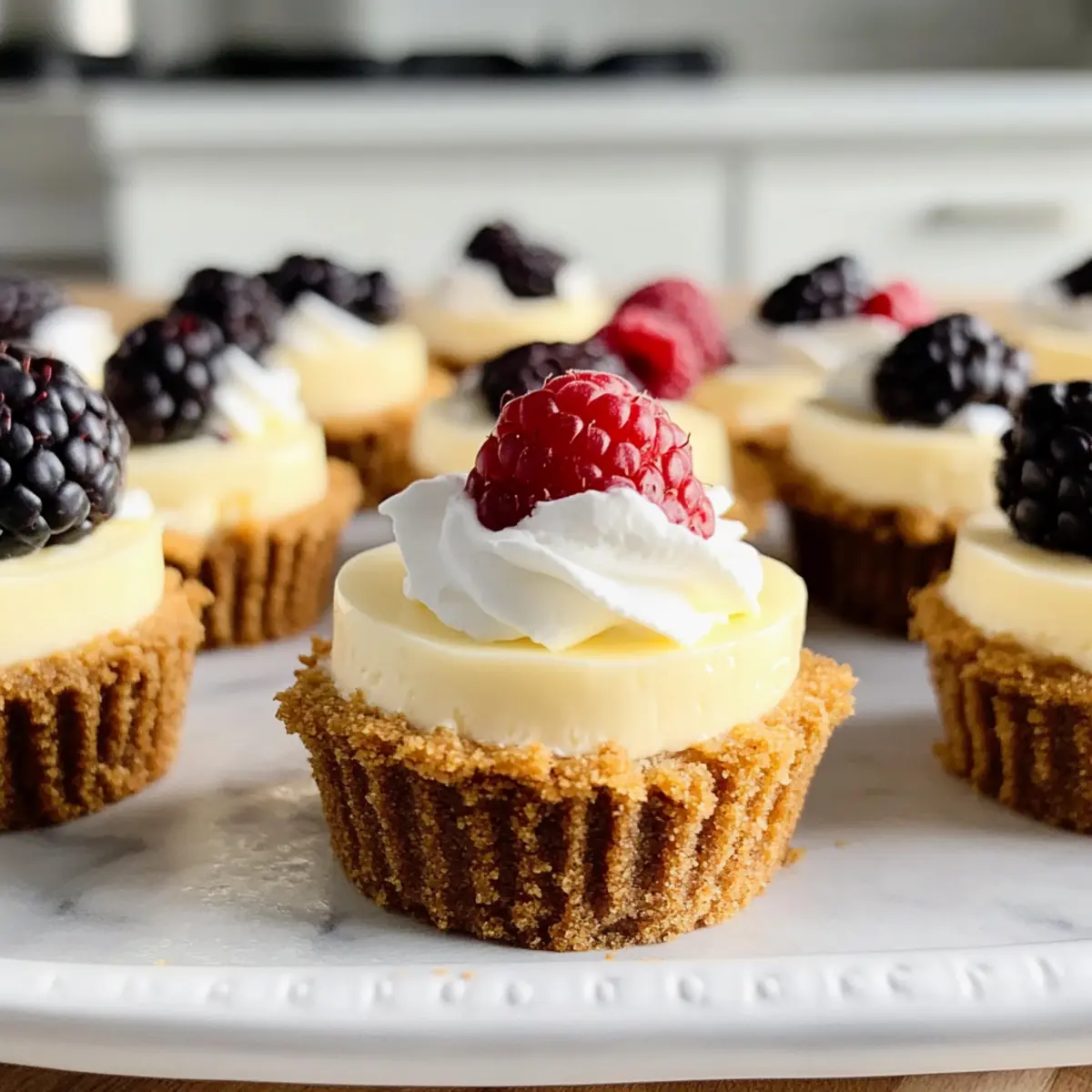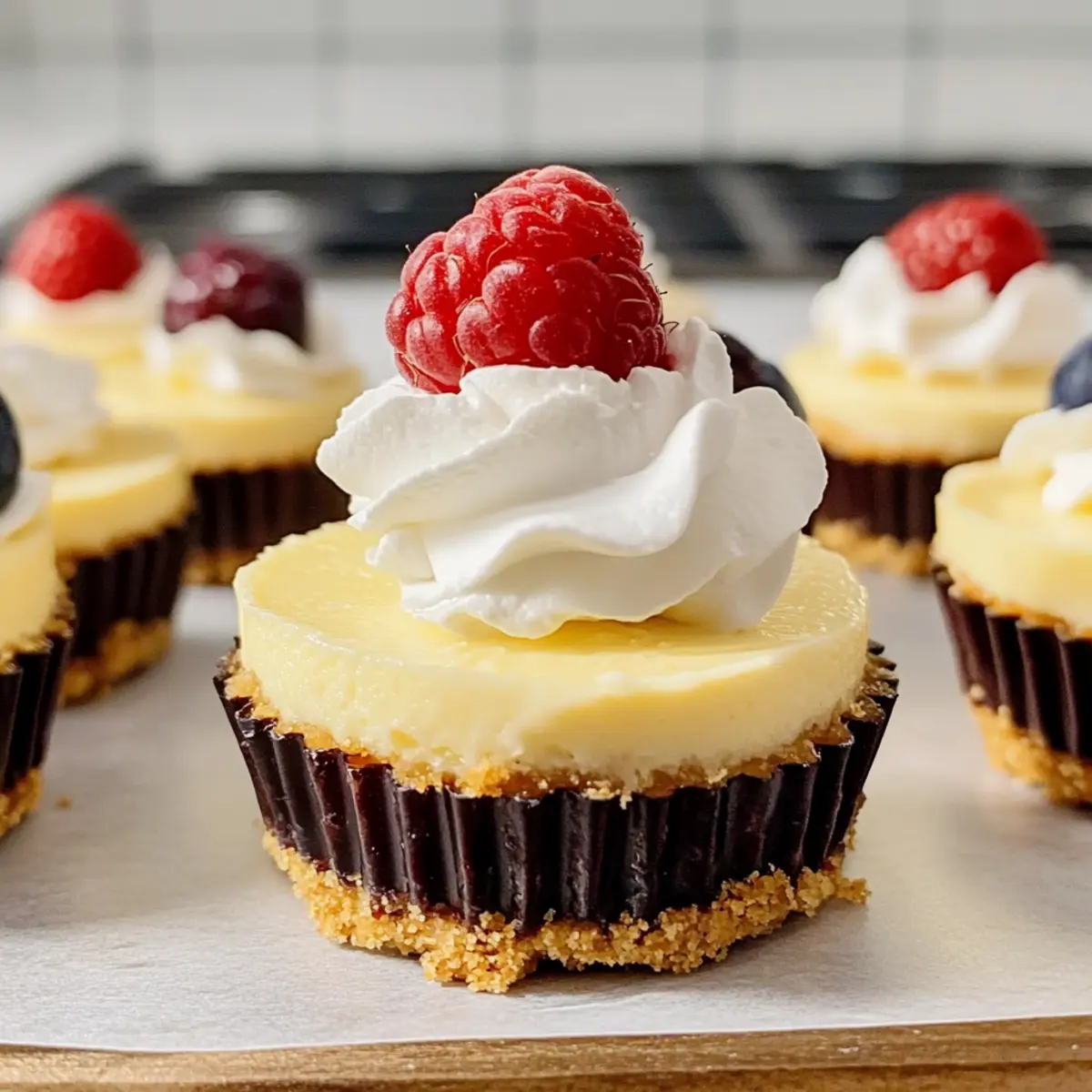 Das Aroma frisch gebackener Mini-Käsekuchen erfüllt meine Küche und weckt sofort die Vorfreude auf süße Genüsse. Diese kleinen Leckerbissen vereinen eine cremige Füllung und einen buttrigen Graham-Cracker-Boden in perfekten, mundgerechten Portionen. Ob bei einem entspannten Abendessen mit Freunden oder als süßes Highlight einer Feier – sie sind nie fehl am Platz! Die Zubereitung ist dabei überraschend unkompliziert und schnell, was sie zu einer idealen Wahl für jeden Dessertliebhaber macht. Außerdem sind diese Mini-Käsekuchen leicht vorzubereiten und lassen sich hervorragend lagern, sodass Sie auch kurzfristig Gäste mit einer süßen Überraschung beeindrucken können. Wer könnte da widerstehen? Lassen Sie uns gemeinsam in die Welt dieser köstlichen Mini-Käsekuchen eintauchen und die Vorzüge dieser verführerischen Leckerei entdecken! Warum werden Sie Mini-Käsekuchen lieben? Einfachheit: Die Zubereitung dieser Mini-Käsekuchen ist kinderleicht und erfordert nur grundlegende Backfähigkeiten. Vielfältigkeit: Sie können sie nach Belieben anpassen – probieren Sie verschiedene Toppings wie frische Beeren oder Schokolade. Cremiger Genuss: Der perfekte Mix aus cremiger Füllung und knusprigem Boden begeistert jeden Dessertliebhaber. Perfekte Portionen: Ideal zum Teilen oder für den Genuss allein – jeder Bissen ist himmlisch! Diese kleinen Köstlichkeiten sind nicht nur lecker, sondern auch eine großartige Möglichkeit, um in der Küche kreativ zu werden. Und wenn Sie auf der Suche nach mehr Inspiration sind, schauen Sie sich auch unsere Tipps zur Zubereitung an! Mini-Käsekuchen Zutaten Für den Boden Graham-Cracker-Krümel – Sie sorgen für eine knusprige und stabile Basis für den Käsekuchen. Ersetzen Sie sie durch zerbröselte Digestive-Kekse für einen anderen Geschmack. Zucker – Fügt sowohl dem Boden als auch der Füllung Süße hinzu. Verwenden Sie braunen Zucker für einen reichhaltigeren Geschmack. Ungesalzene Butter – Bindet die Zutaten des Bodens miteinander und sorgt für einen geschmackvollen, festen Grund. Verwenden Sie Kokosöl für eine milchfreie Option. Für die Füllung Frischkäse – Der Hauptbestandteil, der Cremigkeit und einen leichten Säuregeschmack hinzufügt; vor der Verwendung auf Zimmertemperatur bringen. Veganer Frischkäse kann als Ersatz verwendet werden. Sauerrahm – Liefert eine sanfte Säure und Cremigkeit in der Füllung. Verwenden Sie griechischen Joghurt für eine leichtere Variante. Reiner Vanilleextrakt – Verbessert den Gesamtgeschmack des Käsekuchens. Verwenden Sie Vanillepaste für intensiveren Geschmack. Eier – Sorgen für Struktur und helfen, die Füllung zu festigen; am besten bei Zimmertemperatur verwenden. Für eine vegane Option können Sie Flachseier (1 Esslöffel Leinsamenmehl + 2,5 Esslöffel Wasser = 1 Ei) verwenden. Diese Mini-Käsekuchen sind der perfekte süße Genuss für jeden Anlass und lassen sich wunderbar anpassen! Schritt-für-Schritt-Anleitung für Mini-Käsekuchen Step 1: Ofen vorheizen Heizen Sie den Ofen auf 163°C (325°F) vor und bereiten Sie ein Muffinblech mit 12 Förmchen vor. Achten Sie darauf, dass alle Förmchen gleichmäßig ausgelegt sind, damit die Mini-Käsekuchen gleichmäßig backen und gleichmäßig bräunen. Step 2: Boden vorbereiten Vermengen Sie in einer Schüssel die Graham-Cracker-Krümel und den Zucker. Fügen Sie die geschmolzene Butter hinzu und rühren Sie die Mischung, bis alle trockenen Zutaten gut benetzt sind. Drücken Sie die Mischung dann gleichmäßig in die Boden der Muffinform und backen Sie den Boden für 5 Minuten, bis er leicht fest ist. Step 3: Füllung zubereiten In einer Rührschüssel den weich gewordenen Frischkäse und den Sauerrahm mit einem Mixer glatt rühren. Fügen Sie nach und nach den Zucker und den Vanilleextrakt hinzu, während Sie weiter mixen. Achten Sie darauf, die Zutaten gut zu vermischen, bis eine cremige Masse entsteht, die frei von Klumpen ist. Step 4: Eier einarbeiten Schlagen Sie die Eier einzeln in die Füllung und mixen Sie jedes Ei bei niedriger Geschwindigkeit kurz ein, bis es gerade so integriert ist. Vermeiden Sie es, zu lange zu mixen, da dies zu Rissen in den Mini-Käsekuchen führen kann. Achten Sie darauf, den Rand der Schüssel abzukratzen, um alle Zutaten gut zu vermengen. Step 5: Förmchen füllen Gießen Sie die cremige Füllung in die vorgebackenen Boden der Muffinform. Füllen Sie die Förmchen bis fast zum Rand, da die Füllung beim Backen nicht sehr aufgeht. Dies sorgt für eine köstliche Balance zwischen dem knusprigen Boden und der cremigen Oberseite der Mini-Käsekuchen. Step 6: Backen Backen Sie die Mini-Käsekuchen für 17–20 Minuten, bis die Oberseite fest ist und leicht aufgegangen aussieht. Sie sollten in der Mitte noch leicht wackeln, da sie beim Abkühlen weiter fest werden. Beobachten Sie die Farbe; sie sollten eine goldbraune Farbe annehmen. Step 7: Abkühlen und Kühlen Lassen Sie die Mini-Käsekuchen für etwa 1 Stunde in der Form abkühlen. Nach dem Abkühlen sollten Sie sie für mindestens 3–4 Stunden oder über Nacht in den Kühlschrank stellen, um die beste Konsistenz und das volle Aroma zu erreichen. Lagerungstipps für Mini-Käsekuchen Zimmertemperatur: Mini-Käsekuchen sollten nicht länger als 2 Stunden bei Raumtemperatur stehen gelassen werden, um die Frische und Sicherheit zu gewährleisten. Kühlschrank: Bewahren Sie die Mini-Käsekuchen im Kühlschrank auf, wo sie bis zu 5 Tage frisch bleiben. Legen Sie sie in einen luftdichten Behälter, um Gerüche zu vermeiden. Gefrierfach: Für eine längere Lagerung können Sie die Mini-Käsekuchen bis zu 2 Monate im Gefrierschrank aufbewahren. Wickeln Sie sie dazu einzeln in Frischhaltefolie und fügen Sie einen Gefrierbeutel hinzu. Auftauen: Lassen Sie gefrorene Mini-Käsekuchen über Nacht im Kühlschrank auftauen, bevor Sie sie servieren. So bleibt die cremige Struktur optimal erhalten. Mini-Käsekuchen: Variationen und Alternativen Las