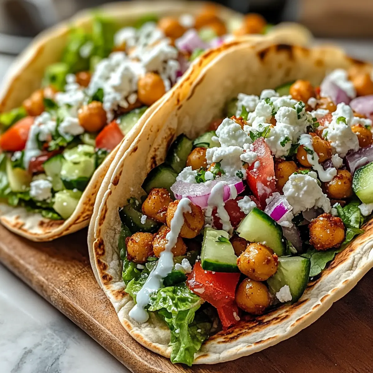 Ein leichter Duft von Gewürzen und frischem Gemüse zieht durch die Küche, während ich die Zutaten für meine Mittelmeer Kichererbsen Pita Tacos vorbereite. Diese schnellen und gesunden Tacos sind nicht nur ein echter Genuss für den Gaumen, sondern auch voller Eiweiß und Nährstoffe, perfekt für alle, die eine Pause von Fast Food einlegen möchten. Die Kombination aus würzigen Kichererbsen und knackigem Gemüse, all das verpackt in einem warmen Pita-Brot, macht sie zur idealen Wahl für ein gelungenes Mittagessen oder ein entspanntes Abendessen. Und das Beste daran? Sie sind mühelos zuzubereiten und kosten nicht viel Zeit. Neugierig, wie einfach diese Köstlichkeit zuzubereiten ist? Lass uns gleich loslegen! Warum sind diese Tacos so besonders? Einfachheit: Die Zubereitung dieser Mittelmeer Kichererbsen Pita Tacos erfordert nur grundlegende Kochkenntnisse und minimalen Aufwand. Würzige Vielfalt: Die Kombination aus warmen Gewürzen und knackigem Gemüse sorgt für ein Geschmackserlebnis, das Erinnerungen an mediterrane Sonne weckt. Gesund und nahrhaft: Mit und voller Eiweiß* und Ballaststoffen sind sie eine gesunde Alternative zu Fast Food. Vielseitig: Du kannst die Füllung ganz nach deinem Geschmack anpassen – probiere zum Beispiel Erdbeer Zuckerplaetzchen Rezept als süße Ergänzung dazu. Schnell zubereitet: Perfekt für einen stressigen Wochentag – in wenigen Minuten auf dem Tisch! Begeisterung: Diese Tacos sind ein echter Hit bei Familie und Freunden, ideal für gesellige Abende oder einfach nur zum Genießen! Mittelmeer Kichererbsen Pita Tacos Zutaten Dieses Rezept bietet eine gesunde und köstliche Option für dein nächstes Mittagessen! Für die Kichererbsenfüllung • Gekochte Kichererbsen – Die Hauptquelle für pflanzliches Eiweiß; verwende gerne Kichererbsen aus der Dose für eine schnelle Zubereitung. • Olivenöl – Fügt gesunde Fette und Geschmack hinzu; gehe auf extra natives Olivenöl für die beste Qualität. • Kreuzkümmel – Sorgt für warme, erdige Aromen; leicht anrösten, um den Duft zu intensivieren. • Paprika – Bringt Farbe und eine subtile Süße in die Füllung. • Knoblauchpulver – Verstärkt die Geschmacksnuancen; frischer Knoblauch ist eine tolle Alternative. • Salz – Essenziell zum Würzen; nach Belieben anpassen. Für die Tacos • Pita-Brote – Dienen als Taco-Hülle; kleine Pita-Brote sind ideal zum Falten. • Geriebener Salat – Fügt Knackigkeit und Frische hinzu; substituiere nach Belieben mit Spinat. • Würfelige Tomaten – Sorgt für Frische und Feuchtigkeit; andere Gemüsesorten können auch verwendet werden. • Würfelige Gurken – Liefern zusätzliche Frische; können weggelassen werden, wenn es schneller gehen soll. • Würfelige rote Zwiebeln – Bieten einen scharfen Geschmackskontrast; grüne Zwiebeln sind milder im Geschmack. • Zerbröselter Feta-Käse – Sorgt für eine cremige, salzige Note; veganer Feta ist ebenfalls eine gute Option. Für die Sauce • Tahini-Sauce – Diese cremige Soße bringt zusätzlichen Reichtum; sowohl hausgemacht als auch aus dem Geschäft geeignet. Erlebe mit diesen Mittelmeer Kichererbsen Pita Tacos einen Hochgenuss, der nicht nur schnell zubereitet ist, sondern auch voller gesunder Zutaten steckt! Schritt-für-Schritt-Anleitung für Mittelmeer Kichererbsen Pita Tacos Step 1: Olivenöl erhitzen Erhitze in einer großen Pfanne bei mittlerer Hitze einen Esslöffel Olivenöl. Warte, bis das Öl leicht zu blubbern beginnt, was etwa 1-2 Minuten dauert. Achte darauf, dass das Öl nicht raucht, da es sonst verbrennt und bitter wird. Das Olivenöl sorgt für Geschmack und hilft, die Kichererbsen knusprig zu machen. Step 2: Kichererbsen und Gewürze hinzufügen Gib die abgetropften und abgespülten Kichererbsen in die Pfanne und streue Kreuzkümmel, Paprika, Knoblauchpulver und Salz darüber. Brate die Mischung gut durch und rühre sie regelmäßig um, so dass die Kichererbsen gleichmäßig garen, für etwa 5-7 Minuten oder bis sie leicht goldbraun und knusprig sind. Der aromatische Duft wird dir das Wasser im Mund zusammenlaufen lassen. Step 3: Pita-Brote erwärmen Während die Kichererbsen braten, kannst du die Pita-Brote in einer anderen Pfanne oder im Toaster für 1-2 Minuten erwärmen, bis sie weich und leicht angeheizt sind. Dies macht das Falten einfacher und verbessert das Esserlebnis. Halte sie warm, indem du sie in ein sauberes Küchentuch einwickelst, bis du sie füllen kannst. Step 4: Kichererbsenfüllung verteilen Sobald die Kichererbsen schön knusprig sind, nimm die Pfanne vom Herd. Öffne die warmen Pita-Brote und fülle sie gleichmäßig mit der köstlichen Kichererbsenfüllung. Achte darauf, dass jede Pita gut gefüllt ist, ohne überzulaufen. Die Kombination aus dem herzhaften Geschmack der Kichererbsen und dem warmen Pita sorgt für ein fantastisches Geschmackserlebnis. Step 5: Gemüse und Feta hinzufügen Bevor du die Pita-Brote servierst, belege sie großzügig mit geriebenem Salat, gewürfelten Tomaten, Gurken und roten Zwiebeln. Streue dann etwas zerbröselten Feta-Käse über die Füllung, um eine cremige, salzige Note hinzuzufügen. Diese knackigen und frischesten Zutaten heben die Aromen der Mittelmeer Kichererbsen Pita Tacos hervor. Step 6: Tahini-Sauce anrichten Tropfe zum Schluss einige Löffel Tahini-Sauce über die gefüllten Pita-Tacos. Diese cremige Soße bringt den zusätzlichen Reichtum, den dein Gericht braucht. Dienste die Tacos sofort, damit die Pita warm bleibt und das Gemüse frisch ist. Verblüffe deine Familie oder Freunde mit dieser einfachen, aber schmackhaften Kombination. Expertentipps für Mittelmeer Kichererbsen Pita Tacos • Kichererbsen verwenden: Wähle hochwertige, gut abgetropfte Kichererbsen, um die Konsistenz zu optimieren. Dazu sind Kichererbsen aus der Dose ideal. • Pita richtig erwärmen: Achte darauf, die Pita-Brote nicht zu lange zu erhitzen. Sie sollten warm und weich sein, damit sie sich leicht falten lassen.