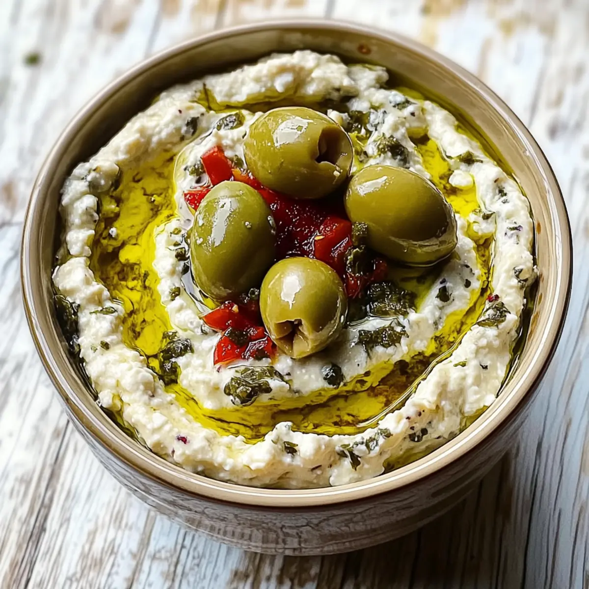 Es war ein entspannter Abend, als ich plötzlich den unwiderstehlichen Duft von frisch geröstetem Brot und zarten Oliven in der Luft wahrnahm. Genau dann fiel mir ein, dass ich den perfekten Snack für unsere nächste Zusammenkunft brauchte: den Olivenliebhaber Traumdip! Mit seiner cremigen Textur und der harmonischen Kombination aus würzigem Feta, salzigen grünen Oliven und einem Hauch von Zitronenfrische wird dieser Dip nicht nur zum Star auf dem Tisch, sondern lässt sich auch im Handumdrehen zubereiten. Er eignet sich hervorragend als Crowdpuller für jede Feier und lässt sich im Voraus vorbereiten, sodass ich mehr Zeit mit Freunden verbringen kann. Neugierig, wie einfach und köstlich dieses Rezept ist? Lass uns gemeinsam eintauchen! Warum ist dieser Dip ein Muss? Einfachheit, die begeistert: Die Zubereitung des Olivenliebhaber Traumdips ist im Handumdrehen erledigt und benötigt nur wenige Zutaten. Vielseitig einsetzbar: Dieser Dip passt perfekt zu geröstetem Brot, als Aufstrich oder zu frischen Gemüsesticks. Unwiderstehliche Aromen: Die Kombination aus cremigem Feta und salzigen Oliven sorgt für ein harmonisches Geschmackserlebnis, das deine Gäste lieben werden. Zeitersparnis: Bereite den Dip bis zu 3 Tage im Voraus vor, damit du mehr Zeit für deine Feier hast. Mediteraner Genuss: Lass dich von den frischen Zutaten und dem unverwechselbaren mediterranen Flair inspirieren – ideal für jeden Anlass! Für weitere köstliche Rezeptideen, schau dir auch unseren Griechischer Nudelsalat Mit an! Olivenliebhaber Traumdip Zutaten • Einfach und lecker: Diese Zutaten machen deinen Dip zu einem Hit! Für den Dip Grüne Oliven – sorgen für einen salzigen Geschmack und eine tolle Textur; verwende Castelvetrano oder Manzanilla für die besten Ergebnisse. Feta Käse – bringt die perfekte Kombination aus Würze und Cremigkeit; am besten ist Blockfeta in Lake für eine optimale Textur. Frischkäse – bildet die samtige Basis des Dips; stelle sicher, dass er Zimmertemperatur hat, damit er sich leicht vermengen lässt. Natives Olivenöl extra – verstärkt die Cremigkeit des Dips. Knoblauch – sorgt mit seiner Würze für eine tiefere Geschmacksebene. Zitronenabrieb – bringt frische und Helligkeit in den Dip. Zitronensaft – sorgt für die nötige Säure, die die Reichhaltigkeit ausgleicht. Geröstete Paprika – fügt Süße und Farbe hinzu. Getrockneter Oregano – gibt eine aromatische Note hinzu. Chiliflocken – optional für etwas Schärfe; nach Geschmack anpassen. Frisch gemahlener schwarzer Pfeffer – rundet das Geschmacksprofil ab; nach Belieben dosieren. Schritt-für-Schritt-Anleitung für Olivenliebhaber Traumdip Schritt 1: Zutaten vorbereiten Beginne damit, die grünen Oliven, den Feta-Käse und den Frischkäse in kleine Stücke zu schneiden. Dies erleichtert das Vermengen im nächsten Schritt. Stelle sicher, dass der Frischkäse Zimmertemperatur hat, um eine glatte und cremige Konsistenz zu gewährleisten. Bereite zudem eine Küchenmaschine oder einen Mixer vor, um die Zutaten zu pürieren. Schritt 2: Zutaten vermengen Gebe die vorbereiteten Oliven, den Feta, den Frischkäse, das native Olivenöl, den minced Knoblauch, den Zitronenabrieb und den Zitronensaft in die Küchenmaschine. Püriere alles für etwa 30 Sekunden, bis eine glatte, aber leicht stückige Masse entsteht. Achte darauf, die Konsistenz regelmäßig zu überprüfen, damit der Olivenliebhaber Traumdip die perfekte Cremigkeit erhält. Schritt 3: Restliche Zutaten hinzufügen Füge die gehackte geröstete Paprika, den getrockneten Oregano, die Chiliflocken und den frisch gemahlenen schwarzen Pfeffer hinzu. Pulsieren Sie die Mischung 2–3 Mal, um die Zutaten gut zu kombinieren, und lasse einige Stückchen für eine angenehme Textur intakt. Diese Schritte verleihen dem Dip zusätzlichen Geschmack und eine aufregende Farbvielfalt. Schritt 4: Dip anrichten Gebe den Olivenliebhaber Traumdip in eine ansprechende Servierschüssel oder ein Glas. Träufle etwas zusätzliches Olivenöl darüber, um den cremigen Dip noch schmackhafter zu machen. Garnieren Sie den Dip mit ganzen Oliven für eine schöne Präsentation. Dieser Schritt macht deinen Dip nicht nur lecker, sondern auch optisch ansprechend. Schritt 5: Kühlen vor dem Servieren Lass den Olivenliebhaber Traumdip für mindestens 30 Minuten im Kühlschrank ruhen, damit sich die Aromen gut entfalten können. Diese Zeit hilft den Zutaten, sich zu verbinden, und sorgt dafür, dass der Dip frisch schmeckt, wenn du ihn servierst. Stelle sicher, dass du den Dip abdeckst, um die besten Ergebnisse zu erzielen. Schritt 6: Servieren und genießen Nach der Kühlzeit ist dein Olivenliebhaber Traumdip bereit zum Servieren! Begleite ihn mit geröstetem Brot, knusprigen Pita-Chips oder einer Auswahl an frischen Gemüsesticks. Dieser Dip ist ein wahrer Hit bei jeder Zusammenkunft und wird deine Gäste garantiert begeistern. Lass dir diesen köstlichen Genuss nicht entgehen! Olivenliebhaber Traumdip Variationen Lass deiner Kreativität beim Zubereiten dieses Dips freien Lauf und entdecke verschiedene Möglichkeiten, ihn zu personalisieren. Veganer Genuss: Ersetze Feta und Frischkäse durch pflanzliche Alternativen für eine köstliche vegane Variante. Mach doch mal den Selbstversuch und probiere verschiedene pflanzliche Käsesorten! Kräuterfrisch: Verfeinere den Dip mit frischen Kräutern wie Basilikum oder Thymian, um einen zusätzlichen Frischekick zu erzeugen. Diese grünen Freunde huldigen die mediterrane Küche und bringen mehr Aroma. Schärfefreund: Füge eingelegte Peperoni oder frischen Chili hinzu, um dem Dip eine aufregende Schärfe zu verleihen. Ein bisschen Feuer kann die Geschmackskomplexität enorm steigern! Deckel für die Abwechslung: Probiere unterschiedliche Nüsse wie Mandeln oder Pinienkerne aus, um dem Dip eine knackige Textur zu geben. Dies sorgt für ein interessantes Mundgefühl, das die Sinne anregt. Fruchtige Note: Experimentiere mit gehackten get
