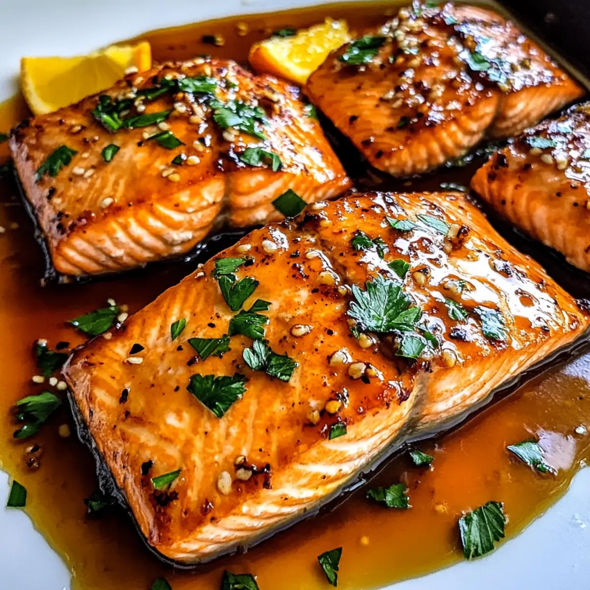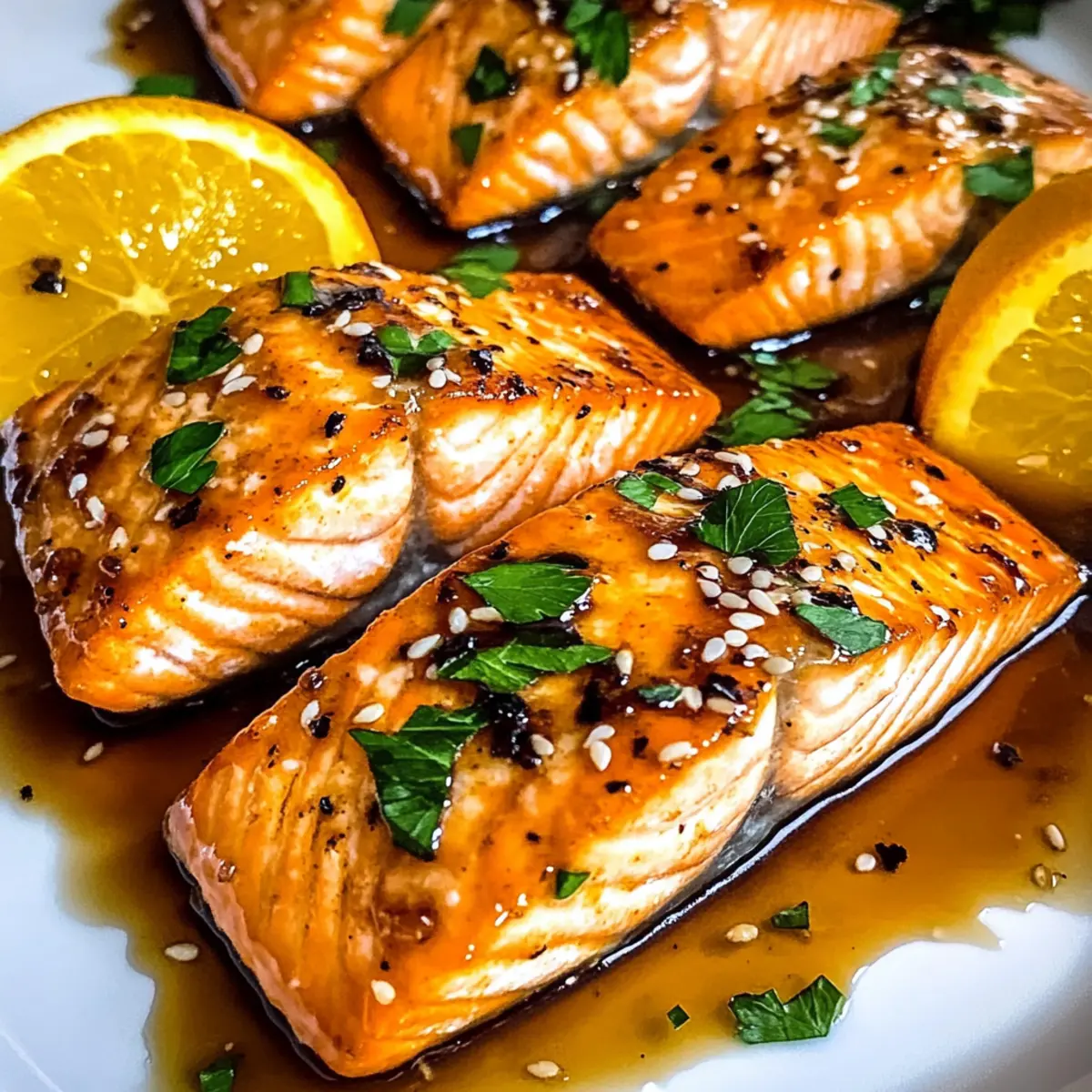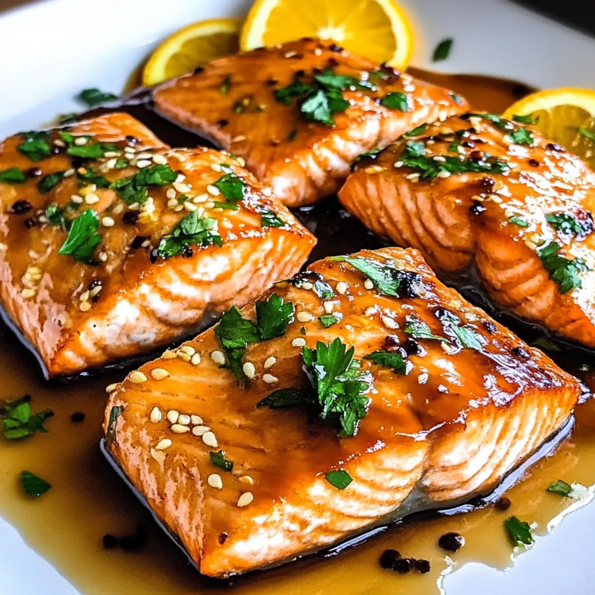 Ein kleiner Schimmer des Zitrusduftes hat sich in meiner Küche ausgebreitet, während ich an meinem neuesten Rezept tüftle. Der Orangen-glasierte Lachs ist eine der besten Möglichkeiten, um eine köstliche, schnelle Mahlzeit auf den Tisch zu bringen, die die ganze Familie begeistert. In nur 15 Minuten zaubern wir ein Gericht, das nicht nur glutenfrei ist, sondern auch voller gesunder Omega-3-Fettsäuren steckt – perfekt für alle, die lecker essen und dabei auf ihre Gesundheit achten möchten. Dieses Rezept ist nicht nur kinderfreundlich, sondern bringt auch frischen Wind in deinen Speiseplan. Ich kann es kaum erwarten, dir zu zeigen, wie einfach es ist, diesen köstlichen Lachs mit einer süß-sauren Glasur zuzubereiten. Bist du bereit, dein Abendessen zum Strahlen zu bringen? Warum wirst du diesen Lachs lieben? Schnelligkeit: In nur 15 Minuten hast du ein schmackhaftes Gericht auf dem Tisch, ideal für hektische Wochentage. Einfachheit: Mit wenigen Zutaten und klaren Schritten gelingt dir der perfekte Orangen-glaserte Lachs mühelos. Gesundheit: Dieser Lachs ist reich an Omega-3-Fettsäuren und glutenfrei, eine großartige Wahl für gesundheitsbewusste Esser. Vielfalt: Du kannst kreativ sein und saisonale Gemüse oder andere Proteine wie Tofu hinzufügen, um das Rezept anzupassen. Familienfreundlich: Die süß-saure Glasur begeistert sowohl Kinder als auch Erwachsene – ein echtes Lieblingsgericht für die ganze Familie. Vielseitige Beilagen: Serviere den Lachs einfach mit Beilagen wie gedämpftem Brokkoli oder knoblauchgemischten Kartoffelpüree, die perfekt zu diesem Gericht passen. Orangen-glasierten Lachs Zutaten • Für den Lachs: Lachsfilets – Die Hauptquelle für Proteine; wähle wildgefangenen Lachs für höhere Omega-3-Fettsäuren. Butter oder Olivenöl – Zum Anbraten; verwende Olivenöl für eine milchfreie Option. Salz & Pfeffer – Zum Würzen des Lachses und zur Hervorhebung des natürlichen Geschmacks. • Für die Glasur: Frisch gepresster Orangensaft – Der Schlüssel für die Glasur; sorgt für Süße und Säure. Frisch gepresste Zutat wird empfohlen. Honig – Verleiht der Glasur Süße; Ahornsirup ist eine gute vegane Alternative. Sojasauce – Fügt einen umami-reichen Geschmack hinzu; verwende Tamari für eine glutenfreie Variante. Knoblauch – Bringt Aroma und Geschmack in die Glasur; frischer Knoblauch in Würfeln ist bevorzugt, Knoblauchpulver kann als Ersatz genutzt werden. Maisstärke – Optional, dient der Verdickung der Glasur bei Bedarf. Hinweis: Diese Zutaten für den orangen-glasierten Lachs kombinieren Aromen, die Woche für Woche das Abendessen zum Highlight machen! Schritt-für-Schritt-Anleitung für Orangen-glasierten Lachs Step 1: Pfanne vorbereiten Erhitze eine große Pfanne bei mittlerer bis hoher Hitze. Füge 1 Esslöffel Butter oder Olivenöl hinzu und warte, bis es geschmolzen und leicht schäumt. Achte darauf, dass die Pfanne heiß genug ist, um einen schönen Bräunungseffekt zu erzielen, bevor du fortfährst. Step 2: Lachs würzen und anbraten Würze die Lachsfilets großzügig mit Salz und Pfeffer auf beiden Seiten. Lege die Filets mit der Hautseite nach oben in die heiße Pfanne und brate sie für 3-5 Minuten, bis sie goldbraun sind. Du wirst sehen, dass sich ein schöner Bräunungston bildet, während der Lachs gart. Step 3: Fisch wenden Drehe die Lachsfilets vorsichtig um, sodass die Hautseite nach unten zeigt. Koche sie für weitere 3-4 Minuten, bis sie durchgegart sind und die Innentemperatur 62°C erreicht. Das Fleisch sollte schön und flockig aussehen, wenn es perfekt gegart ist. Step 4: Glasur zubereiten Nehme den Lachs aus der Pfanne und stelle ihn auf einen Teller. Reduziere die Hitze auf mittlere Stufe. Gib frischen Orangensaft, Honig, Sojasauce und den gewürfelten Knoblauch in die Pfanne und verrühre alles gut. Lass die Mischung für 1-2 Minuten sanft köcheln, damit sich die Aromen entfalten. Step 5: Glasur eindicken Erhöhe die Hitze leicht und rühre die Glasur für etwa 30-60 Sekunden, bis sie anfängt einzudicken. Achte dabei darauf, ständig zu rühren, um ein Anbrennen zu vermeiden. Die Glasur sollte glänzend und leicht sirupartig sein, wenn sie fertig ist. Step 6: Lachs mit Glasur überziehen Lege die Lachsfilets zurück in die Pfanne und lass sie in der Glasur schwenken. Du kannst die Filets ein bis zwei Minuten in der Glasur ziehen lassen, damit sie die süß-saure Note optimal aufnehmen. Die Filets sollten jetzt vollständig von der Glasur umhüllt sein. Step 7: Servieren Serviere den Orangen-glasierten Lachs warm auf einem Teller. Garnieren kannst du das Gericht nach Belieben mit frischer Petersilie. Dieses Gericht harmoniert wunderbar mit Beilagen wie gedämpftem Brokkoli oder knoblauchmashed Kartoffeln. Tipps für den besten Orangen-glasierten Lachs Heiß anbraten: Eine gut erhitzte Pfanne sorgt für eine perfekte Bräunung und verhindert, dass der Lachs anklebt. Garen überwachen: Lasse den Lachs nicht zu lange in der Pfanne, damit er zart bleibt und leicht flockig wird – eine Innentemperatur von 62°C ist ideal. Frische Zutaten: Verwende immer frisch gepressten Orangensaft für die Glasur, um den besten Geschmack zu erzielen; abgepackte Säfte sind oft nicht so aromatisch. Glasur eindicken: Achte beim Verdicken der Glasur darauf, ständig zu rühren, um ein Anbrennen zu verhindern und eine schöne, glänzende Konsistenz zu erreichen. Vielfalt genießen: Experimentiere mit verschiedenen Gemüsesorten oder alternativen Proteinen, um deinen Orangen-glasierten Lachs abwechslungsreich und spannend zu gestalten. Kreative Beilagen: Serviere den Lachs mit gesunden Beilagen wie gedämpftem Brokkoli oder Quinoa, um die Mahlzeit ausgewogen und nahrhaft zu gestalten. Was passt zu Orangen-glasiertem Lachs? Ein festliches Abendessen mit Orangen-glasiertem Lachs wird zum Erlebnis, wenn du die richtigen Beilagen und Getränke hinzufügst. Gedämpfter Brokkoli: Die leichten Bitterstoffe des Brokkolis ergänzen 