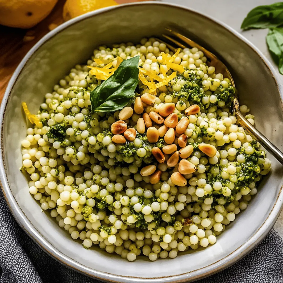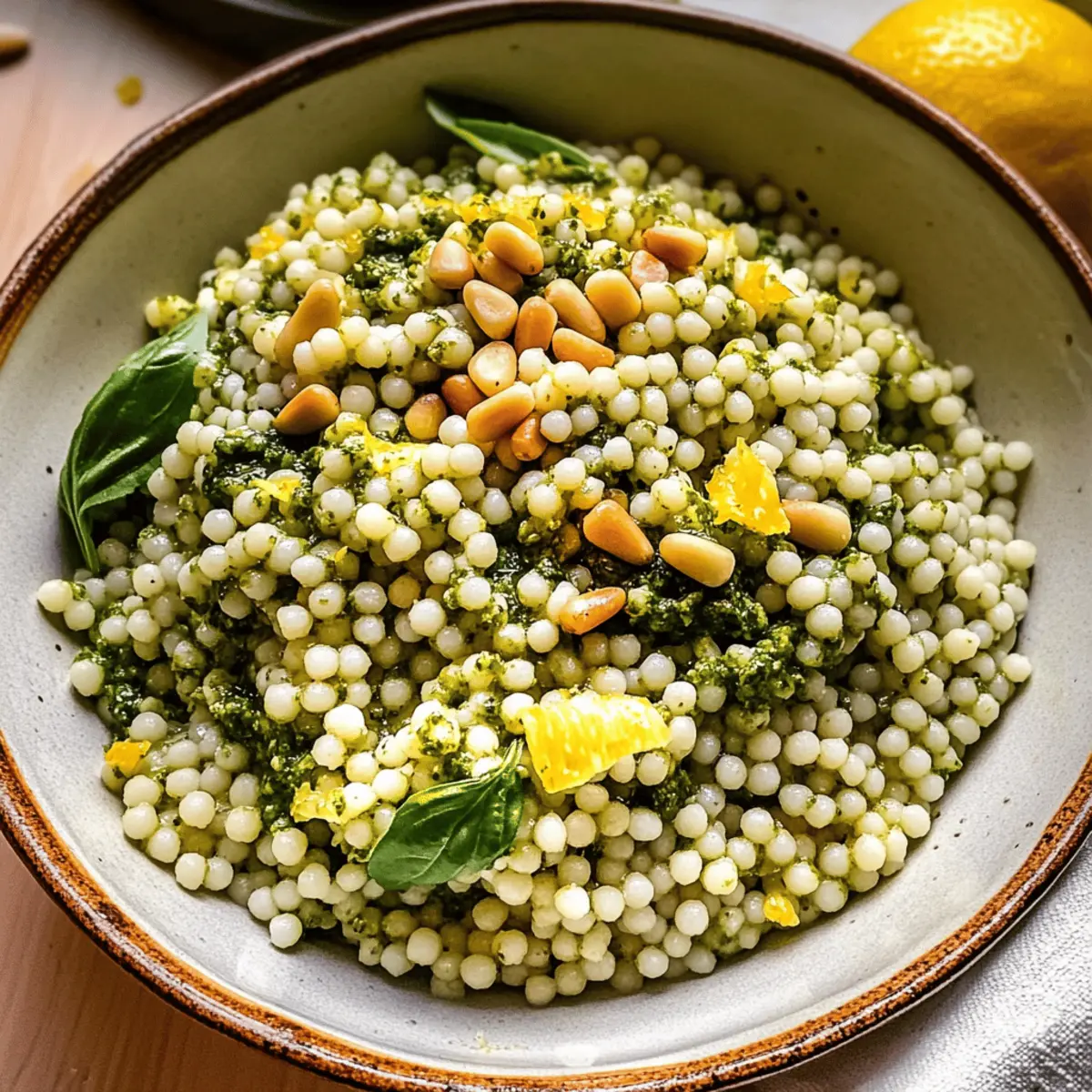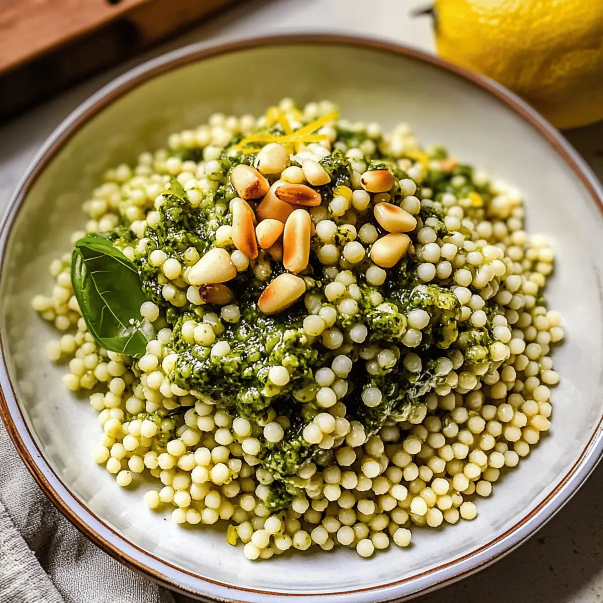 Eines Abends, als der Duft von frischem Basilikum in meiner Küche schwebte, hatte ich die Idee für mein Pesto Couscous. Diese einfache Zubereitung vereint die fluffigen Körner von israelischem Couscous mit dem lebhaften Geschmack von Basilikumpesto und ist eine perfekte Beilage für jede Gelegenheit. Das Beste daran? Es ist nicht nur schnell zubereitet, sondern auch herrlich anpassungsfähig! Egal, ob ihr ein gesundes, vegetarisches Gericht oder einfach nur einen tollen Beilagensnack sucht – dieses Rezept wird euch begeistern. Mit einer cremigen Note von Parmesan und dem Crunch von gerösteten Pinienkernen wird jeder Bissen zu einem kleinen Genussmoment. Spannt euch an, denn wir werden gemeinsam ein Gericht kreieren, das selbst die schnelllebigsten Tage aufwertet! Welche persönlichen Anpassungen werdet ihr diesem Rezept geben? Warum ist Pesto Couscous so beliebt? Einfachheit: Der Prozess ist unkompliziert und benötigt nur grundlegende Kochkünste, sodass auch Anfänger schnell Erfolg haben. Vielseitigkeit: Dieses Rezept lässt sich leicht anpassen – experimentiert mit verschiedenen Pestovarianten oder fügt euer Lieblingsgemüse hinzu. Köstlicher Geschmack: Die harmonische Kombination aus aromatischem Basilikum, cremigem Parmesan und knackigen Pinienkernen sorgt für ein unvergessliches Geschmackserlebnis. Schnell cooked: In weniger als 20 Minuten bereit, ist es der perfekte Begleiter für spontane Abendessen oder als Mittagessen für die Arbeit. Ansprechendes Gericht: Pesto Couscous sieht auf dem Teller fantastisch aus und beeindruckt eure Gäste bei jedem Anlass. Entdeckt auch weitere einfache Beilagen für eine harmonische Mahlzeit! Pesto Couscous Zutaten • Die Zutaten, die euer Geschmackserlebnis zum Leben erwecken! Für den Couscous Perlencouscous – Hauptbestandteil, der eine tolle, kaubare Textur bietet und die Aromen wunderbar aufnimmt. Alternativ kann auch Vollkorn- oder marokkanischer Couscous verwendet werden. Wasser – Das Kochmedium für den Couscous, welches ein gleichmäßiges Garen ermöglicht. Koshersalz – Verstärkt den Geschmack während des Kochens; alternativ kann Meersalz genutzt werden. Für das Pesto Pesto – Sorgt für einen kräftigen, kräuterigen Geschmack; kann durch sonnengetrocknetes Tomatenpesto, Grünkohlpesto oder eure Lieblingsvariante ersetzt werden. Parmesankäse – Verleiht Cremigkeit und eine salzige Tiefe; für eine milchfreie Option kann auch Hefeflocken oder veganer Käse verwendet werden. Für die Garnitur Pinienkerne – Optionale Beigabe, die für Crunch und Nussigkeit sorgt; kann durch Walnüsse ersetzt oder ganz weggelassen werden. Zitronenschale – Optional für einen frischen, zitrusartigen Geschmack; auch Limettenschale kann hier verwendet werden. Frisches Basilikum – Dient nicht nur als geschmackliche Ergänzung, sondern verschönert auch die Präsentation des Gerichts. Abschließend Salz und Pfeffer – Für die nach persönlichen Vorlieben abgestimmte Würze. Mit diesen Zutaten wird euer Pesto Couscous zu einem geschmacklichen Abenteuer! Schritt-für-Schritt-Anleitung für Pesto Couscous Step 1: Couscous kochen In einem mittelgroßen Topf Wasser mit Koshersalz zum Kochen bringen. Füge den Perlencouscous hinzu, rühre gut um und decke den Topf ab. Reduziere die Hitze und lasse das Ganze bei niedriger Temperatur etwa 10 Minuten köcheln, bis der Couscous weich ist. Nach dem Kochen mit einer Gabel auflockern und zur Seite stellen. Step 2: Pinienkerne rösten Erhitze eine trockene Pfanne bei mittlerer Hitze. Gib die Pinienkerne hinein und röste sie etwa 2-3 Minuten lang, bis sie goldbraun und aromatisch sind. Achte darauf, sie ständig zu schütteln, um ein Anbrennen zu vermeiden. Sobald sie fertig sind, nimm die Pfanne von der Hitze und lege die Pinienkerne auf einen Teller. Step 3: Zutaten kombinieren Nehme den gekochten Couscous und füge das Pesto sowie den geriebenen Parmesan und die Zitronenschale hinzu. Mische die Zutaten gründlich, bis alles gleichmäßig verteilt ist. Schmecke die Mischung mit Salz und Pfeffer ab, um den Geschmack des Pesto Couscous zu intensivieren. Step 4: Servieren Richte den Pesto Couscous auf Tellern an und garniere ihn mit den gerösteten Pinienkernen sowie zusätzlichem Parmesan und frischem Basilikum, wenn gewünscht. Dieser italienisch inspirierte Genuss wird sowohl als Beilage als auch als leichtes Hauptgericht perfekt zur Geltung kommen. Was passt zu Pesto Couscous? Entdeckt, welche köstlichen Beilagen euer Pesto Couscous zu einem perfekten Gesamterlebnis machen! Gegrilltes Hähnchen: Die zarten Aromen des Hähnchens harmonieren wunderbar mit dem frischen Pesto Couscous und sorgen für eine herzliche Mahlzeit. Ihr könnt das Hähnchen einfach mit etwas Olivenöl und Kräutern grillen. Röstgemüse: Bunte, saisonale Gemüse wie Paprika, Zucchini und Auberginen bringen süße Noten und machen den Tisch lebendig. Das Rösten intensiviert die Aromen und ergänzt die Textur des Couscous. Caprese-Salat: Die Kombination aus frischen Tomaten, Mozzarella und Basilikum fügt eine fruchtige Frische hinzu, die perfekt zu den intensiven Aromen des Pesto Couscous passt. Gerne mit etwas Balsamico verfeinern. Zucchini-Nudeln: Für eine leichte, kohlenhydratarme Option bieten sich gebratene Zucchini-Nudeln an. Sie bringen eine knackige Frische und sind eine stilvolle Ergänzung zu diesem italienischen Genuss. Ein Glas Weißwein: Ein spritziger Sauvignon Blanc oder ein trockener Pinot Grigio verstärkt die italienischen Aromen eures Pesto Couscous und sorgt für ein harmonisches Trinkerlebnis. Tiramisu: Zum Nachtisch überrascht ein klassisches Tiramisu mit seinen cremigen und kaffeearomatischen Noten und rundet das italienische Menü stilvoll ab. Frischer Basilikum: Ein weiteres Topping, das für frische Aromen sorgt und die italienische Note eures Gerichts verstärkt. Einfach über den Couscous streuen oder separat servieren! Pesto Couscous Variationen & Alternativen Dieser Pesto Couscous lädt