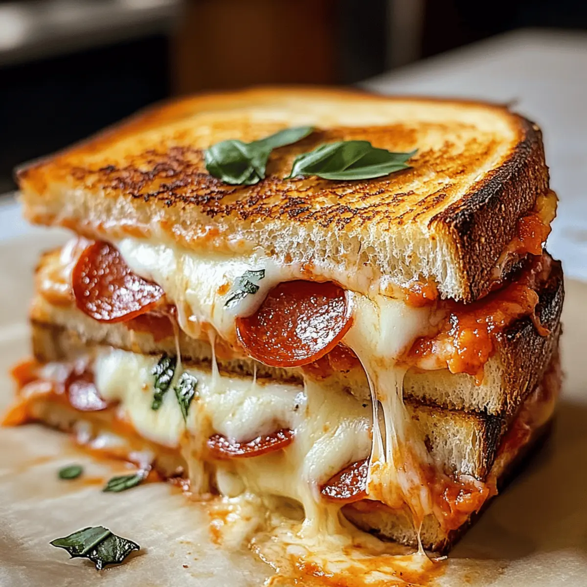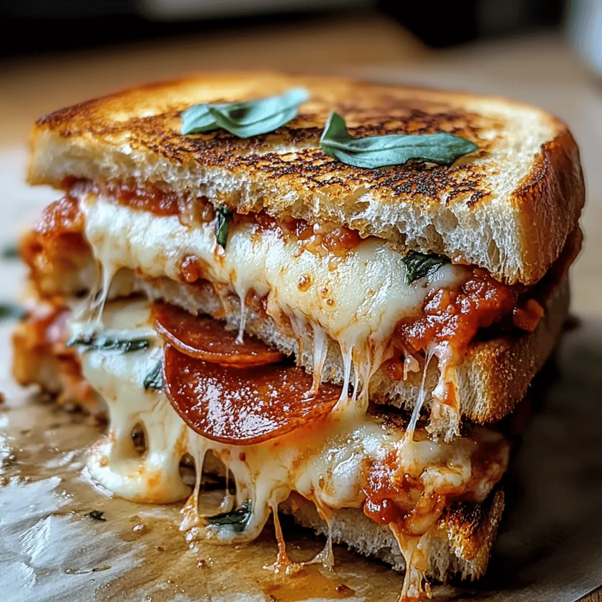 Lass die Sandwiches eine Minute lang abkühlen, bevor du sie diagonal aufschneidest. Garniere sie nach Belieben mit frischem Basilikum und serviere sie zusammen mit einer kleinen Schüssel Marinara für ein zusätzliches Dip-Erlebnis. Genieße den vollmundigen Geschmack und die herrliche Textur deines Ultimate Pizza Grilled Cheese!
