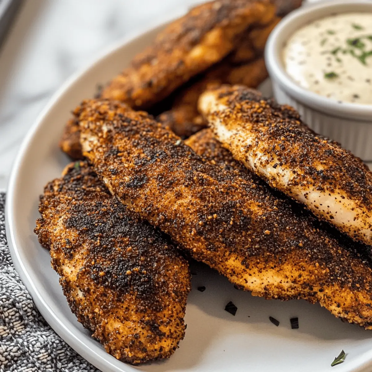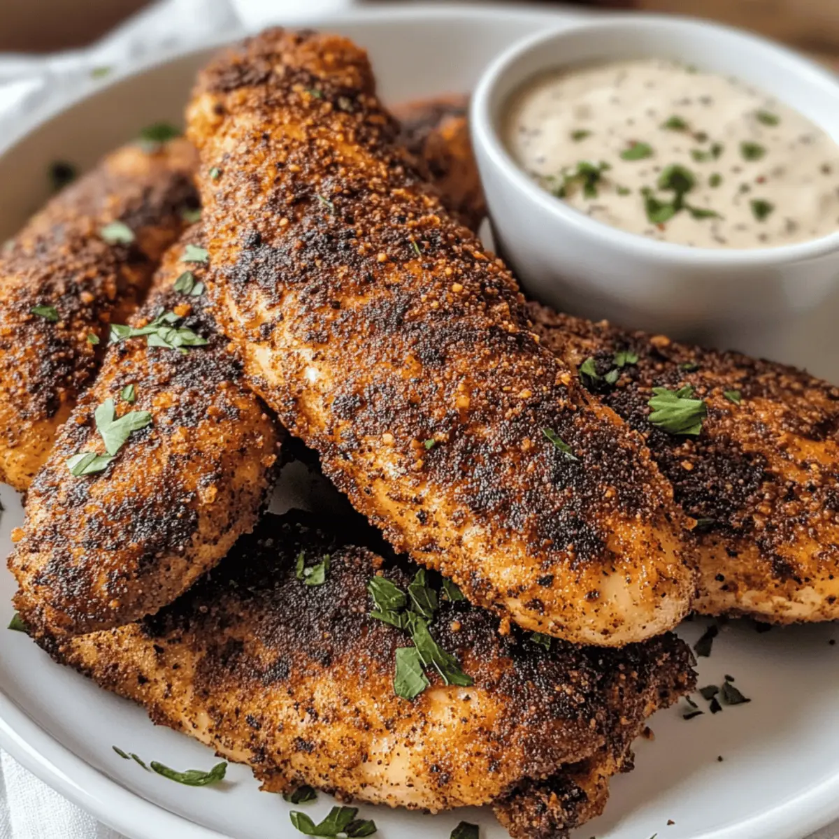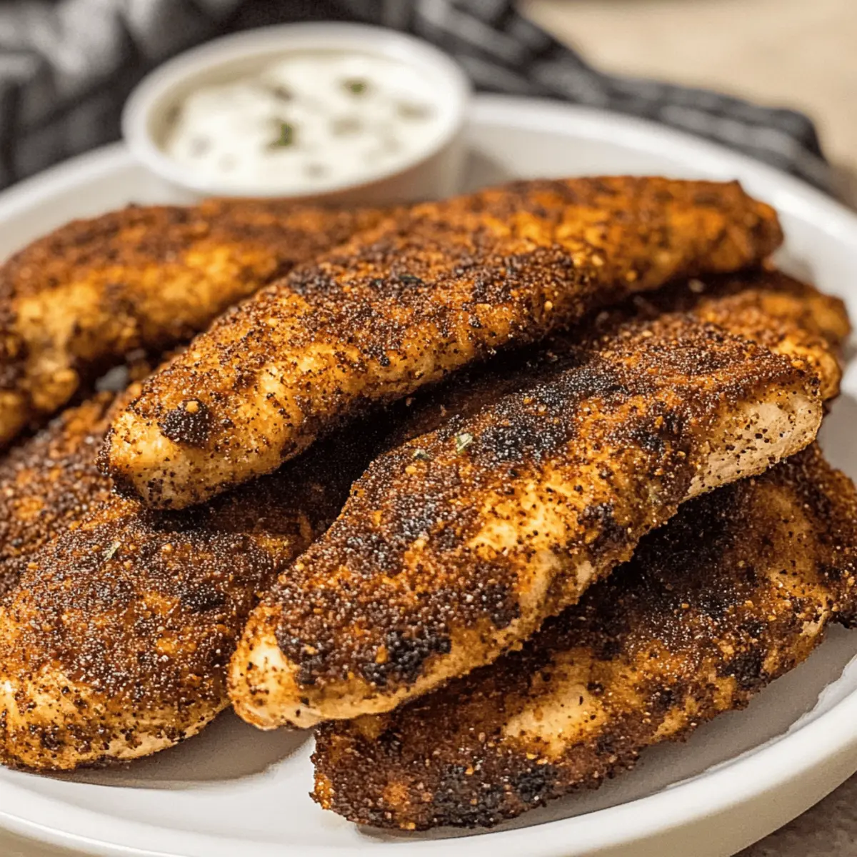 Hausgemachte, knusprige und würzige Popeyes-inspirierte schwarze Hähnchenstreifen, die schnell zubereitet werden können.